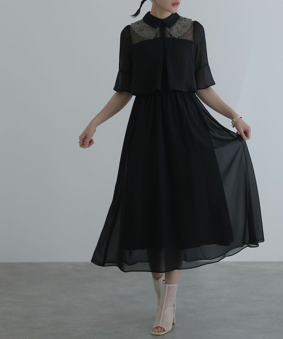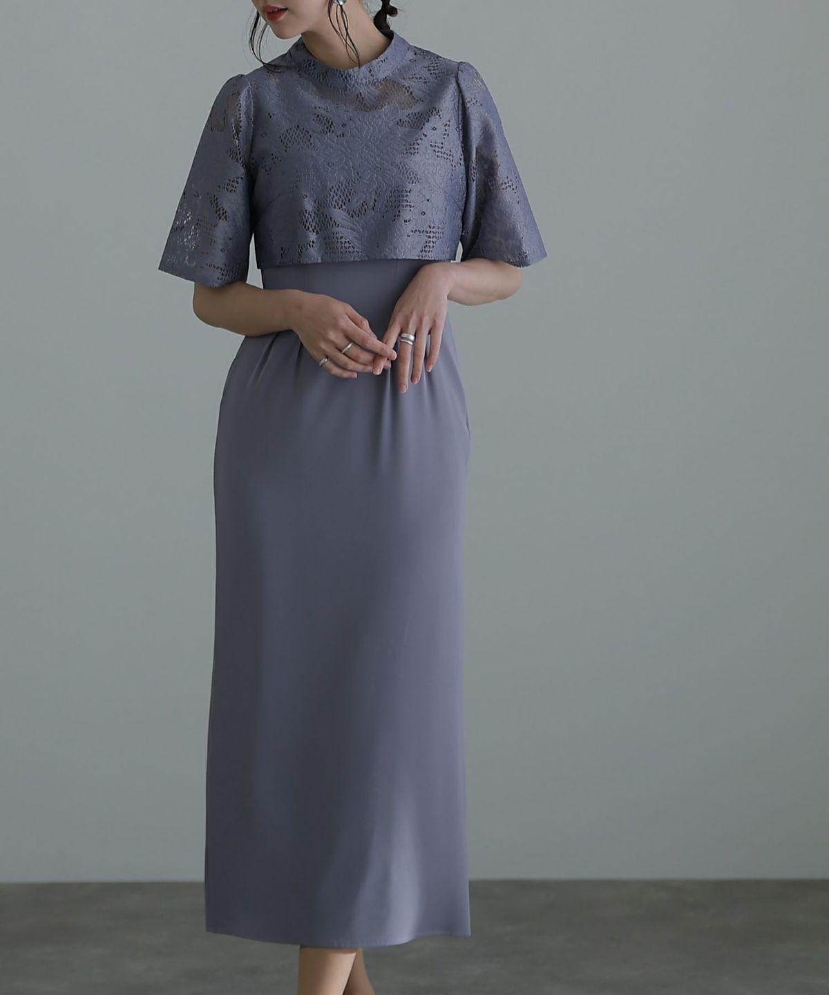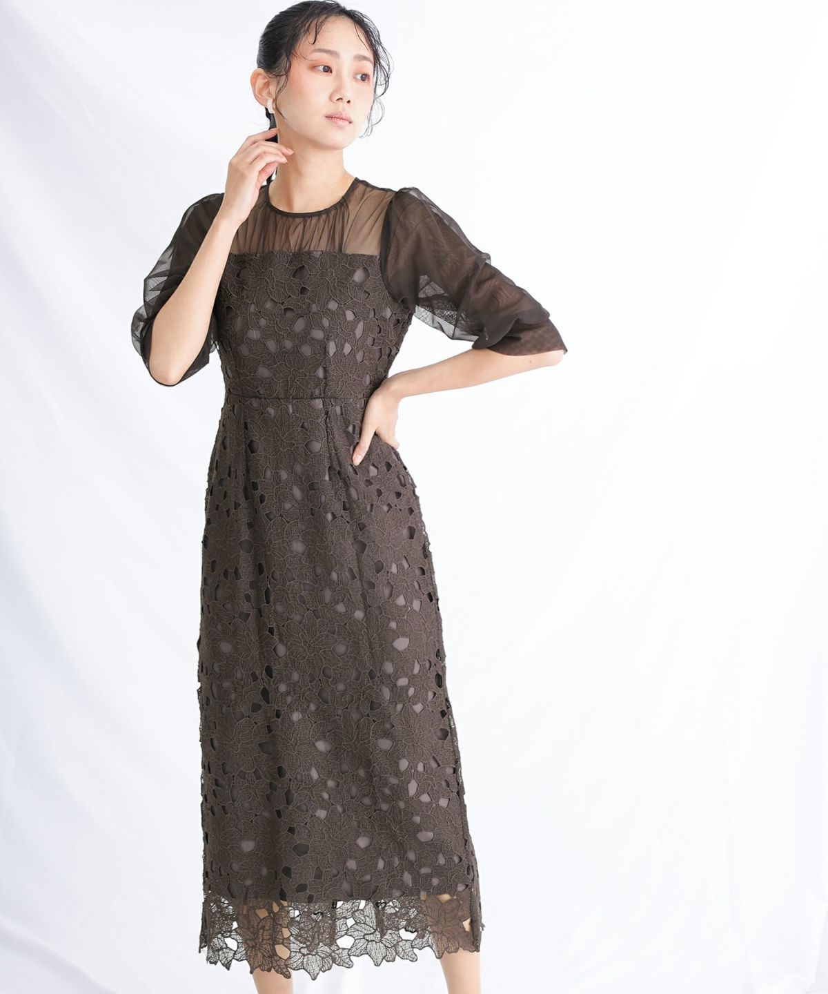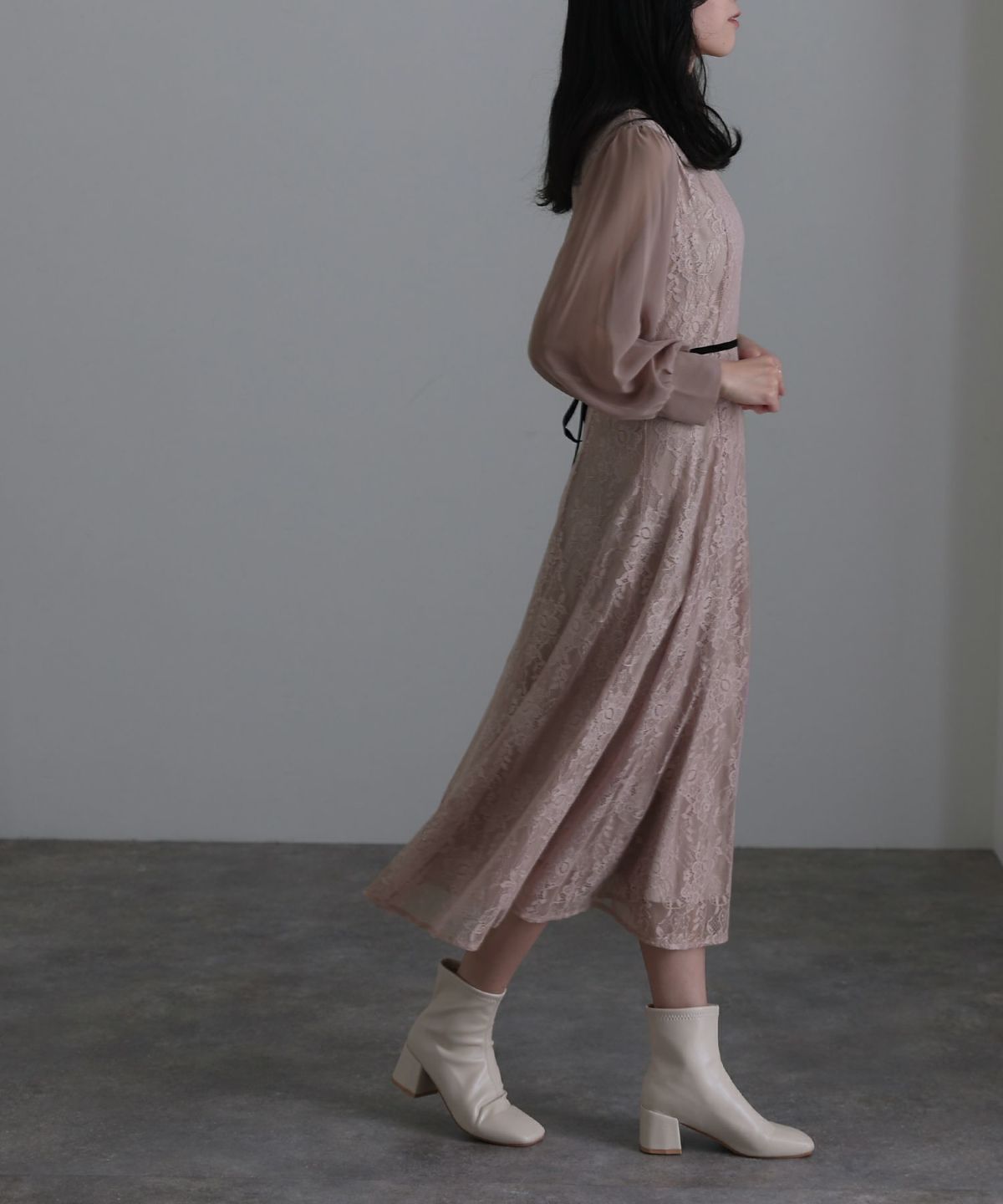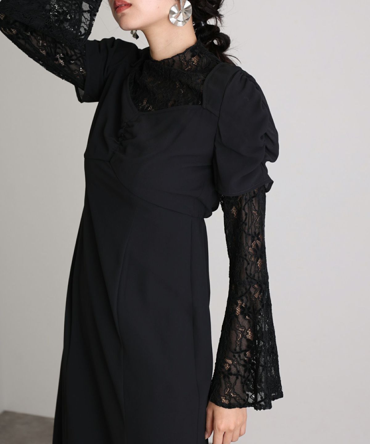 レースとオーガンジー素材の組み合わせが華やか レースレイヤードワンピ―ス