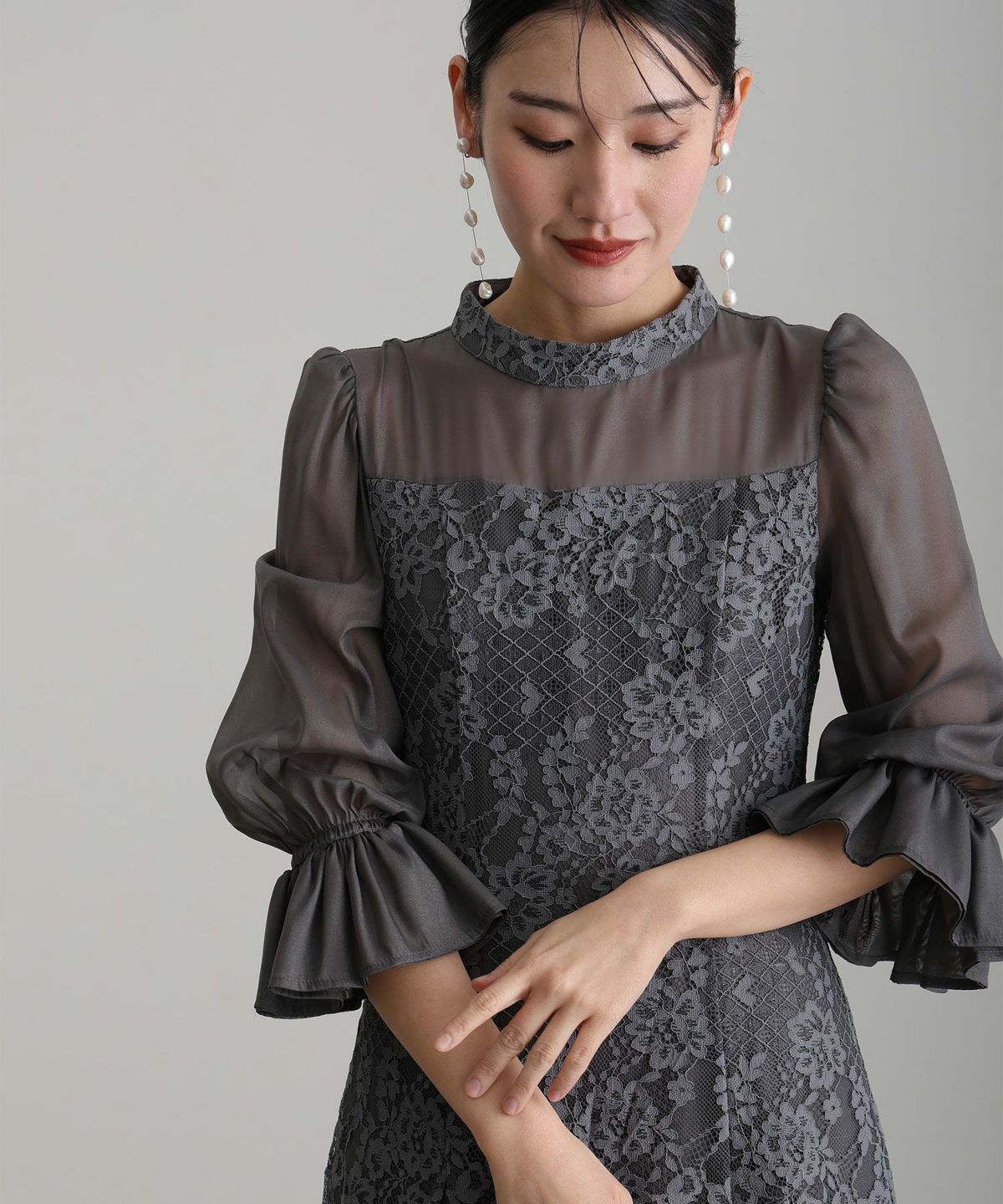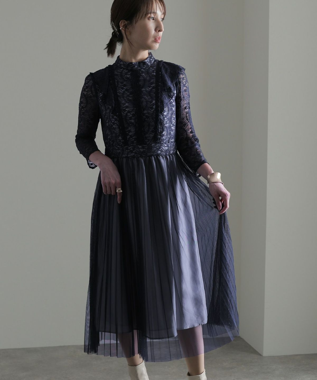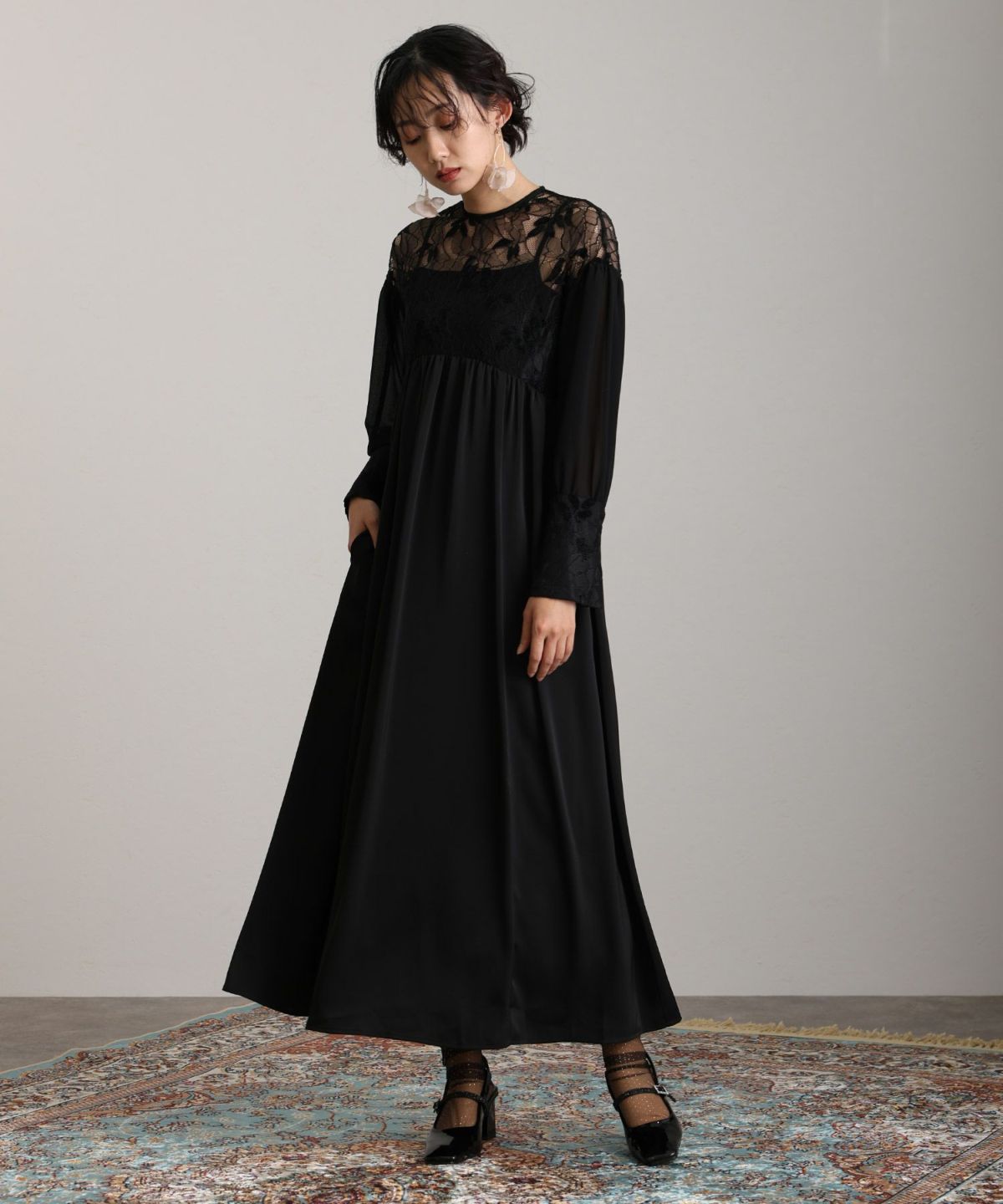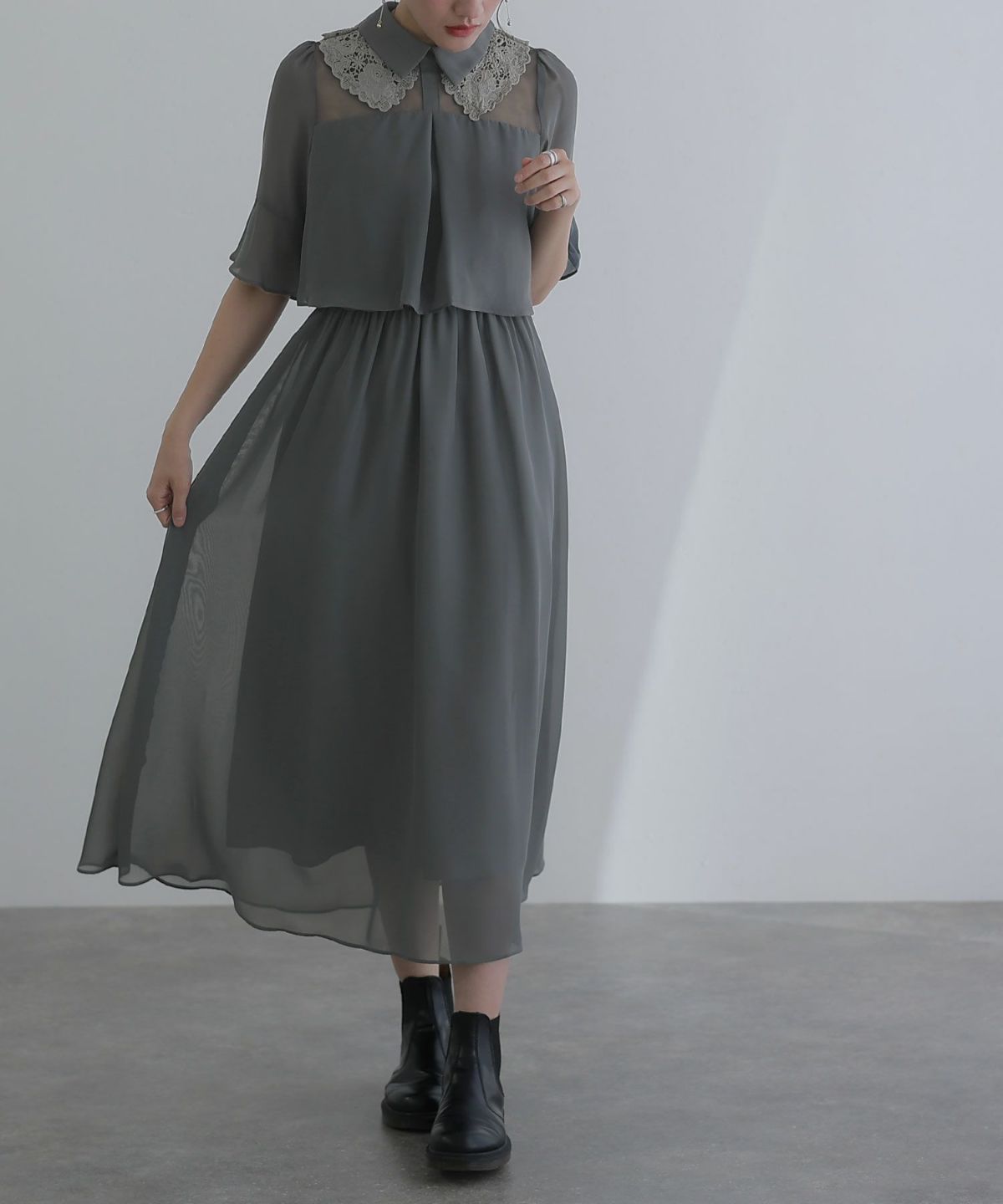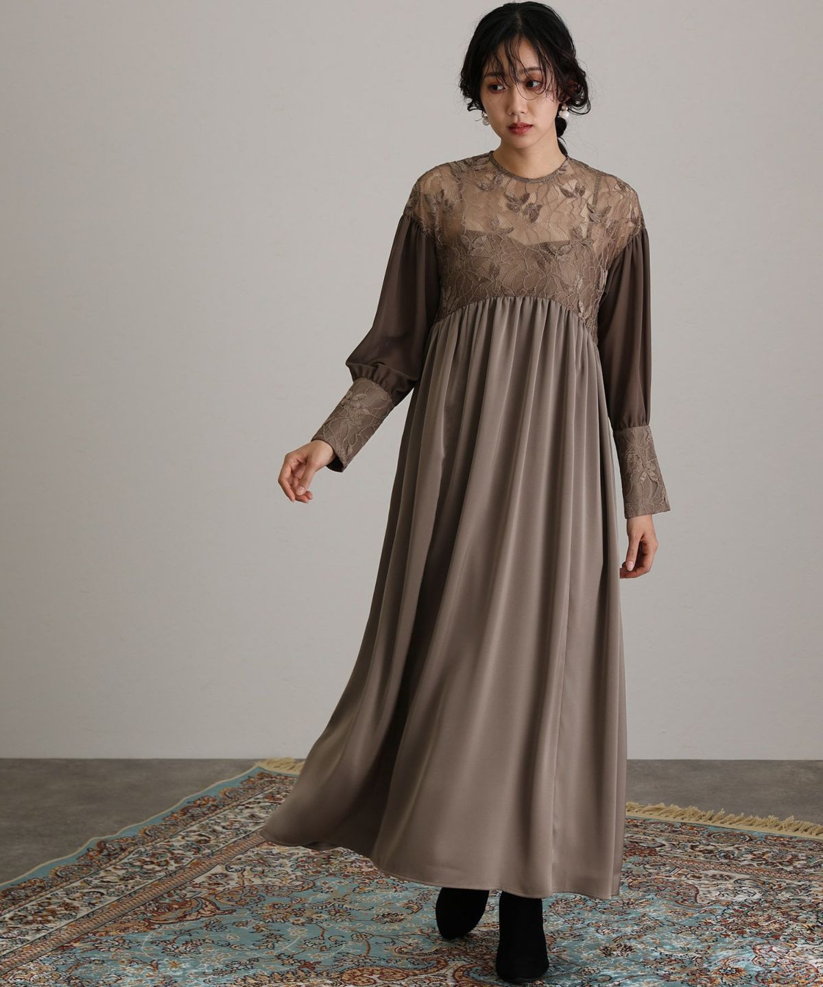 レースとオーガンジー素材の組み合わせが華やか レースレイヤードワンピ―ス