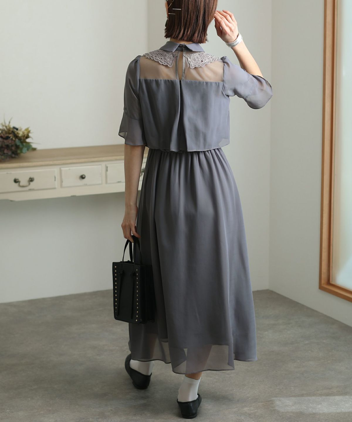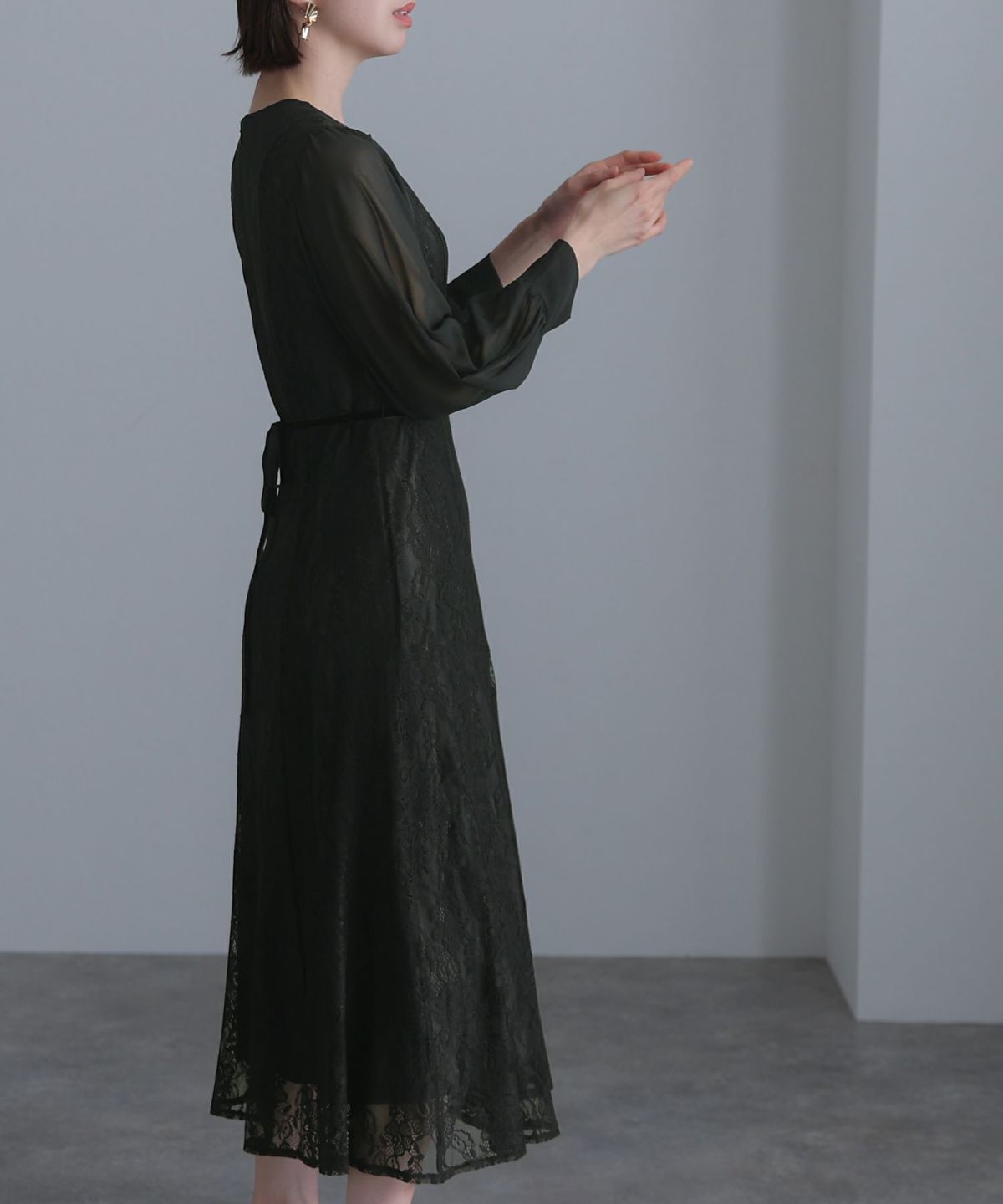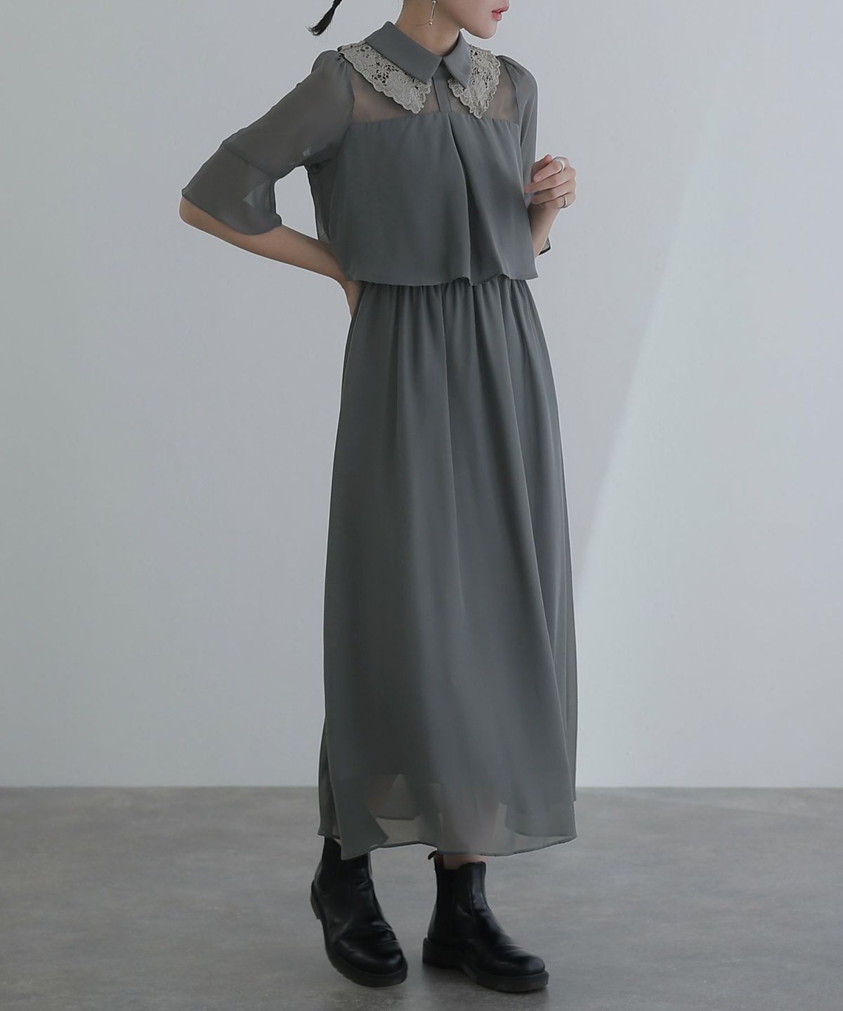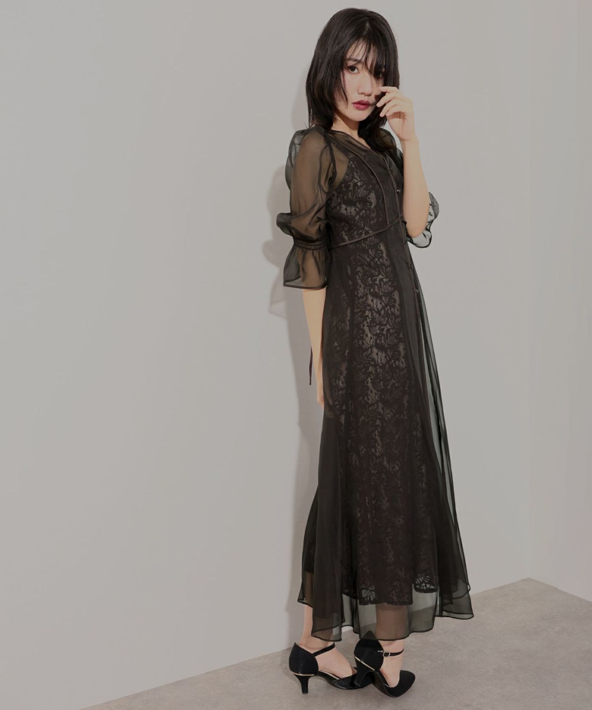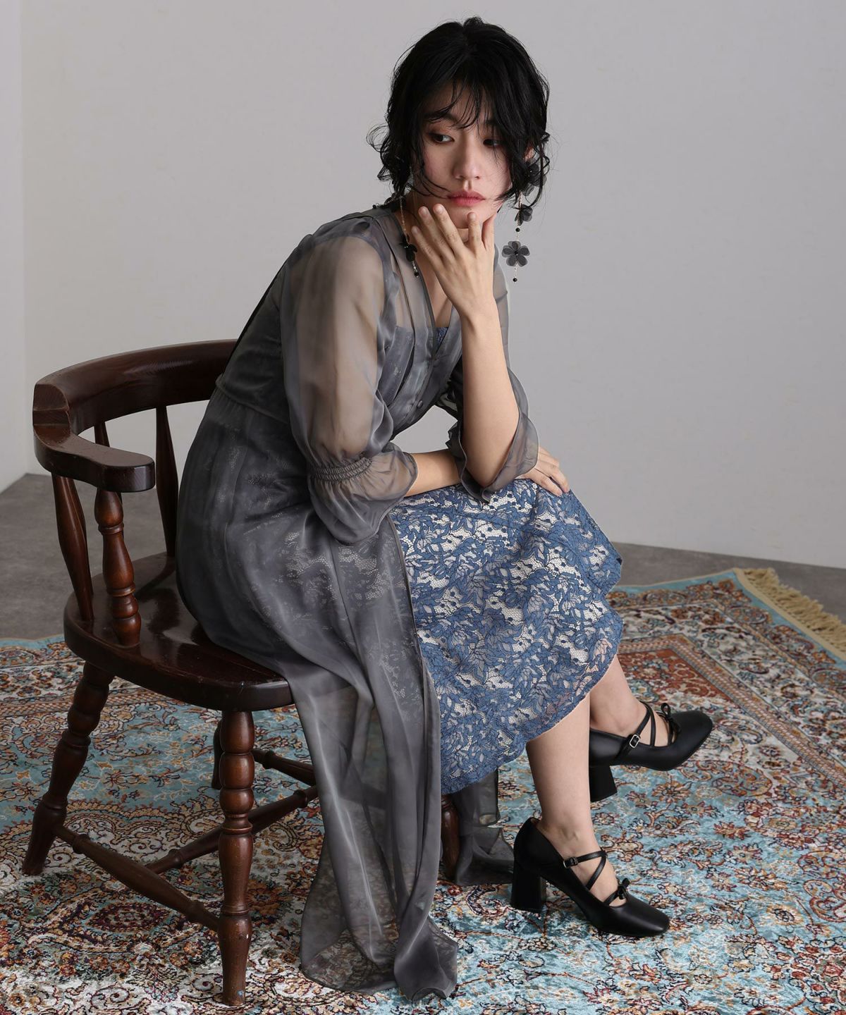 レースとオーガンジー素材の組み合わせが華やか レースレイヤードワンピ―ス
