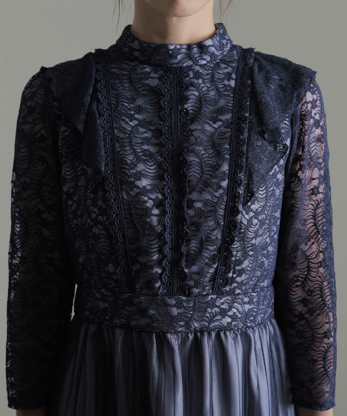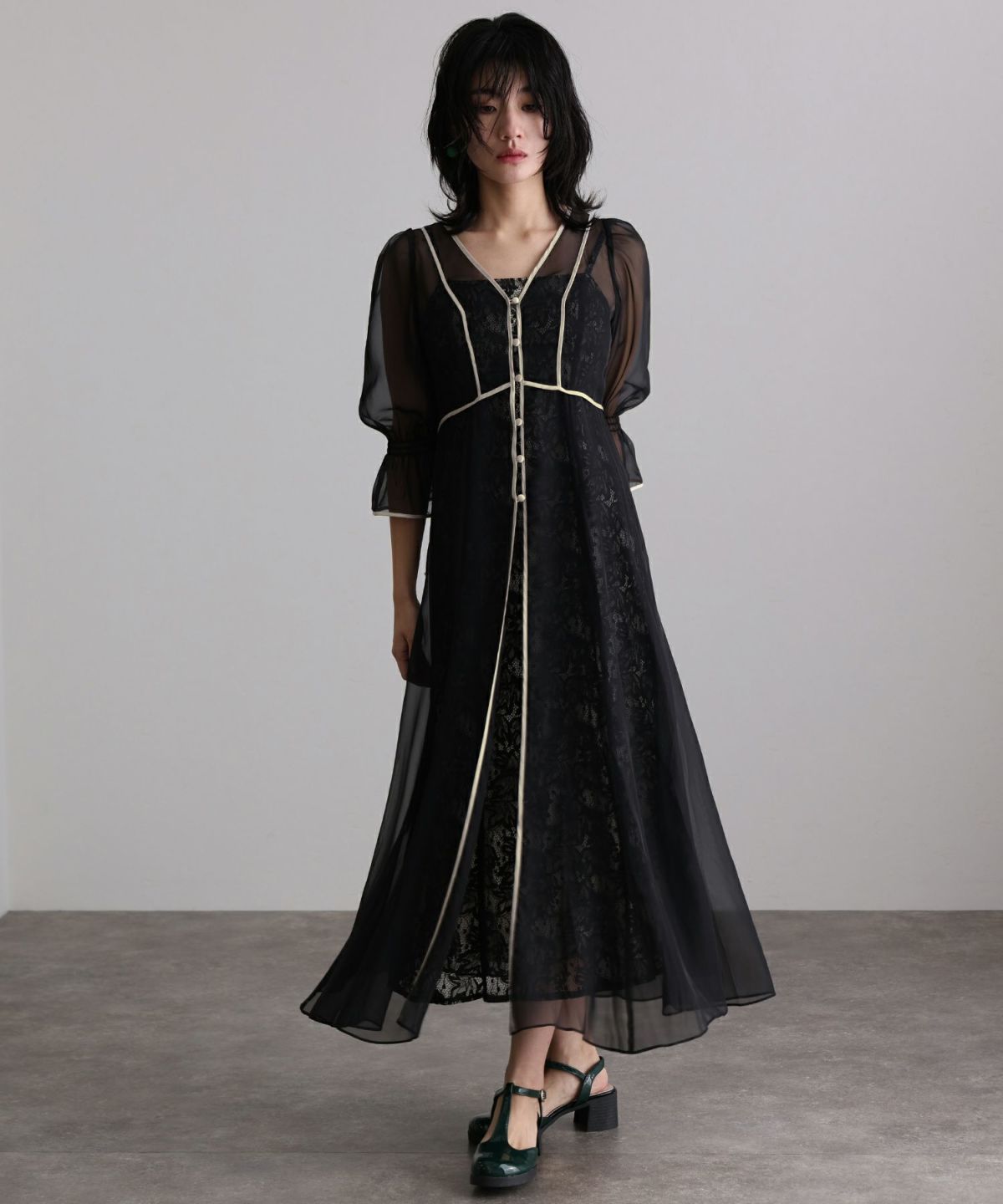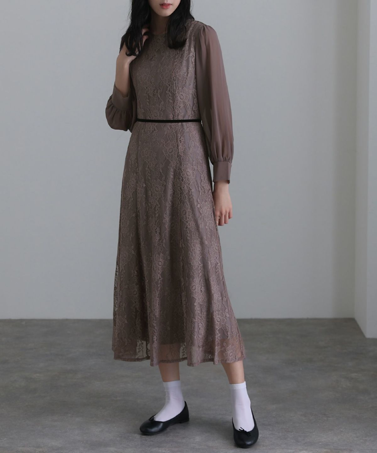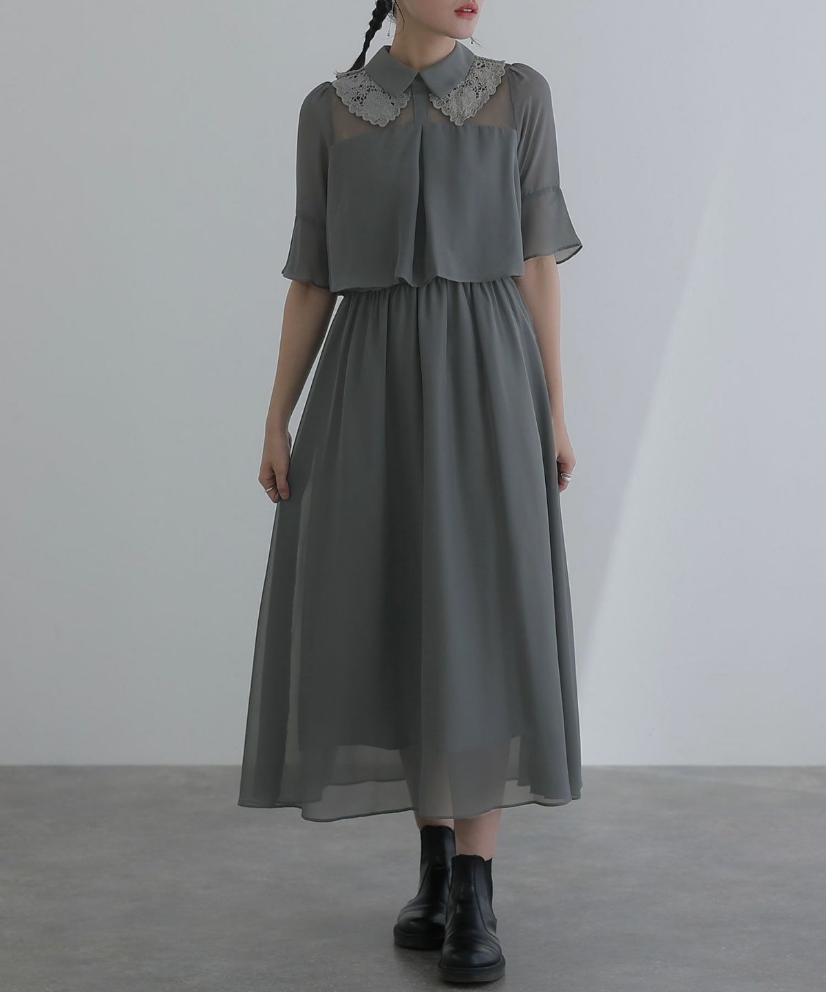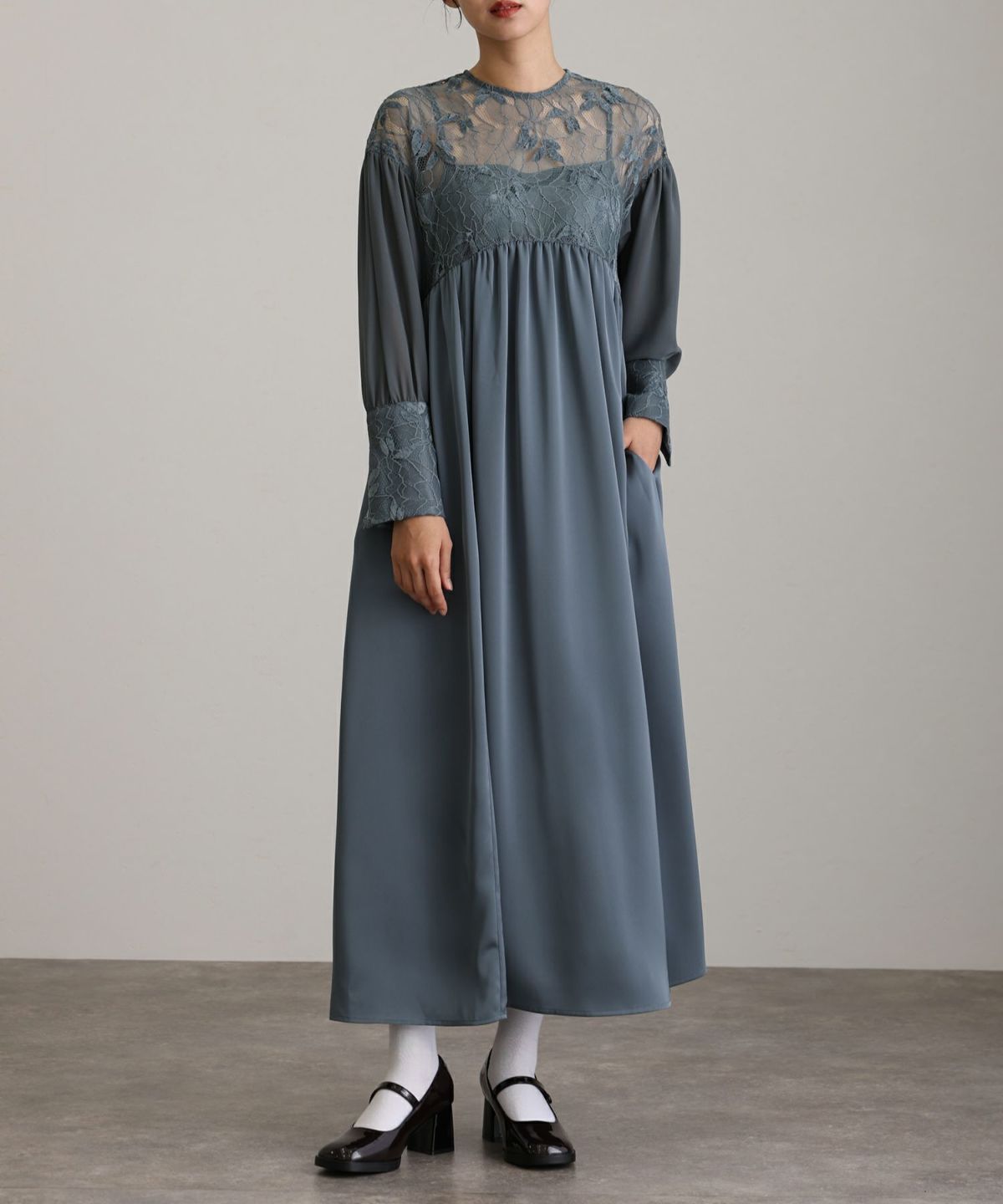 レースとオーガンジー素材の組み合わせが華やか レースレイヤードワンピ―ス