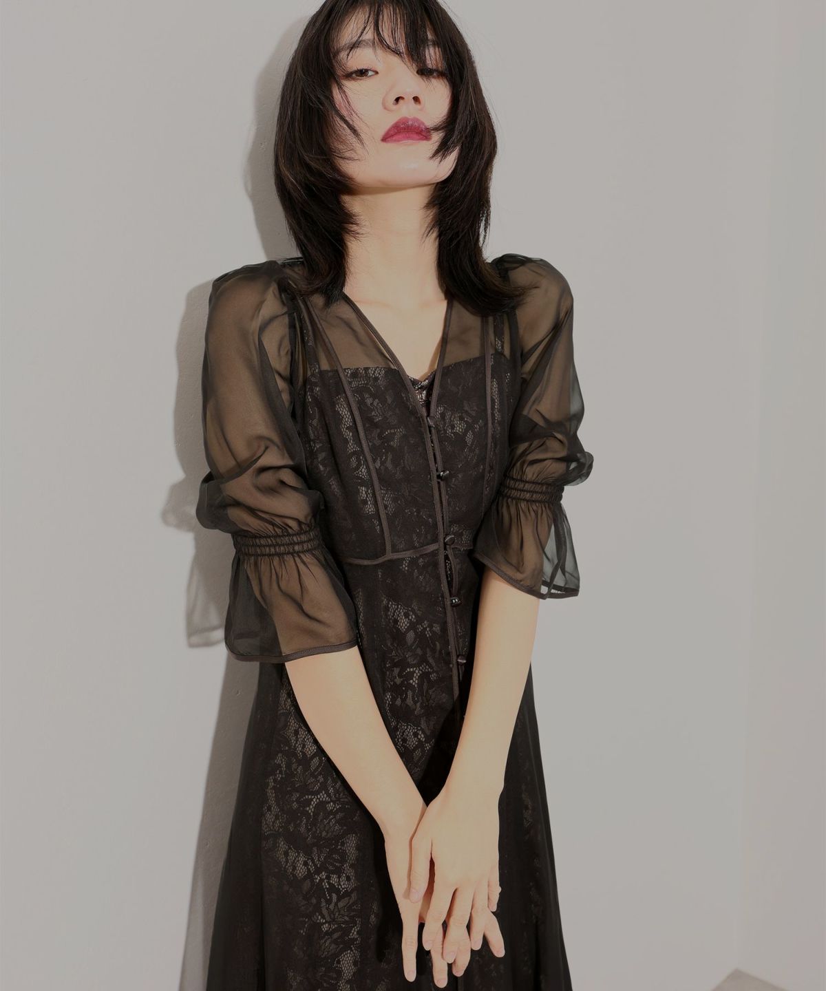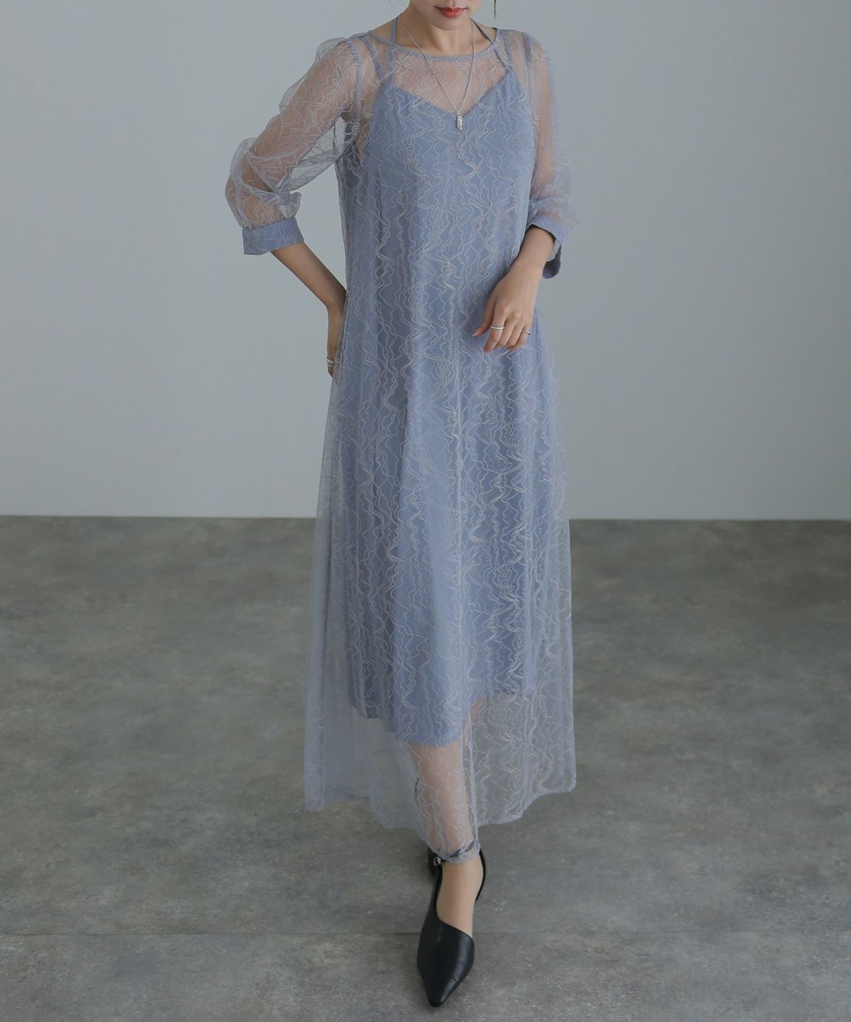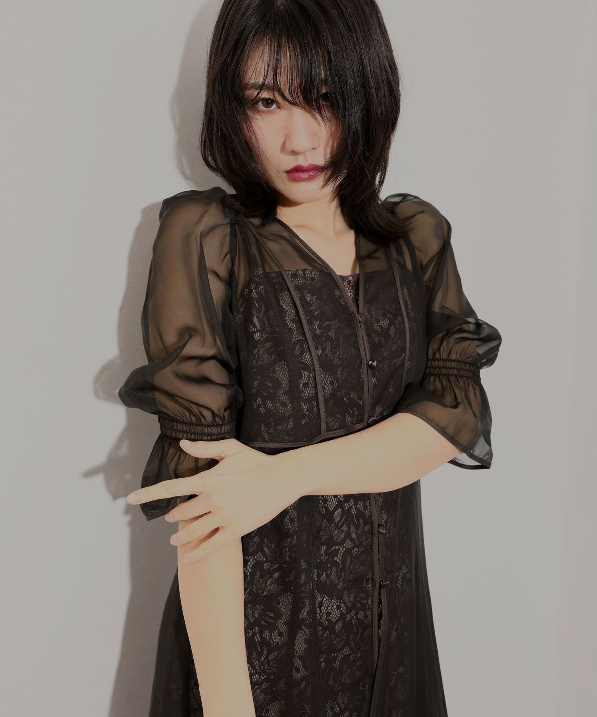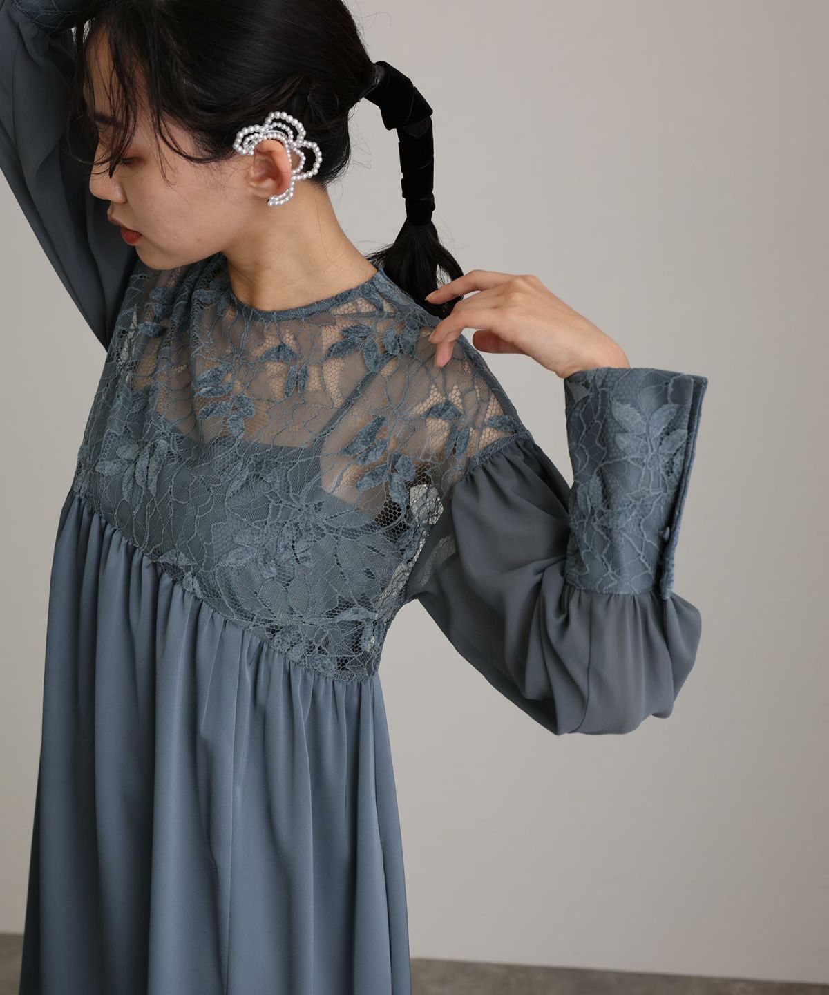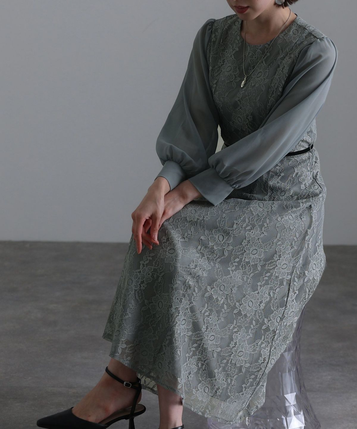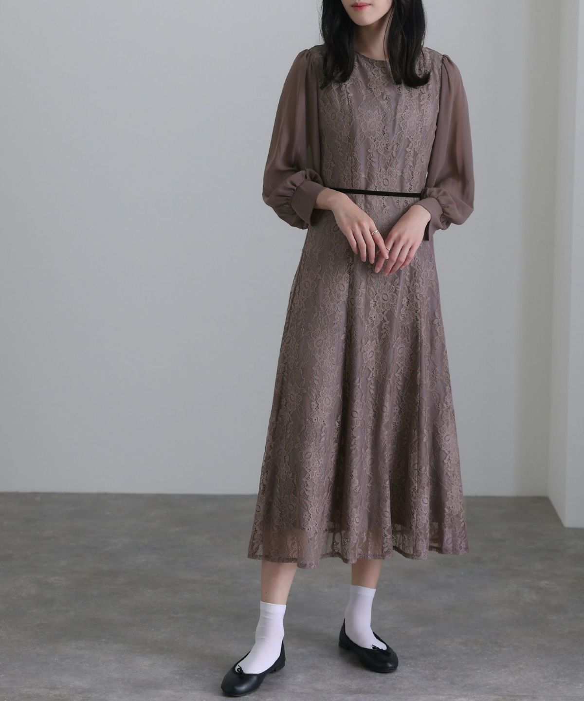 レースとオーガンジー素材の組み合わせが華やか レースレイヤードワンピ―ス
