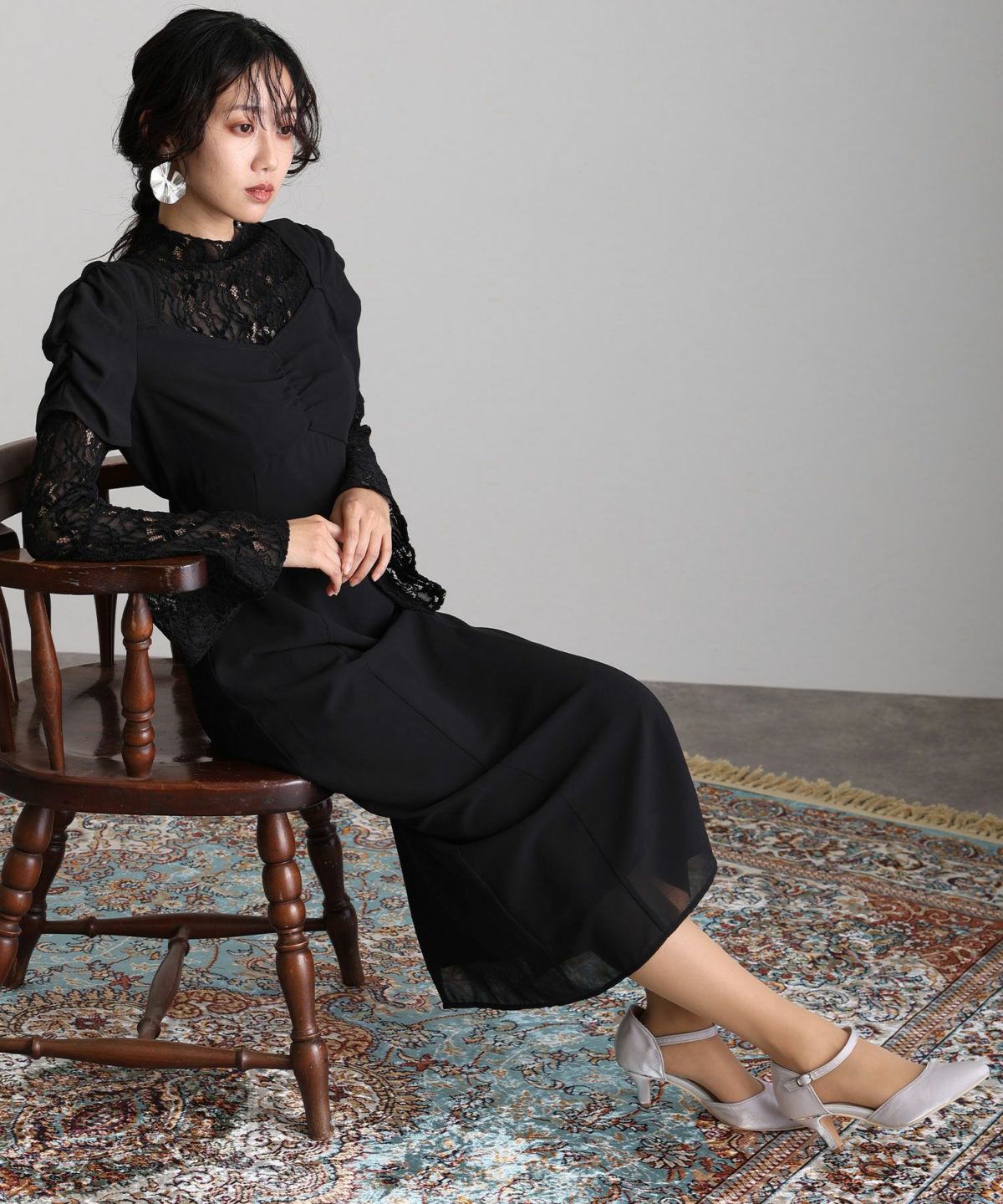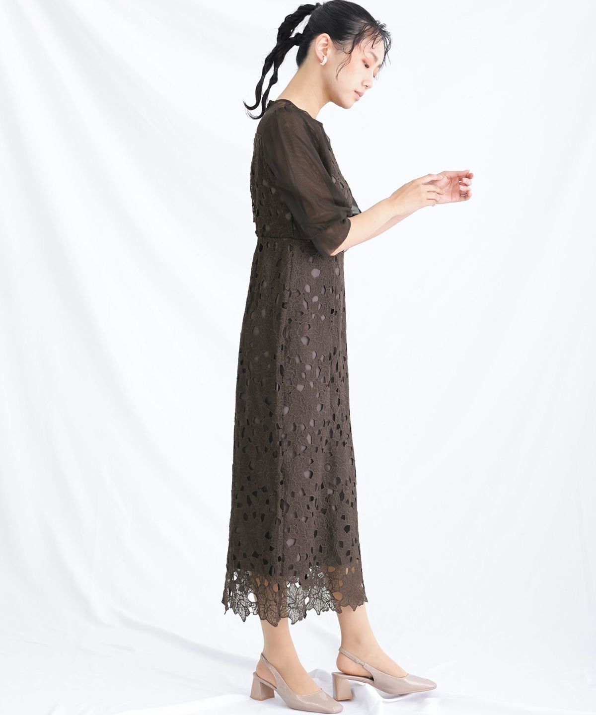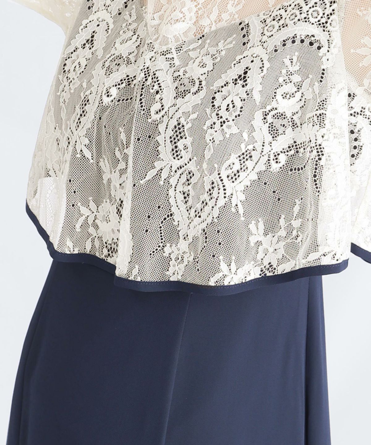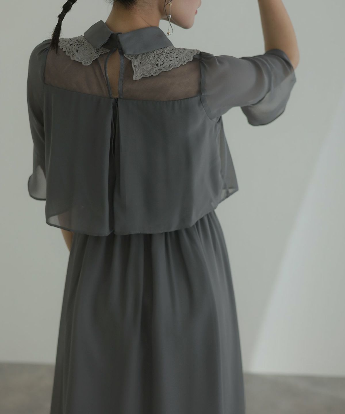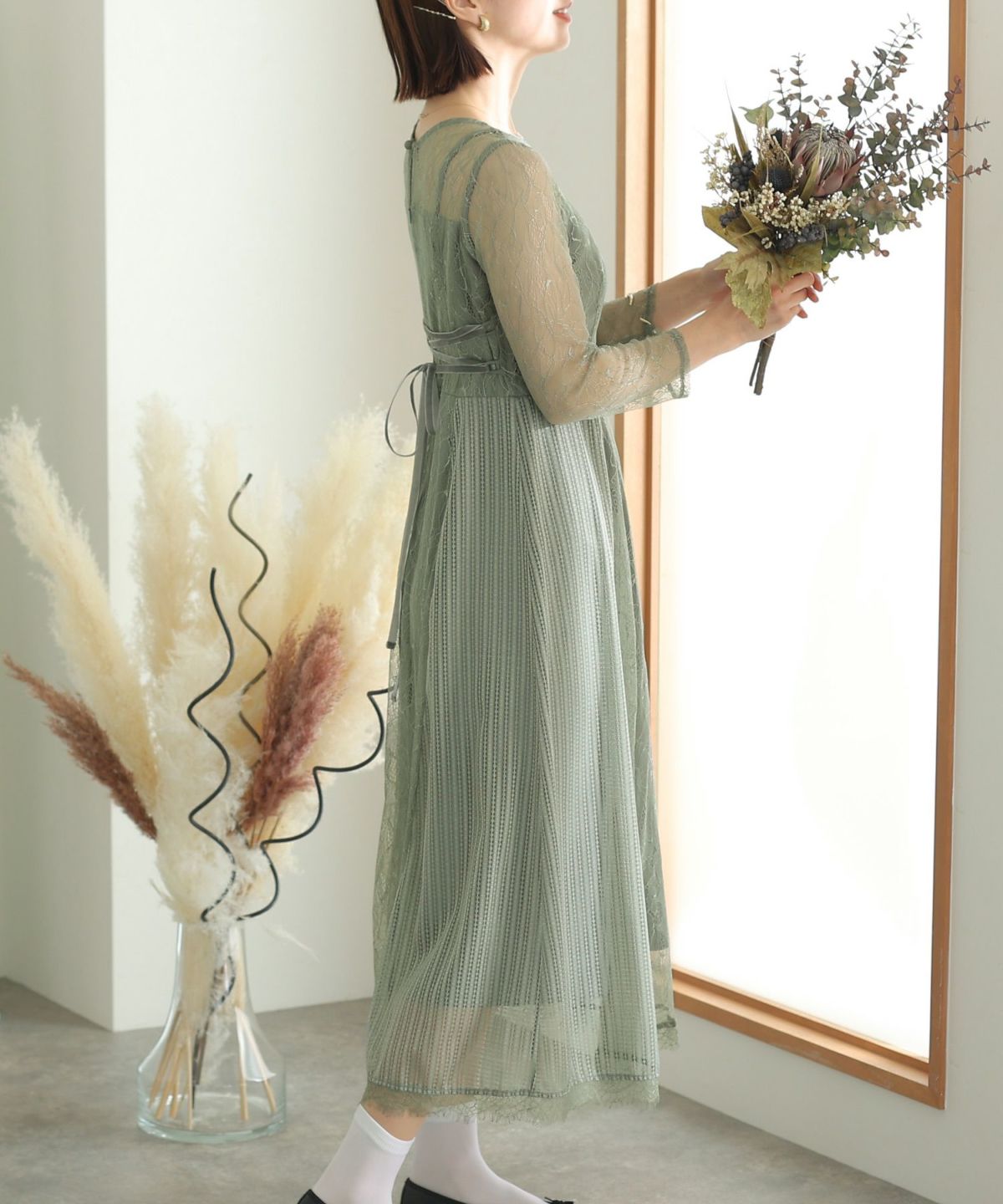 レースとオーガンジー素材の組み合わせが華やか レースレイヤードワンピ―ス