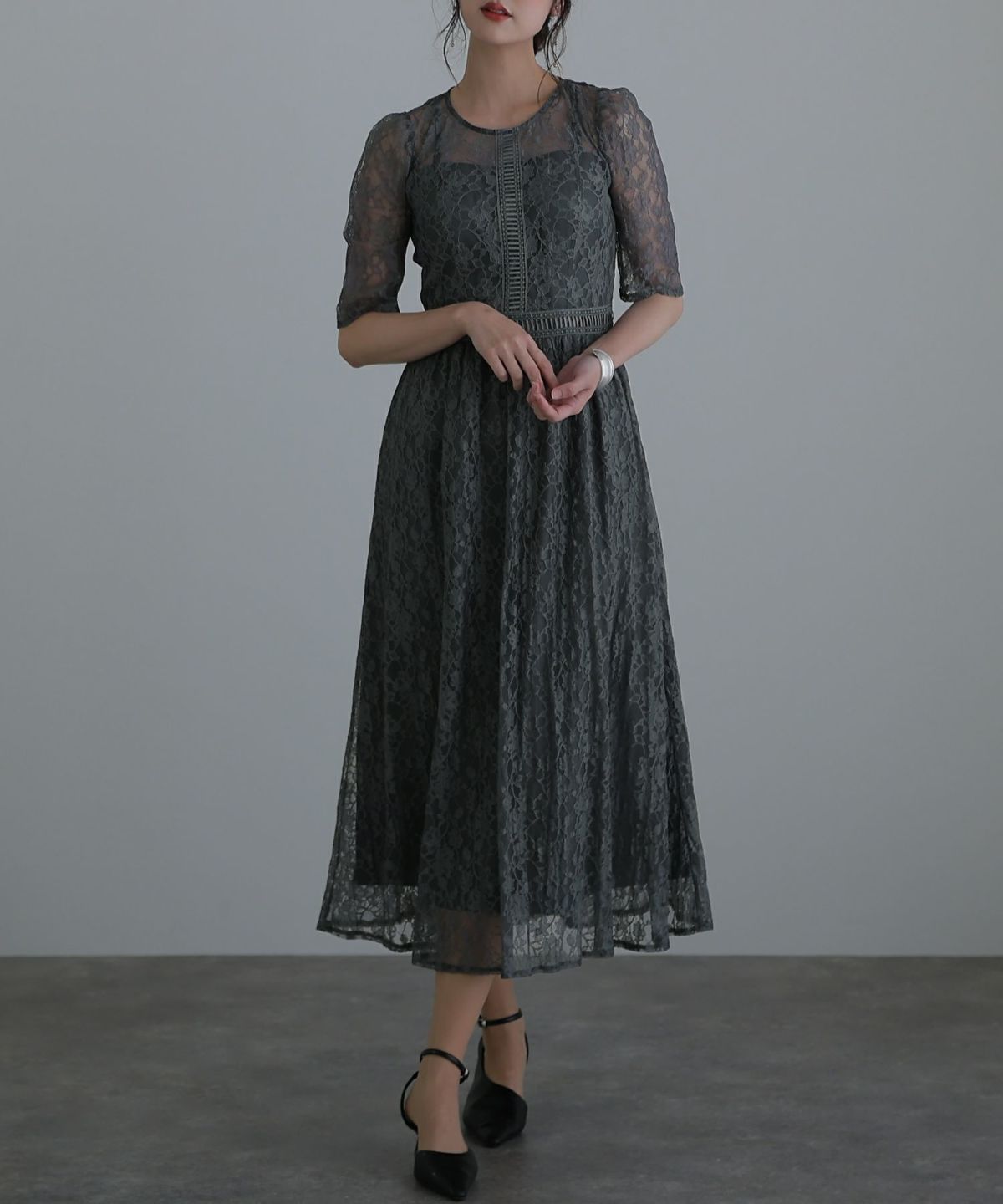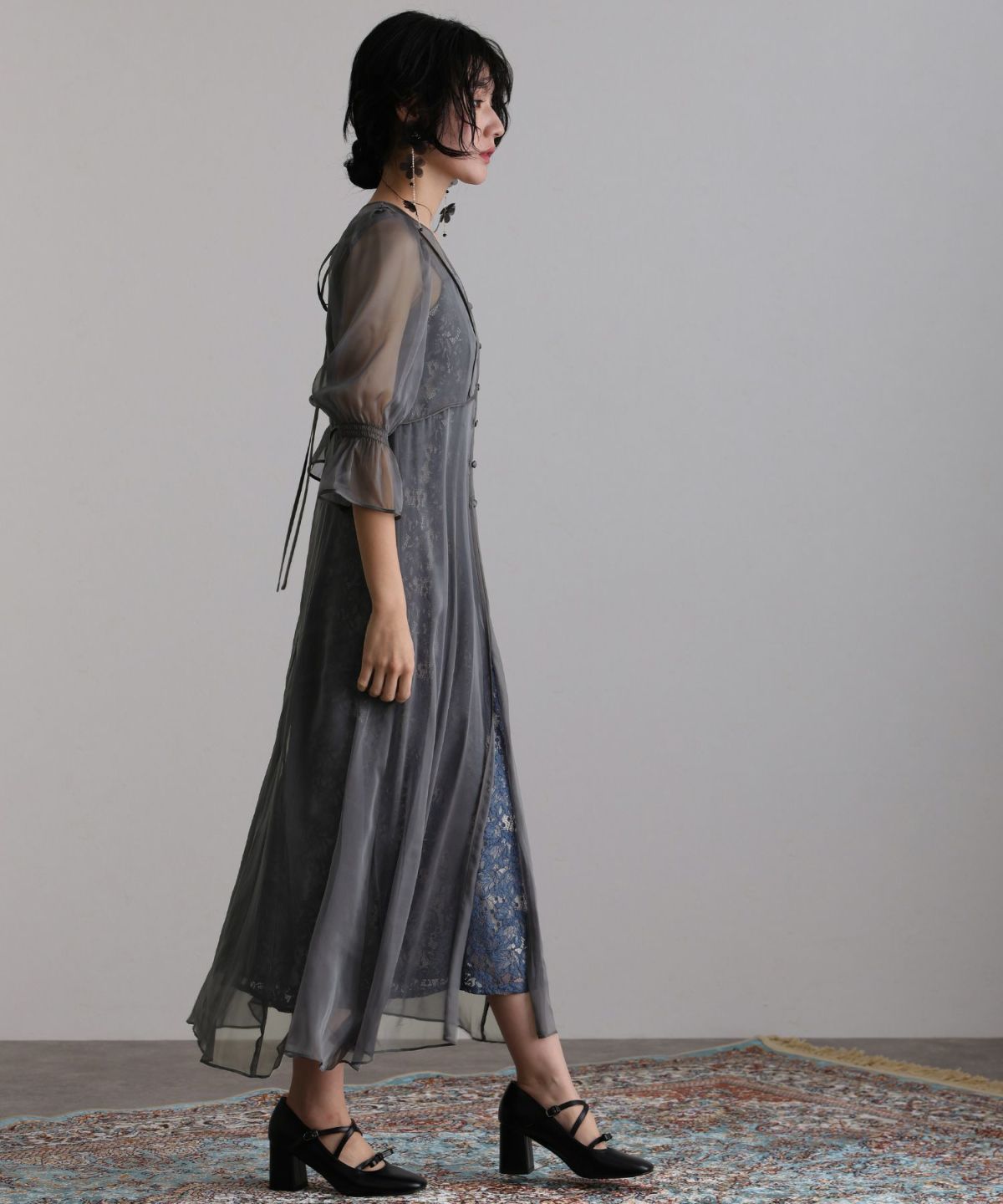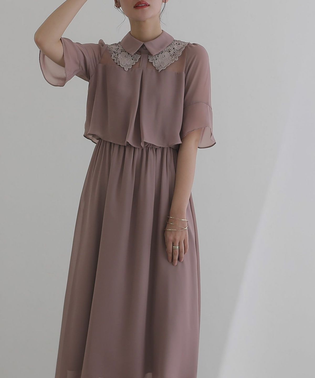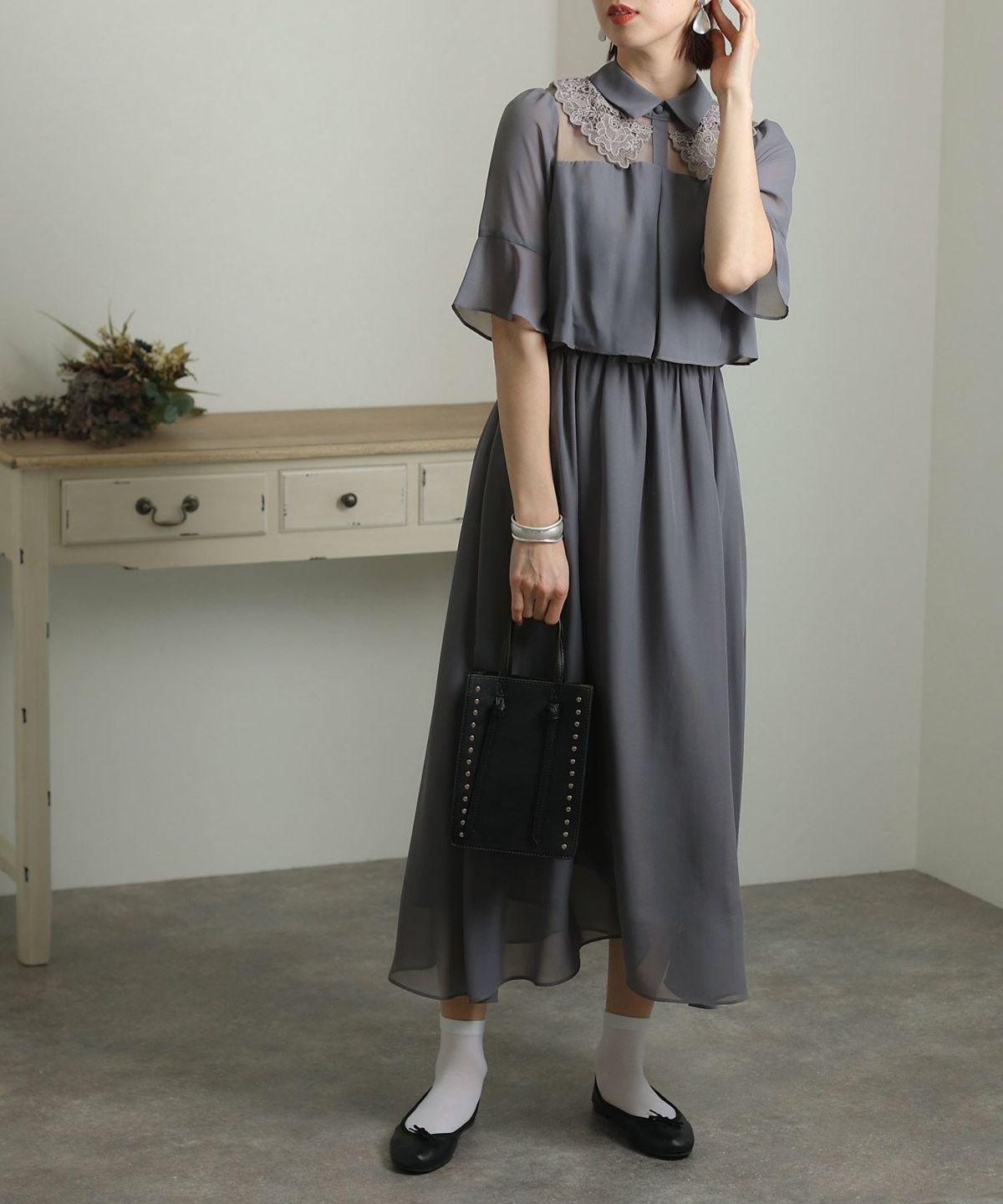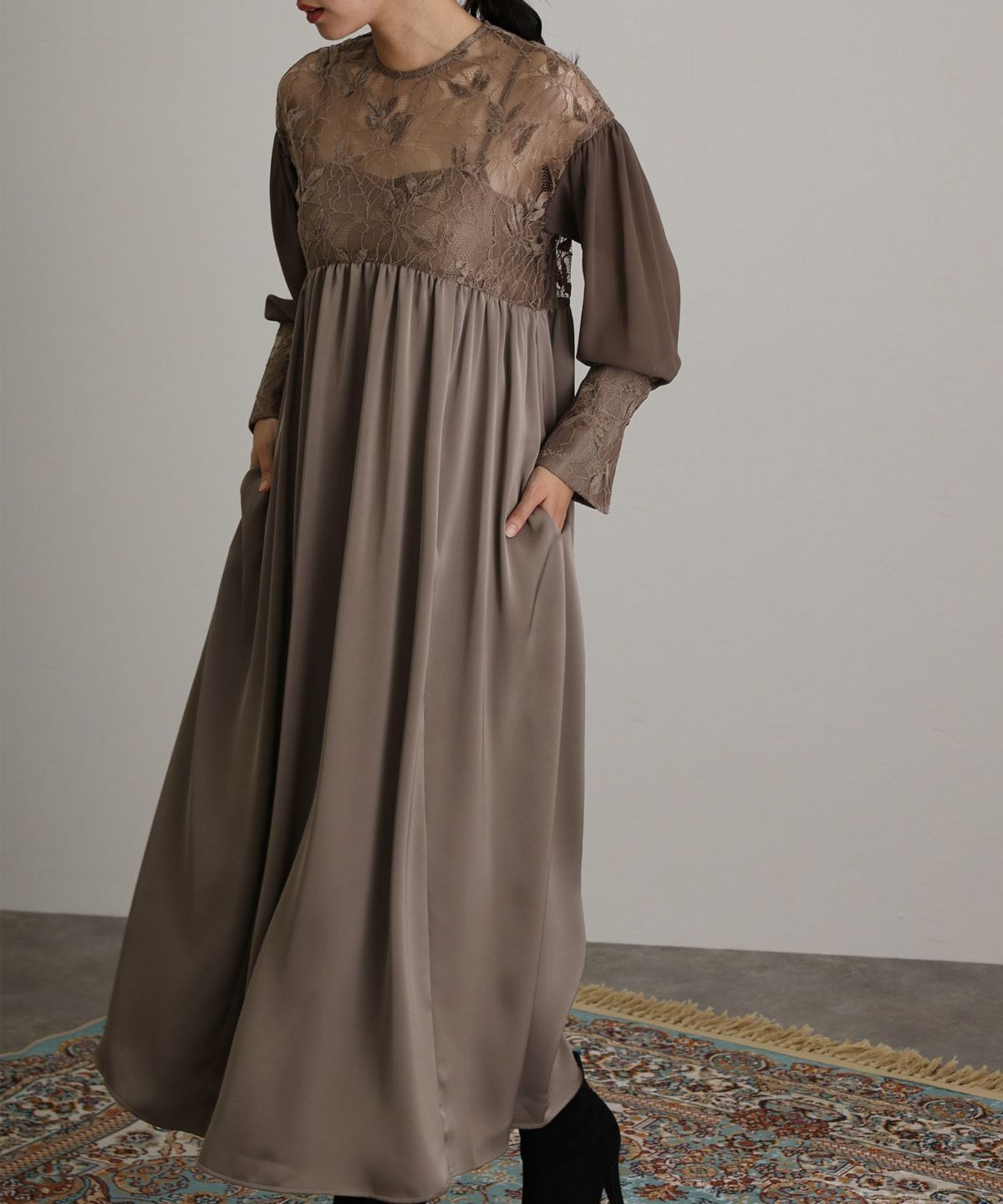 レースとオーガンジー素材の組み合わせが華やか レースレイヤードワンピ―ス