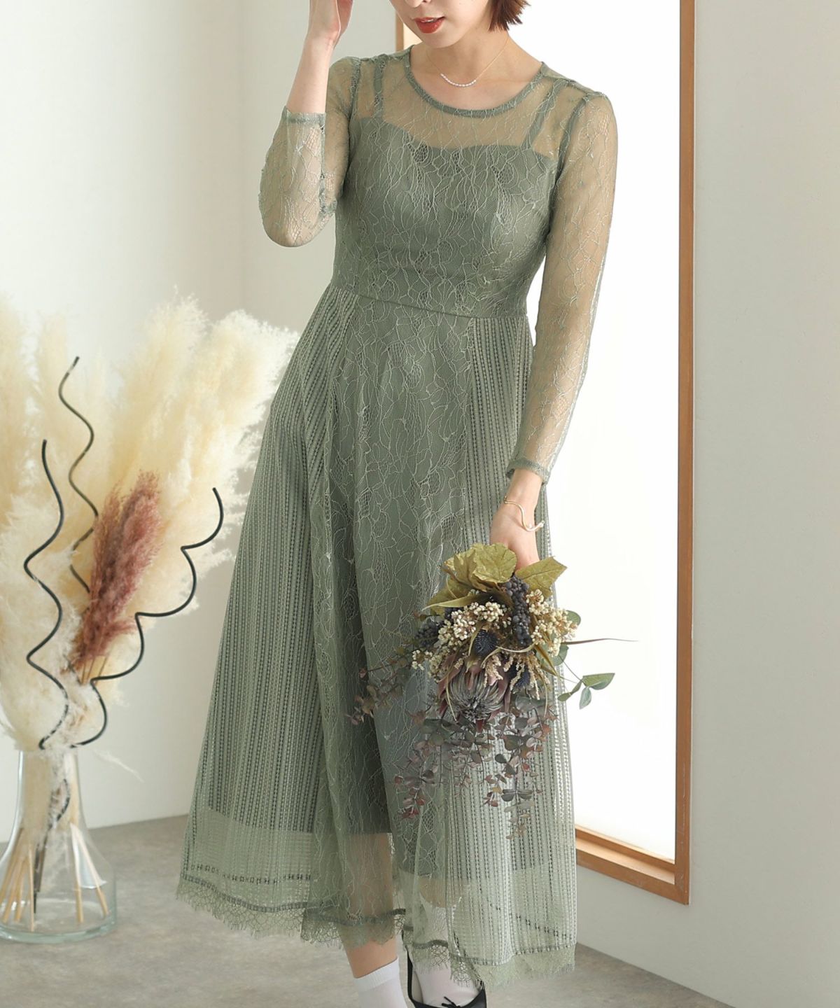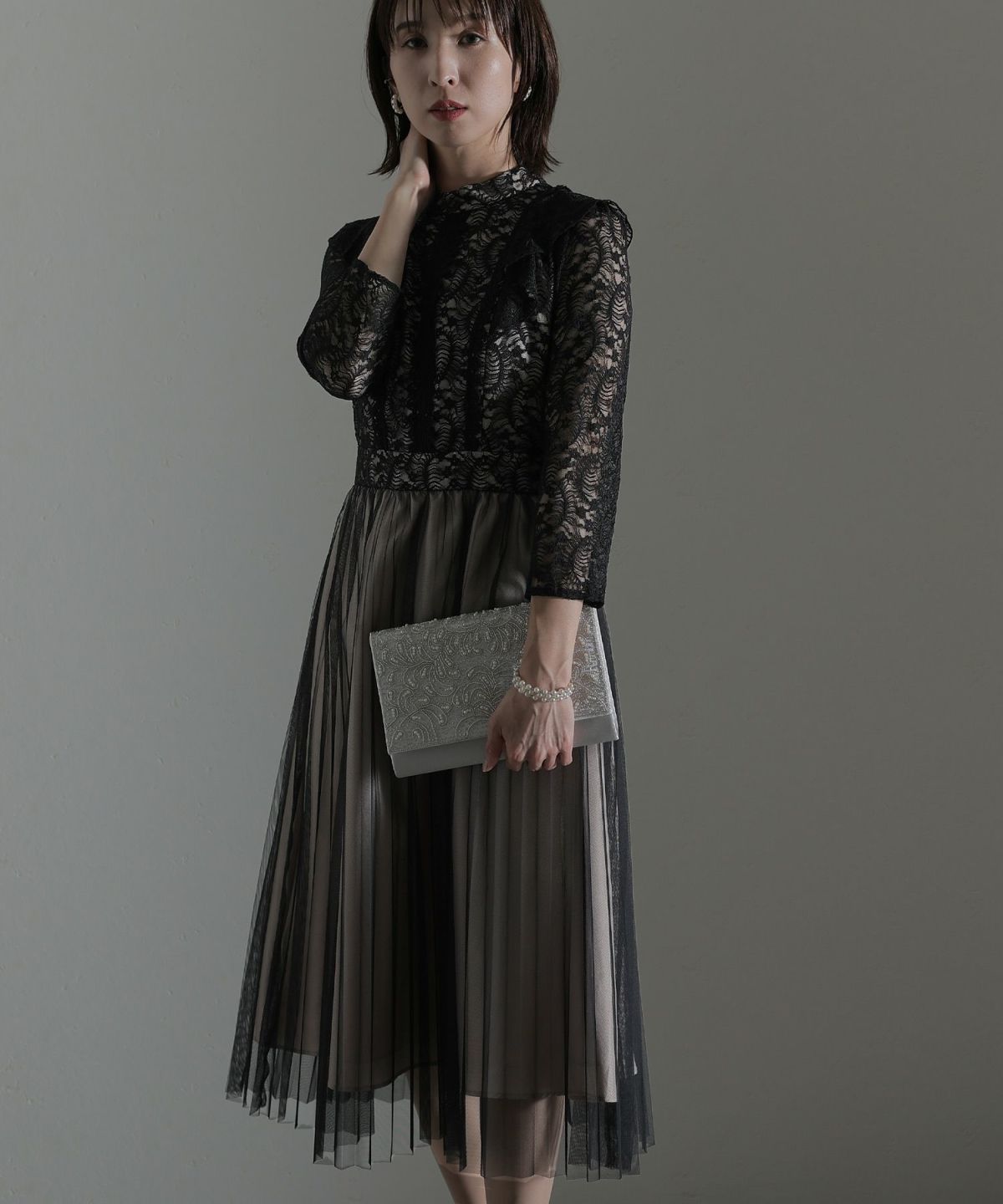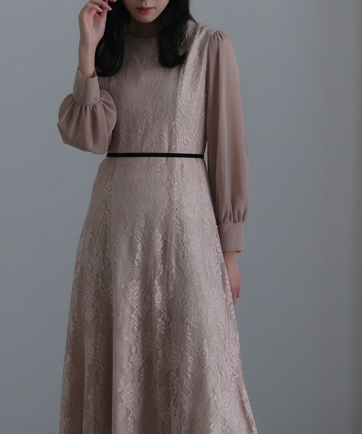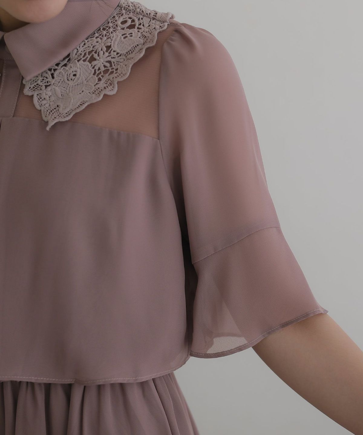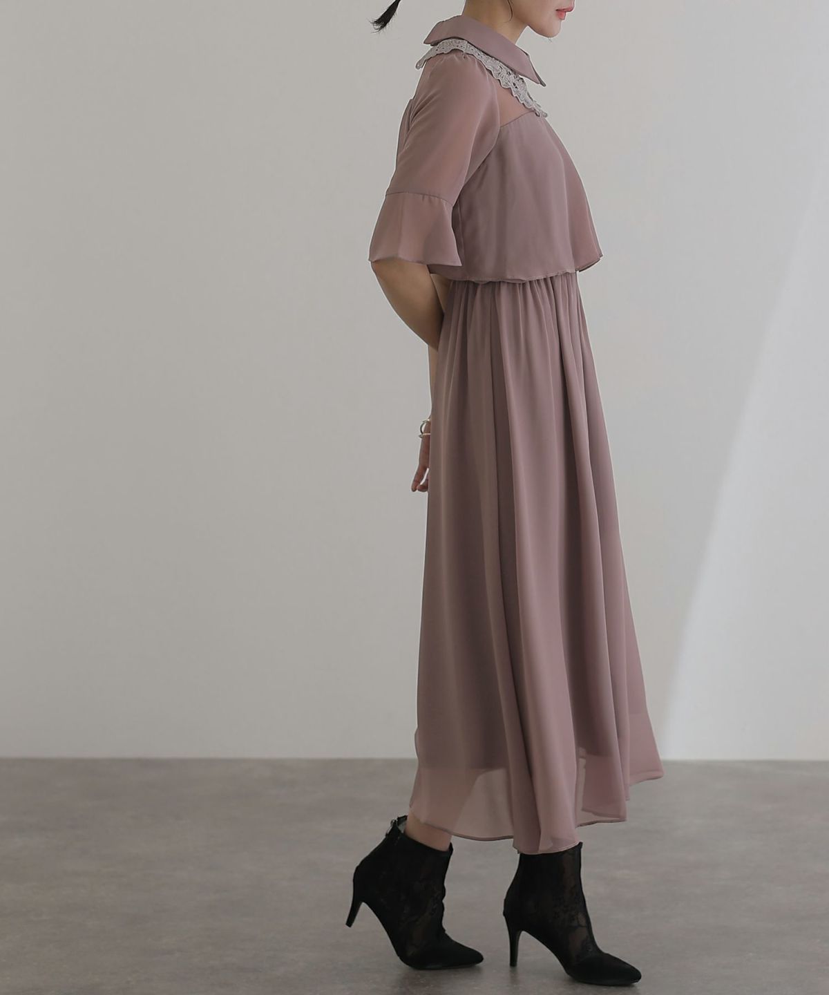 レースとオーガンジー素材の組み合わせが華やか レースレイヤードワンピ―ス
