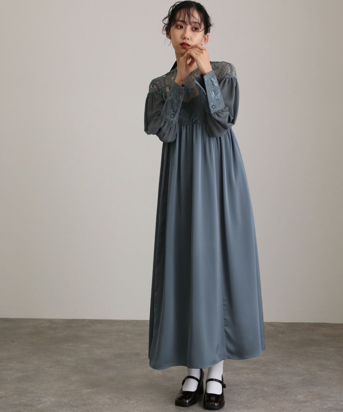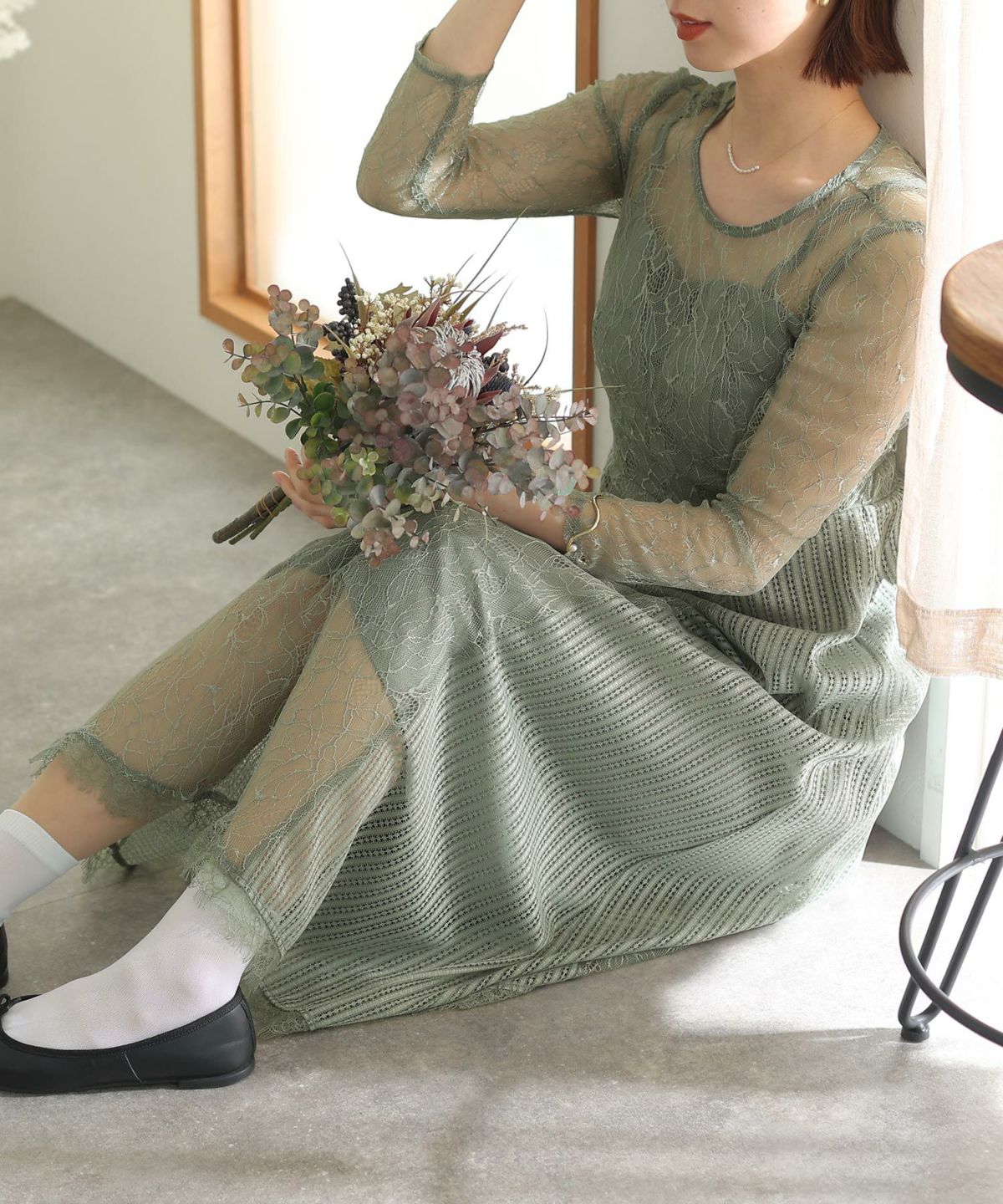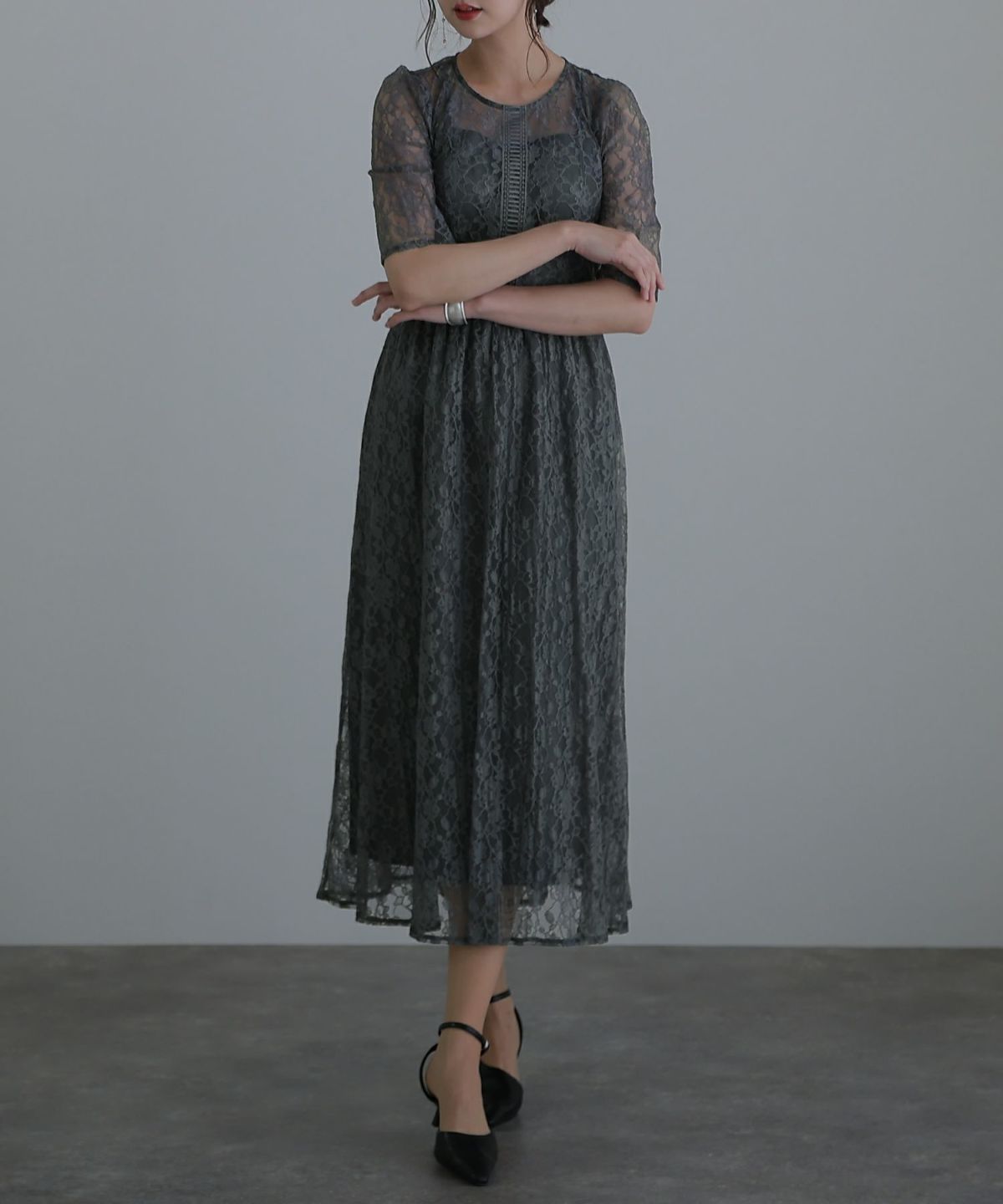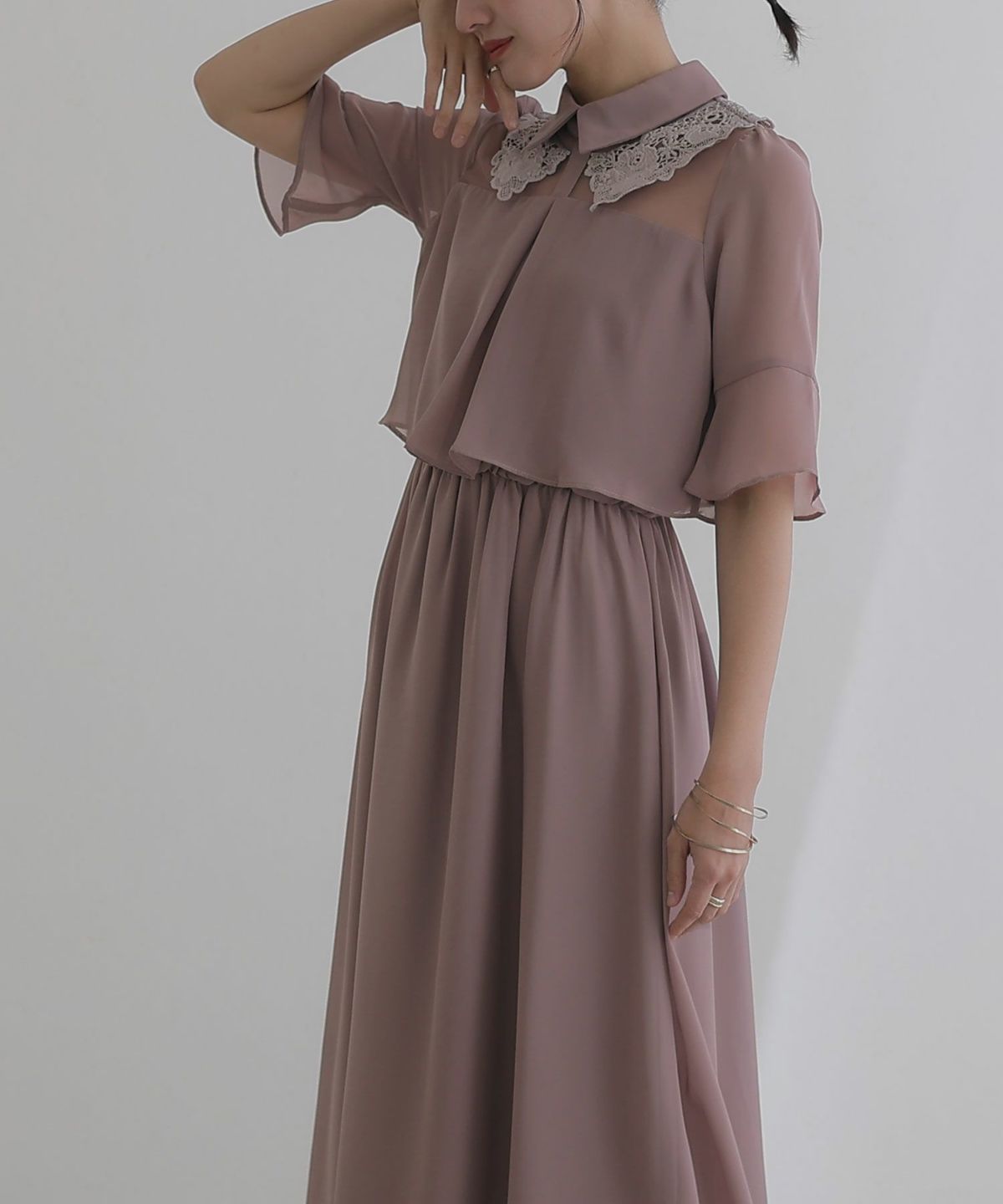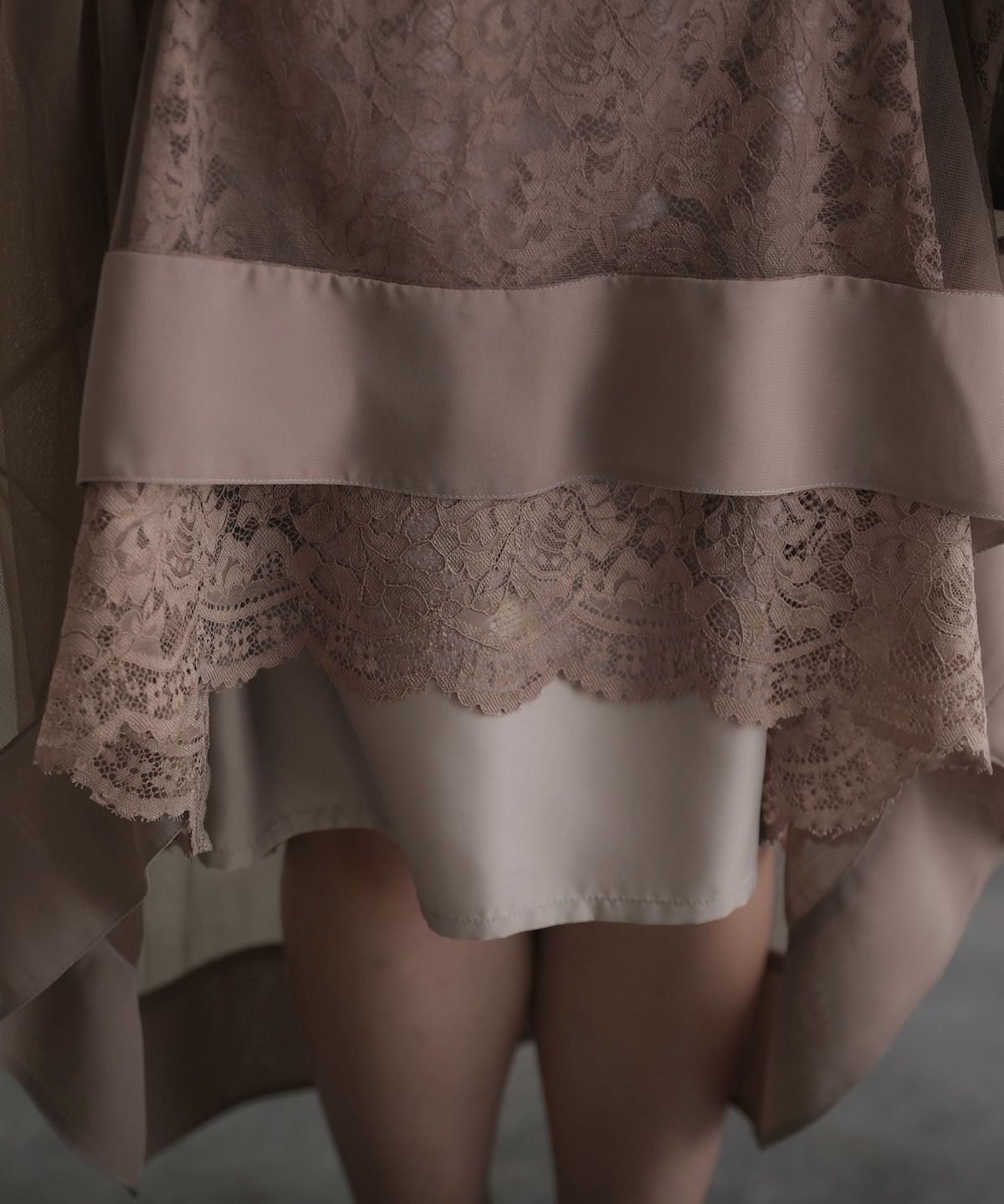 レースとオーガンジー素材の組み合わせが華やか レースレイヤードワンピ―ス