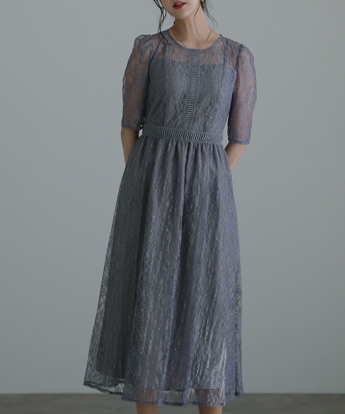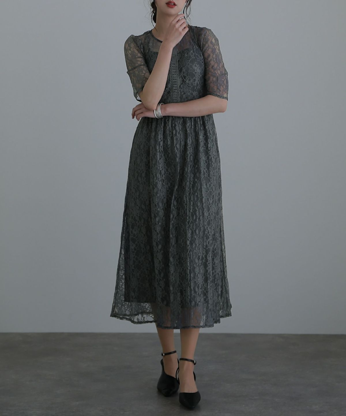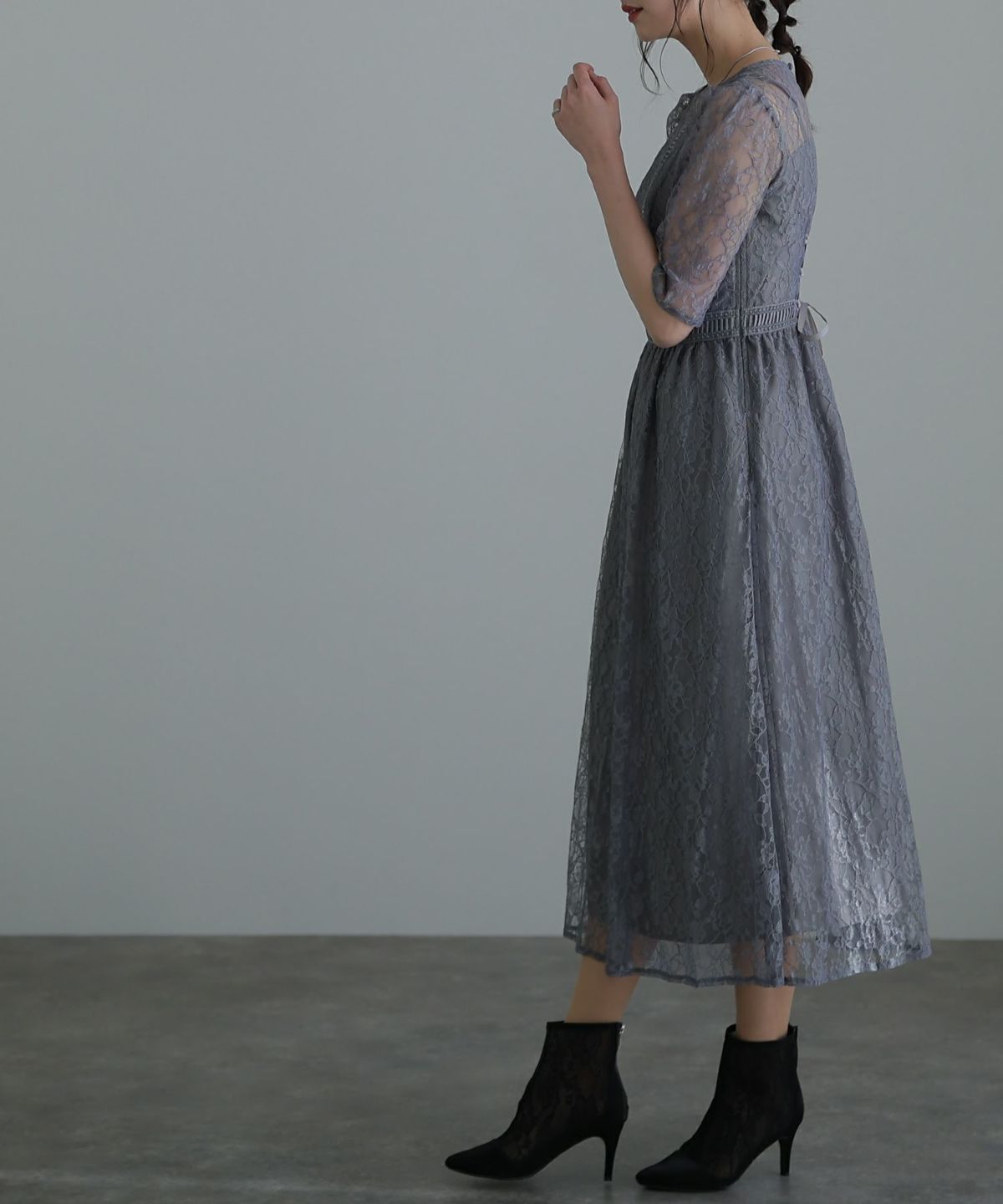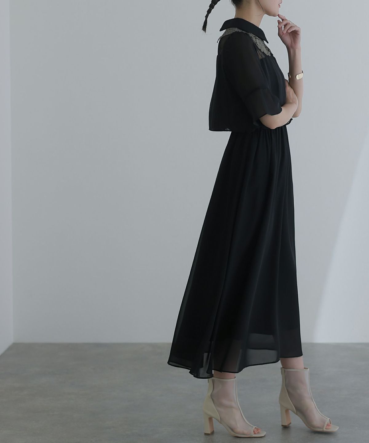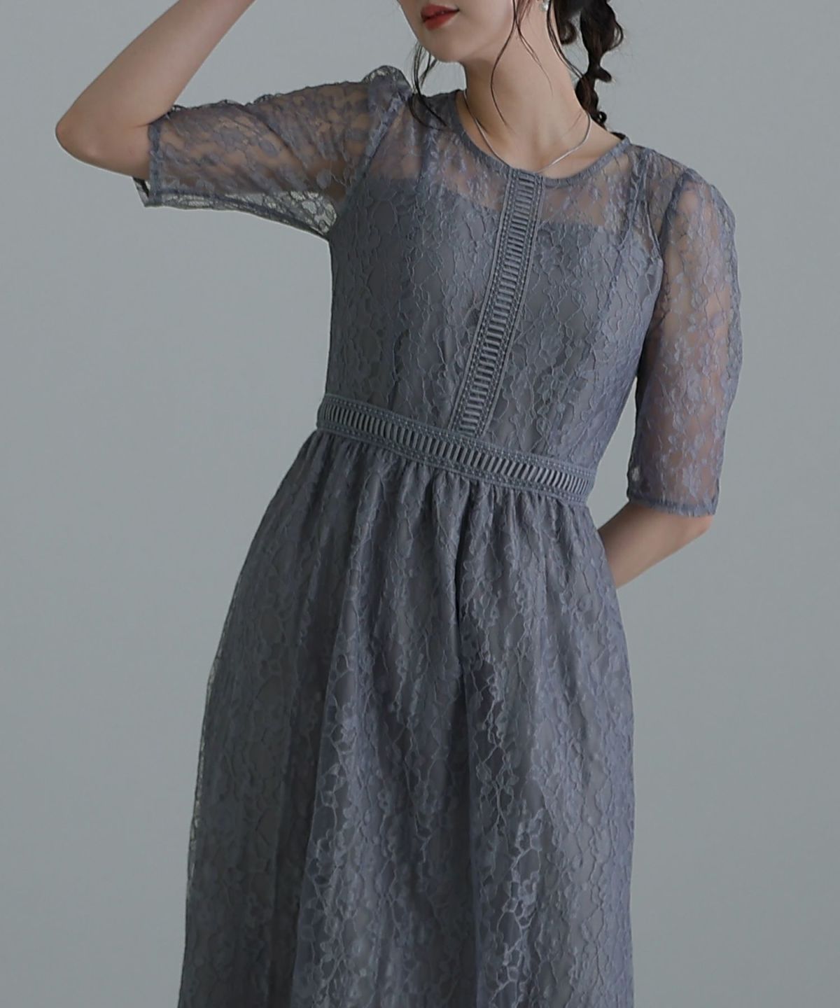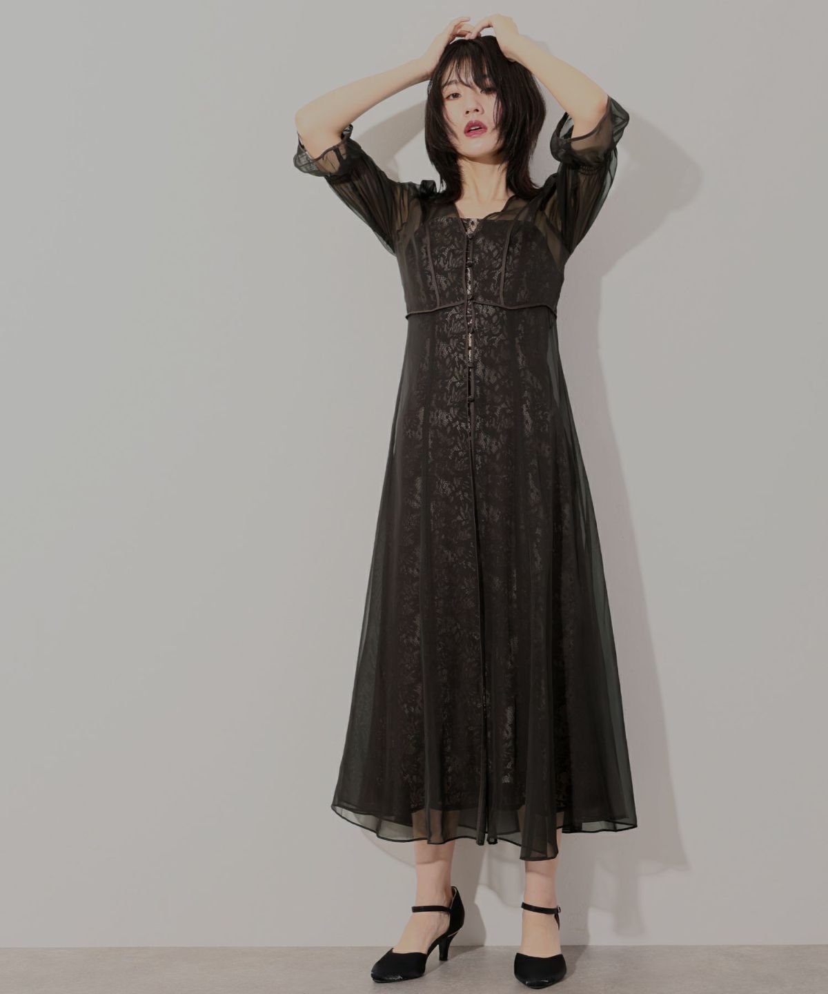 レースとオーガンジー素材の組み合わせが華やか レースレイヤードワンピ―ス