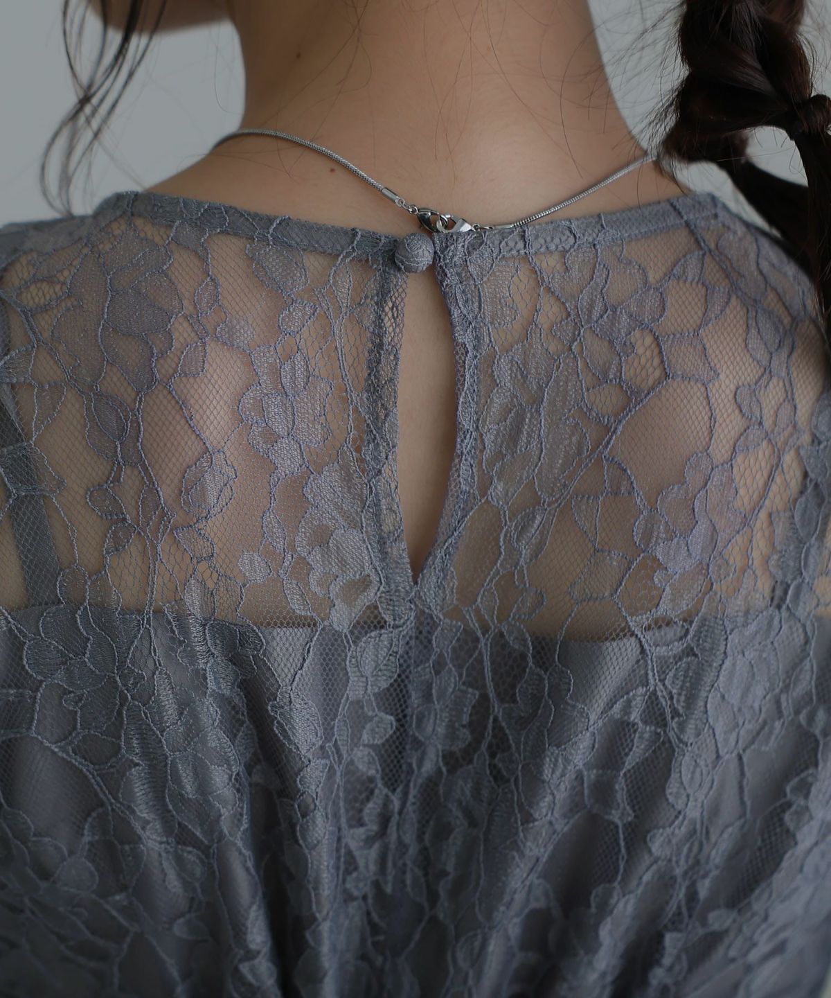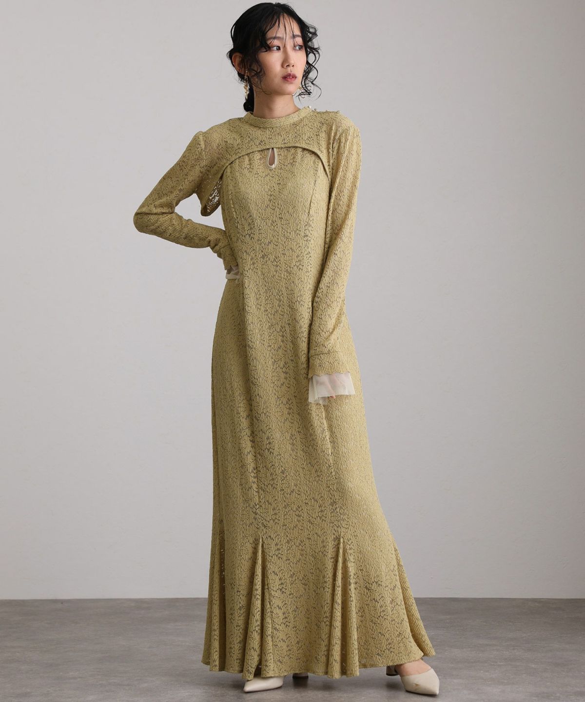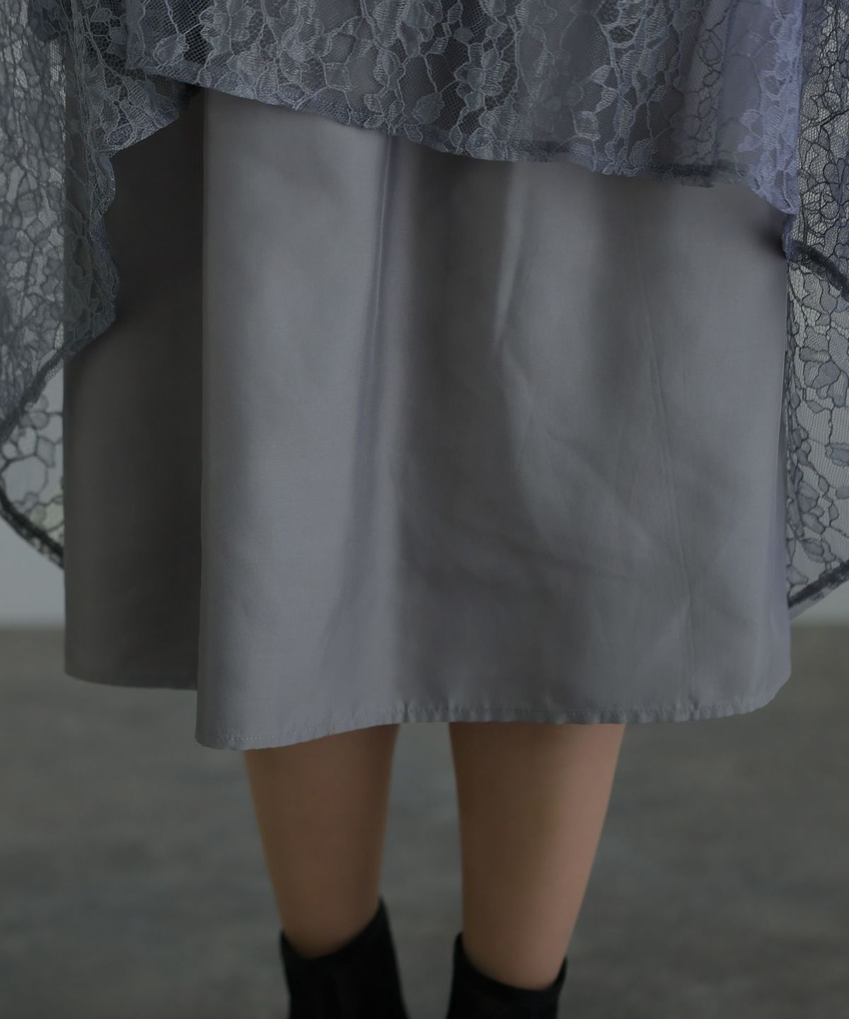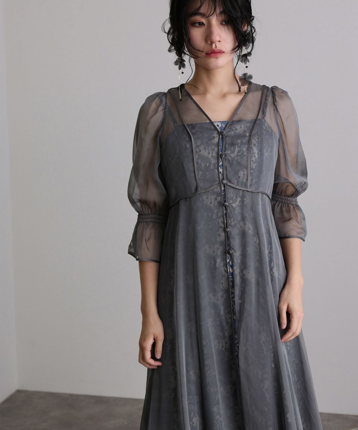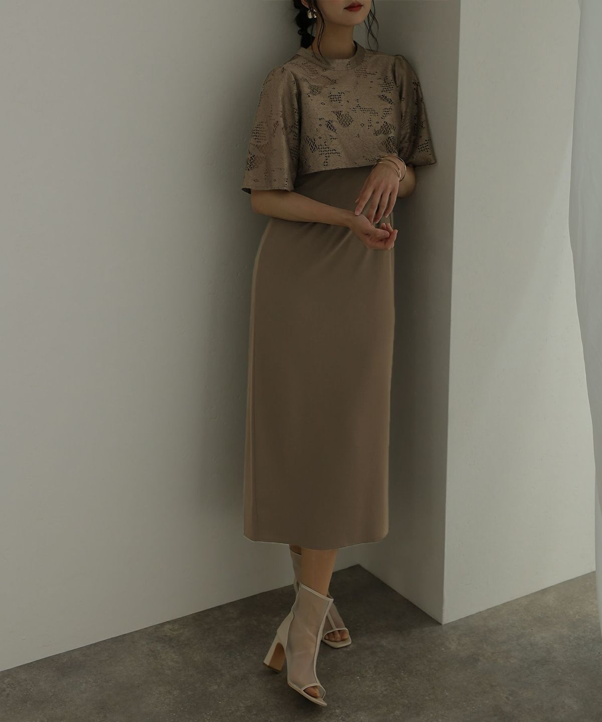 レースとオーガンジー素材の組み合わせが華やか レースレイヤードワンピ―ス