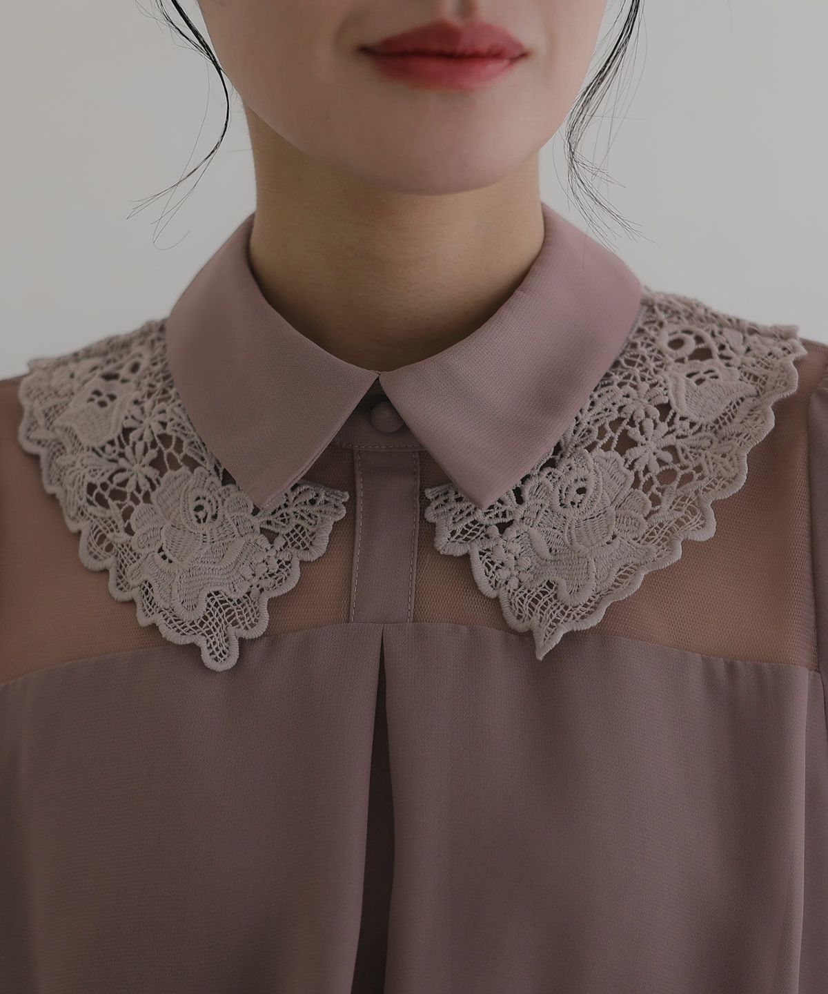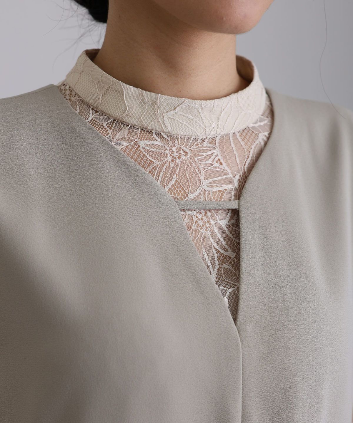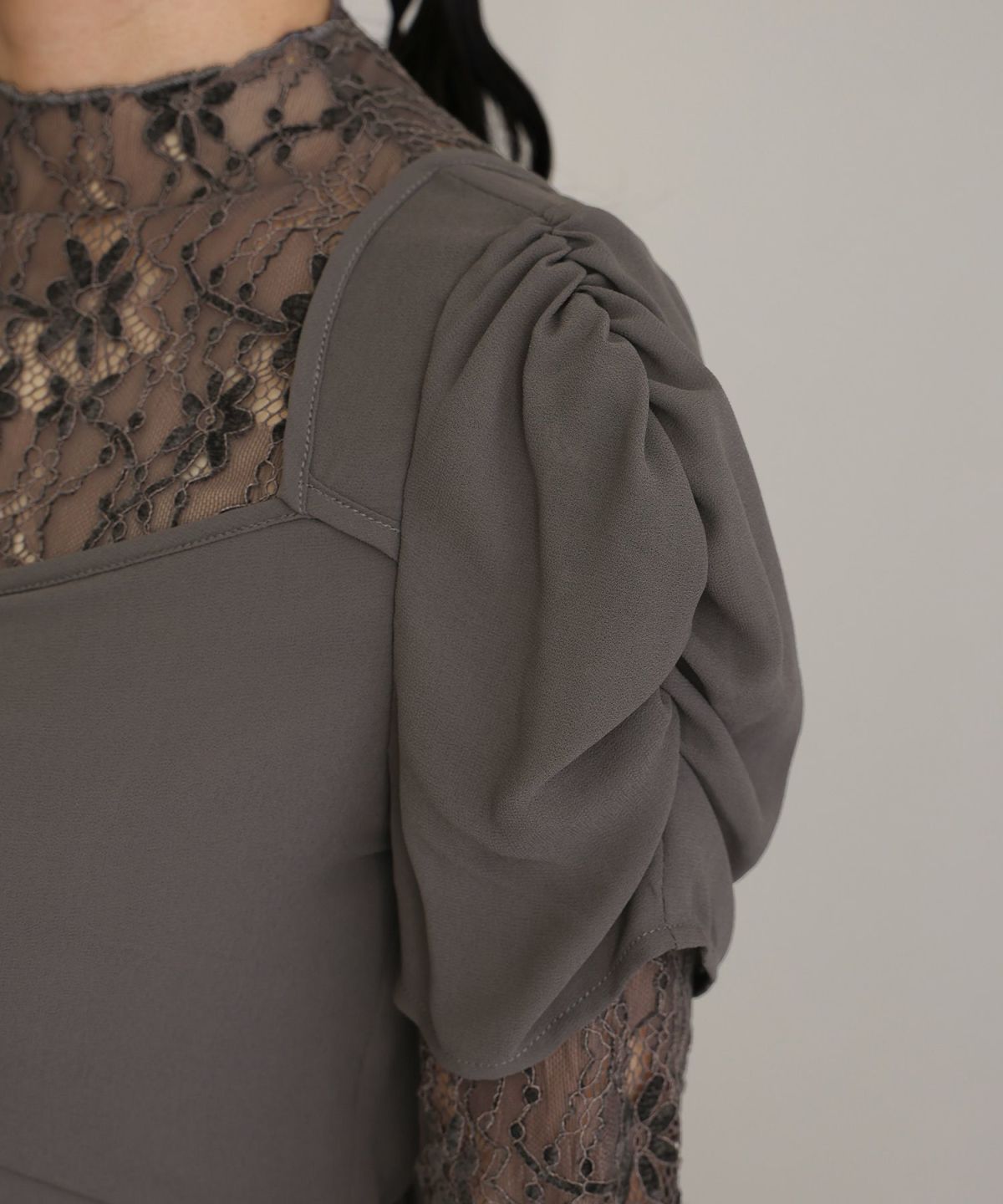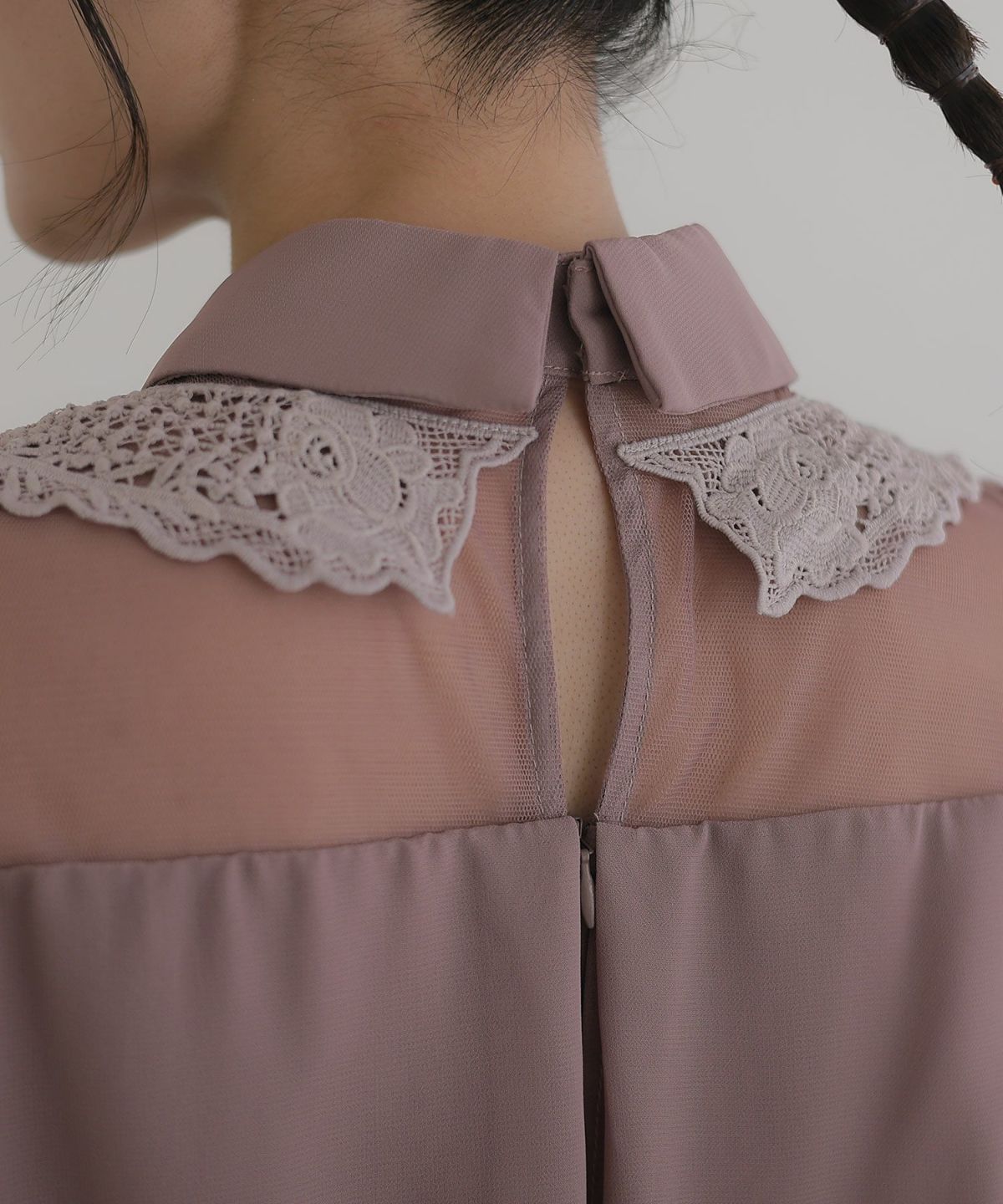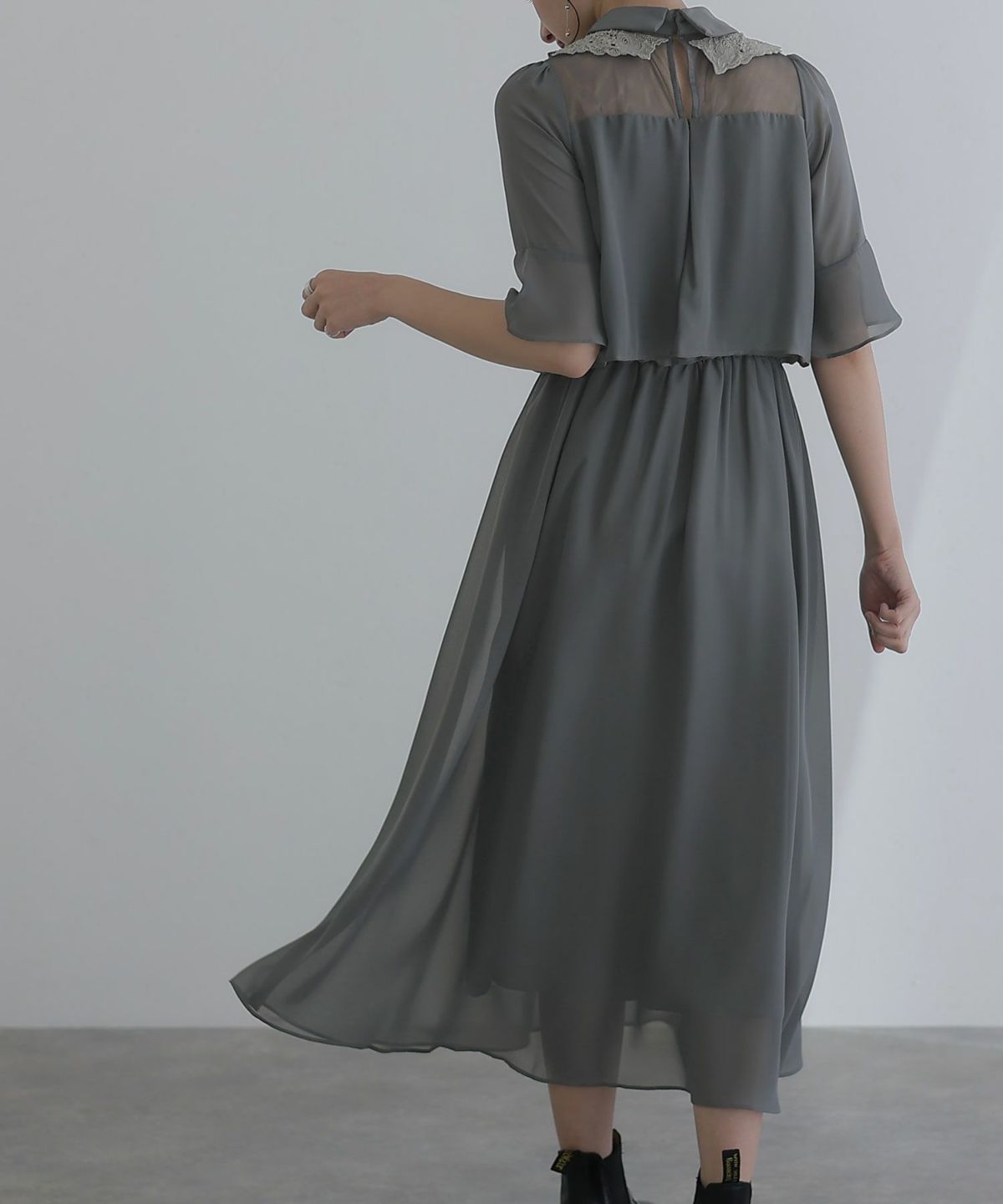 レースとオーガンジー素材の組み合わせが華やか レースレイヤードワンピ―ス