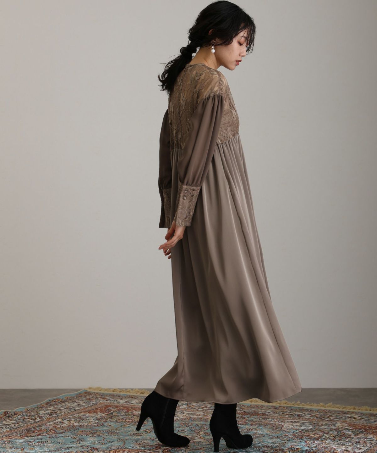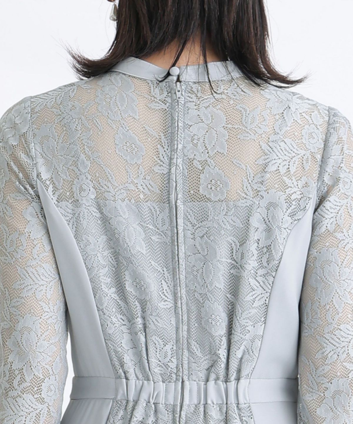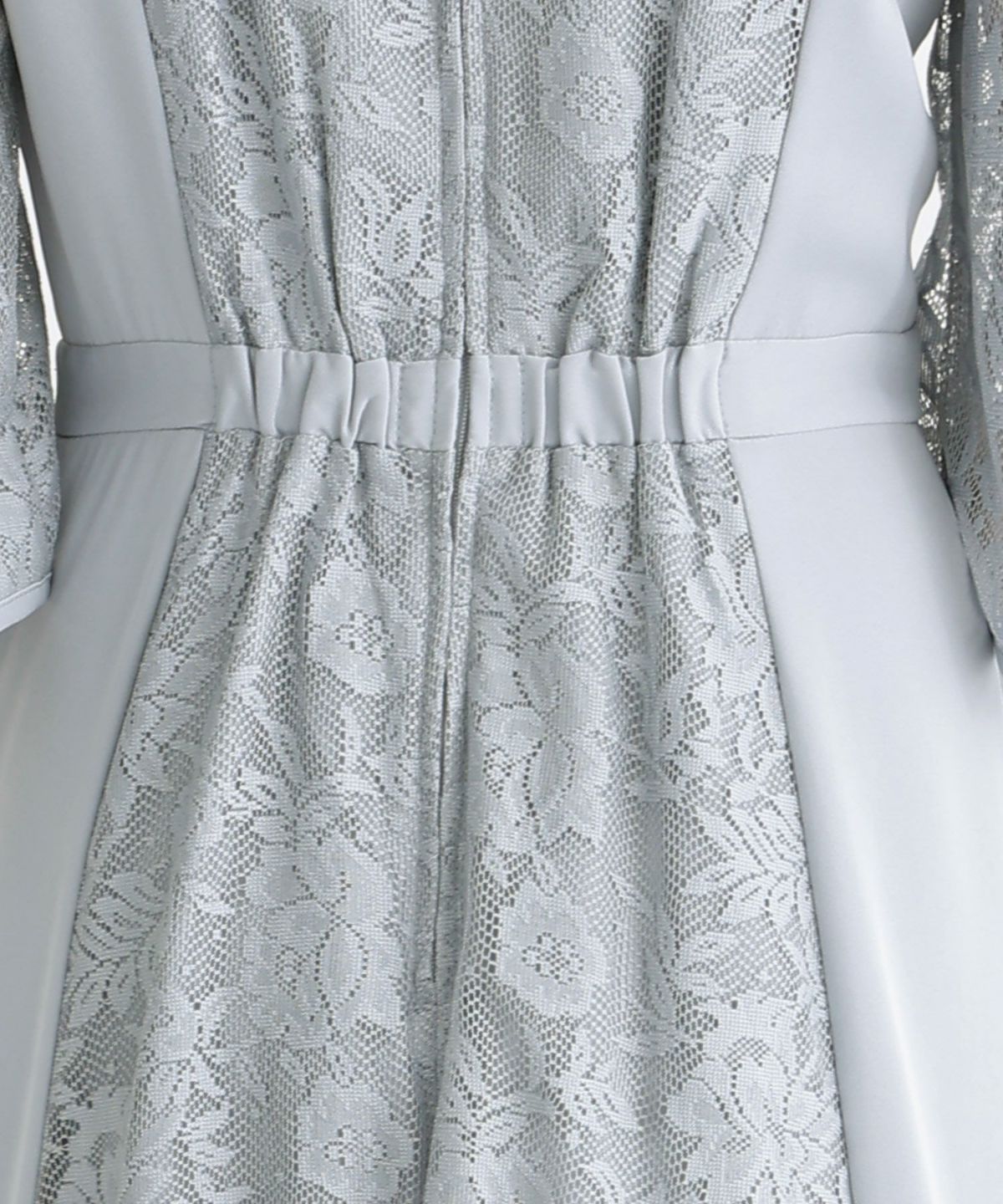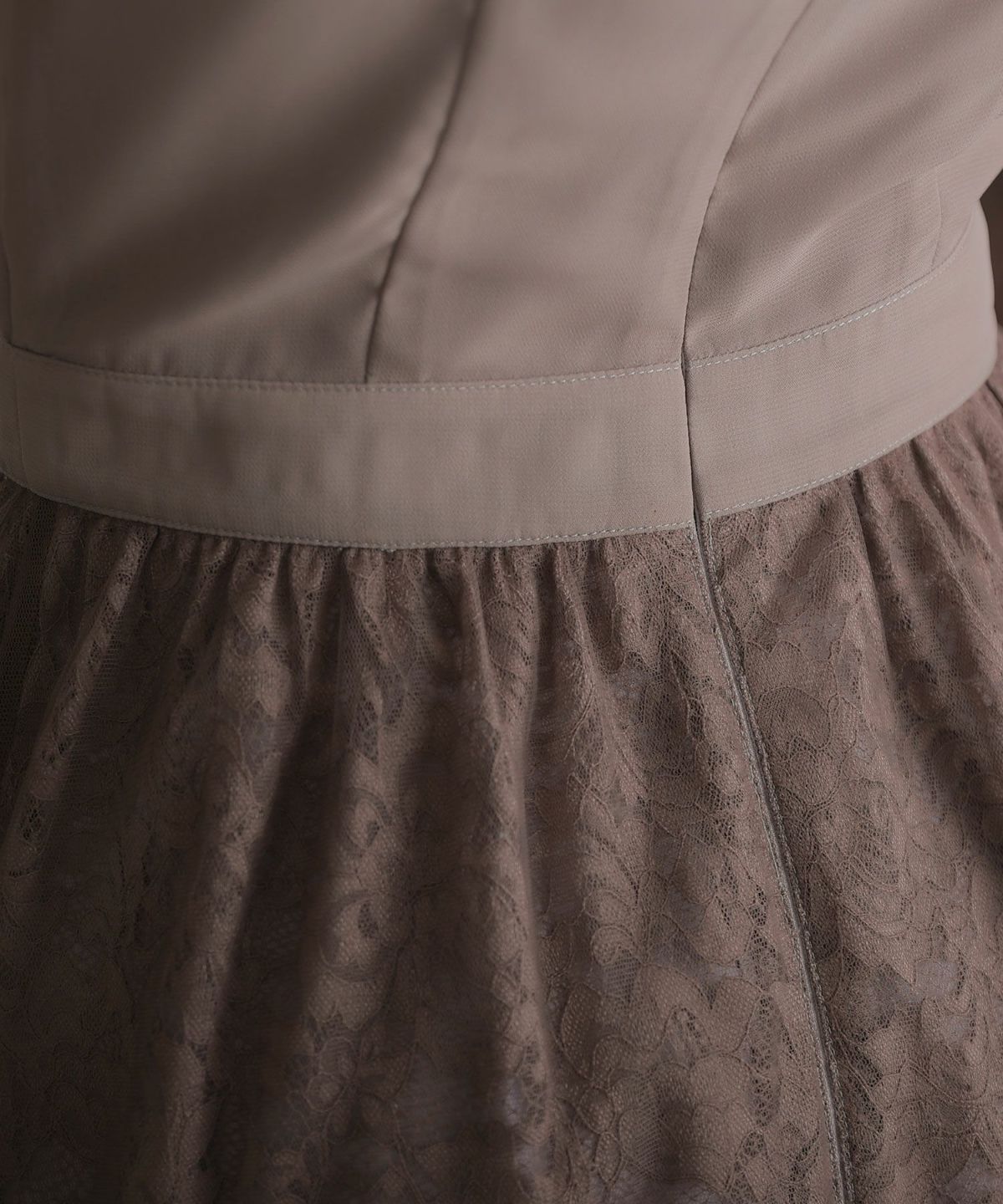 2種類のレースを贅沢に使用したエレガントなドレス 異素材レース切り替えバックレースアップワンピース