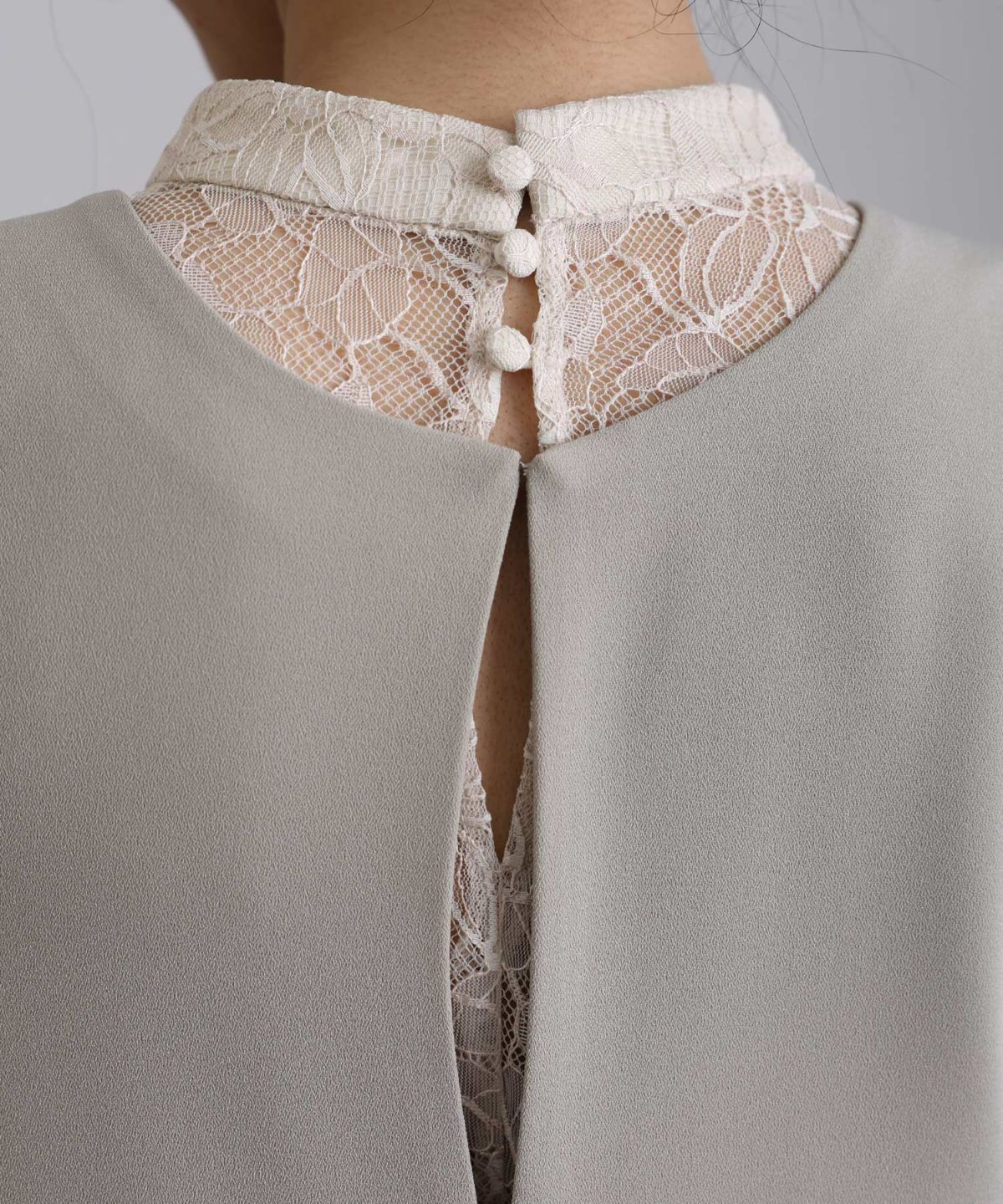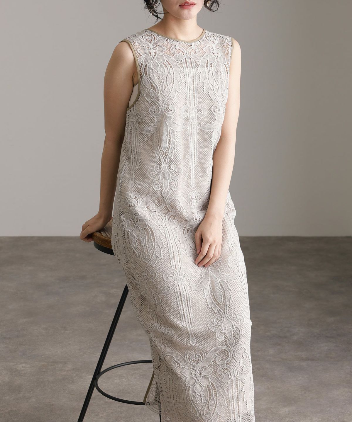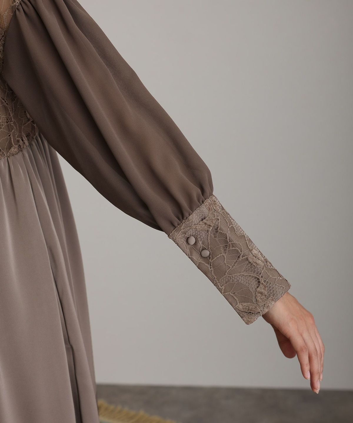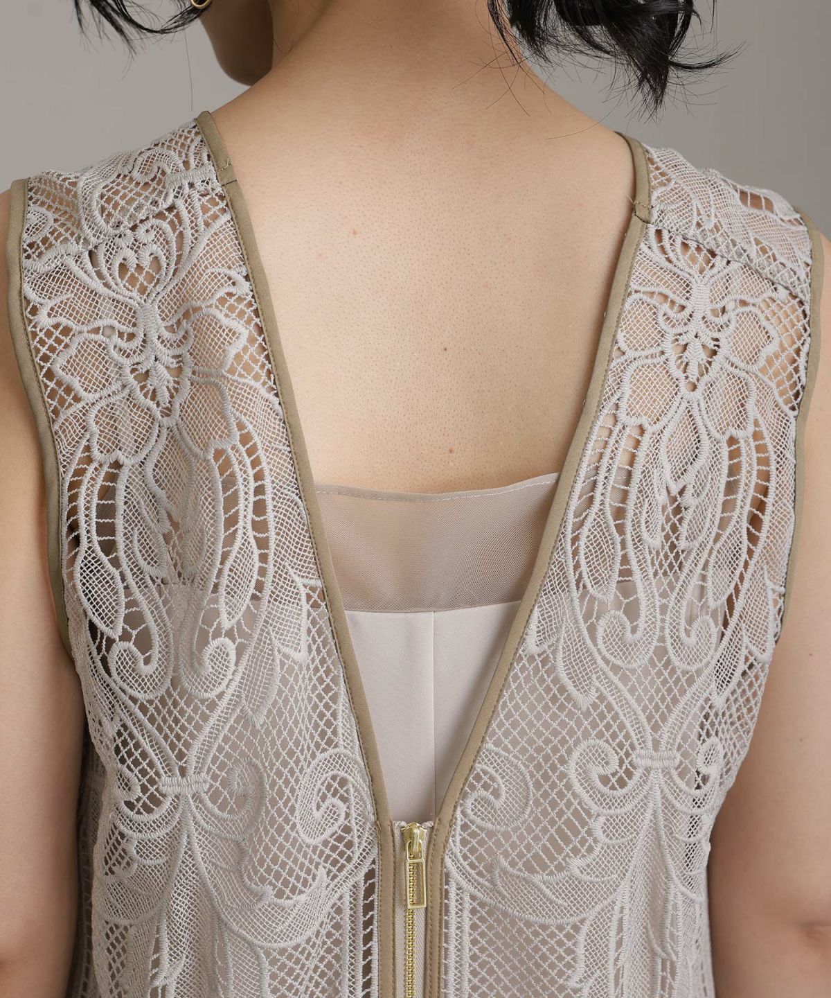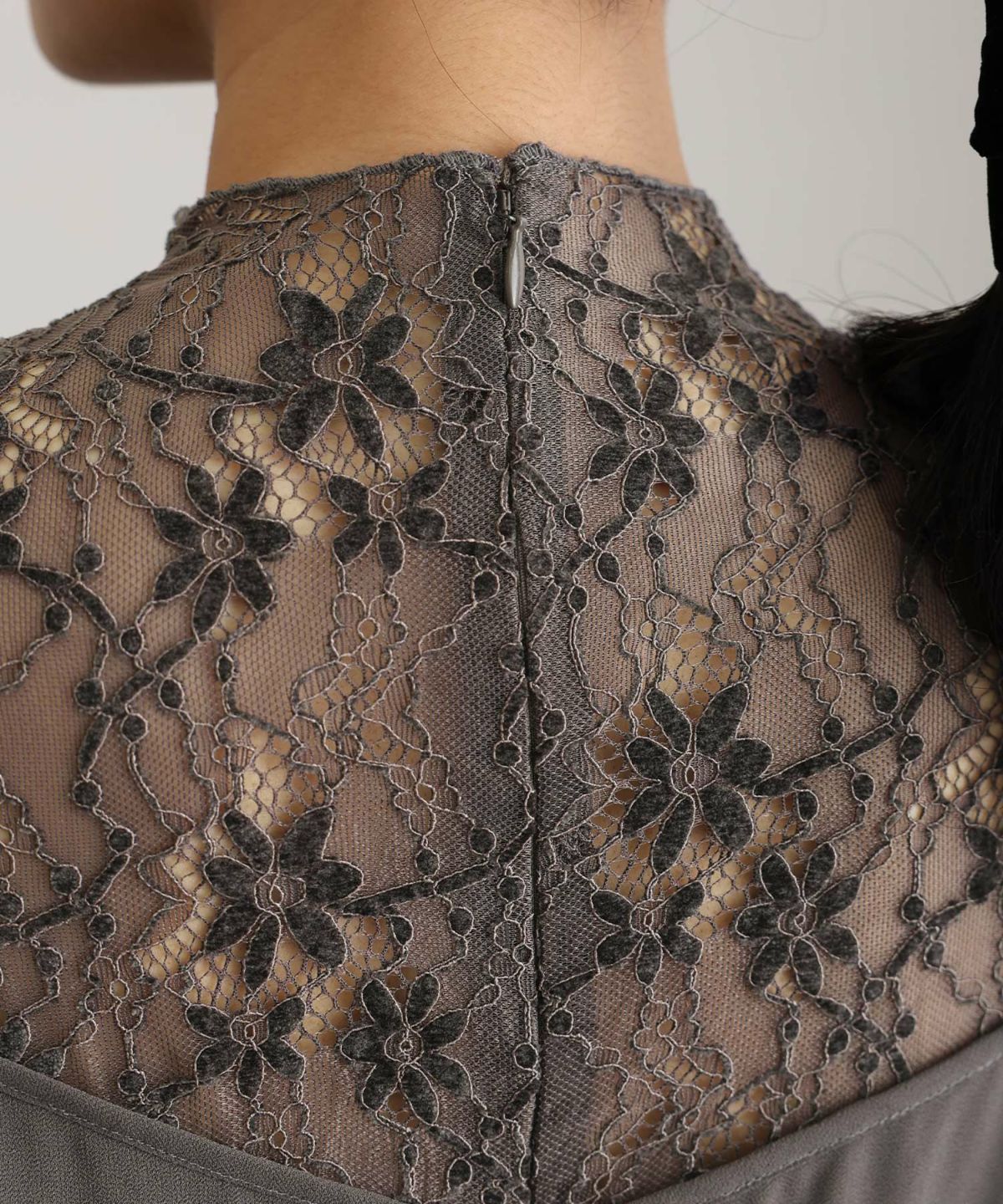2種類のレースを贅沢に使用したエレガントなドレス 異素材レース切り替えバックレースアップワンピース