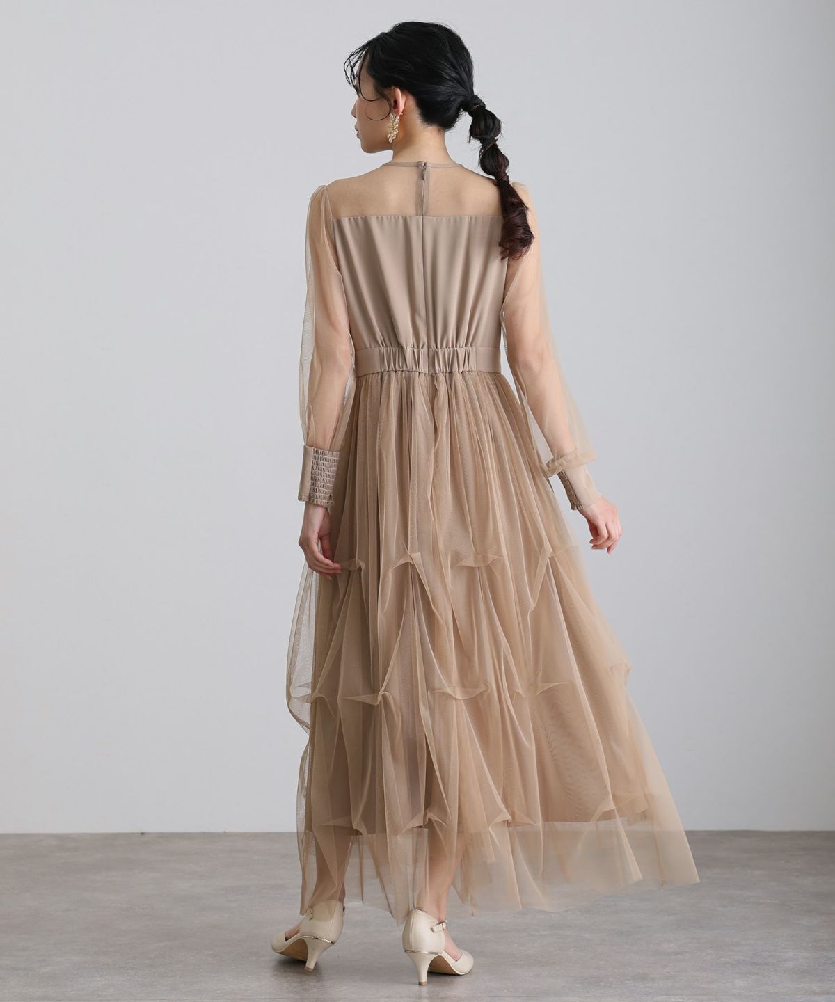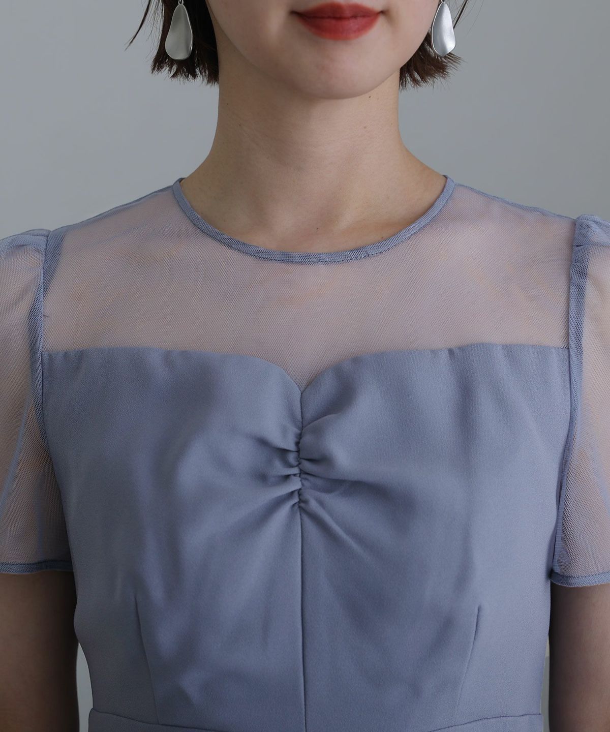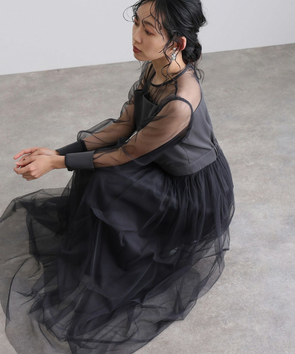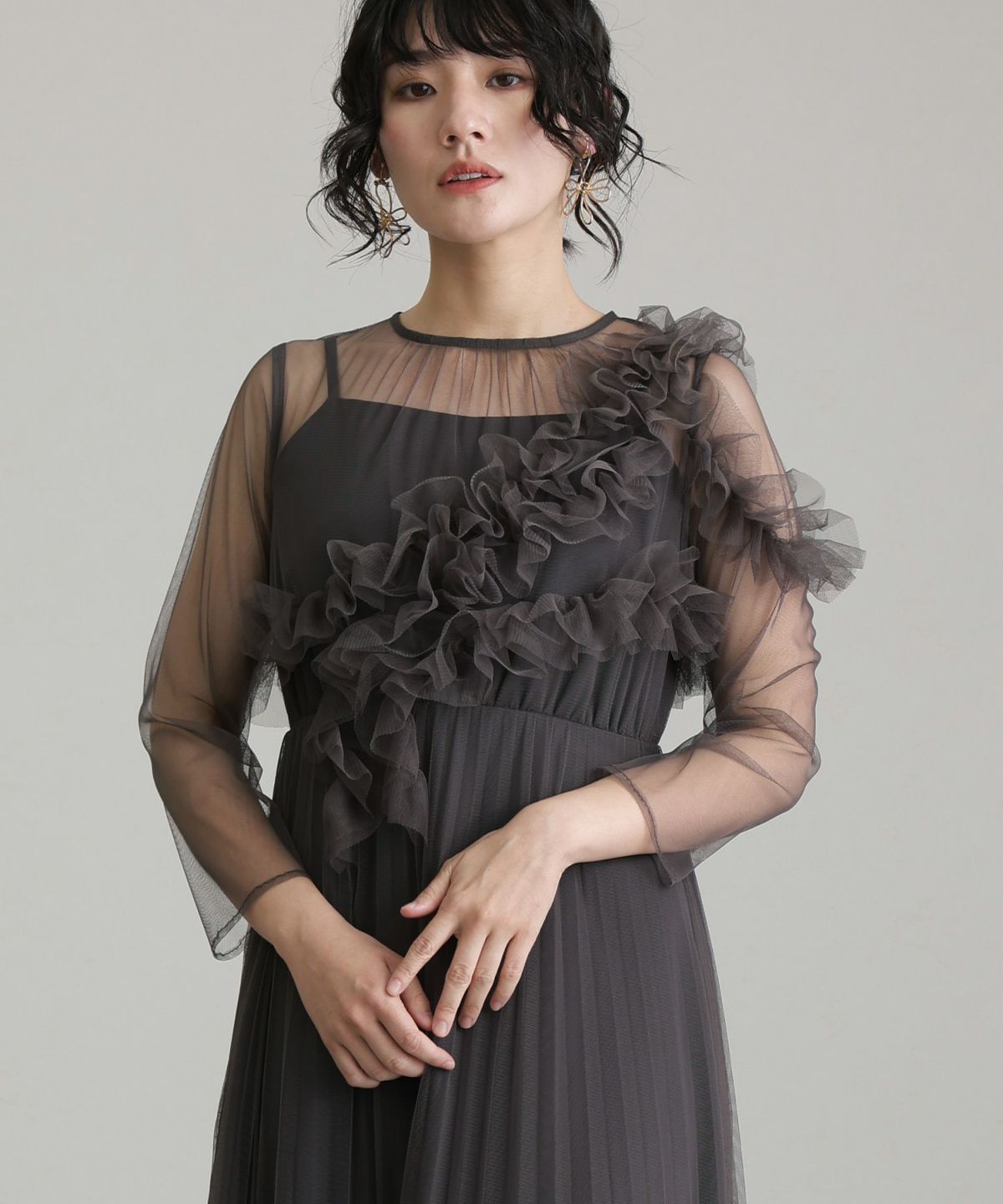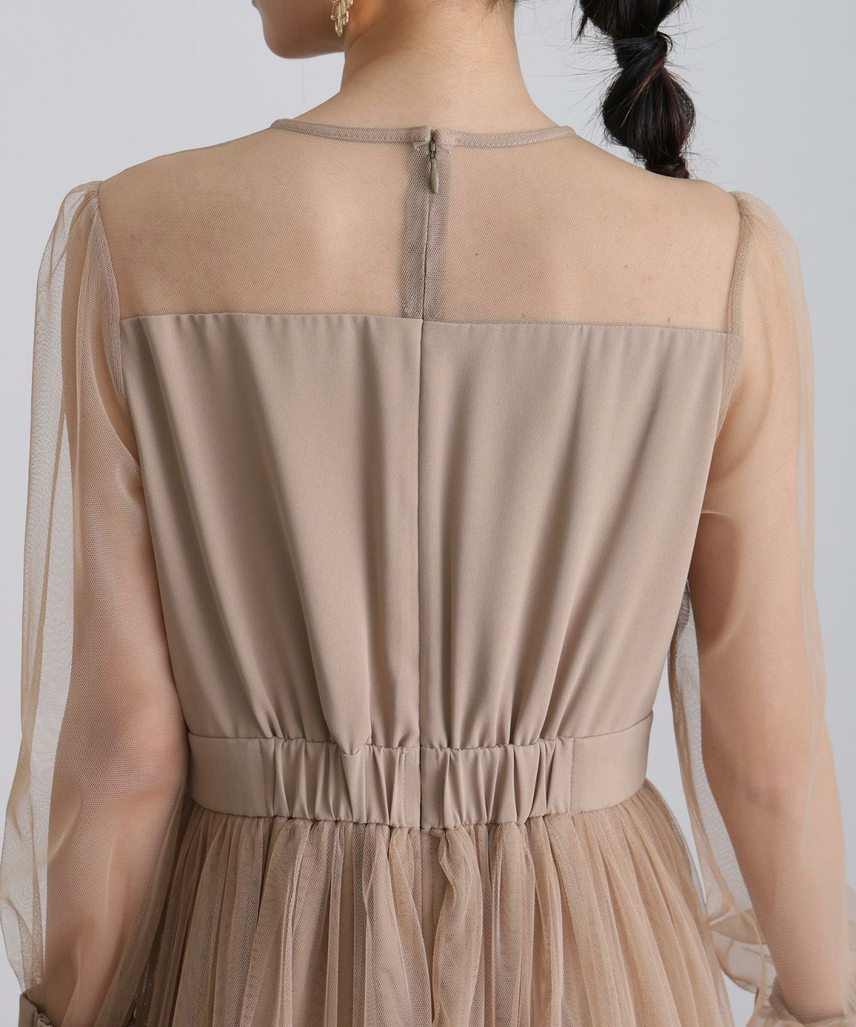 ギャザーチュールの透け感が可愛らしい ギャザーチュール&プリーツドレス
