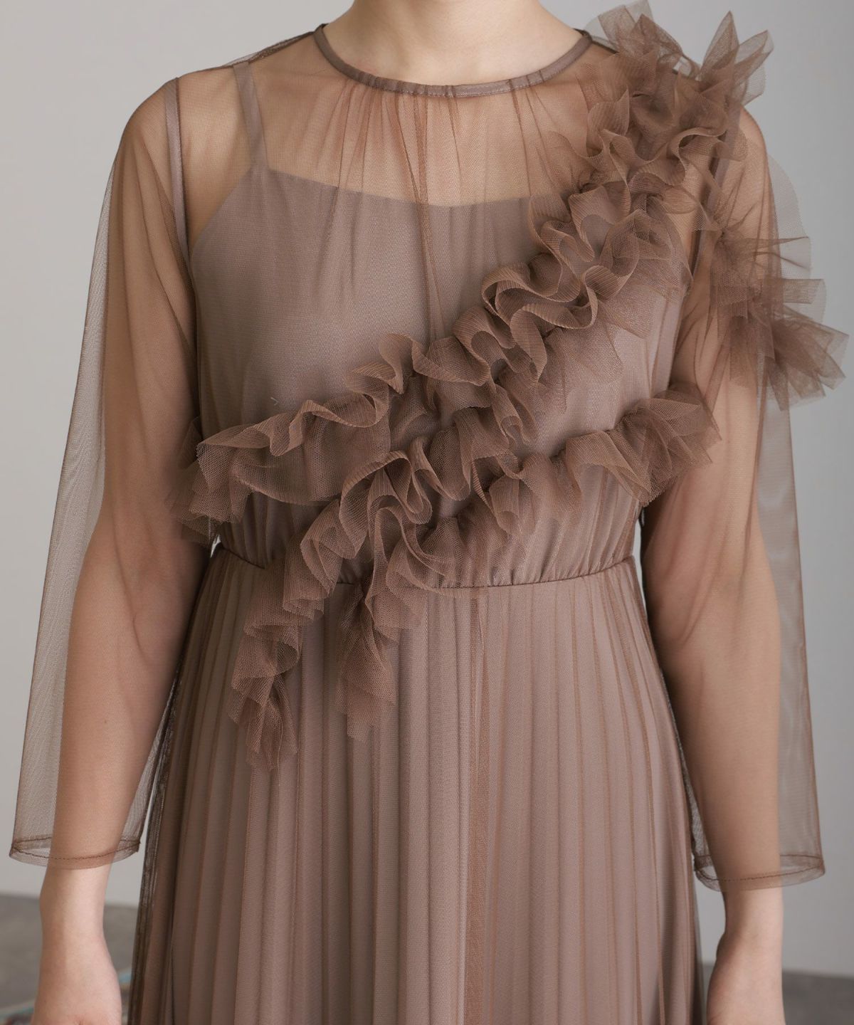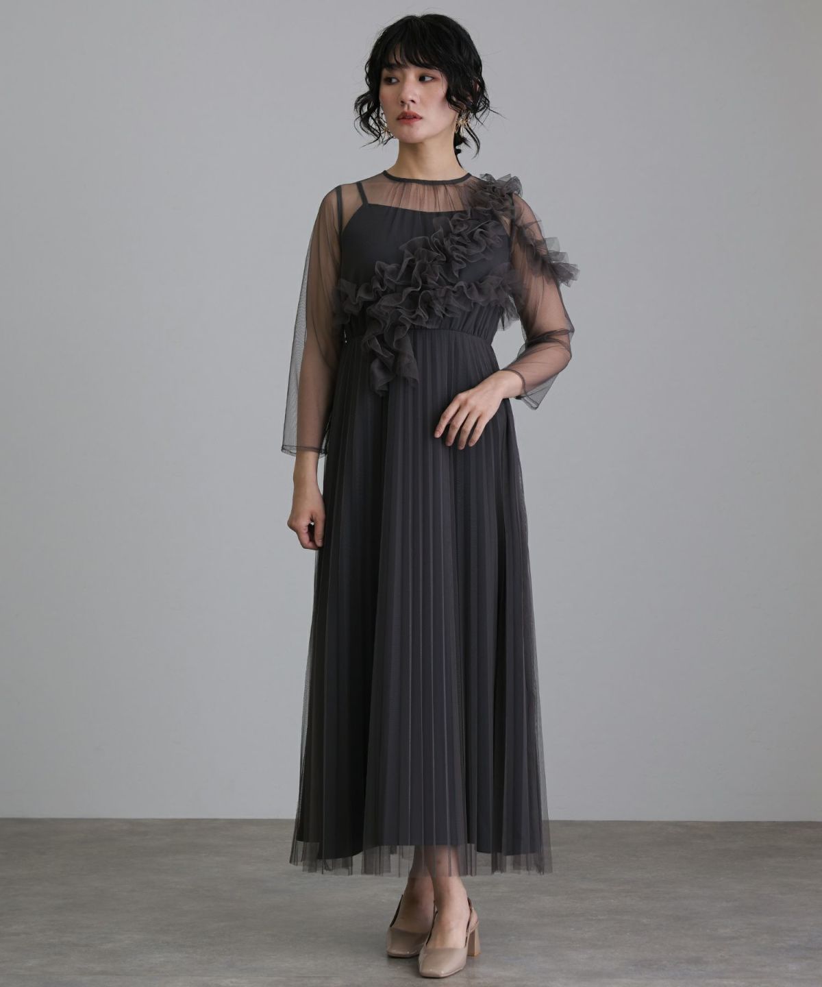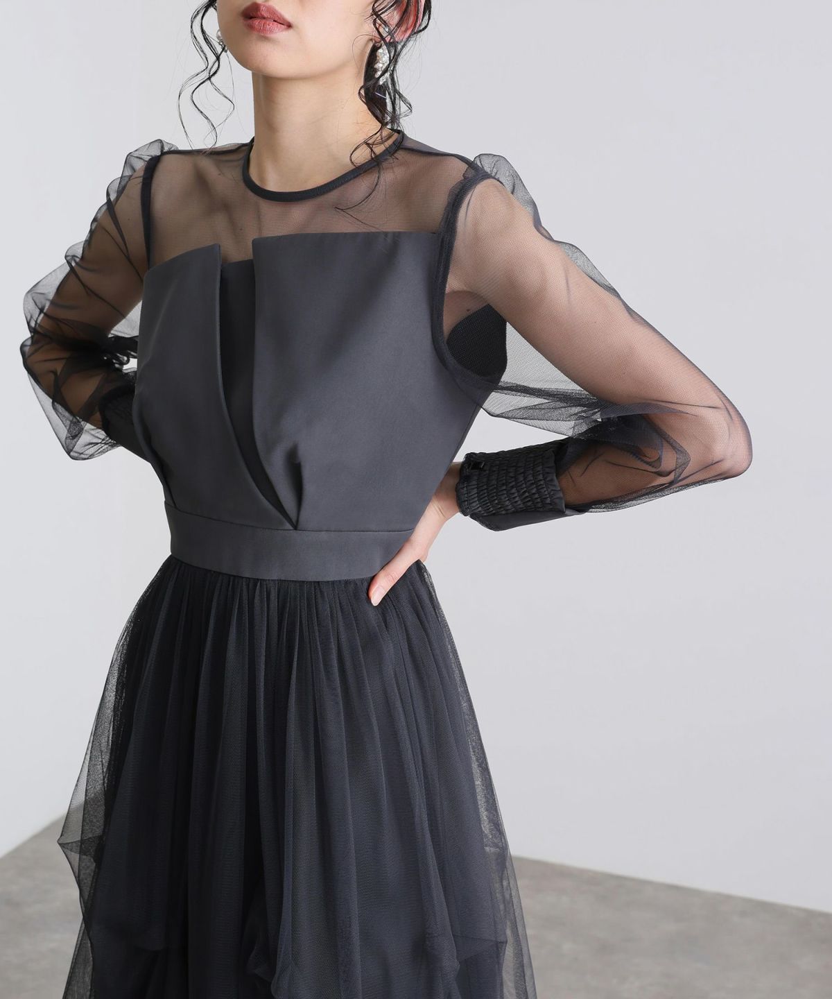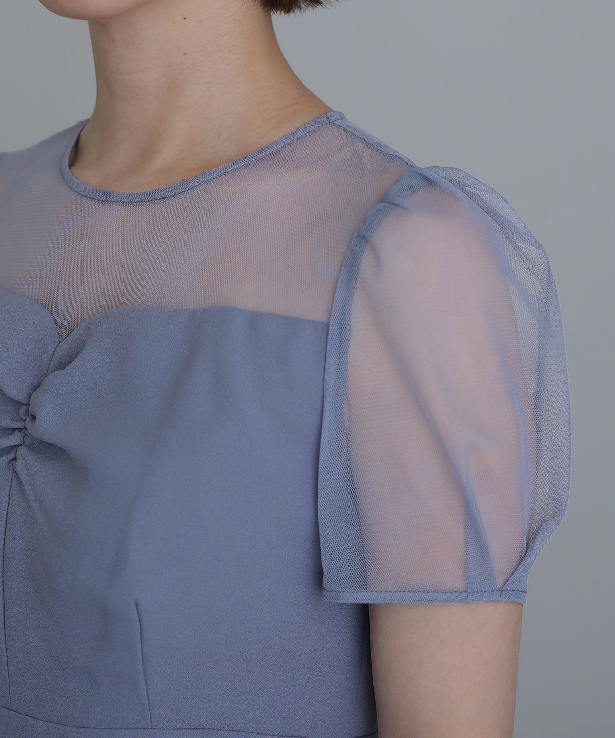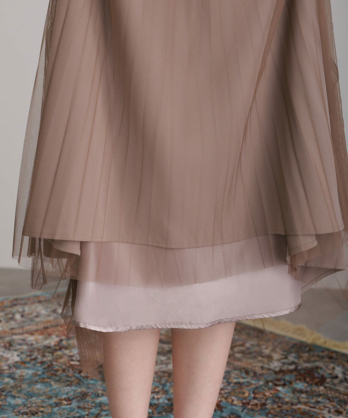 ギャザーチュールの透け感が可愛らしい ギャザーチュール&プリーツドレス