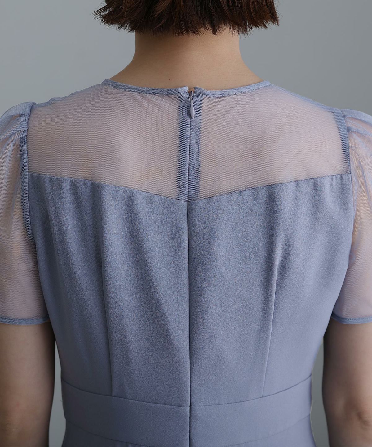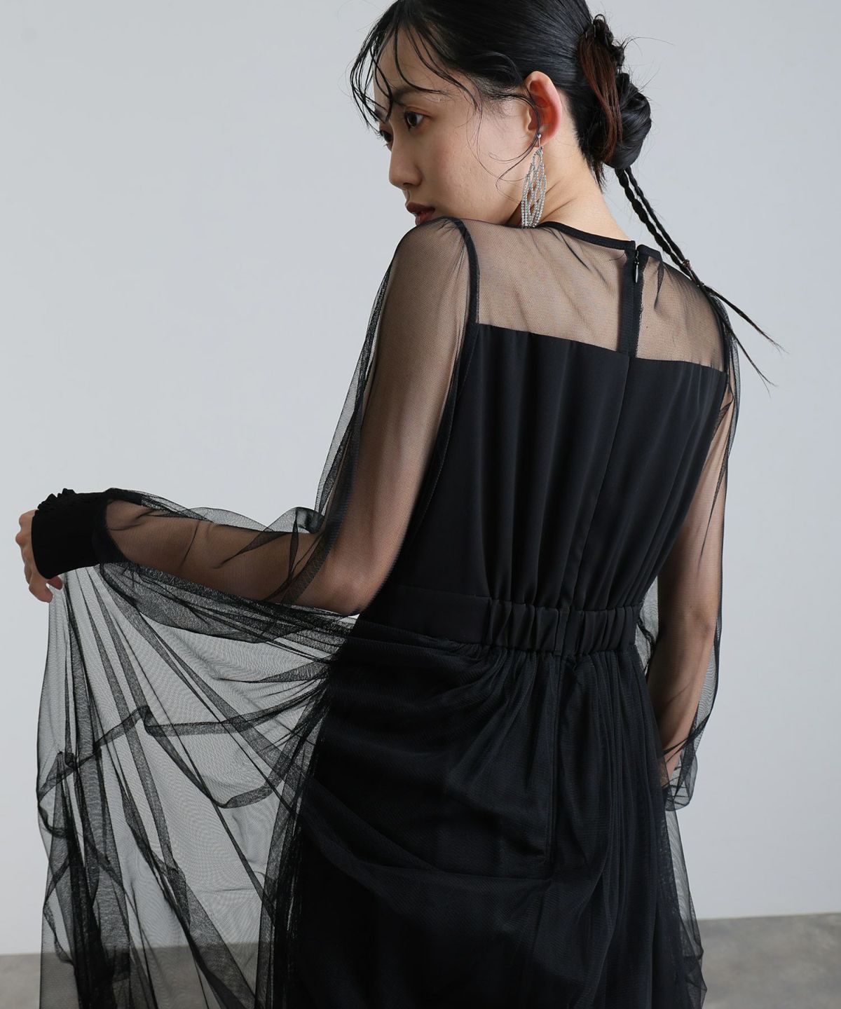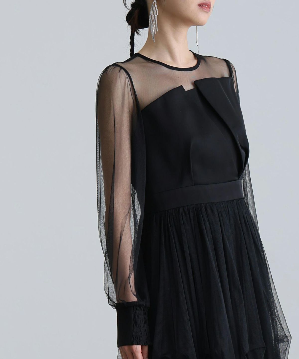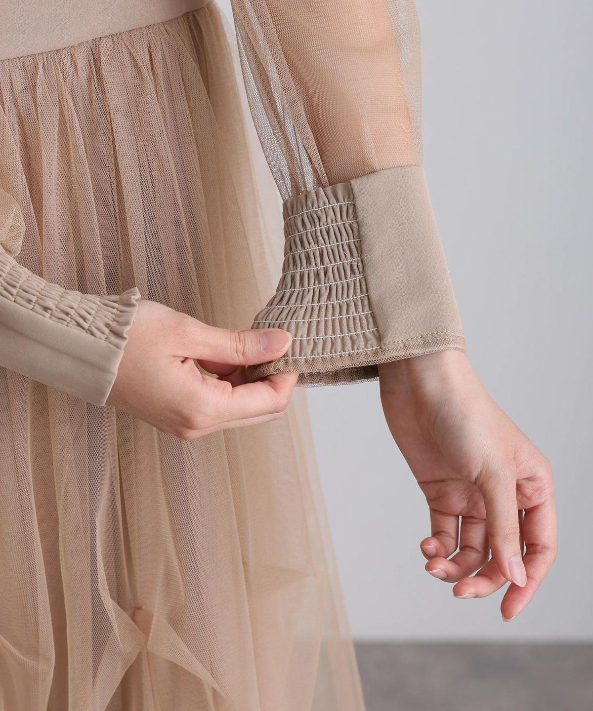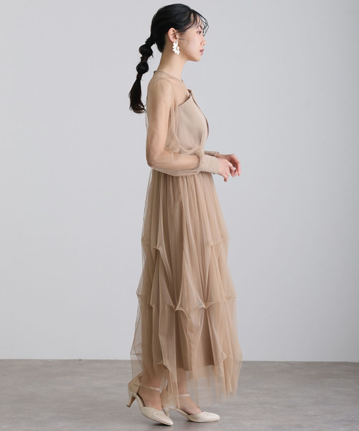 ギャザーチュールの透け感が可愛らしい ギャザーチュール&プリーツドレス