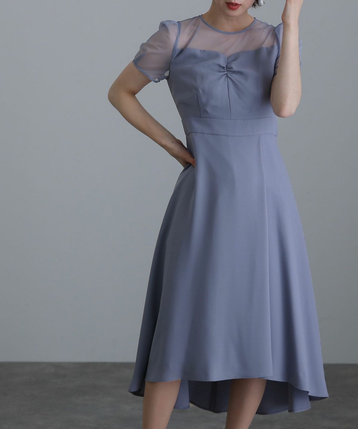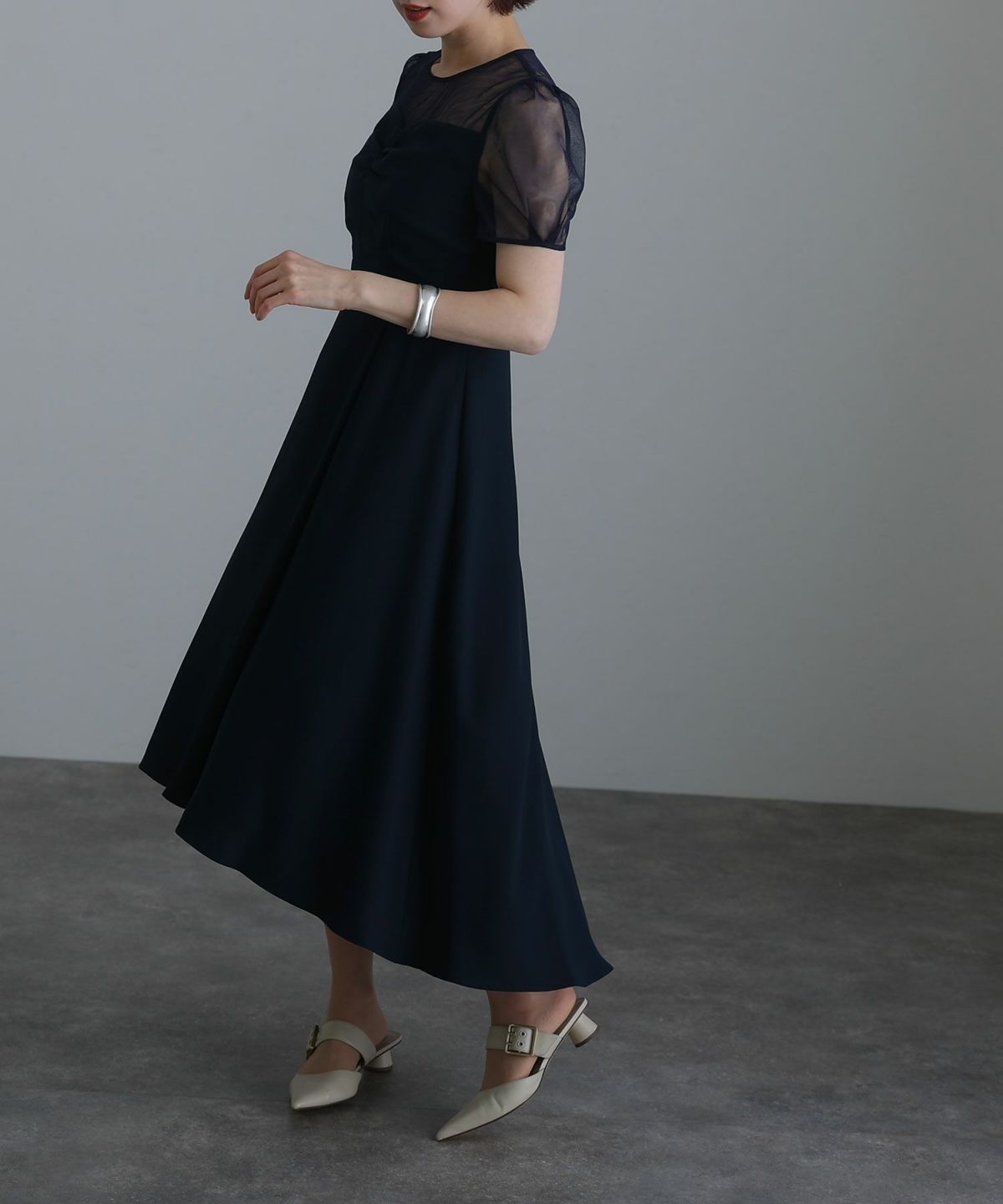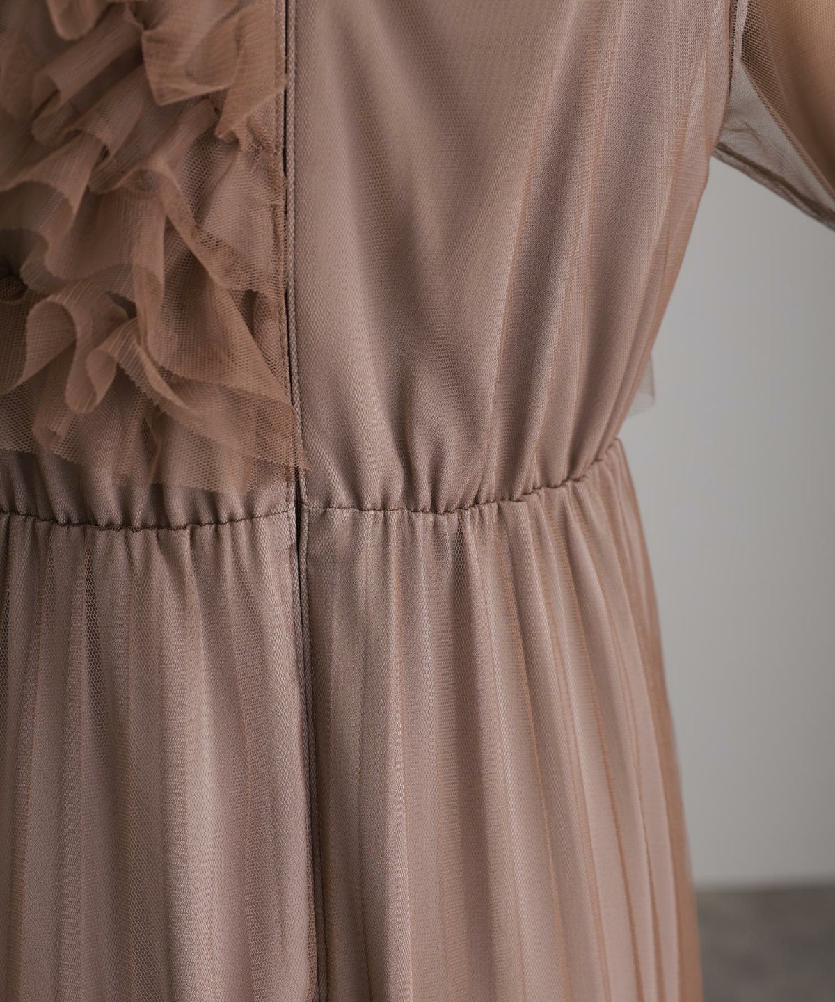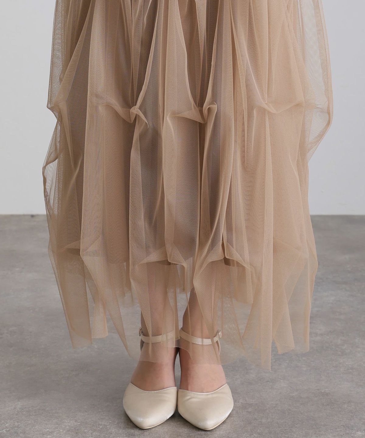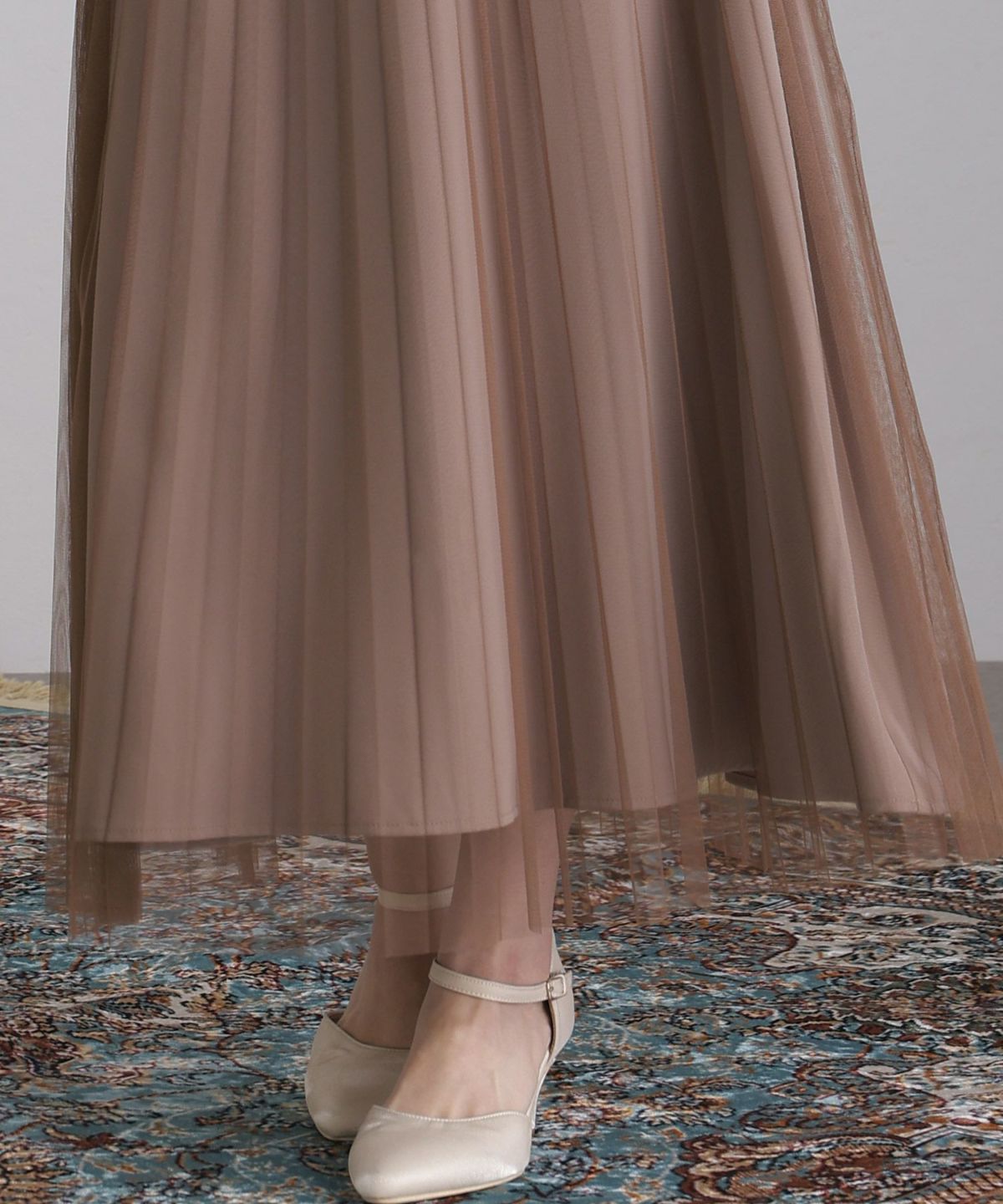 ギャザーチュールの透け感が可愛らしい ギャザーチュール&プリーツドレス