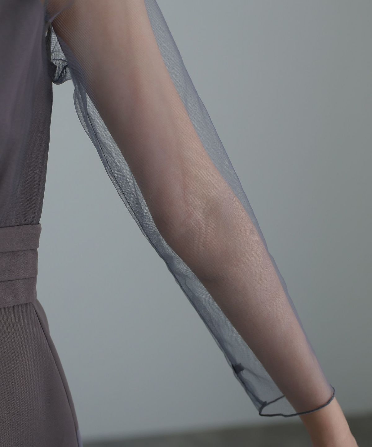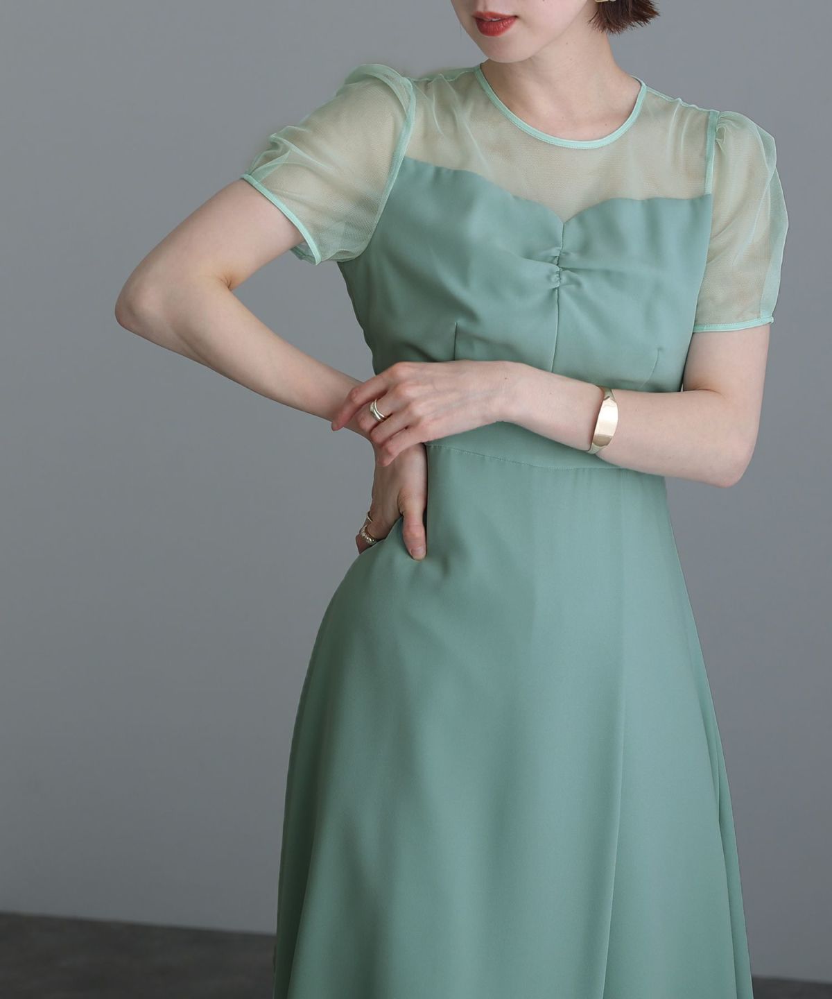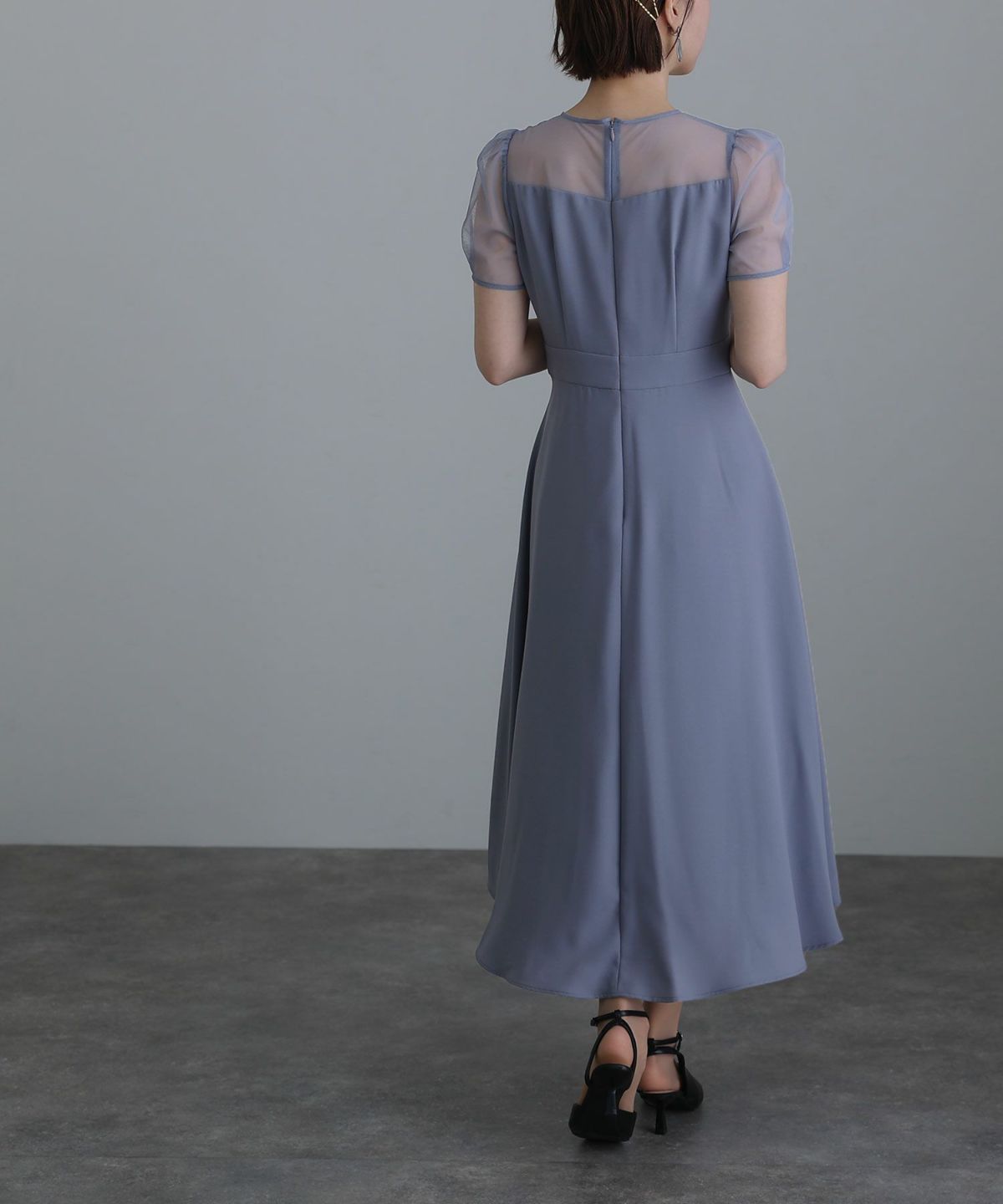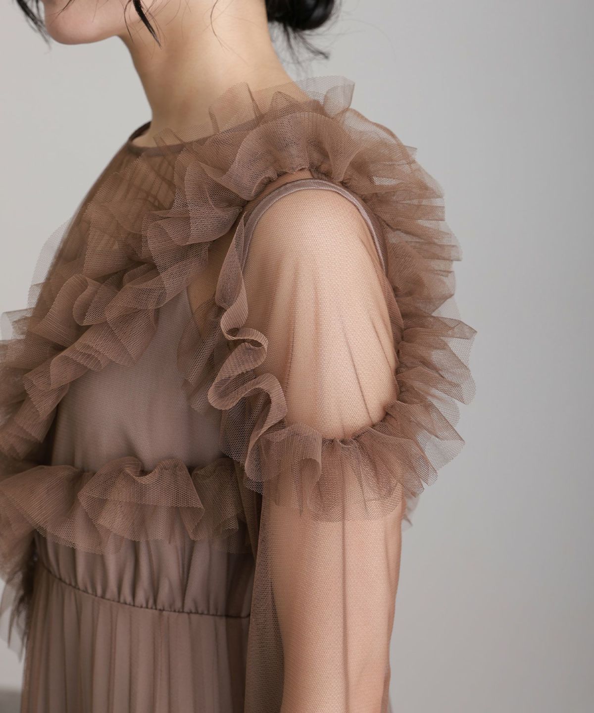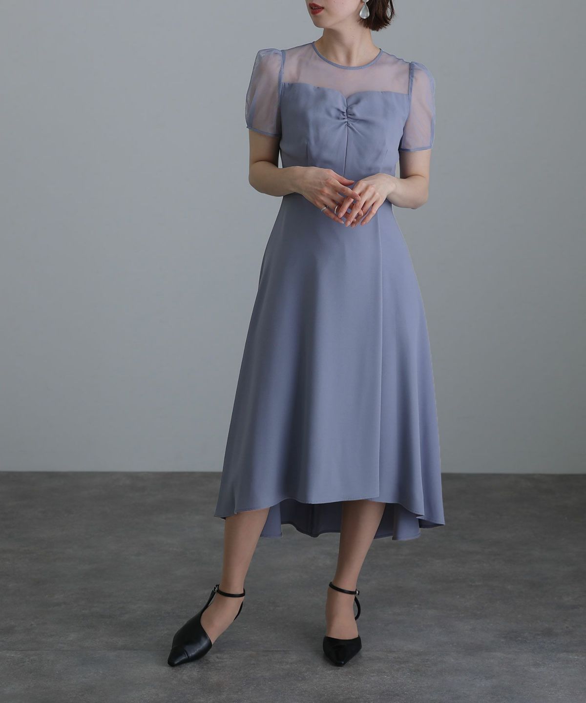ギャザーチュールの透け感が可愛らしい ギャザーチュール&プリーツドレス