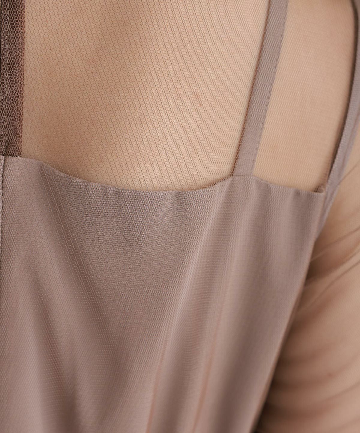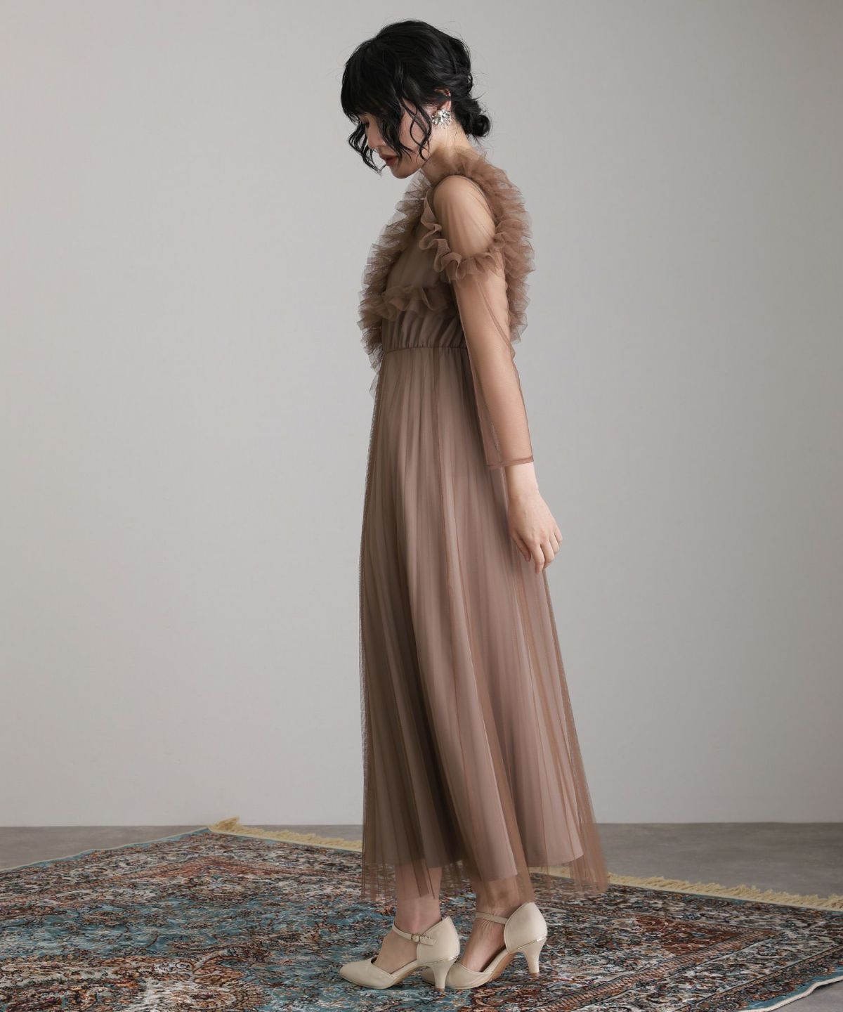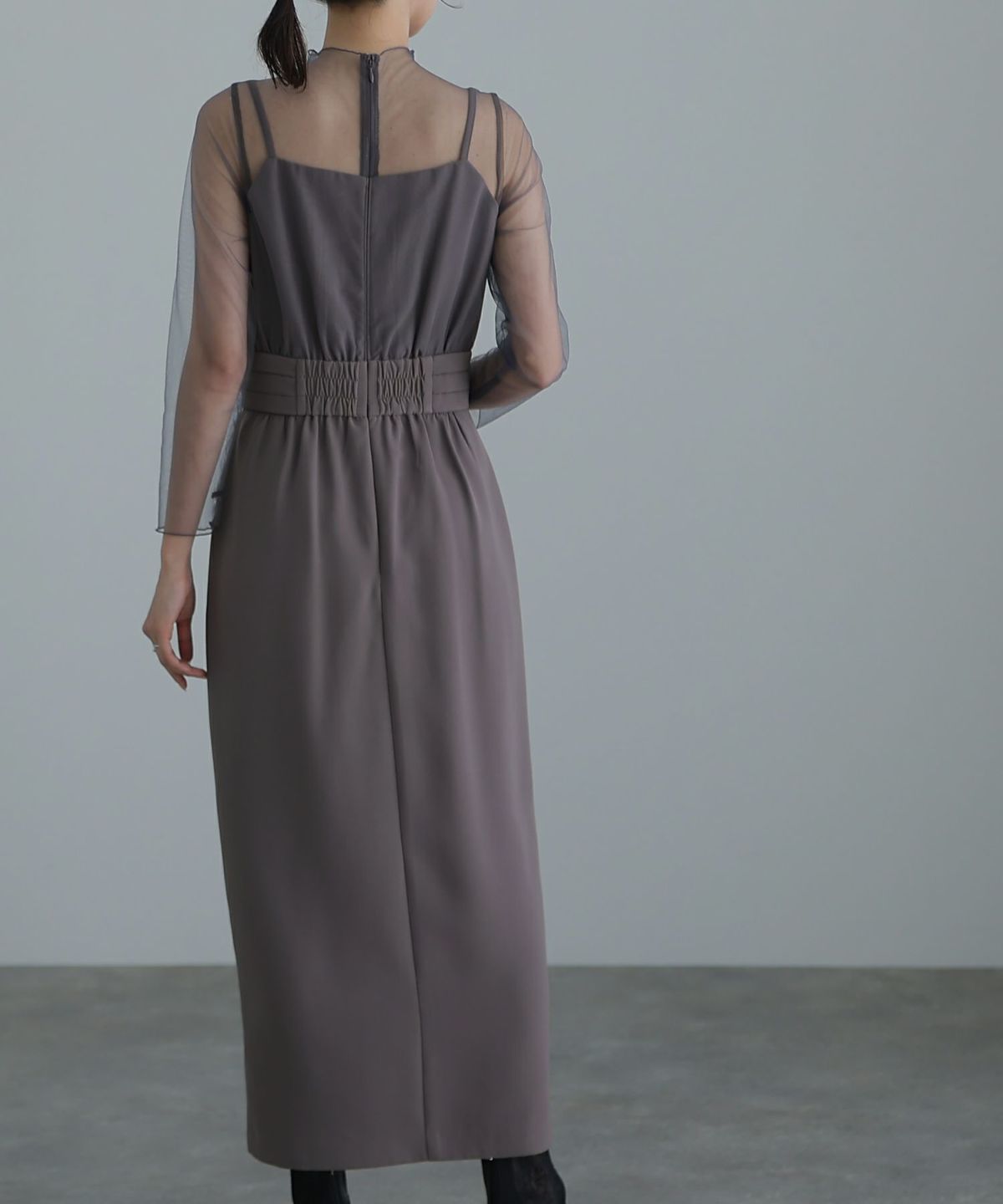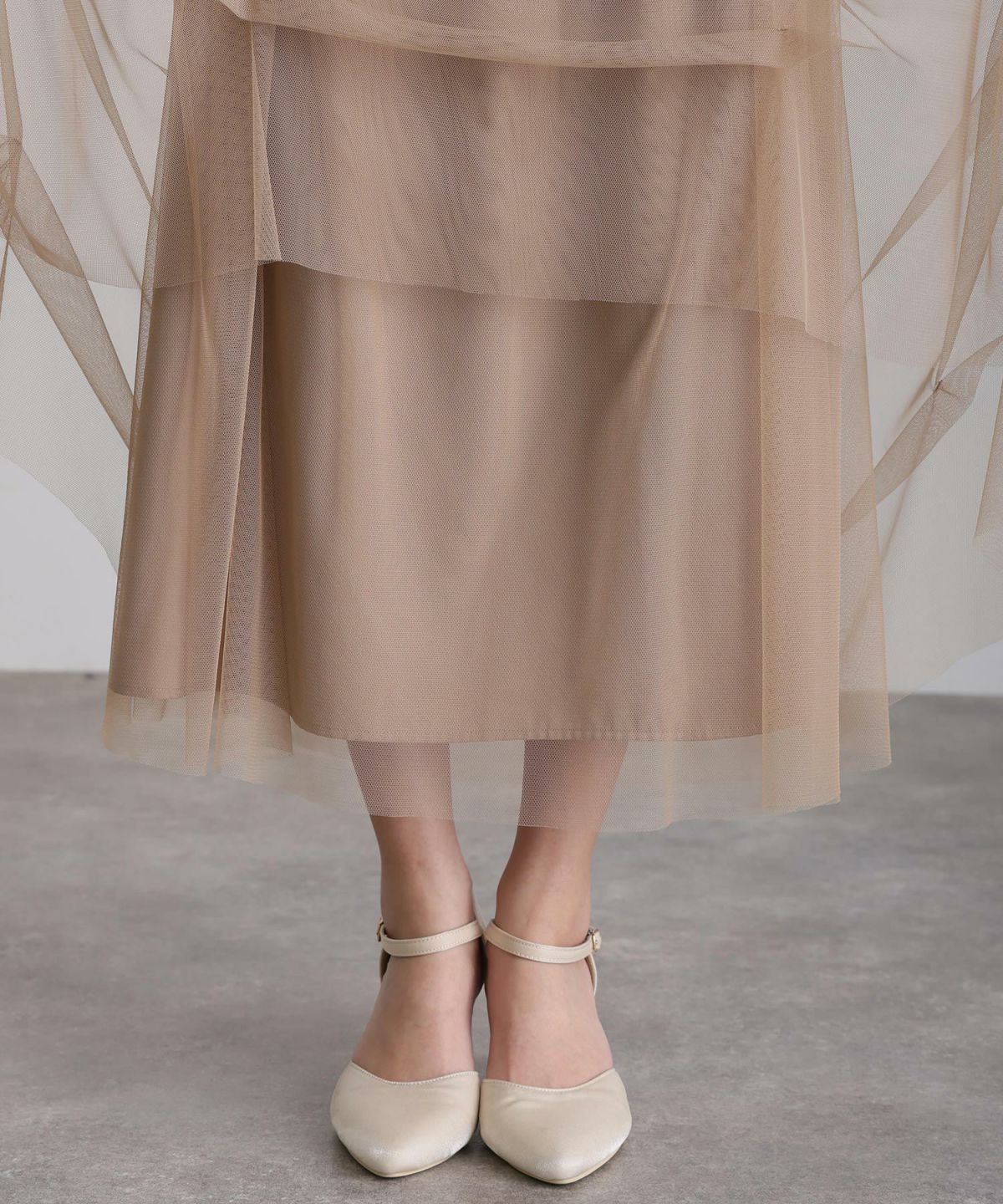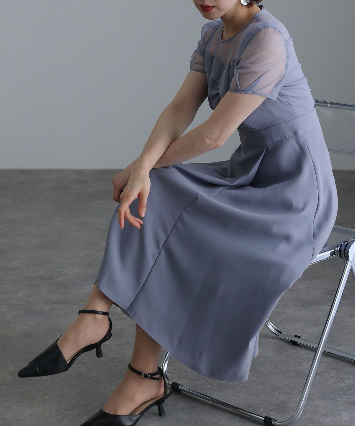 ギャザーチュールの透け感が可愛らしい ギャザーチュール&プリーツドレス