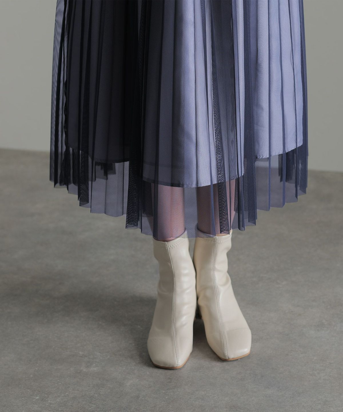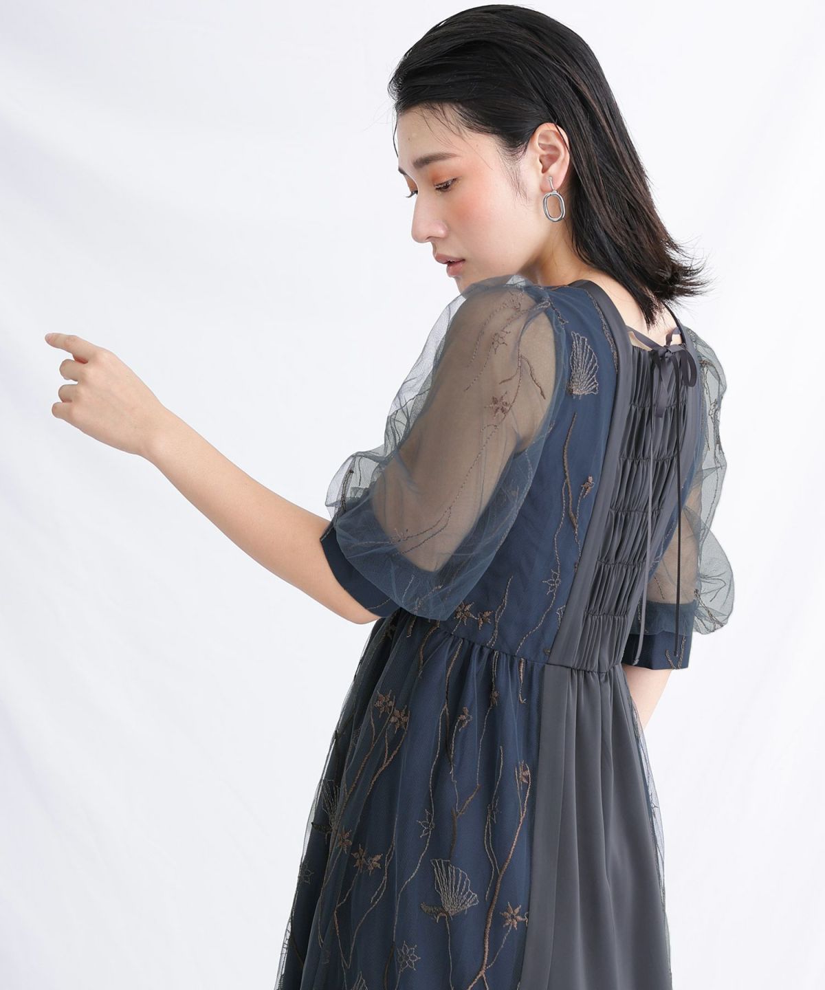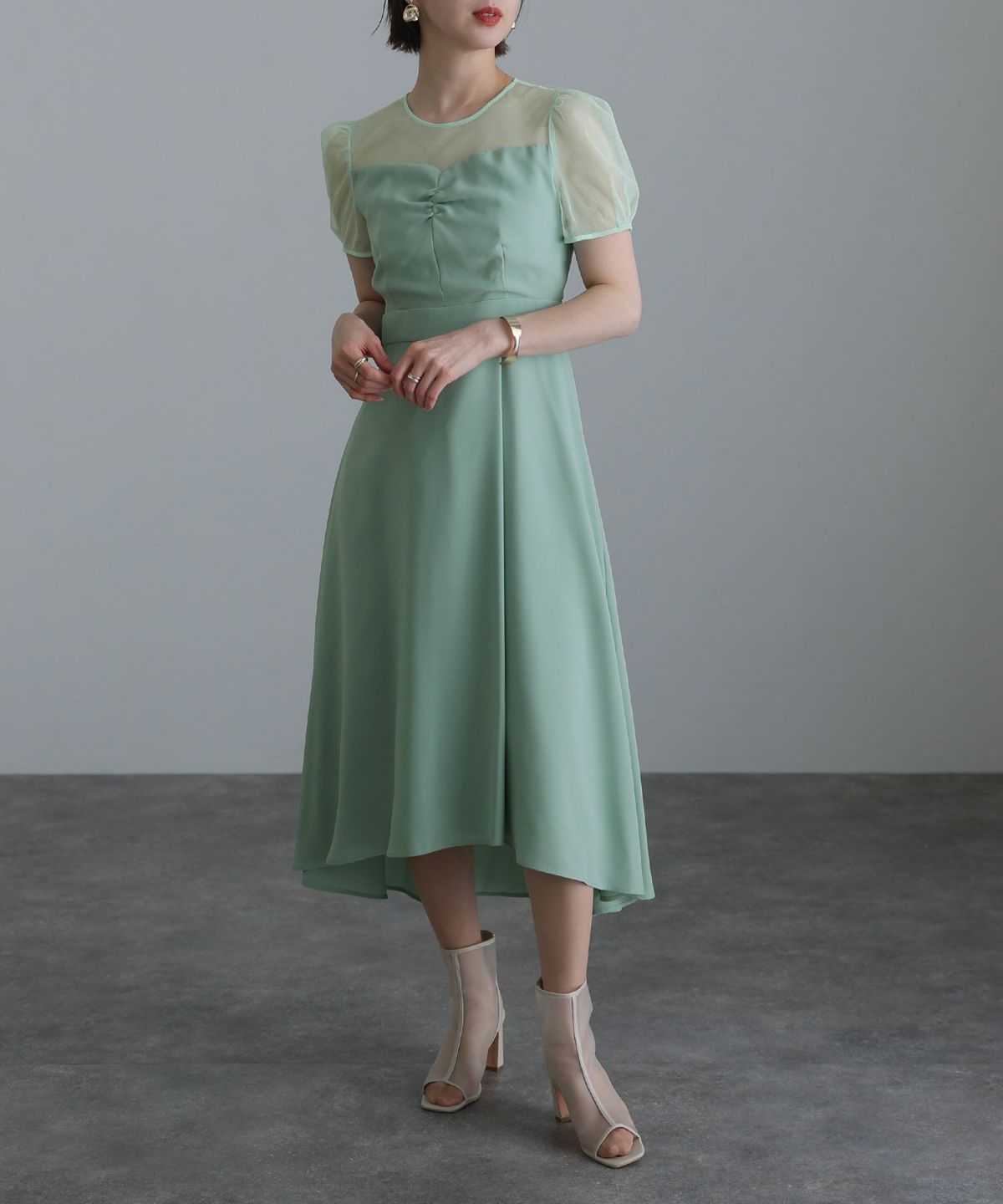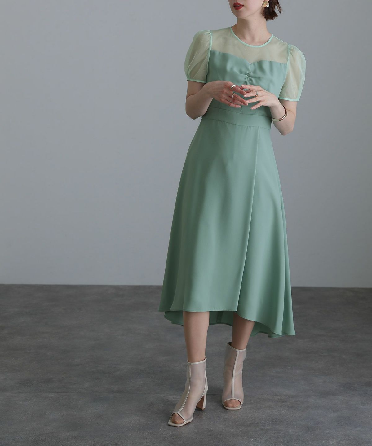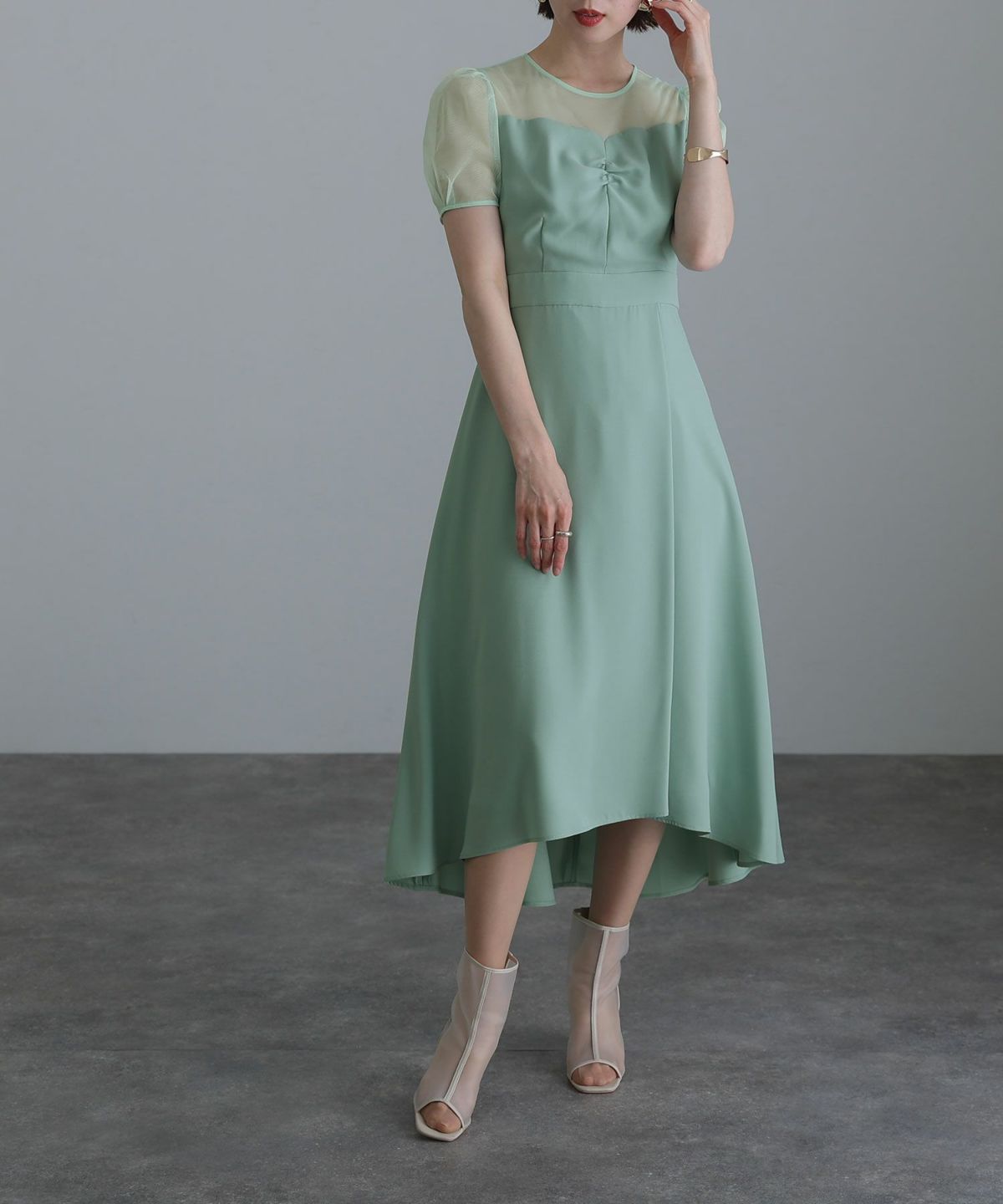 ギャザーチュールの透け感が可愛らしい ギャザーチュール&プリーツドレス