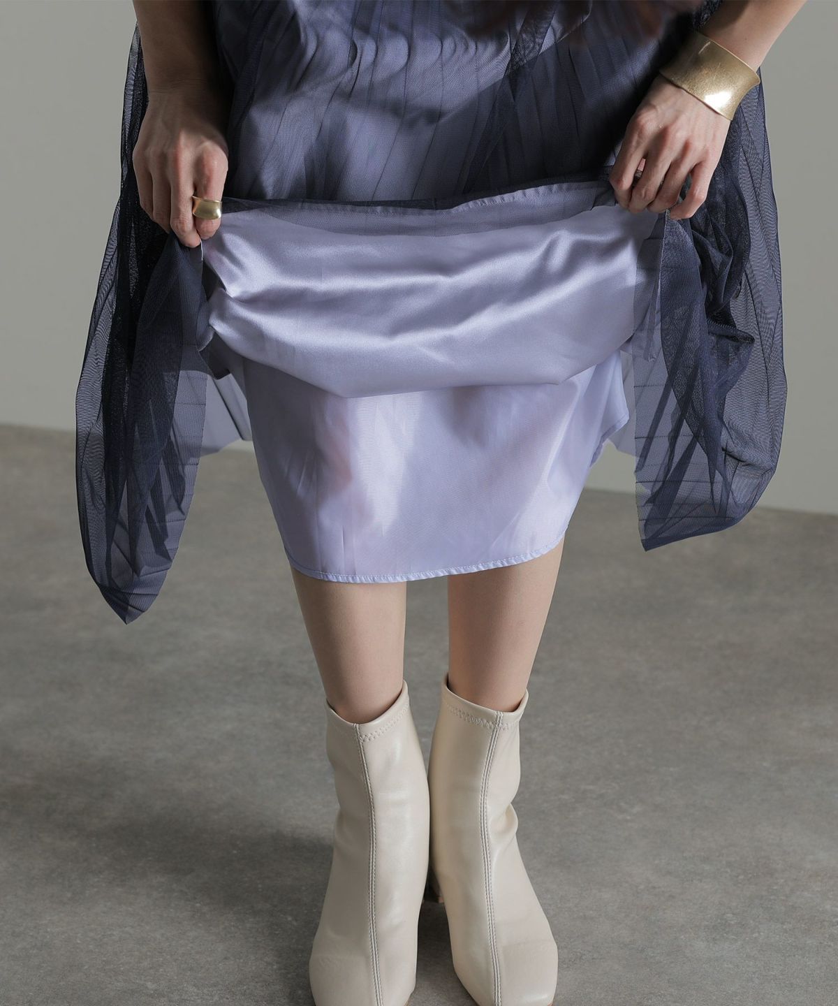シンプルなデザインが上品で大人っぽい マイクロチュールセットアップワンピース