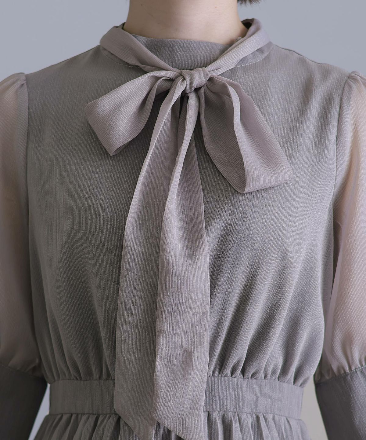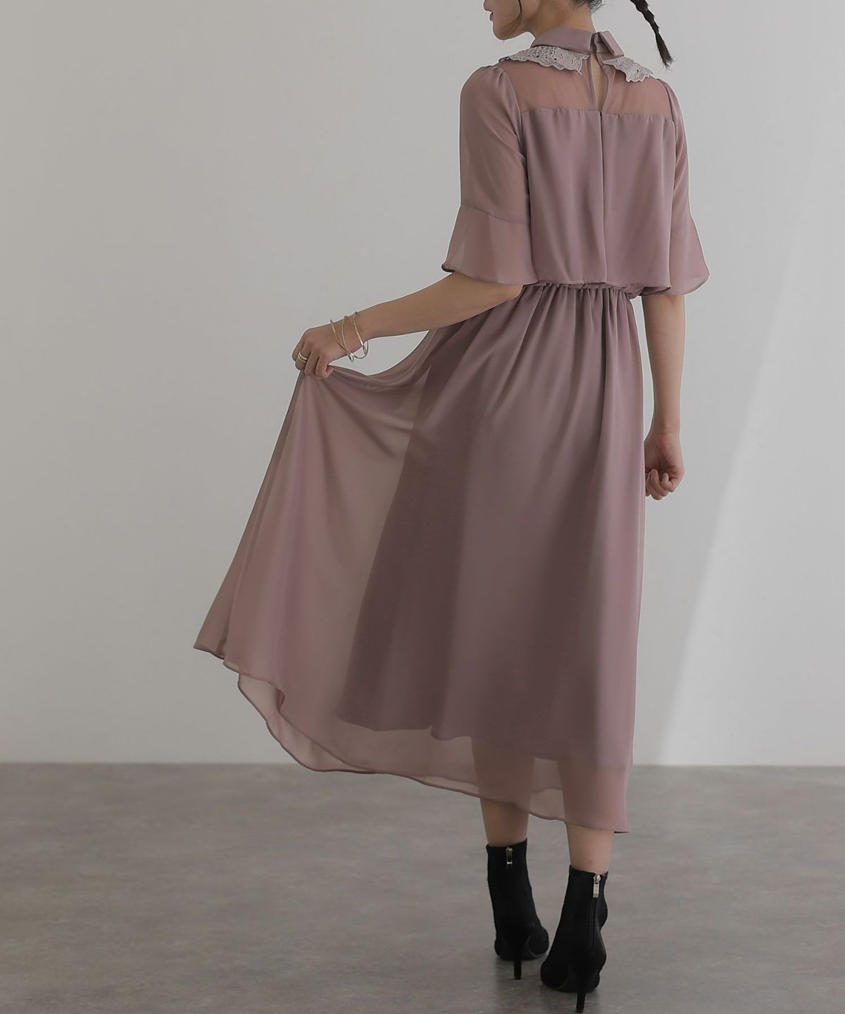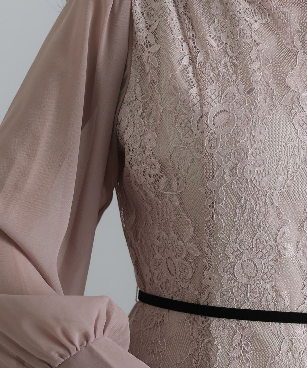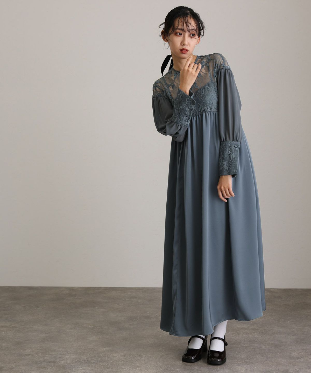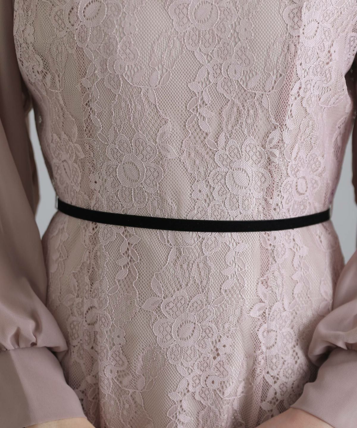 レース×シフォン レース×シフォンベロアリボンワンピース