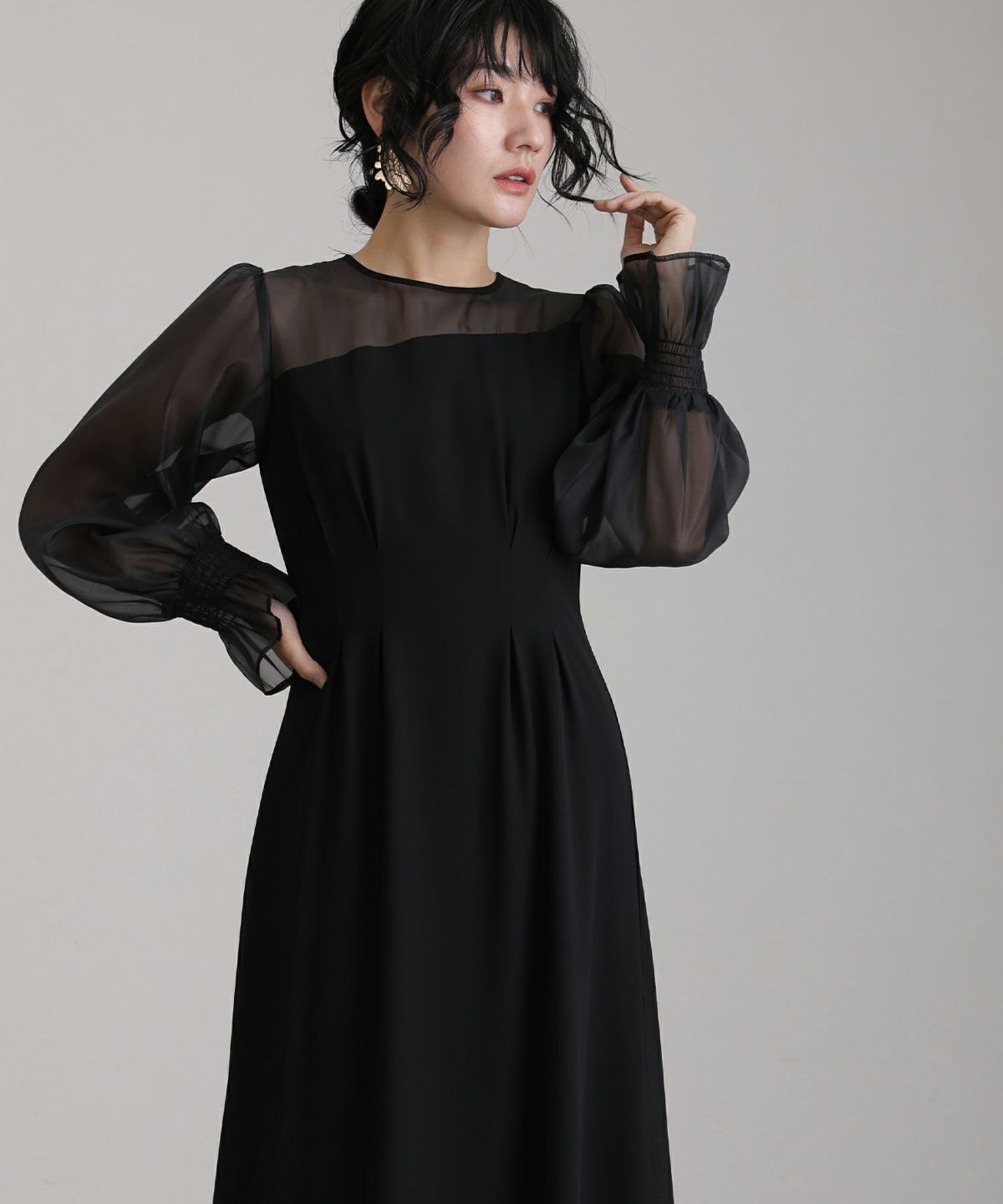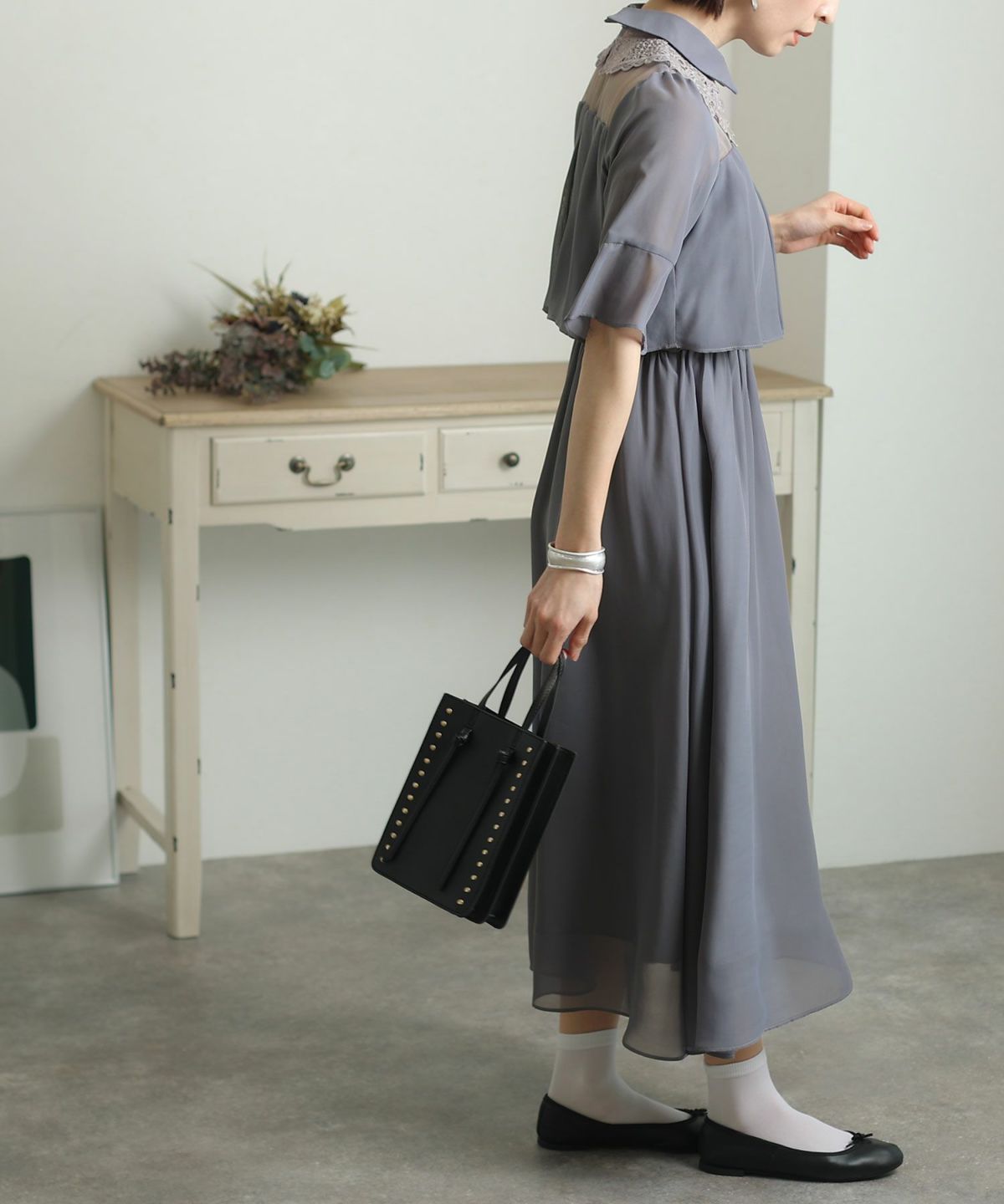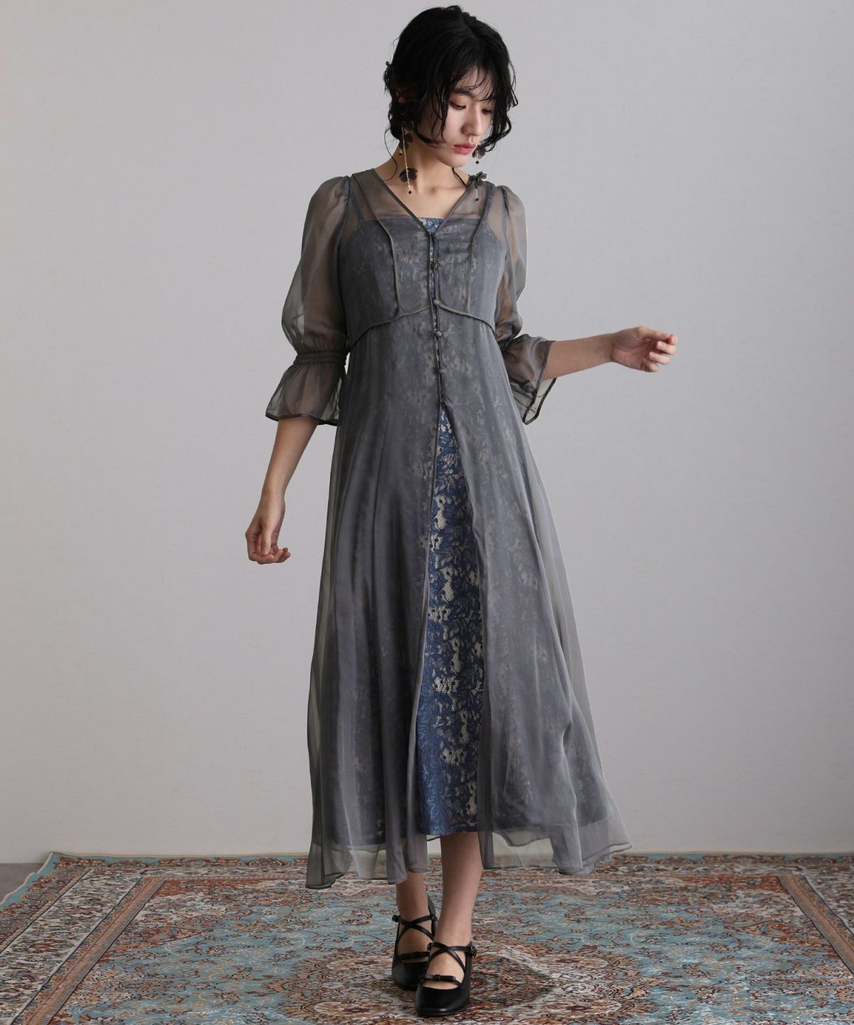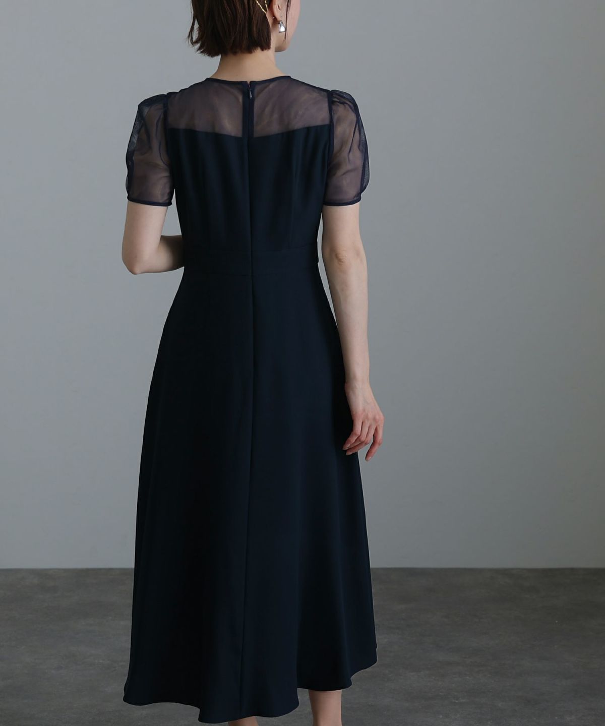 オーガンジー素材の二重袖が可愛い 二重袖フィレ・レース風ワンピース