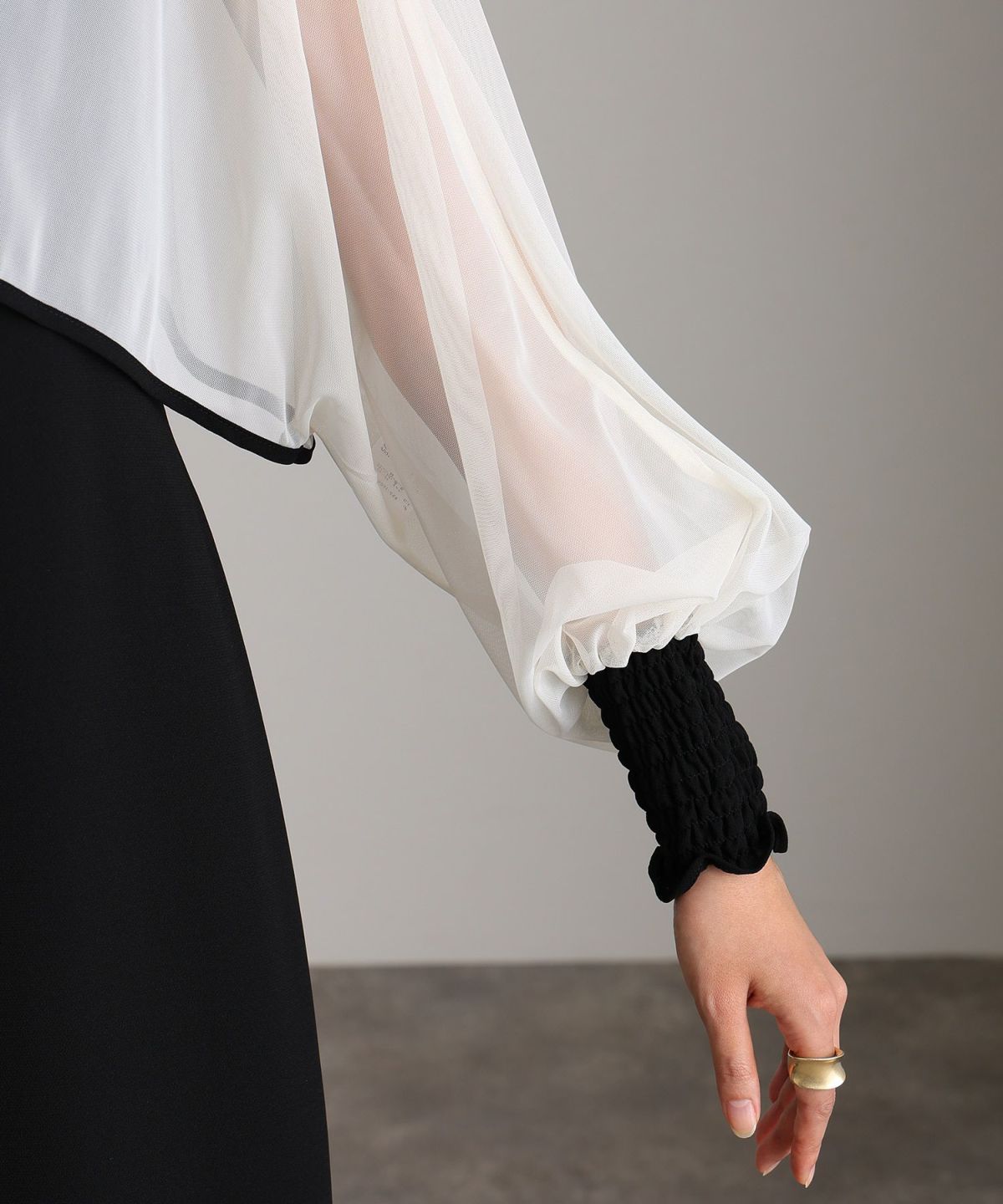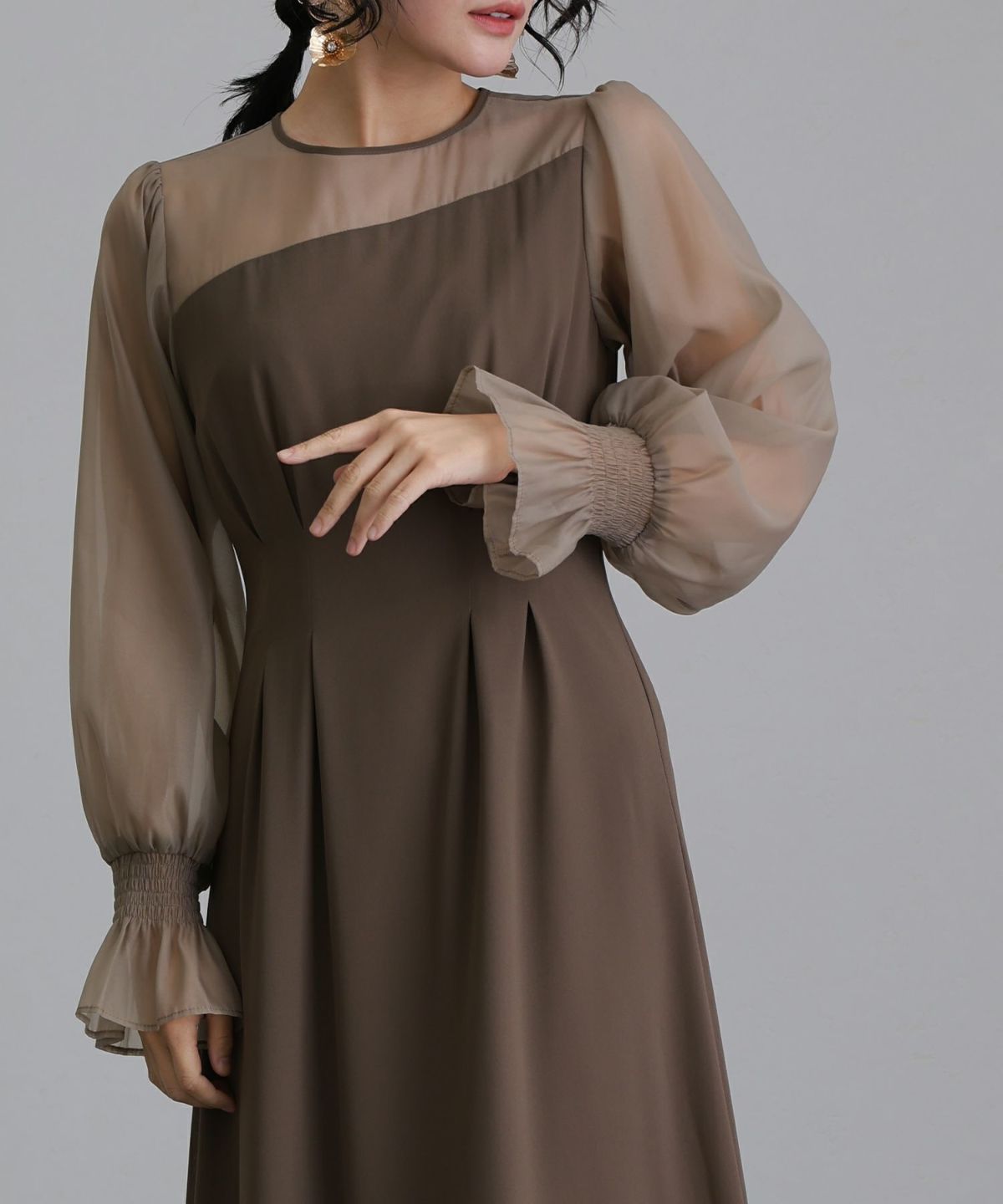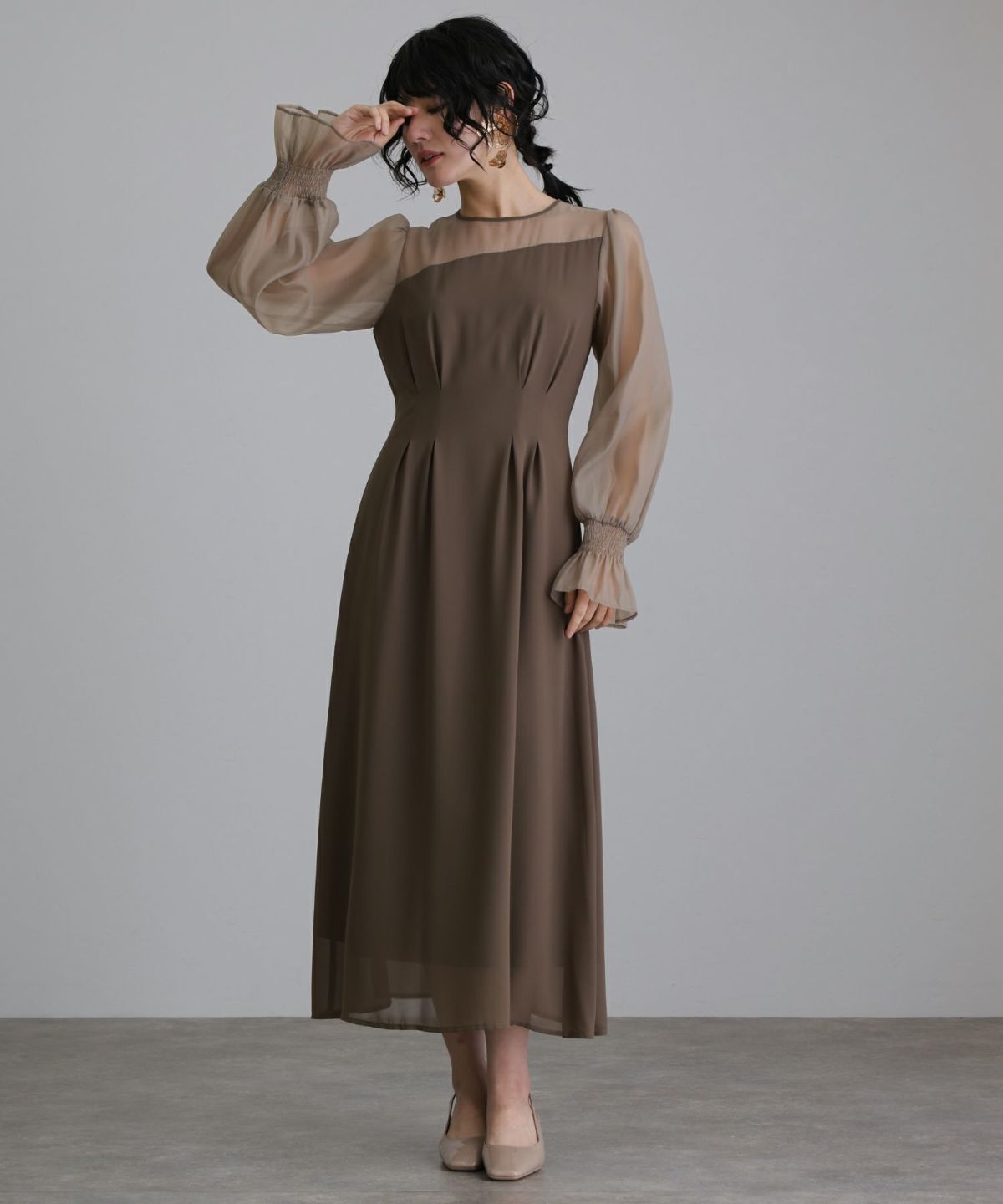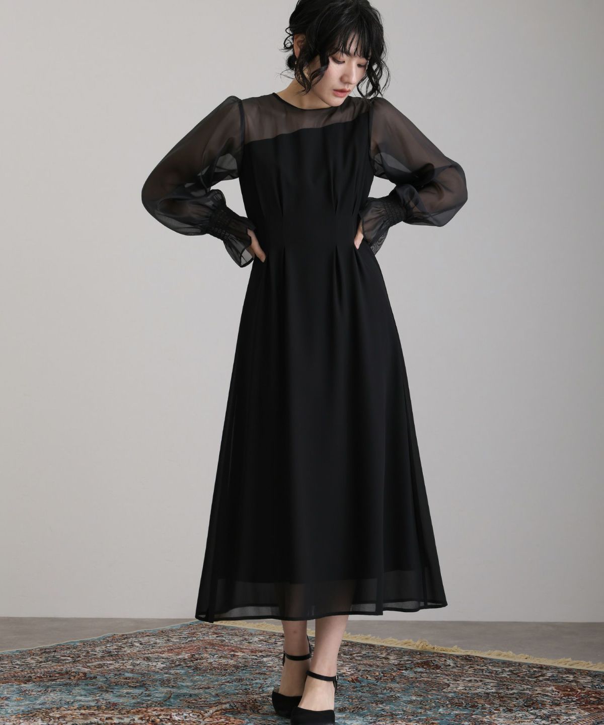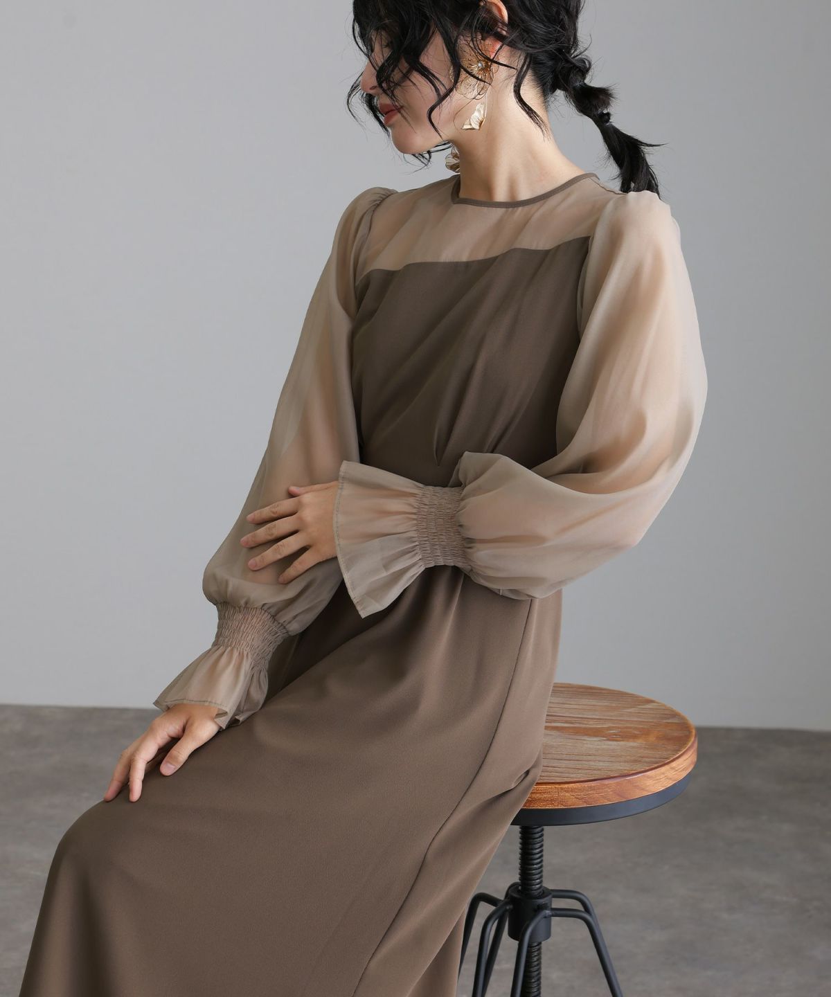 オーガンジー素材の二重袖が可愛い 二重袖フィレ・レース風ワンピース