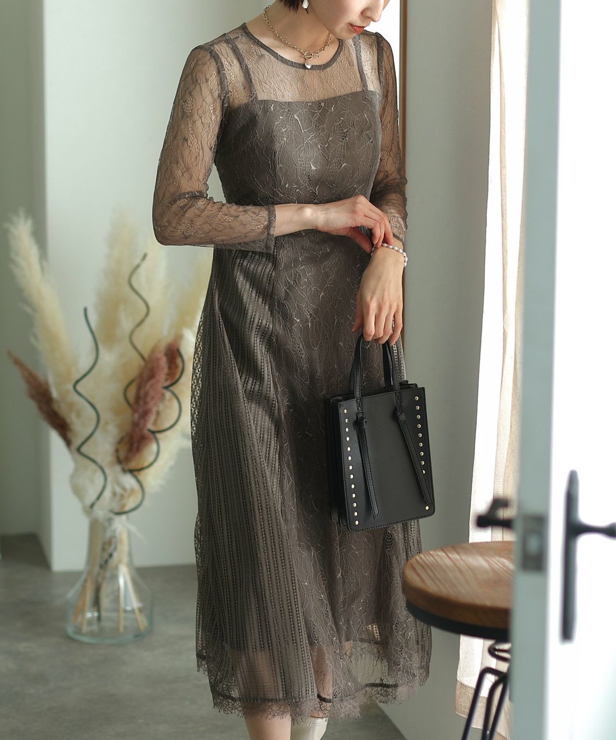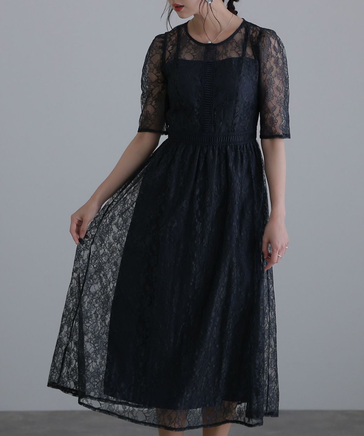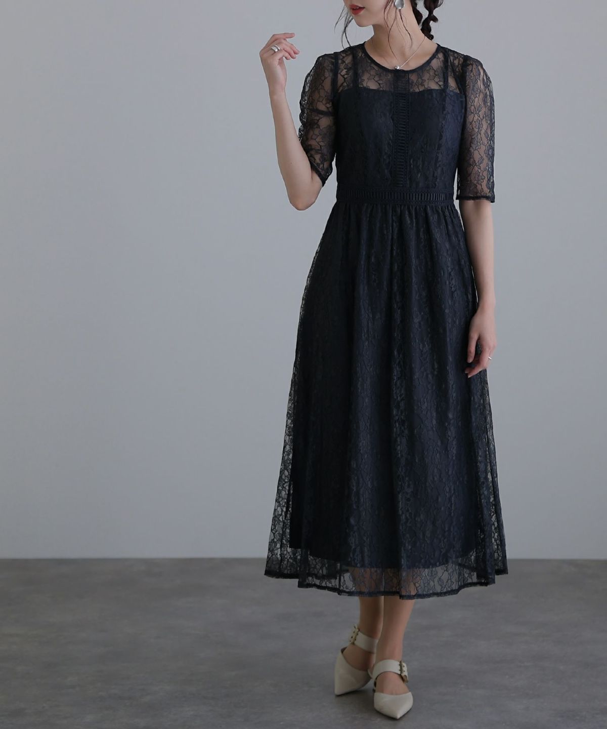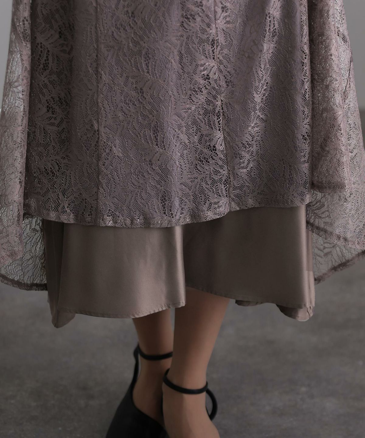 ラメレースが華やかなインナー付きワンピース インナー付きラメレースワンピース