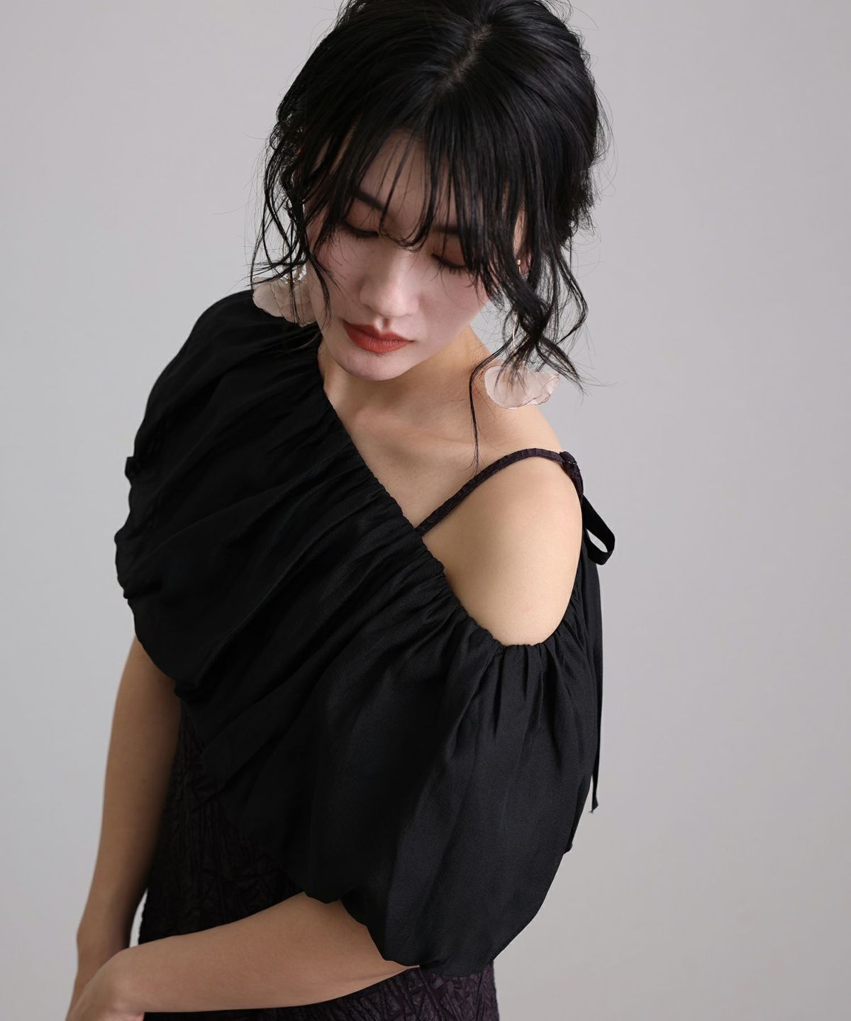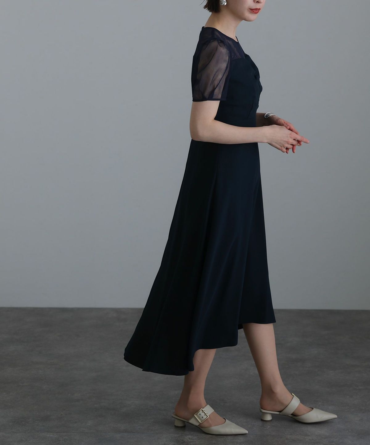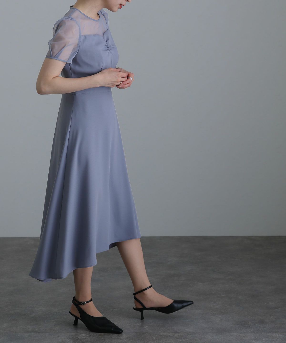 胸元のアシンメトリーな切り替えが特徴的 タック&アシンメトリーフレアドレス