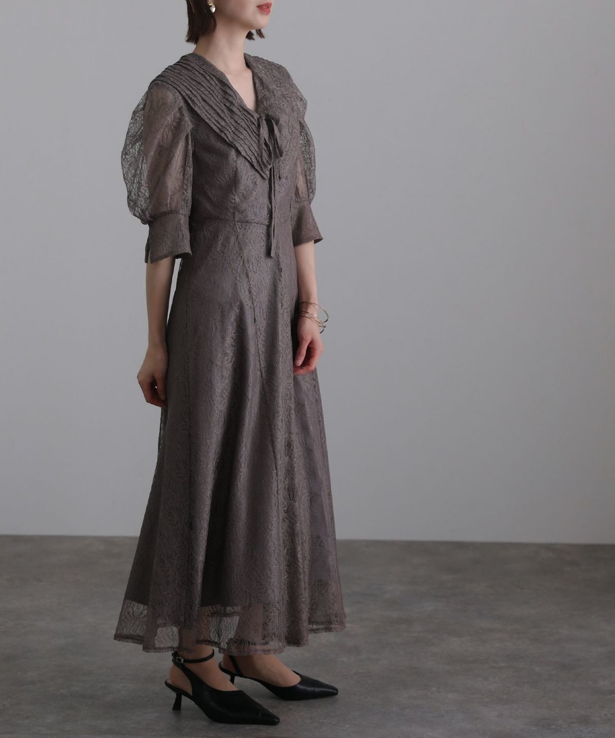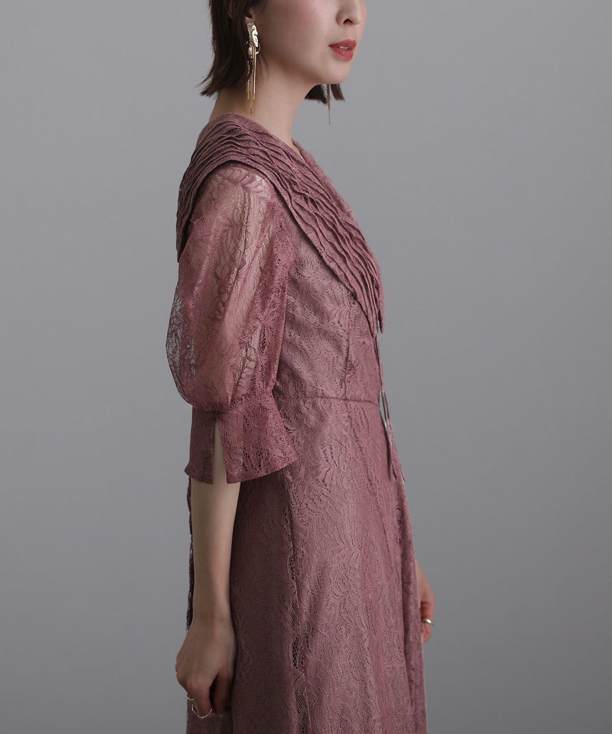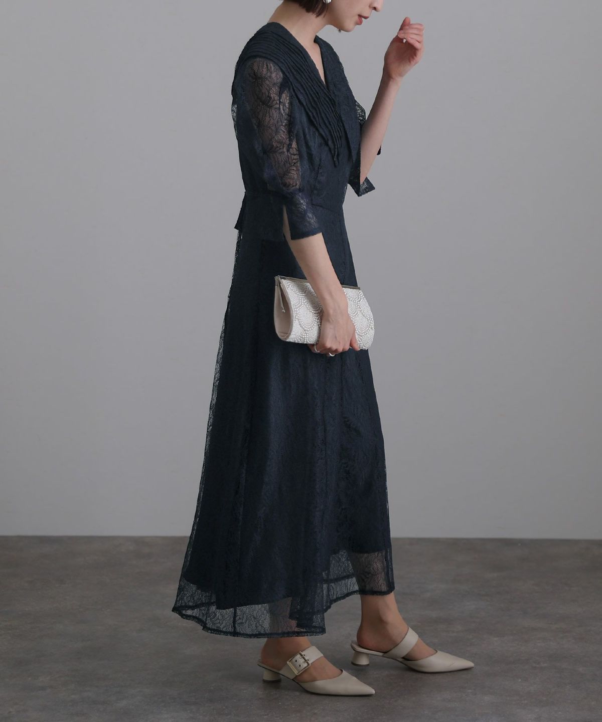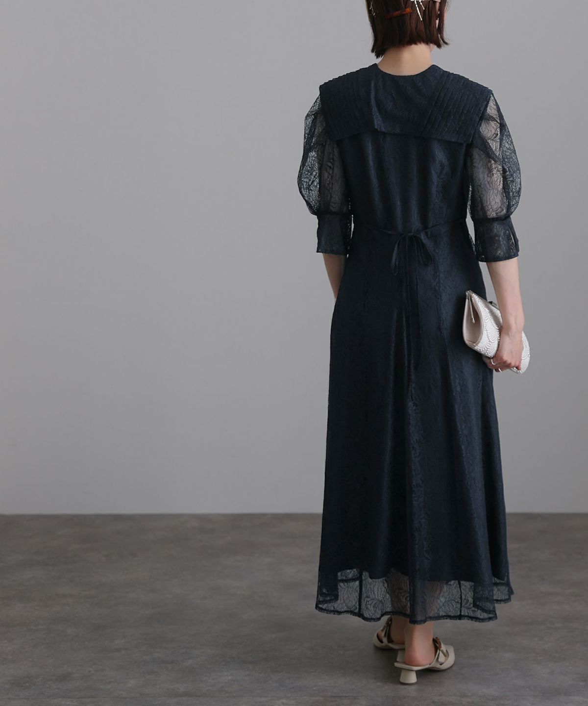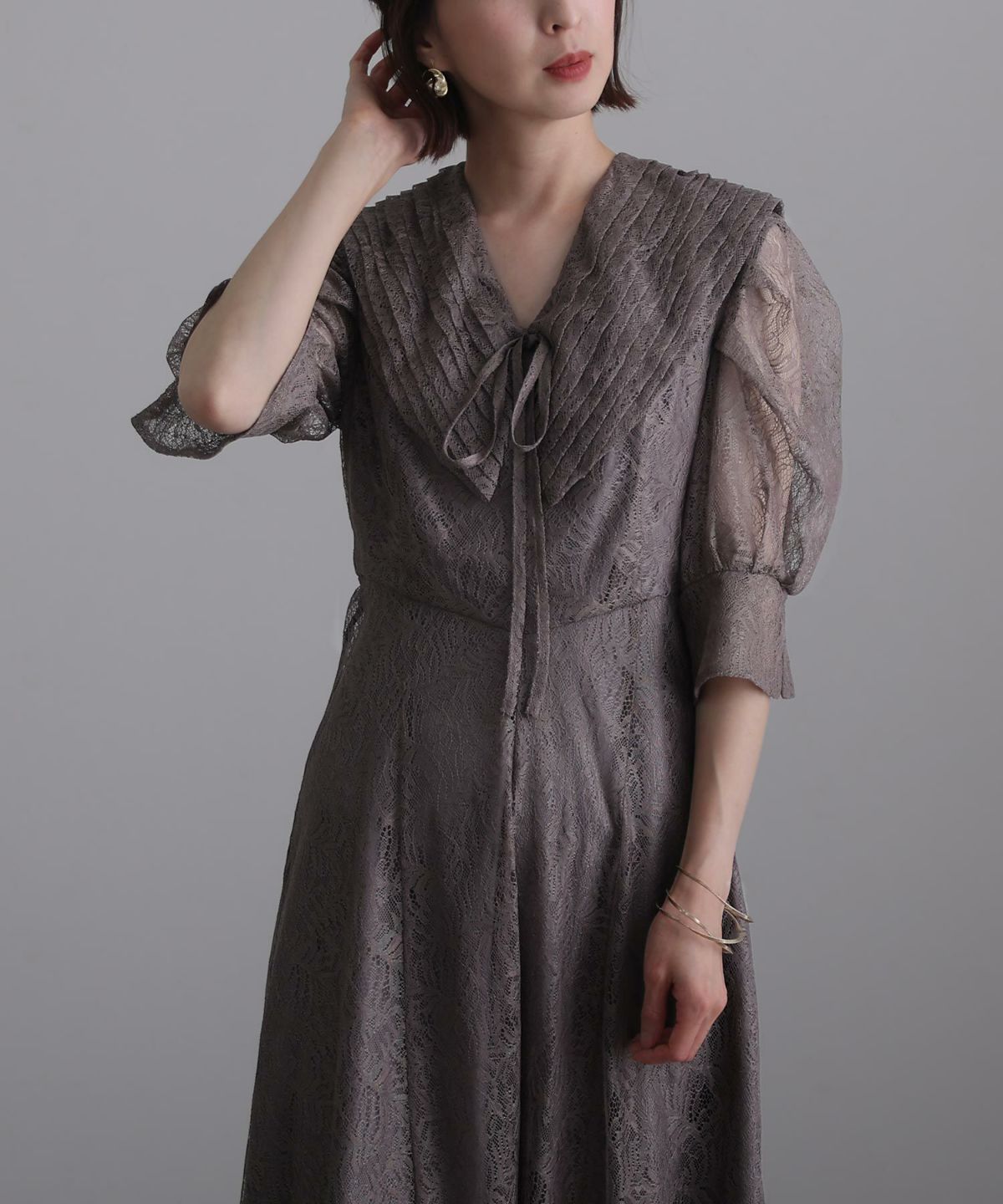 セーラーカラー×レースで大人可愛い ピンタックセーラーカラーレースワンピース
