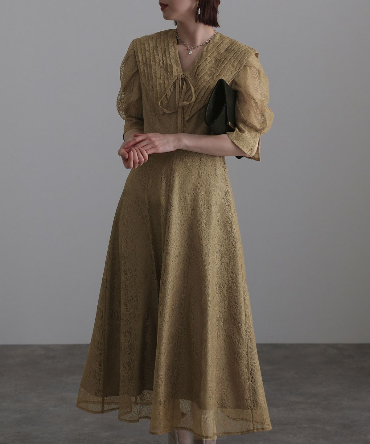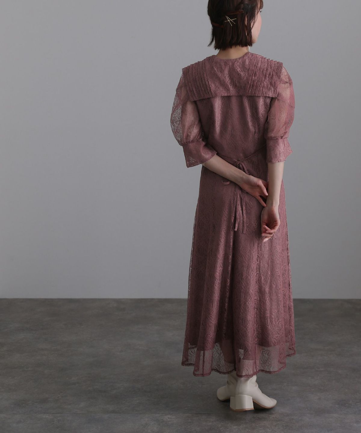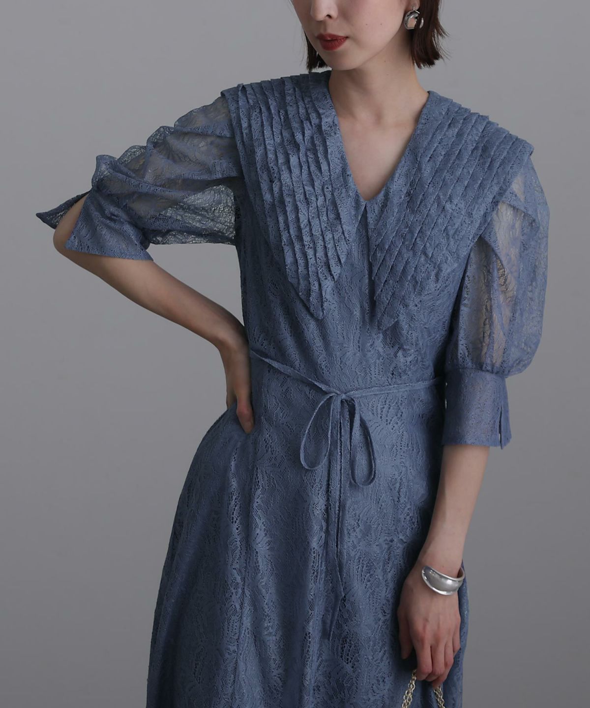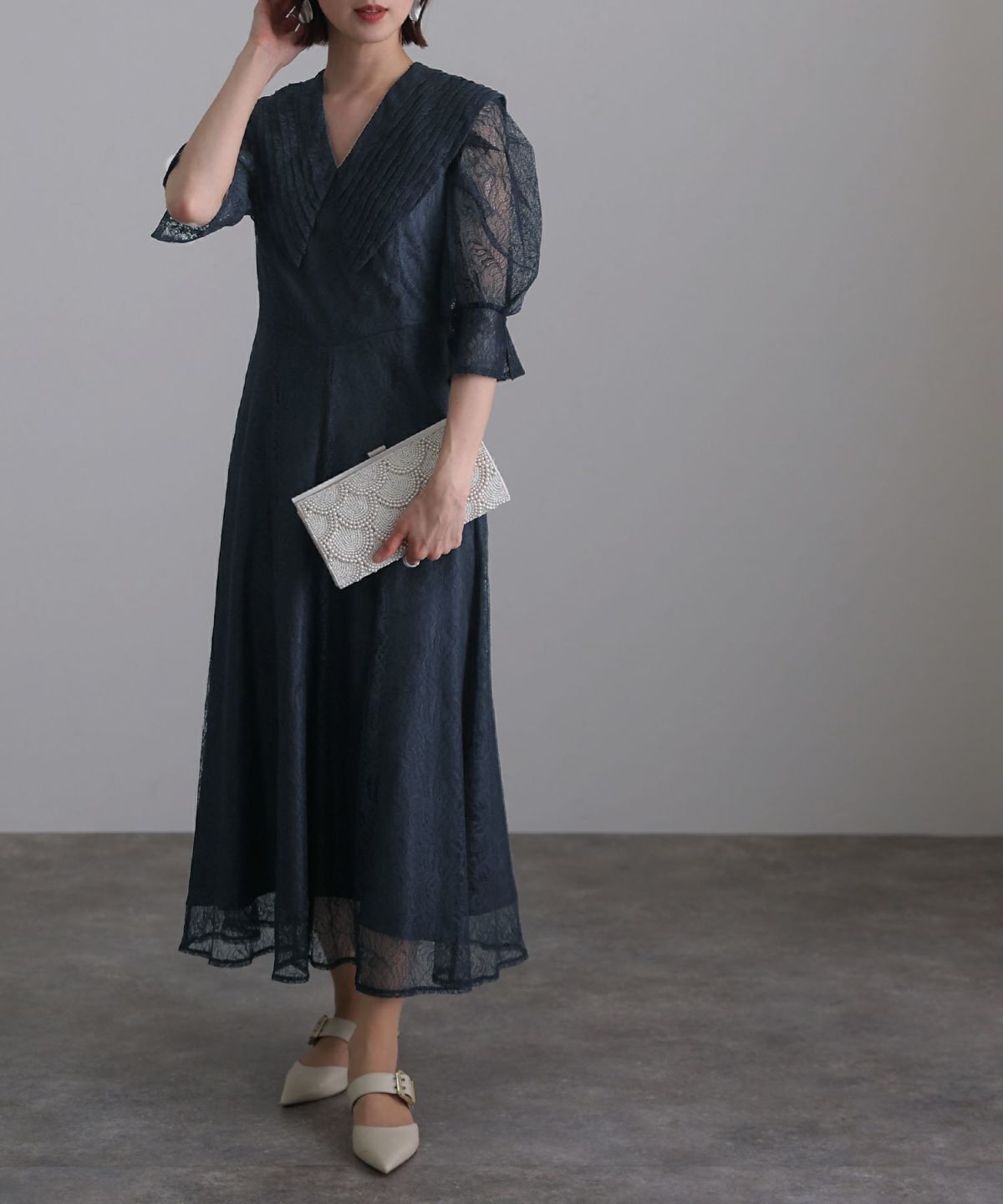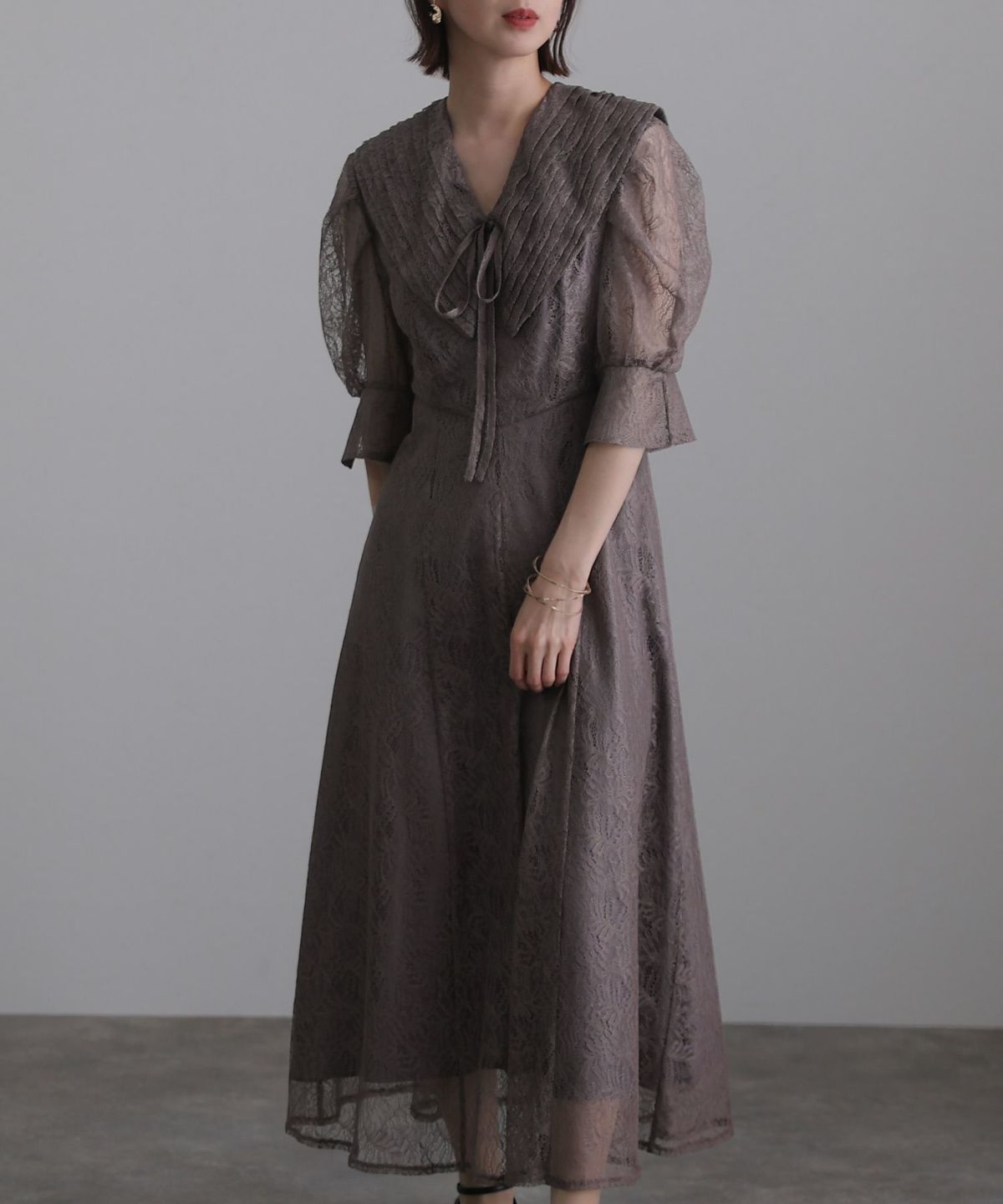 セーラーカラー×レースで大人可愛い ピンタックセーラーカラーレースワンピース