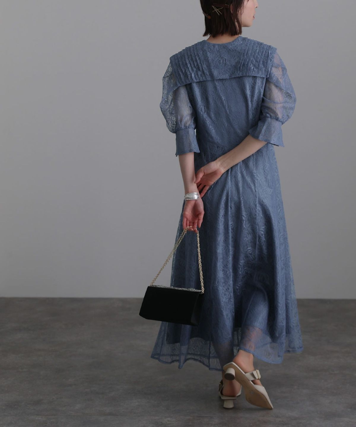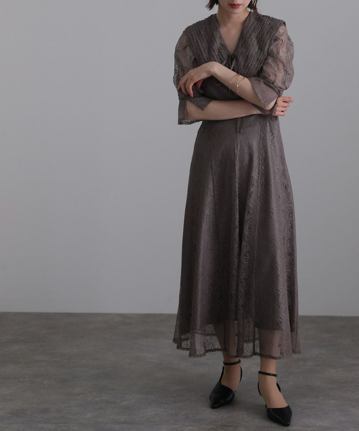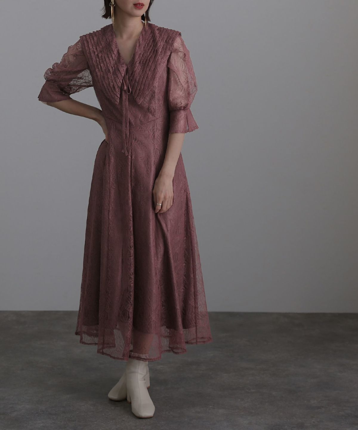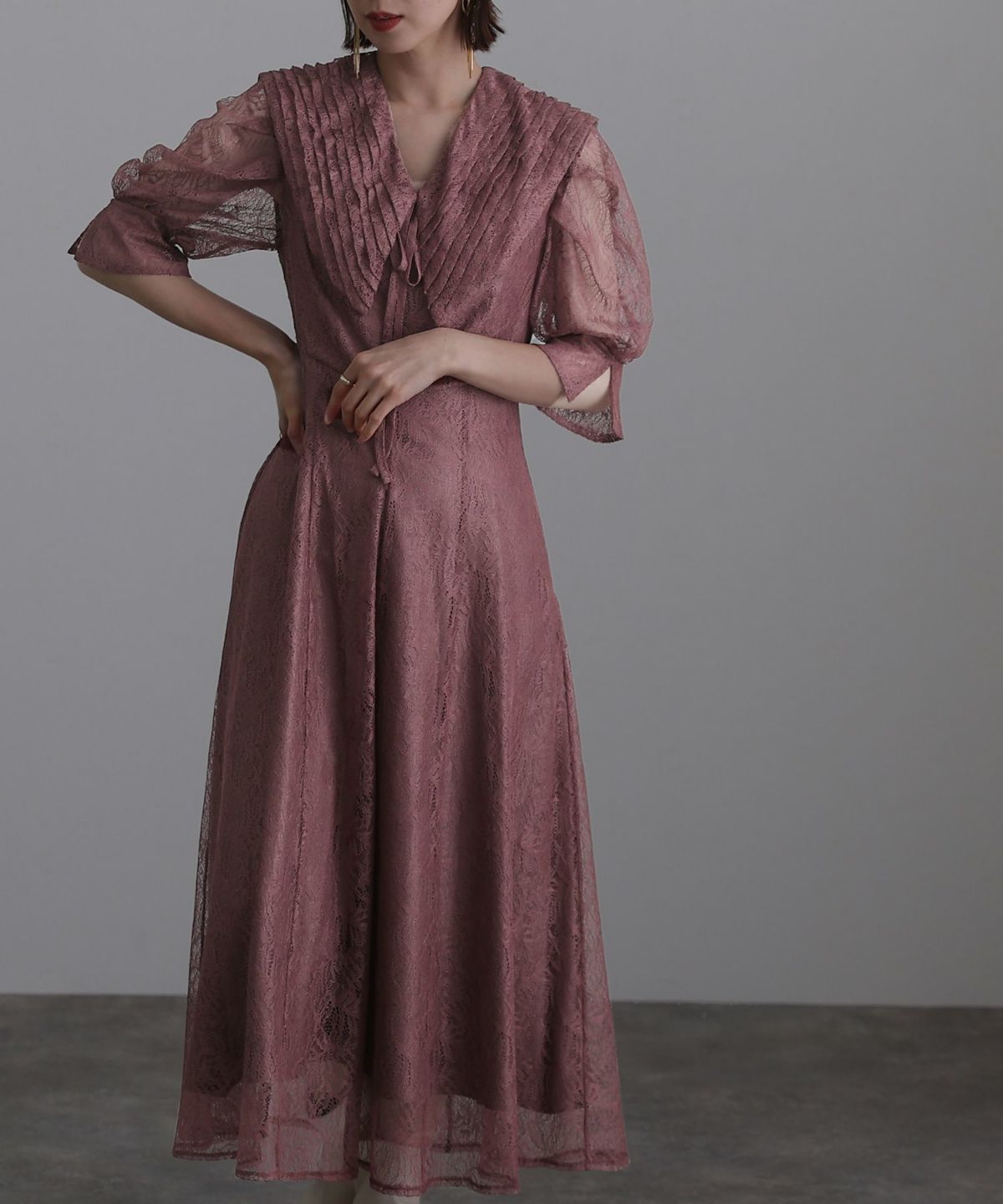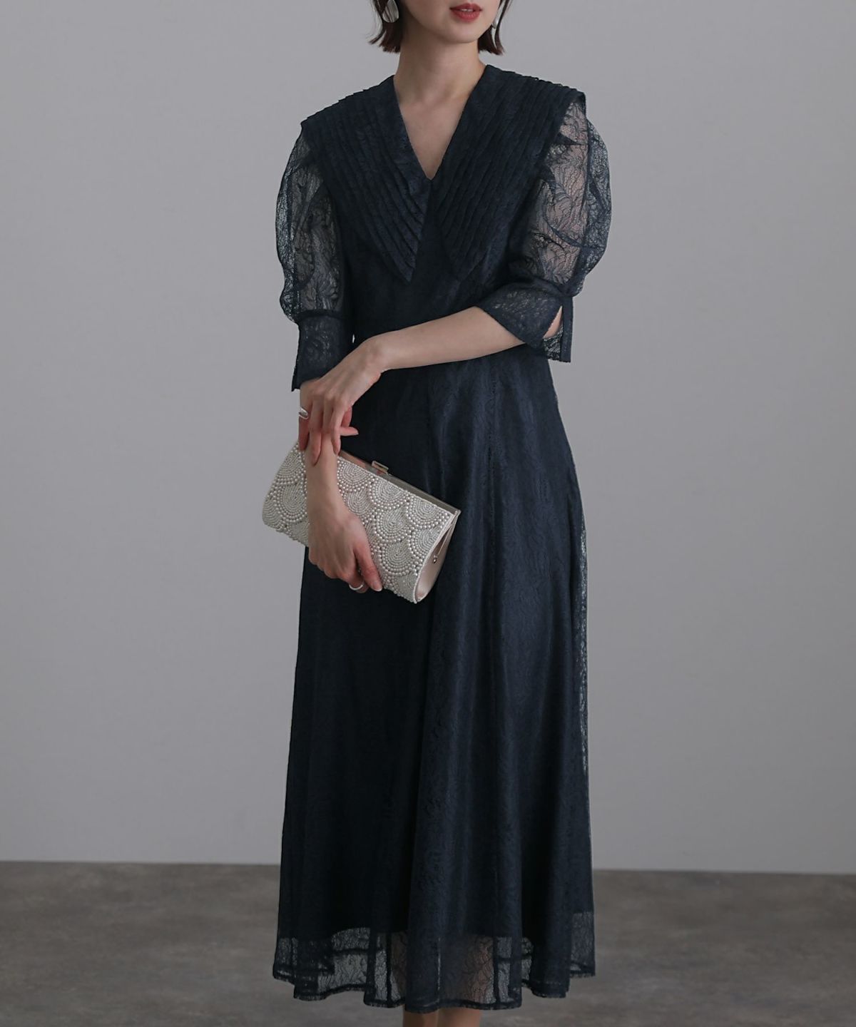 セーラーカラー×レースで大人可愛い ピンタックセーラーカラーレースワンピース