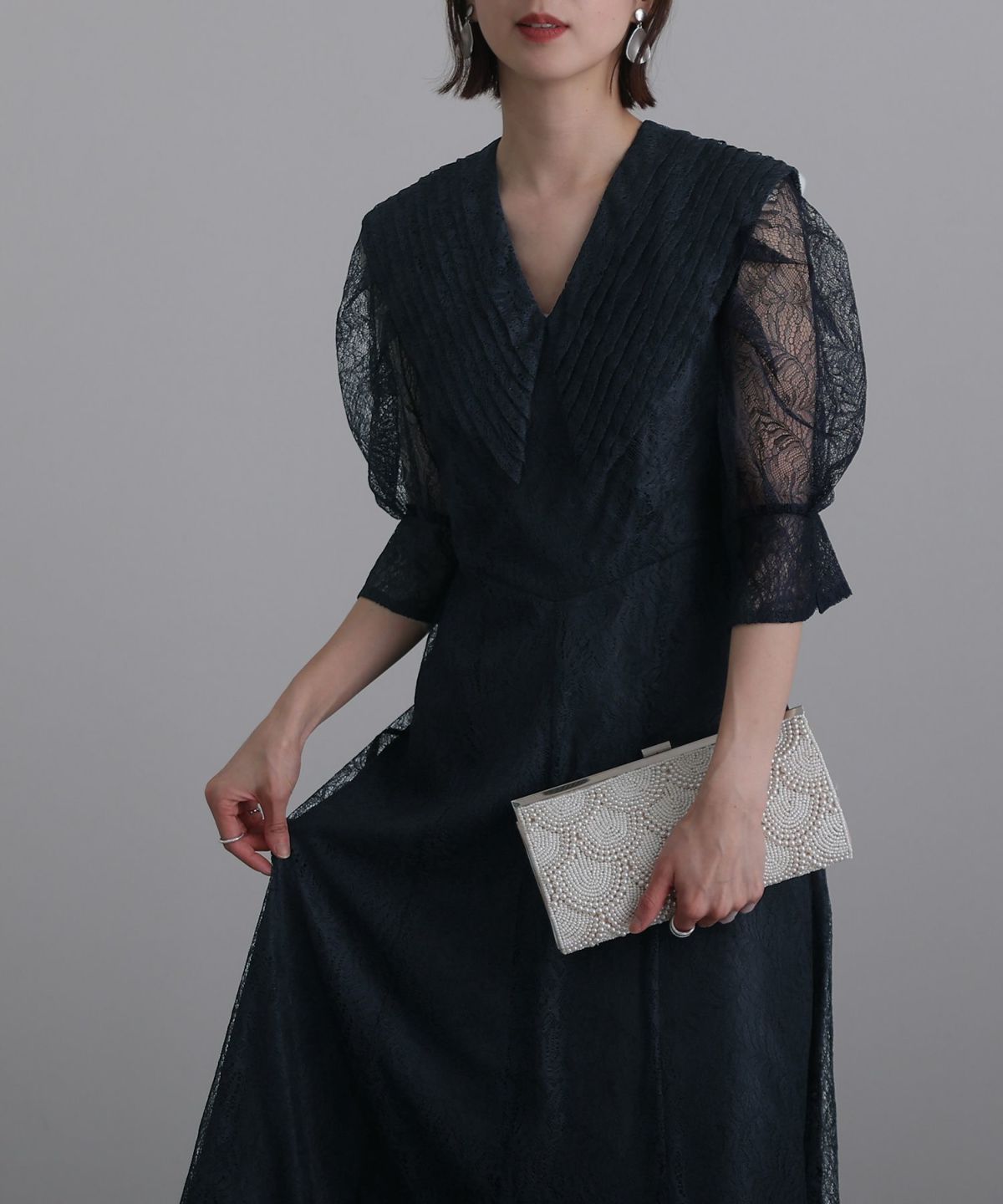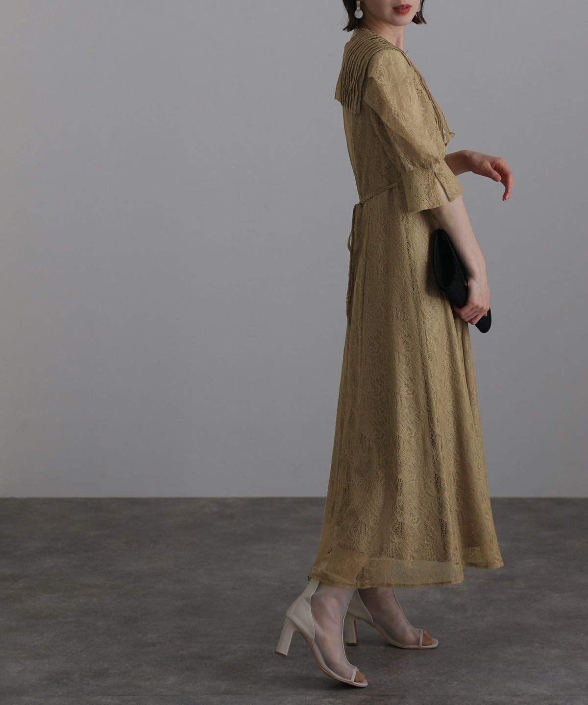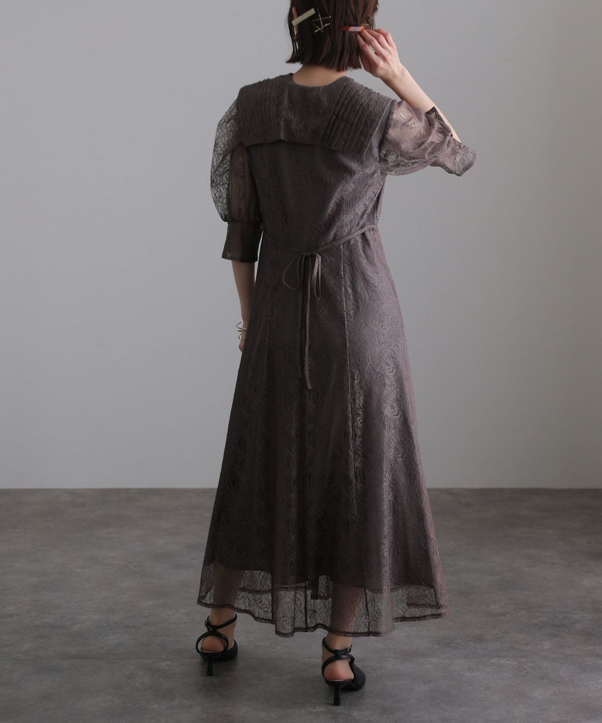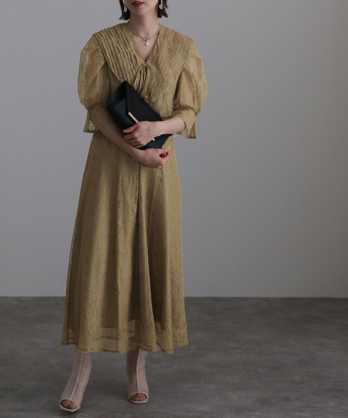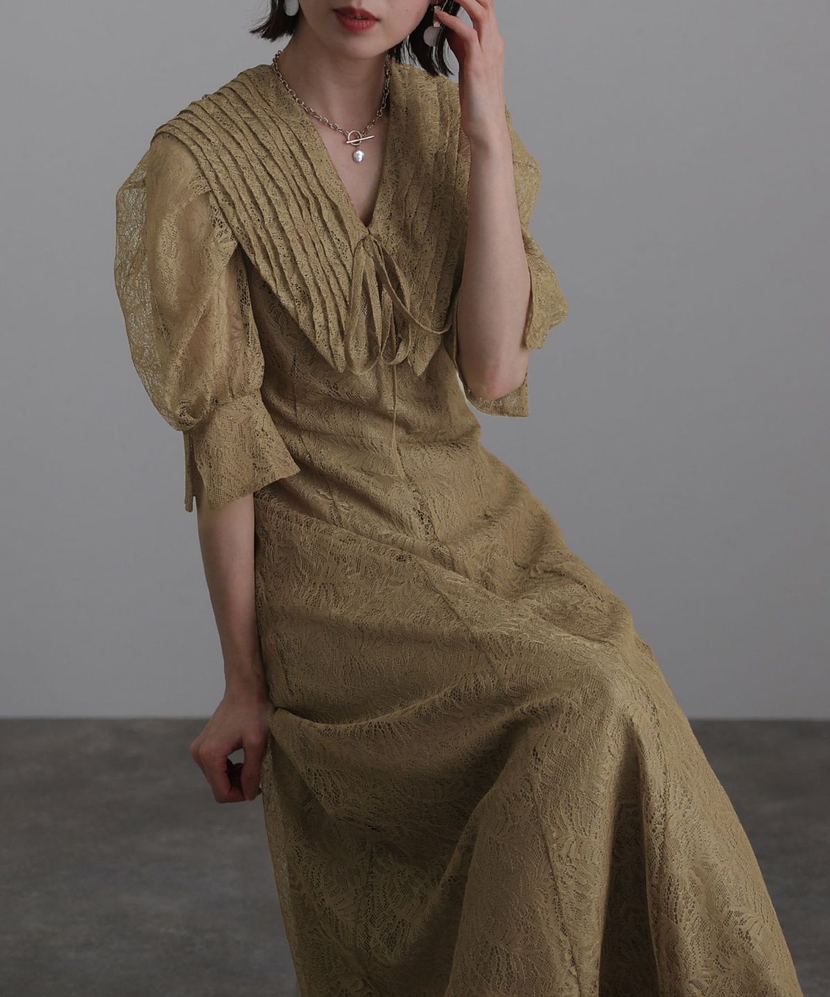 セーラーカラー×レースで大人可愛い ピンタックセーラーカラーレースワンピース