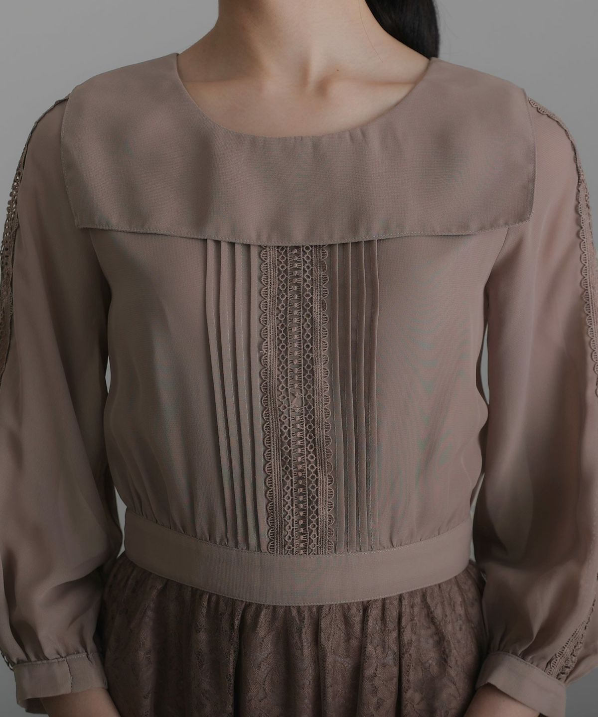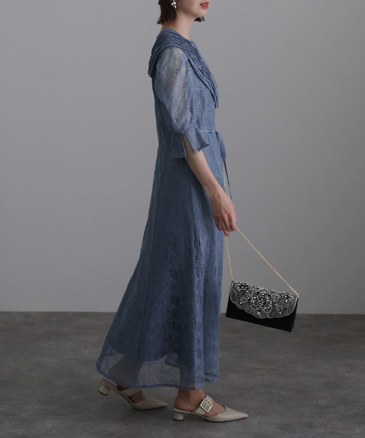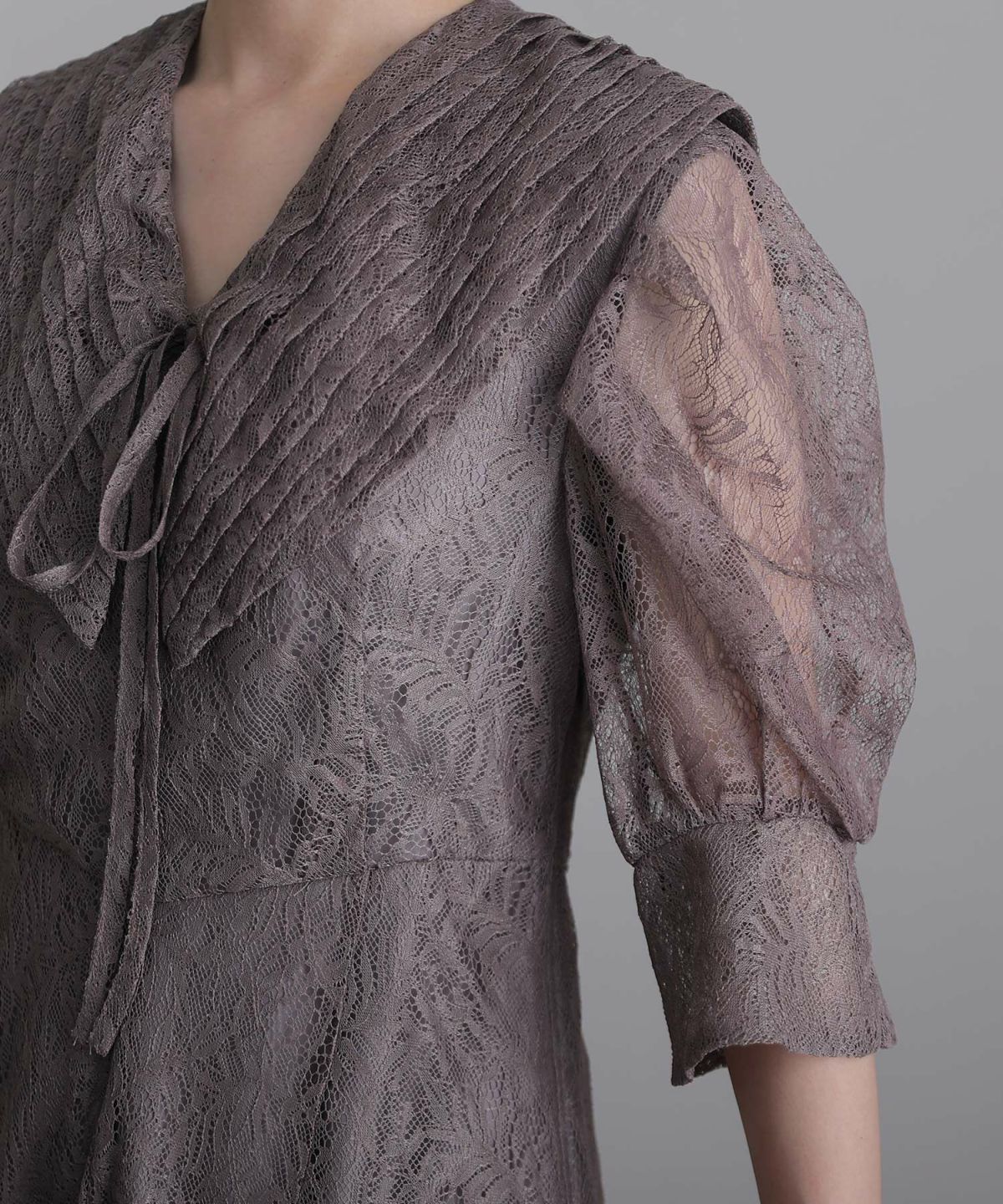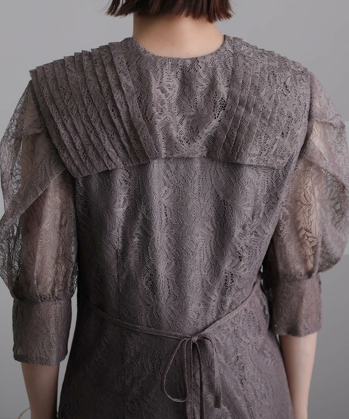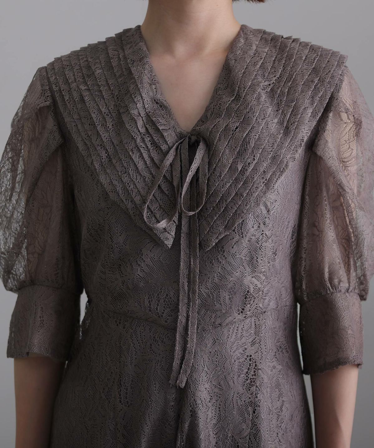 セーラーカラー×レースで大人可愛い ピンタックセーラーカラーレースワンピース