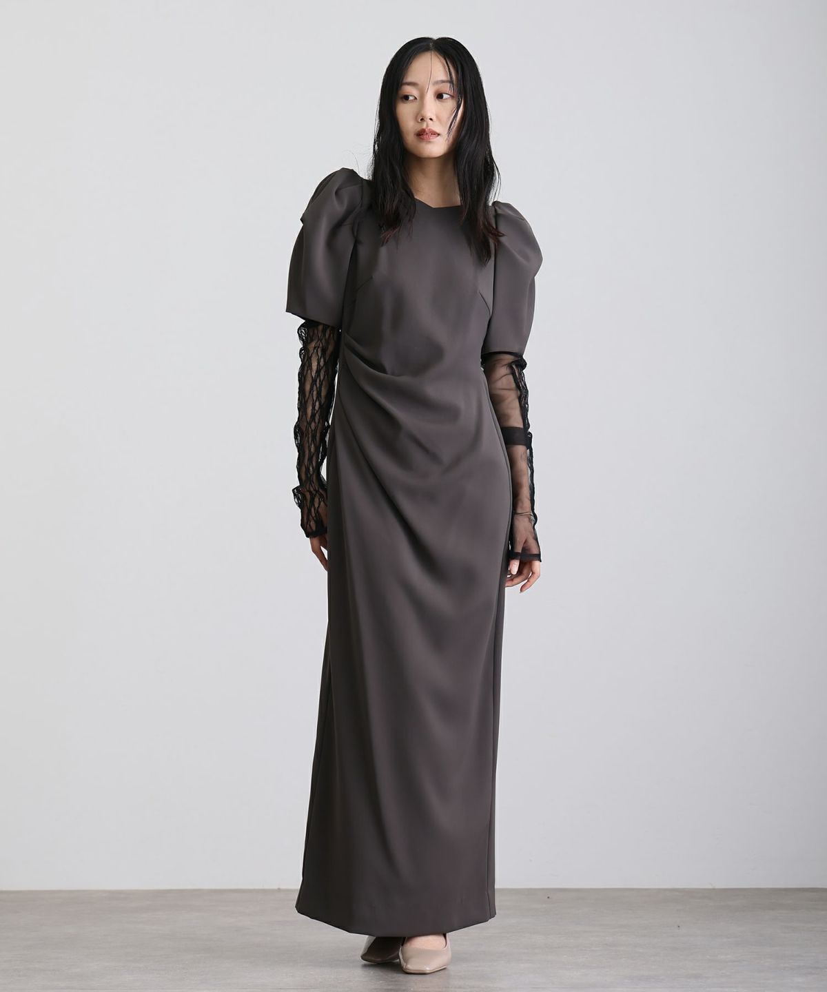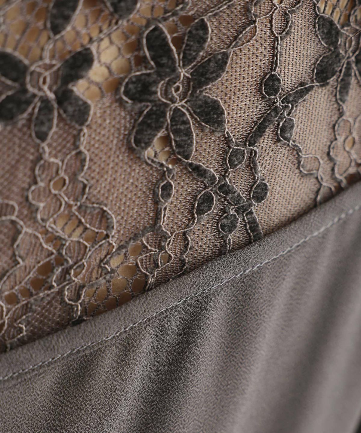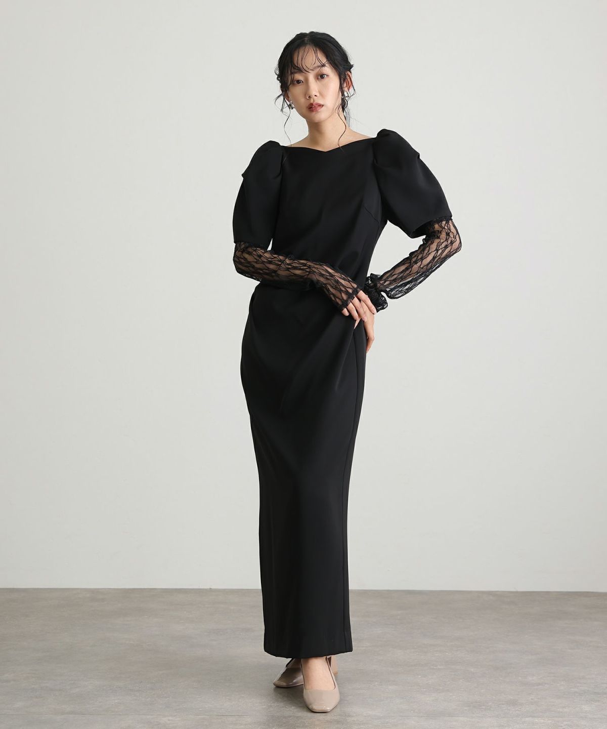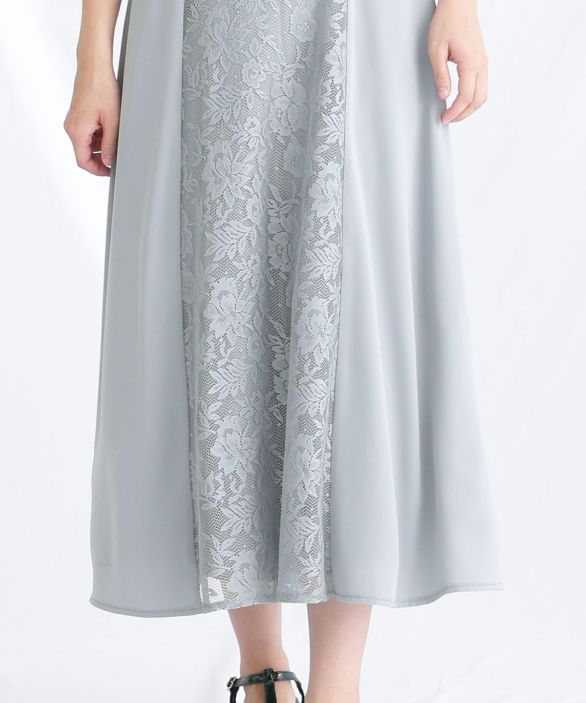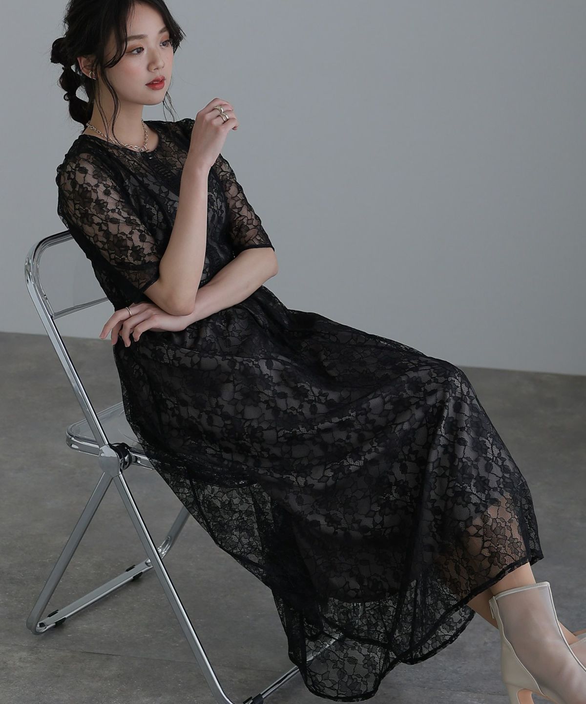 花柄レースが上品で大人な雰囲気に 袖スリット異素材切替レースドレス