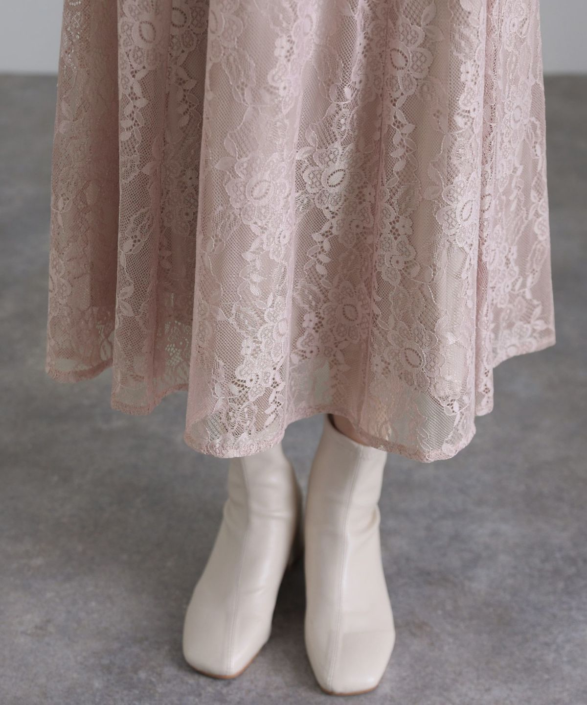 花柄レース×はしごレースのデザインが魅力的 バックリボン総レースワンピース