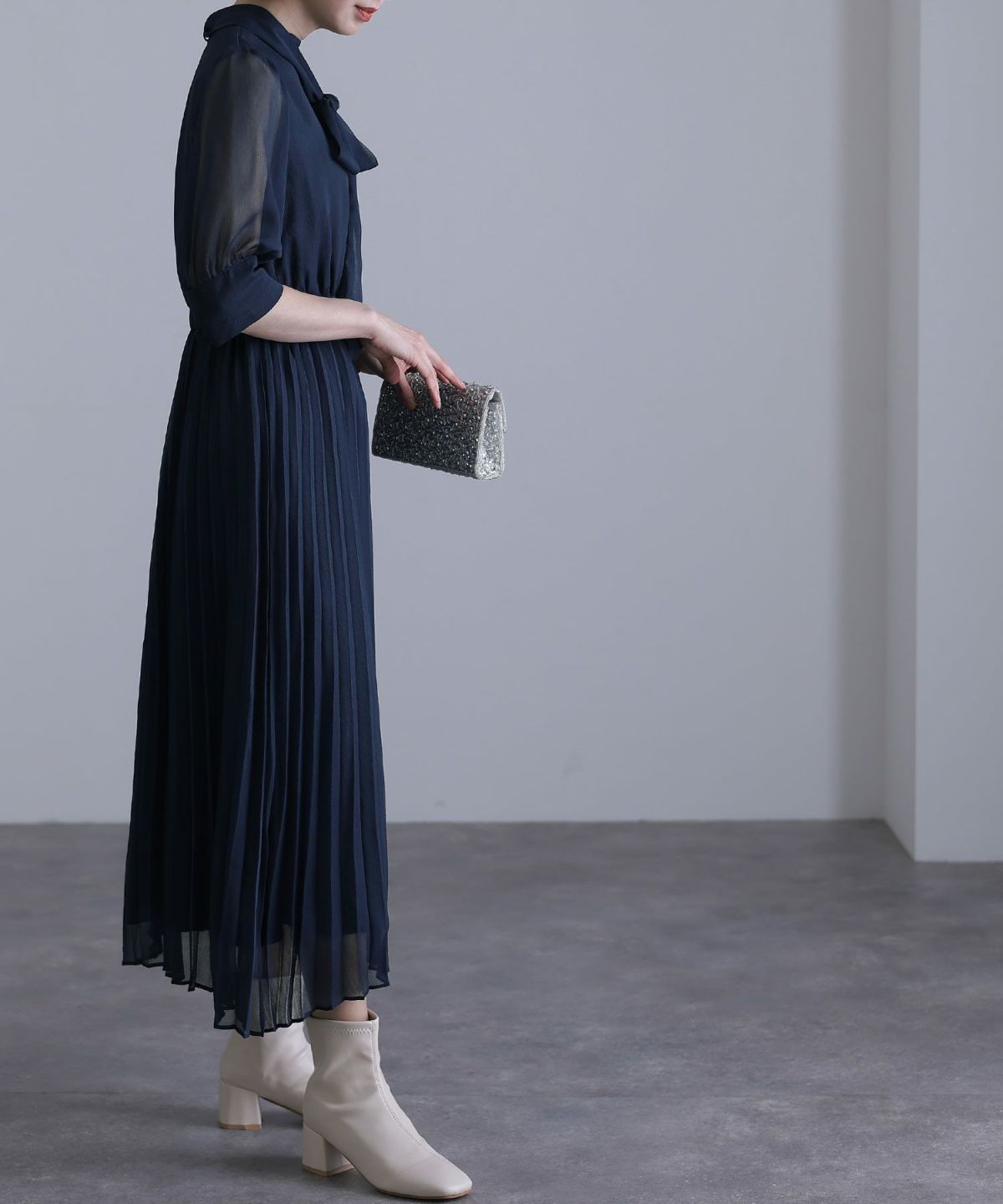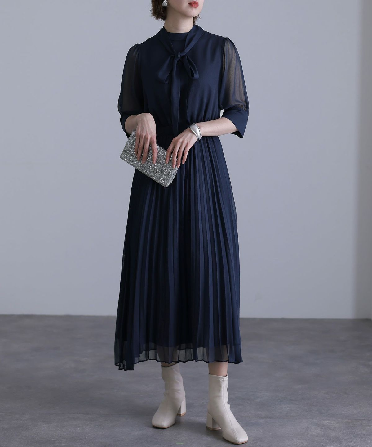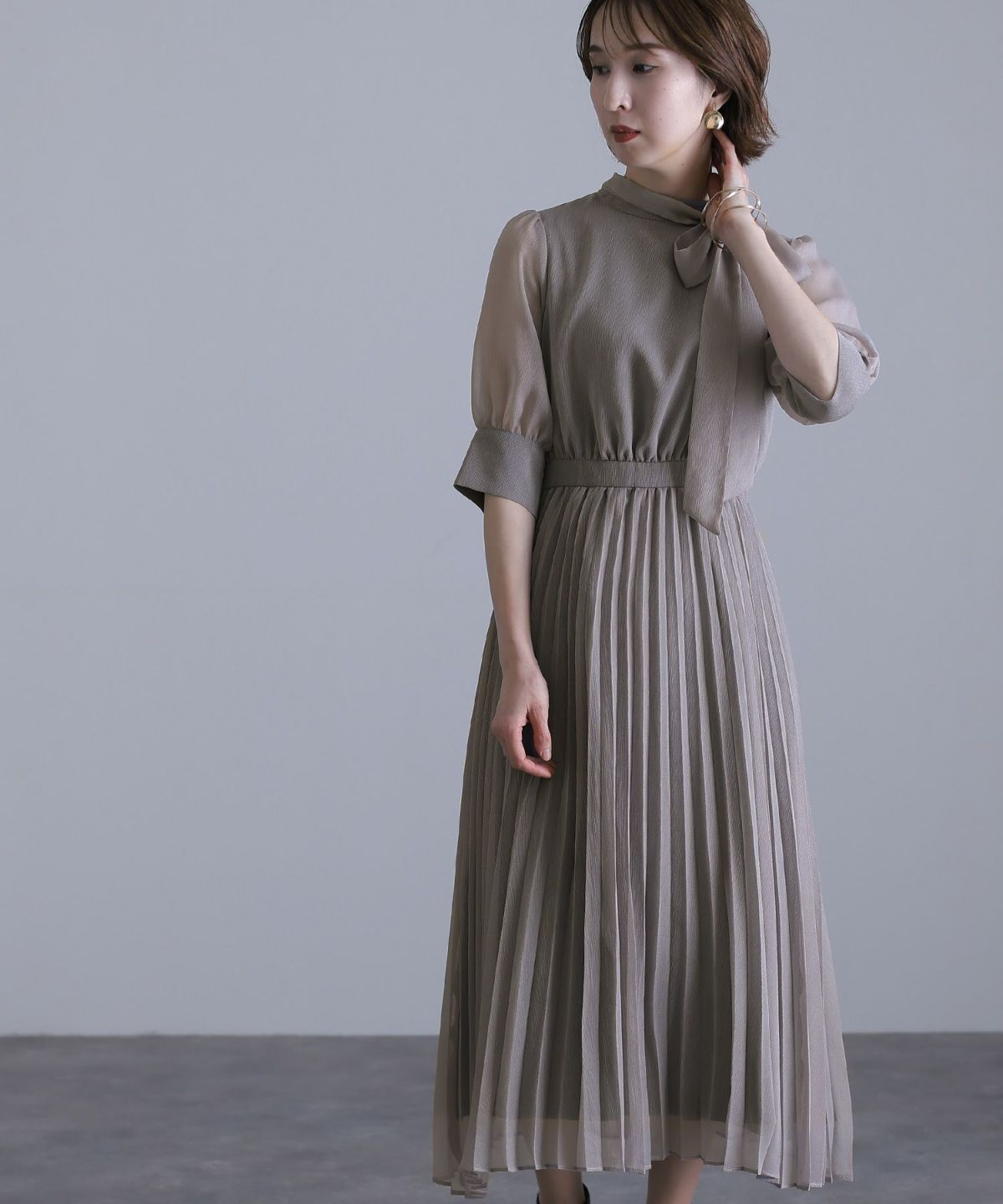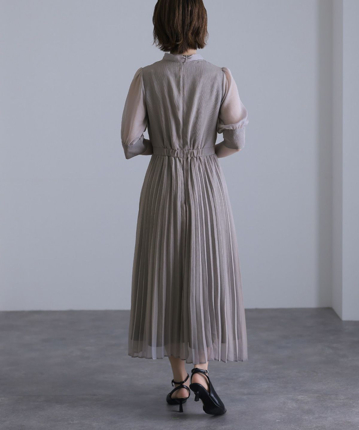 こなれ感を演出するシンプルなデザイン ラメシフォンプリーツワンピース