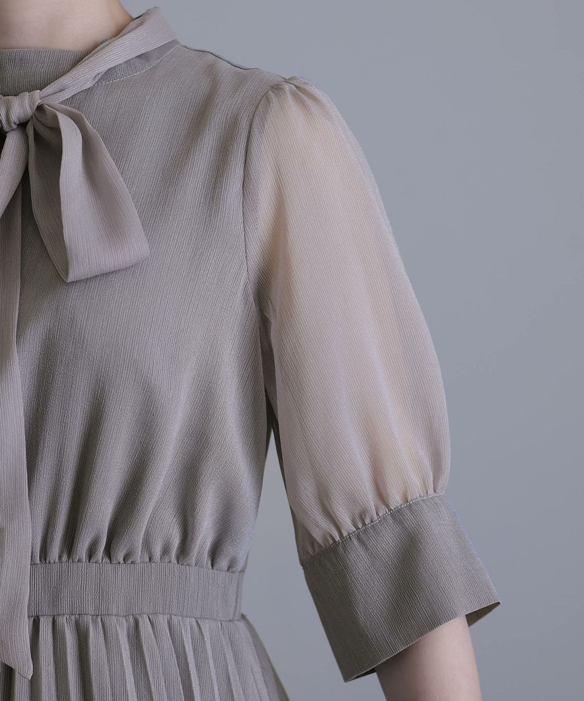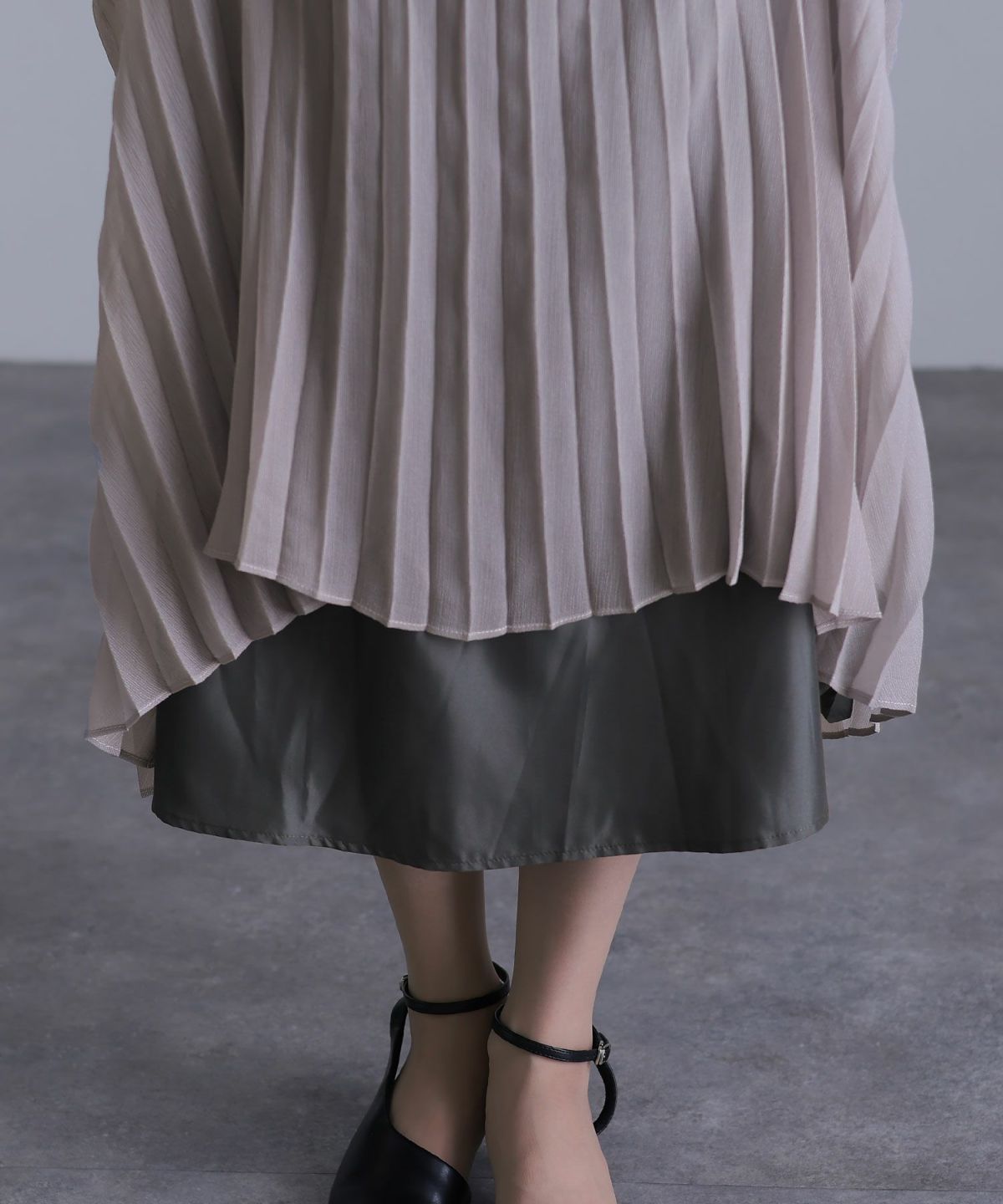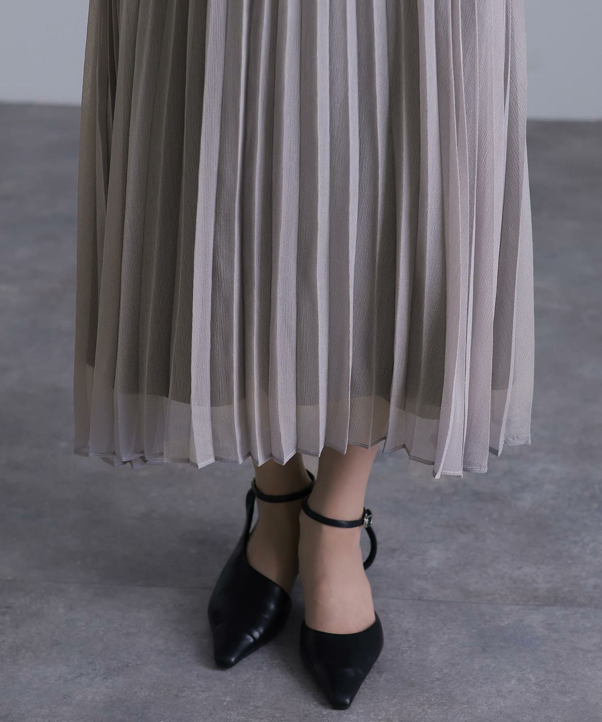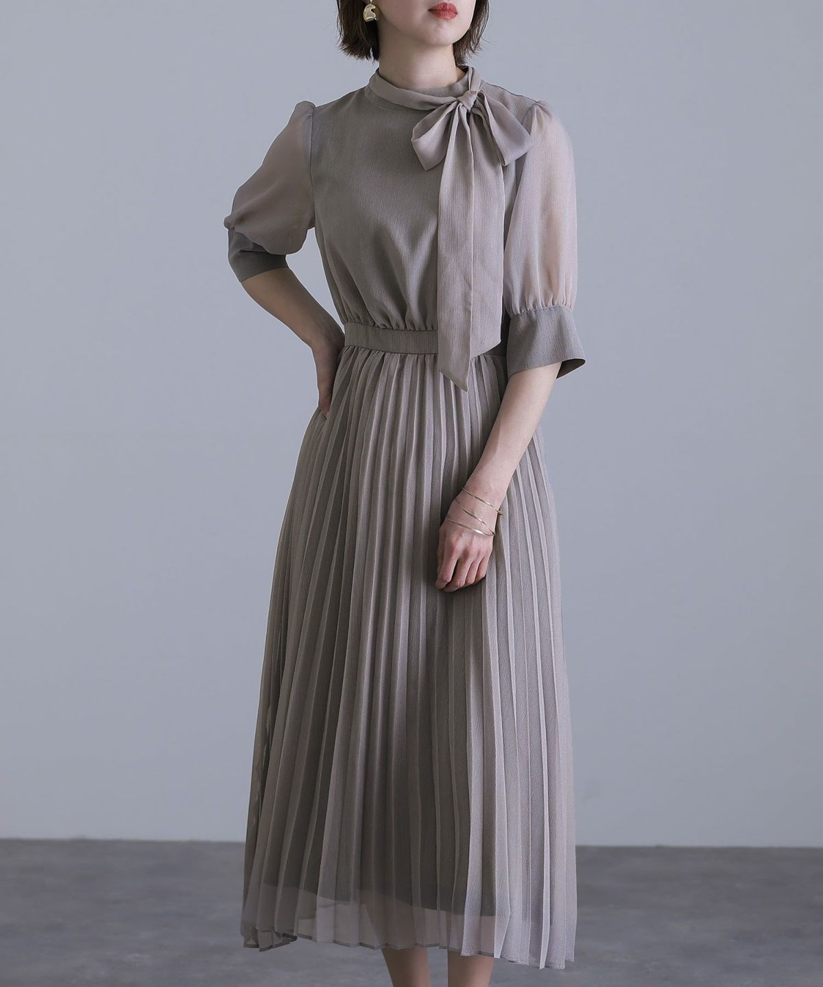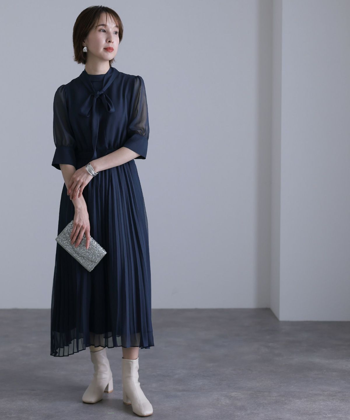 こなれ感を演出するシンプルなデザイン ラメシフォンプリーツワンピース