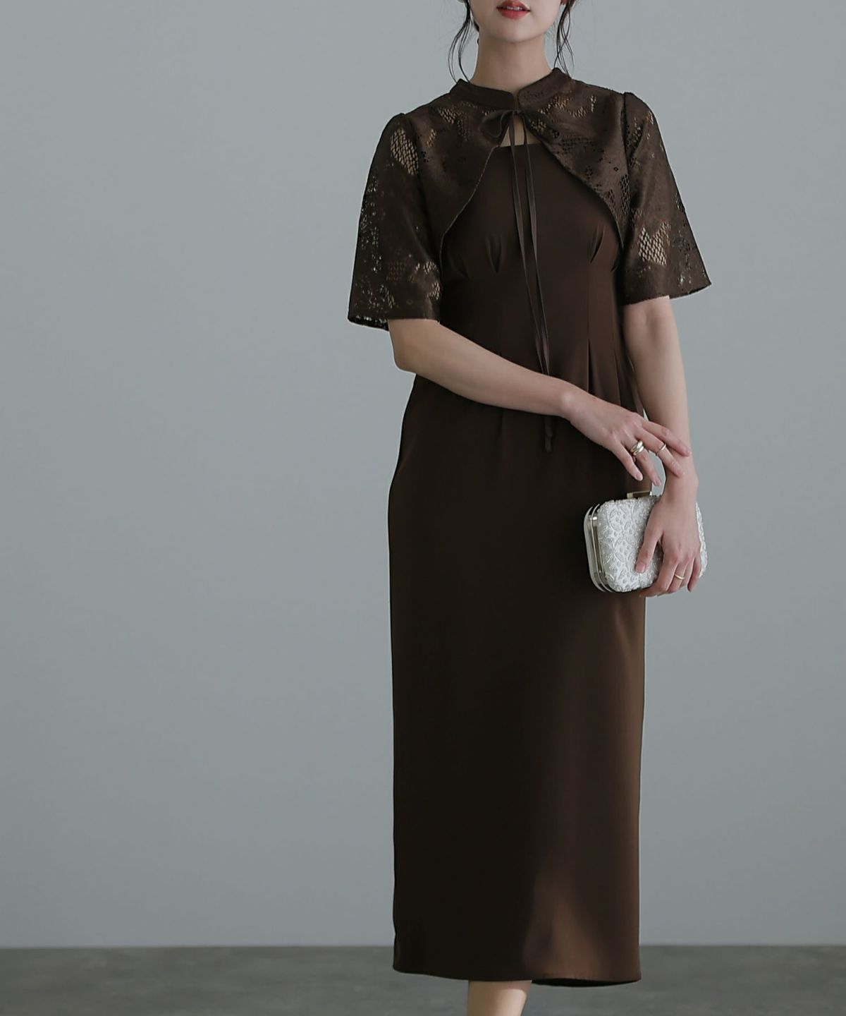 タイトめなIラインが女性らしい 2wayボレロ付きワンピース
