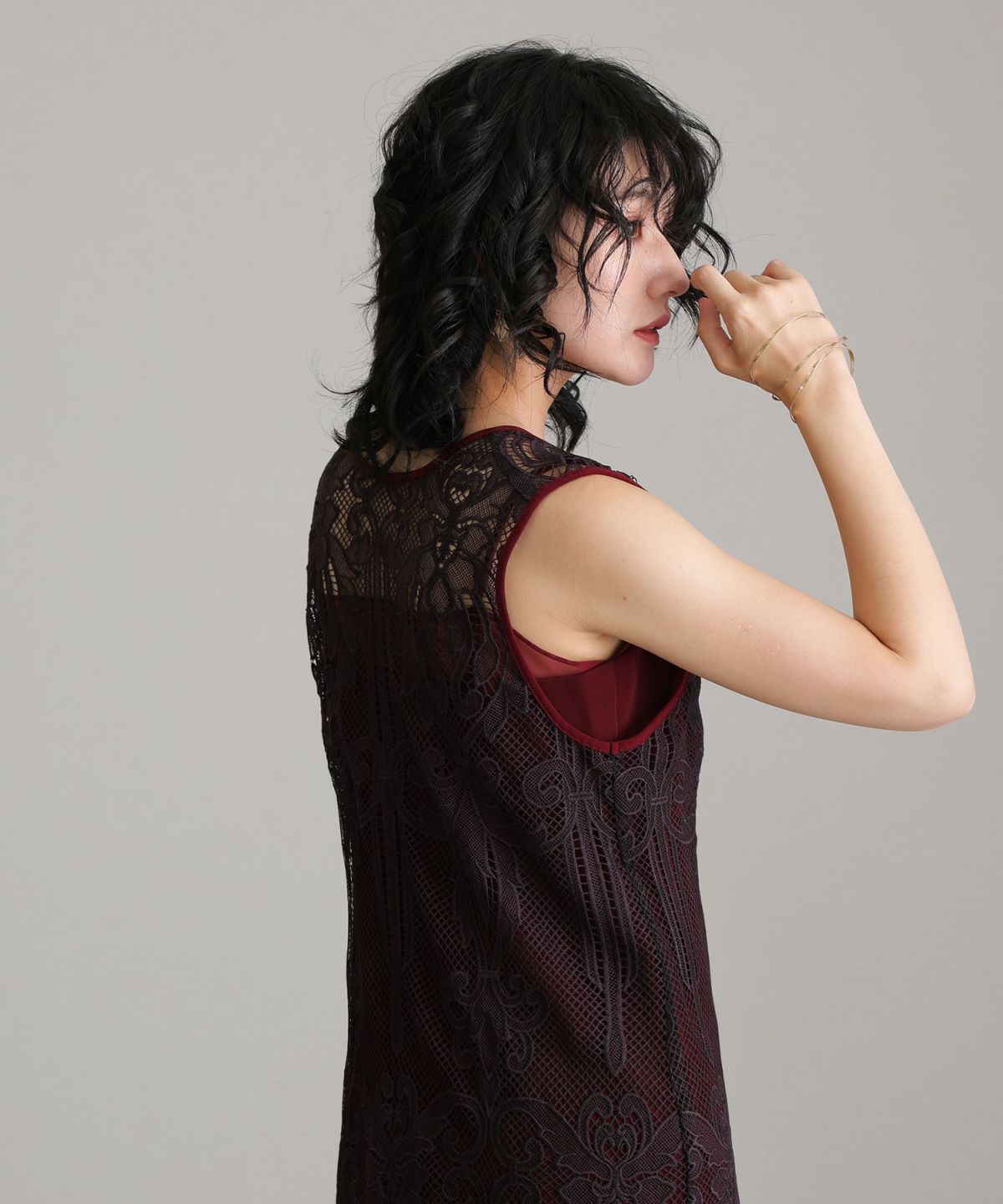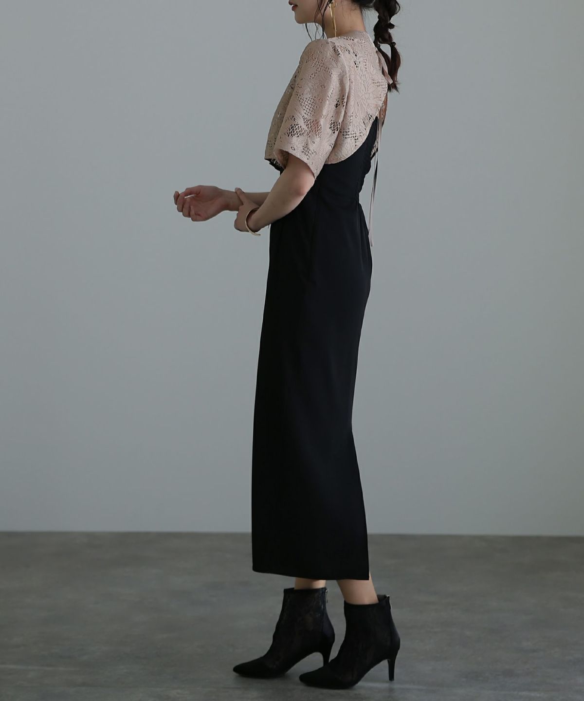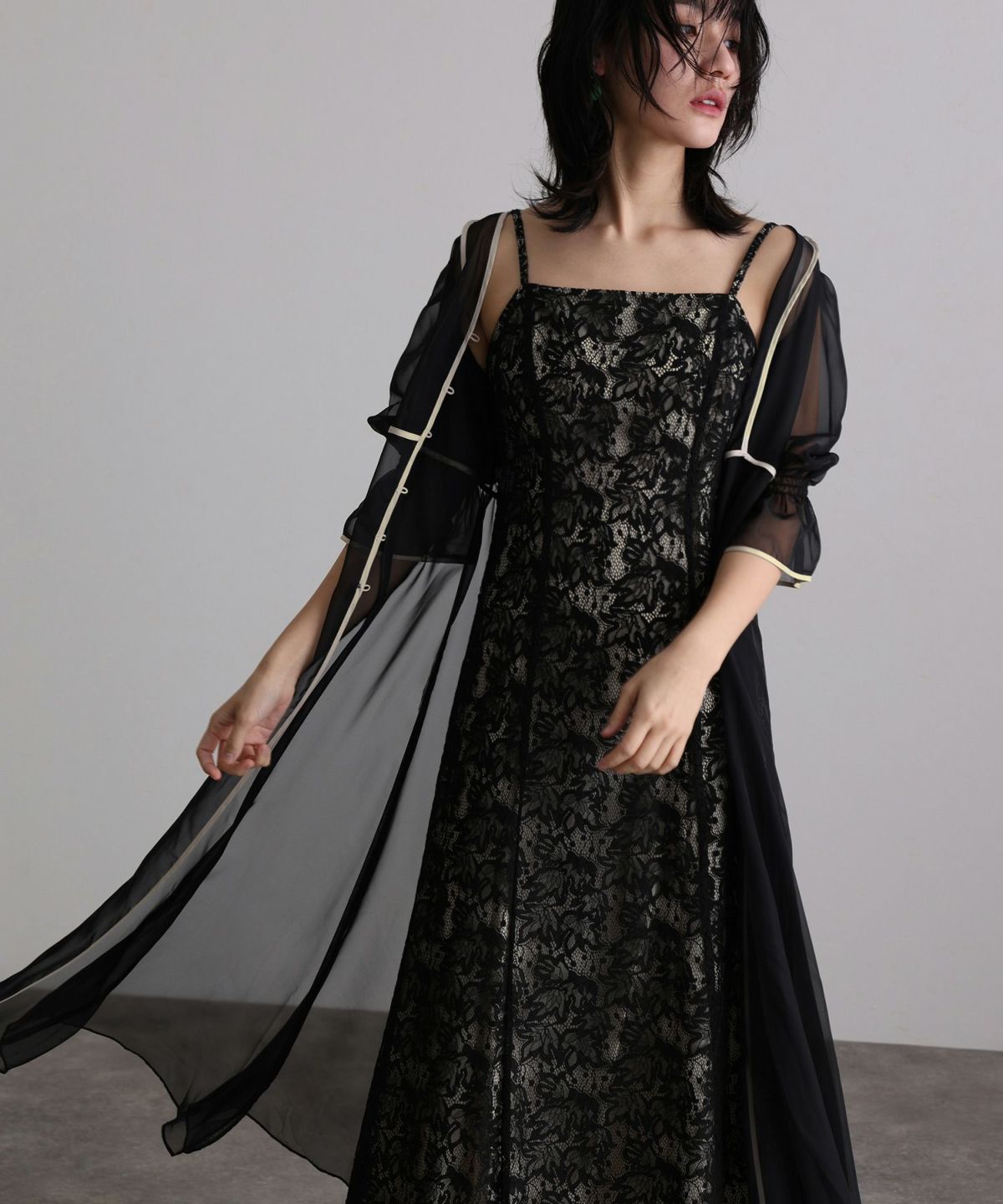 大人シルエットの美ラインワンピース 総レース2wayドレス