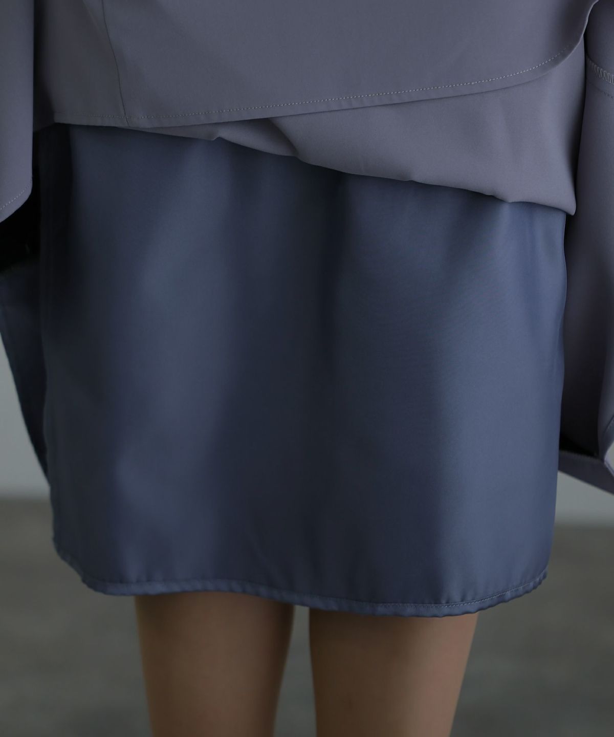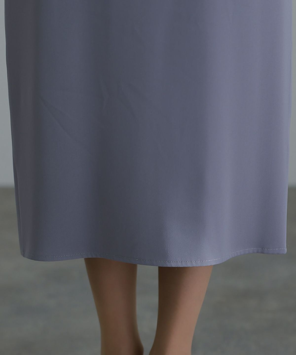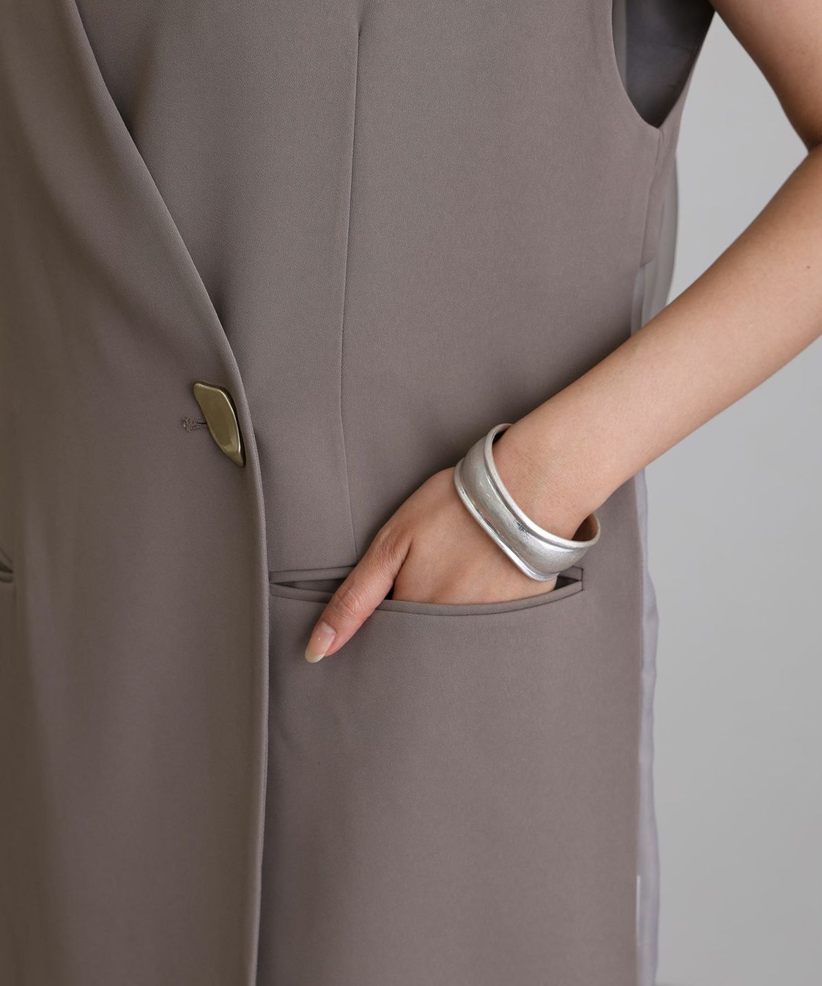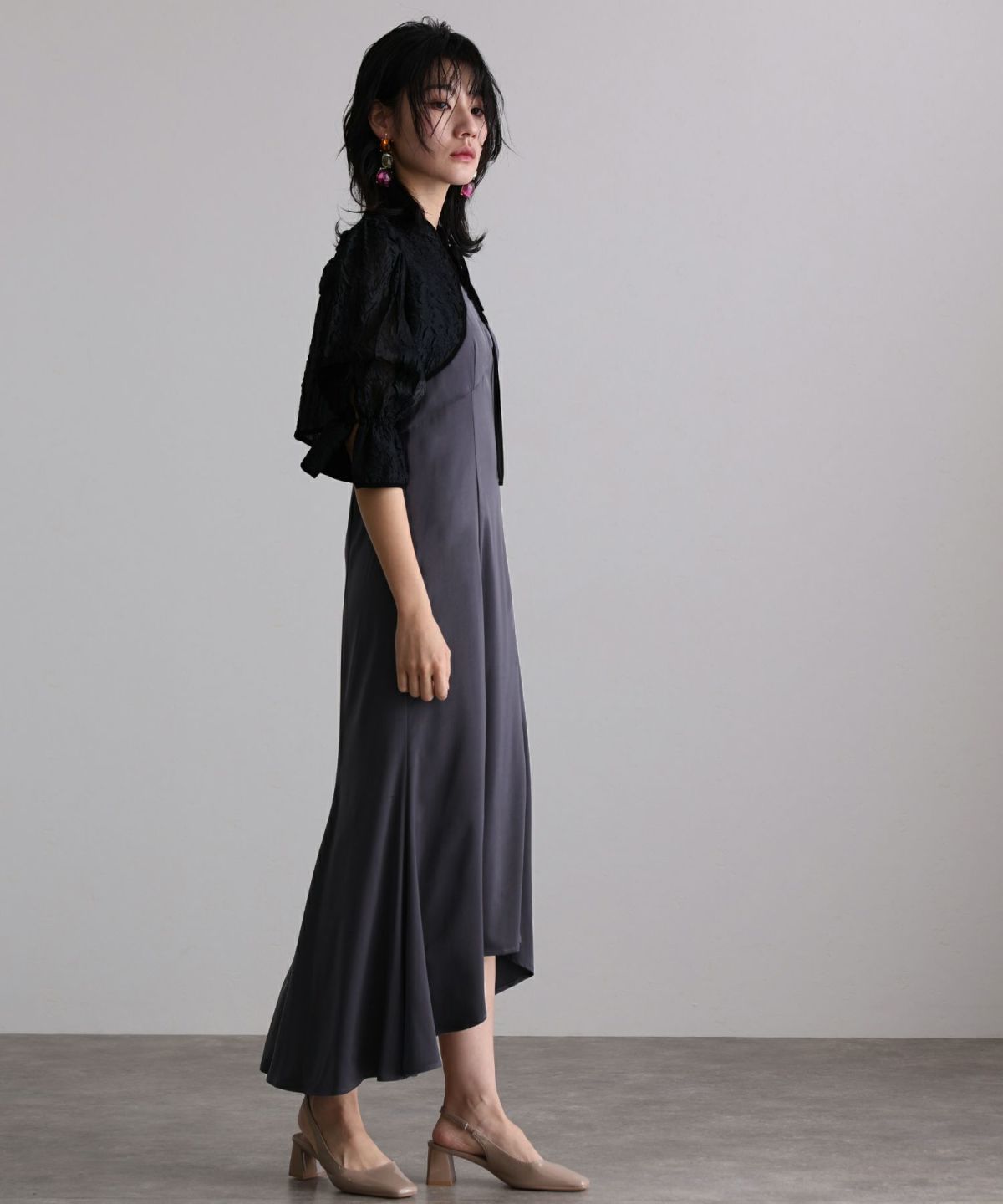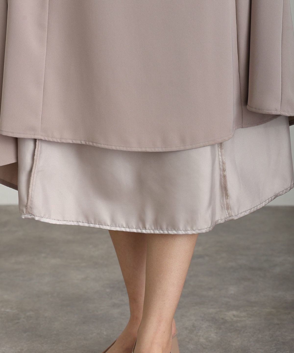 スカートのスリットによるさり気ない肌見せでこなれ感を演出 2wayジレ付きワンピース