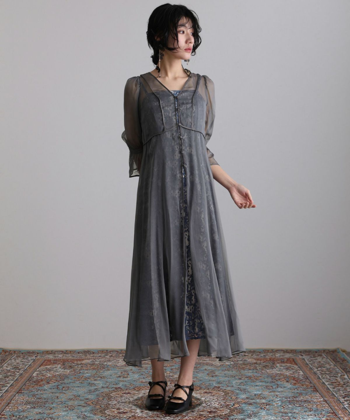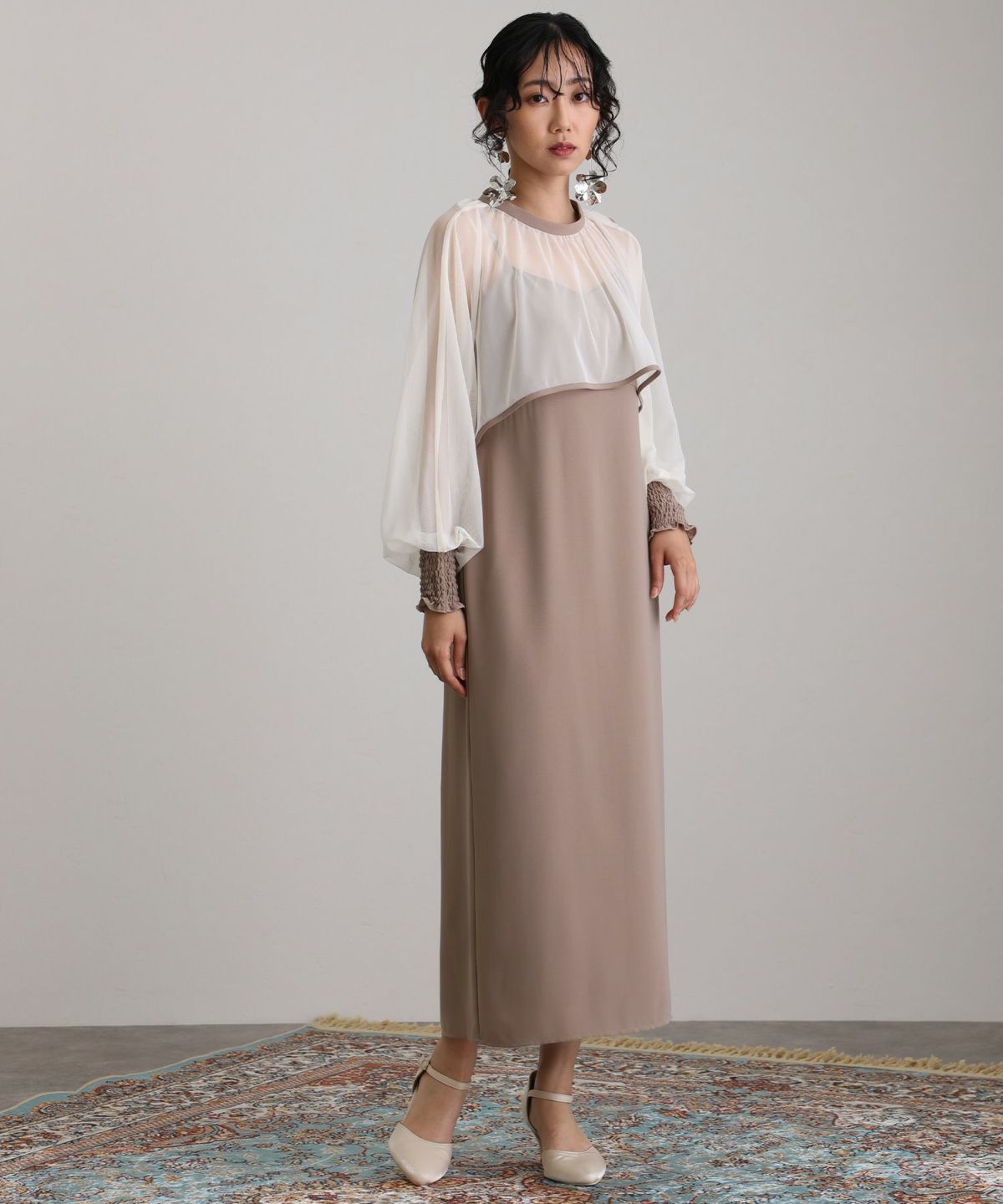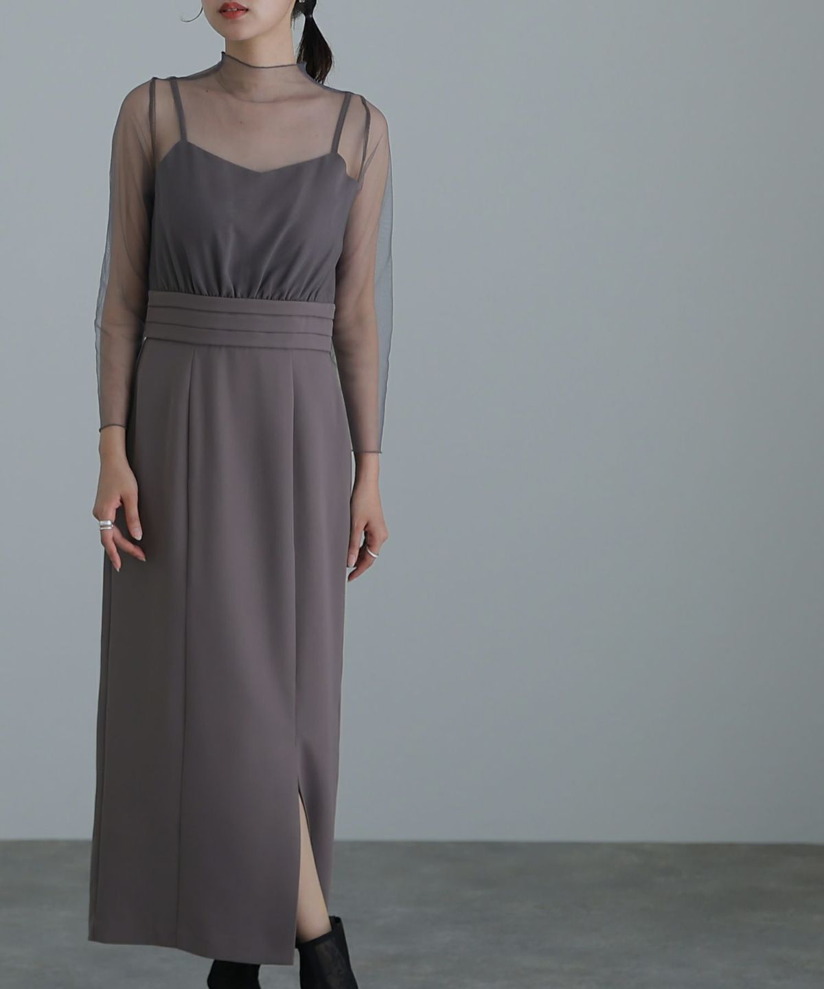 シアーワンピースとキャミワンピースのセットドレス レイヤードパイピングドレス