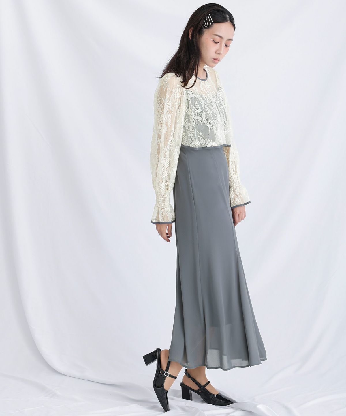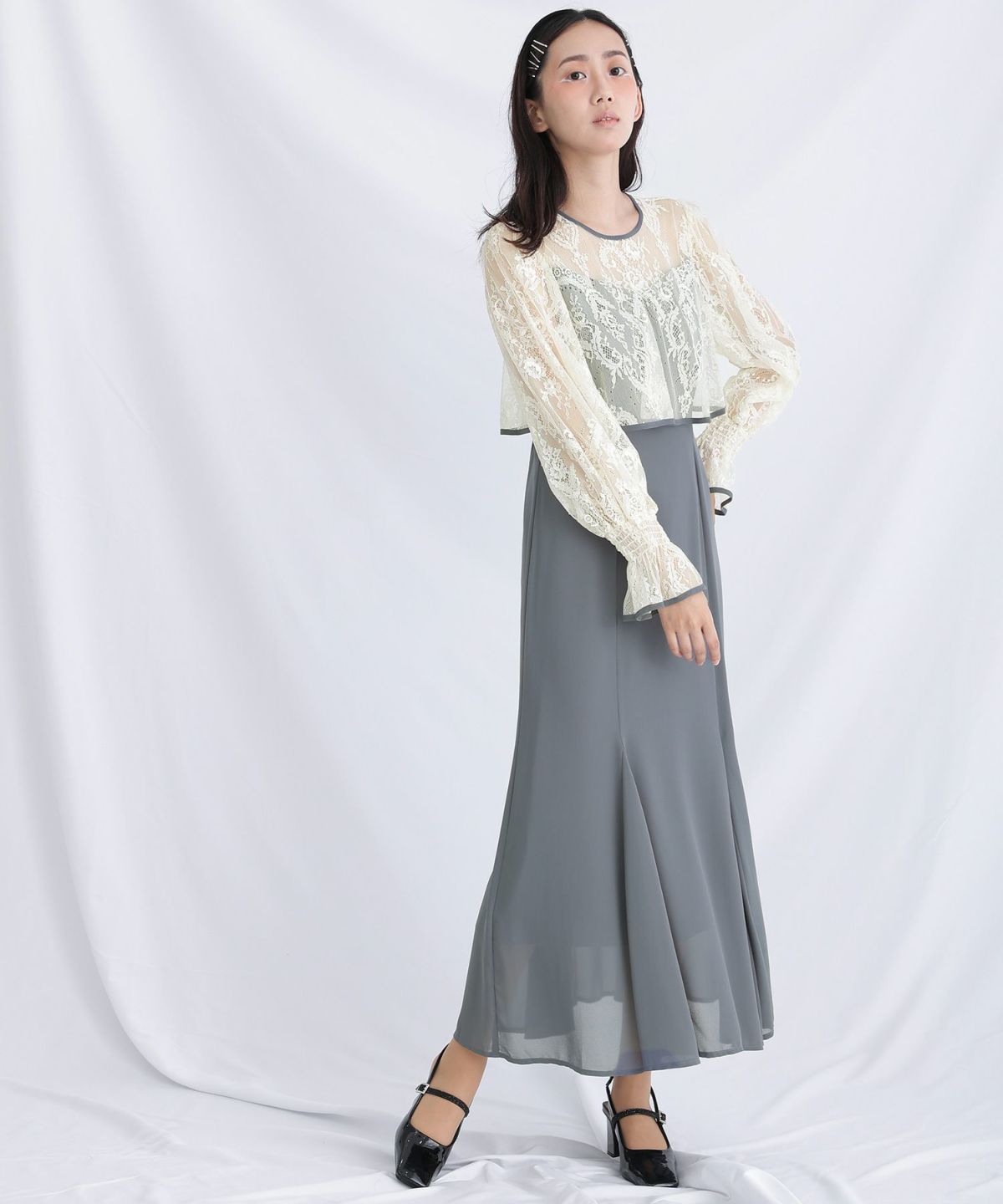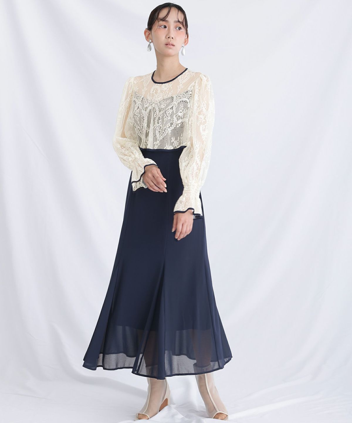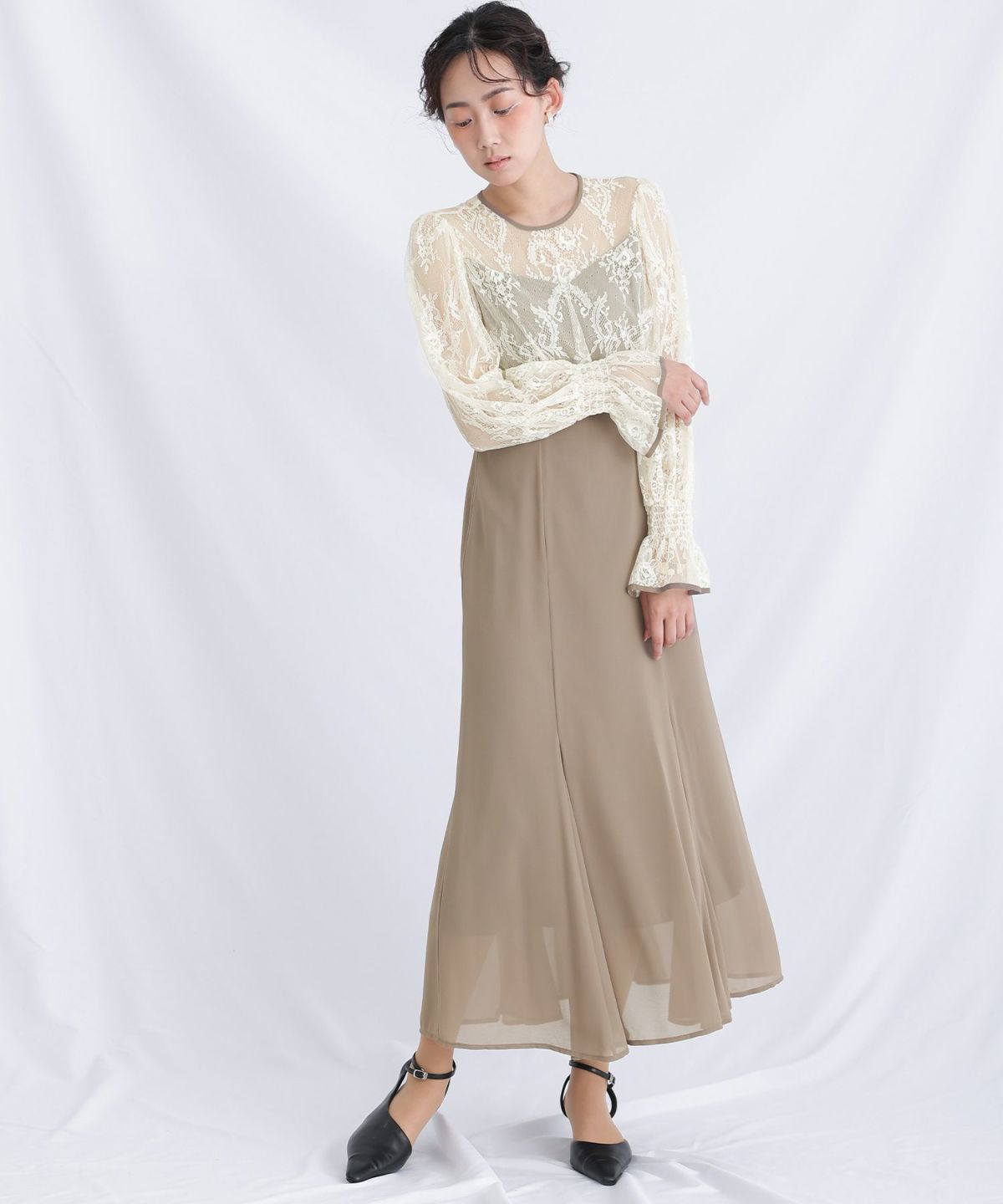 レースの透け感がコーデを柔らかい雰囲気に レース×シフォンマーメイドドレス
