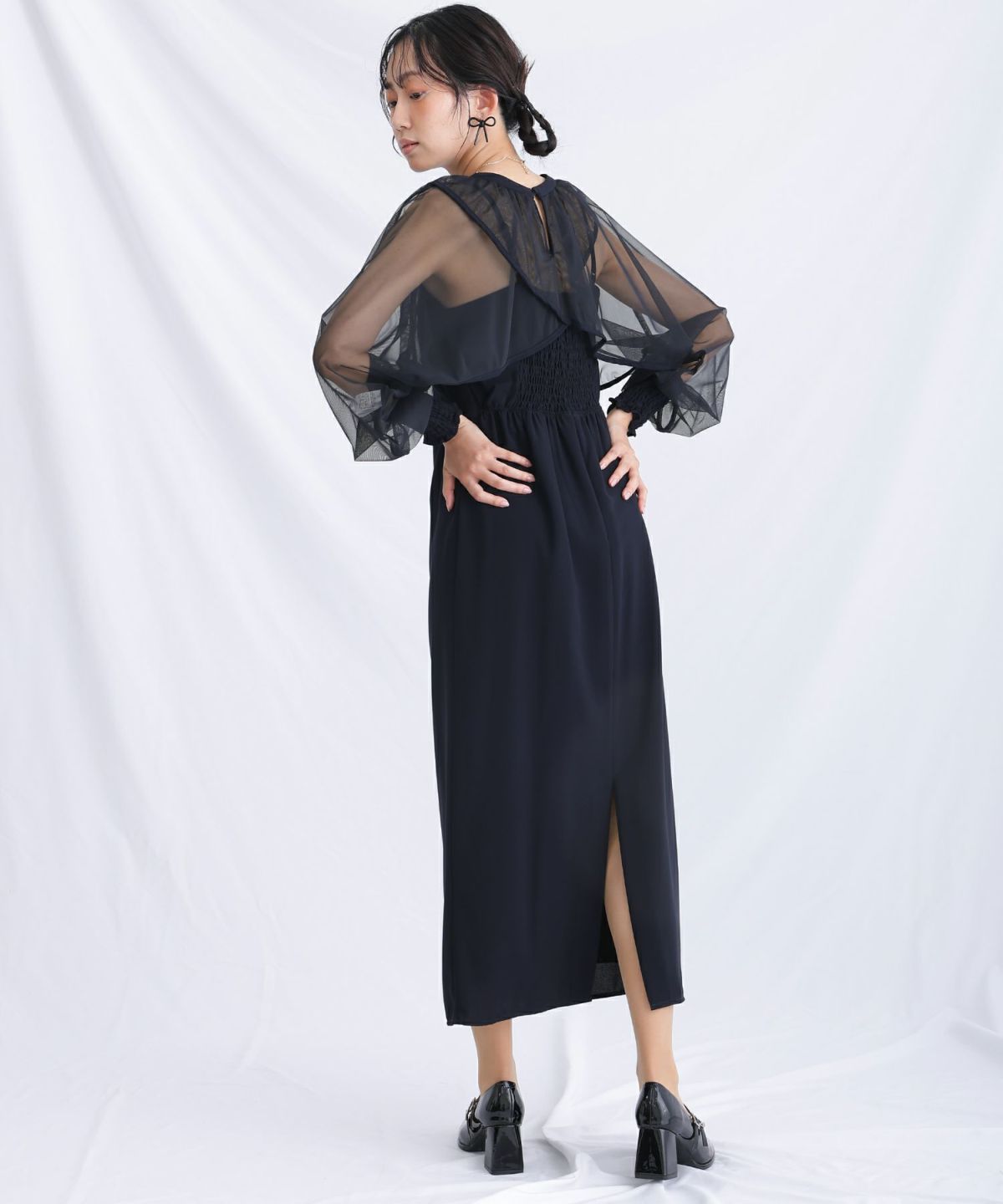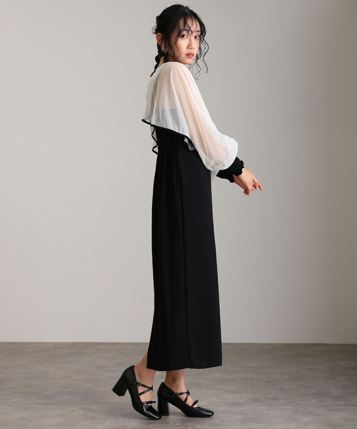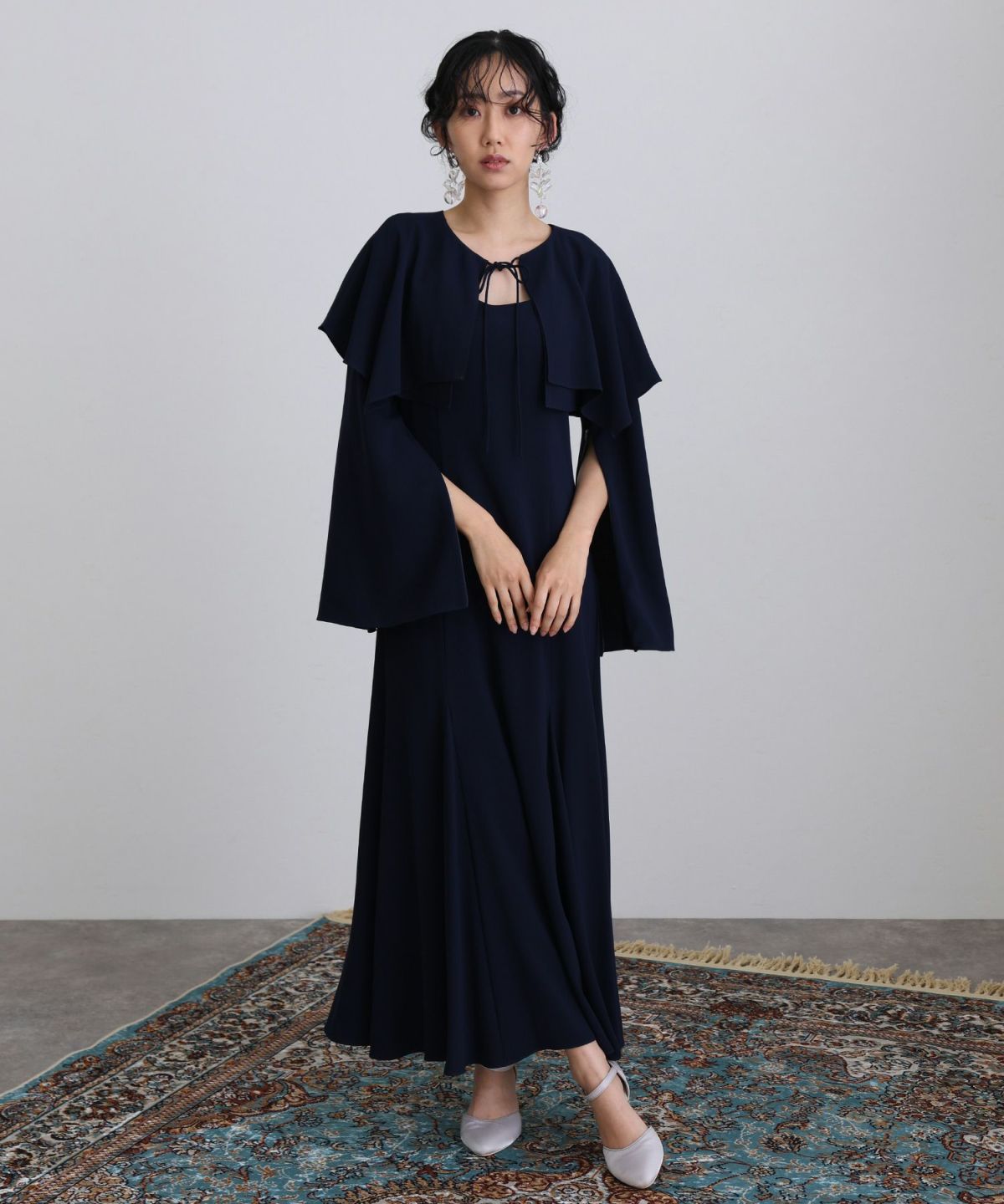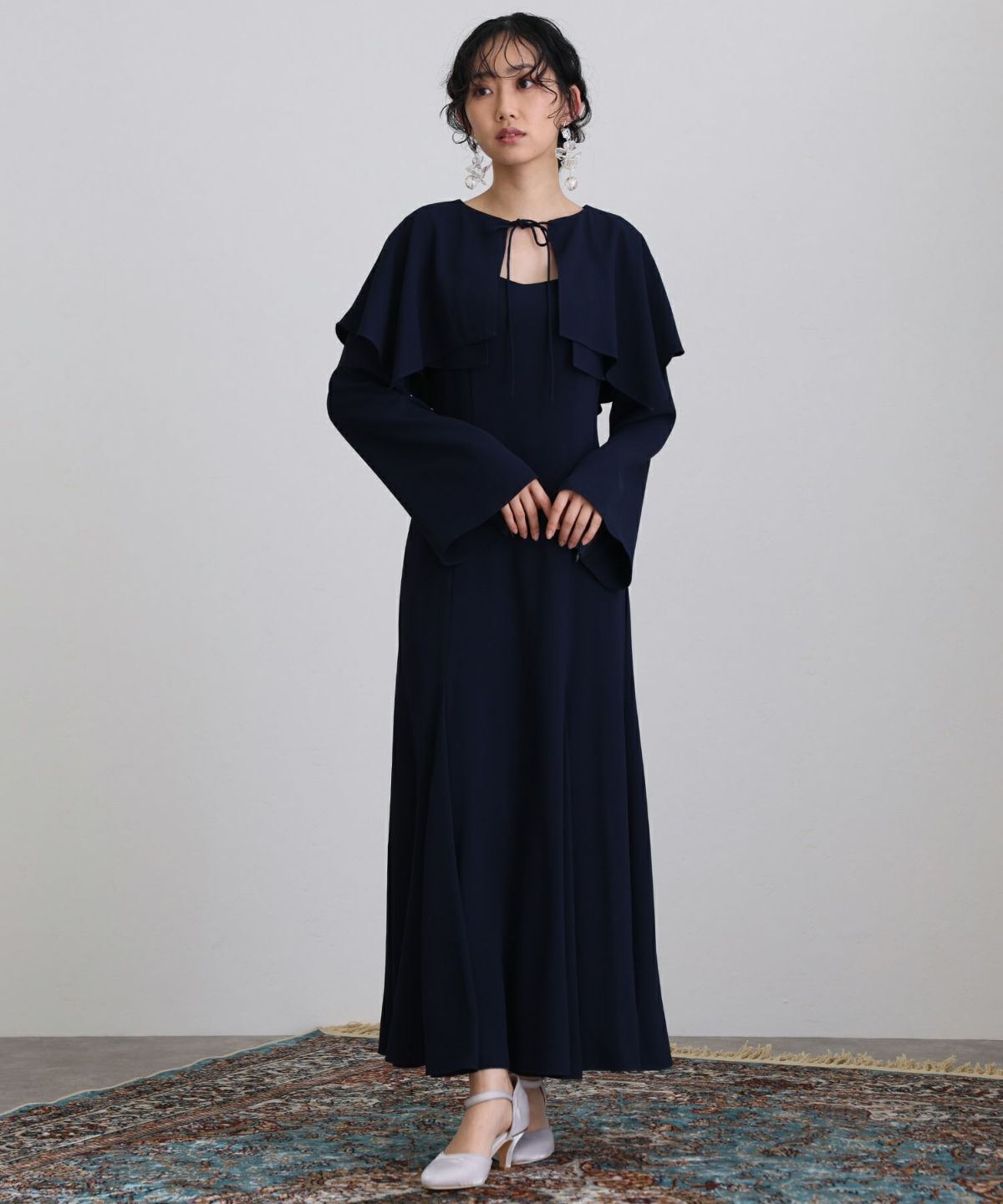 着方次第で印象を変えられる、優秀ドレス ワントーンケープドレス