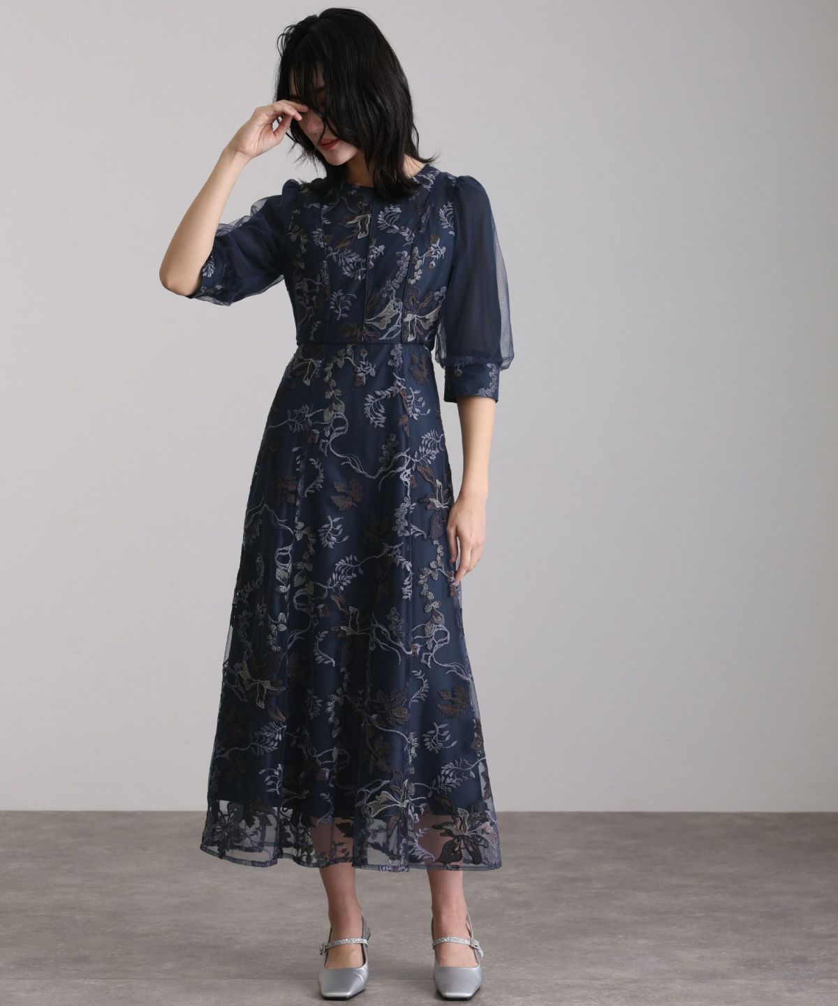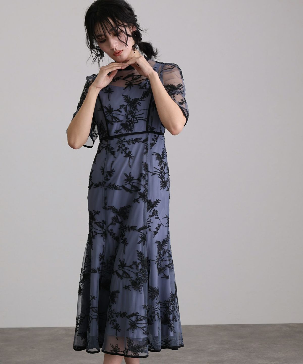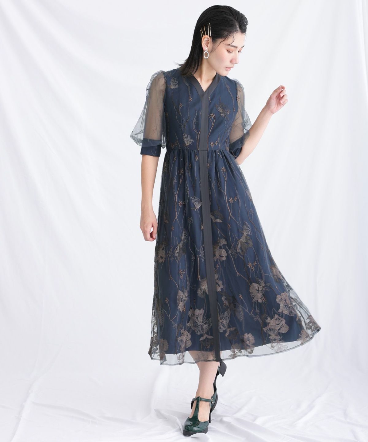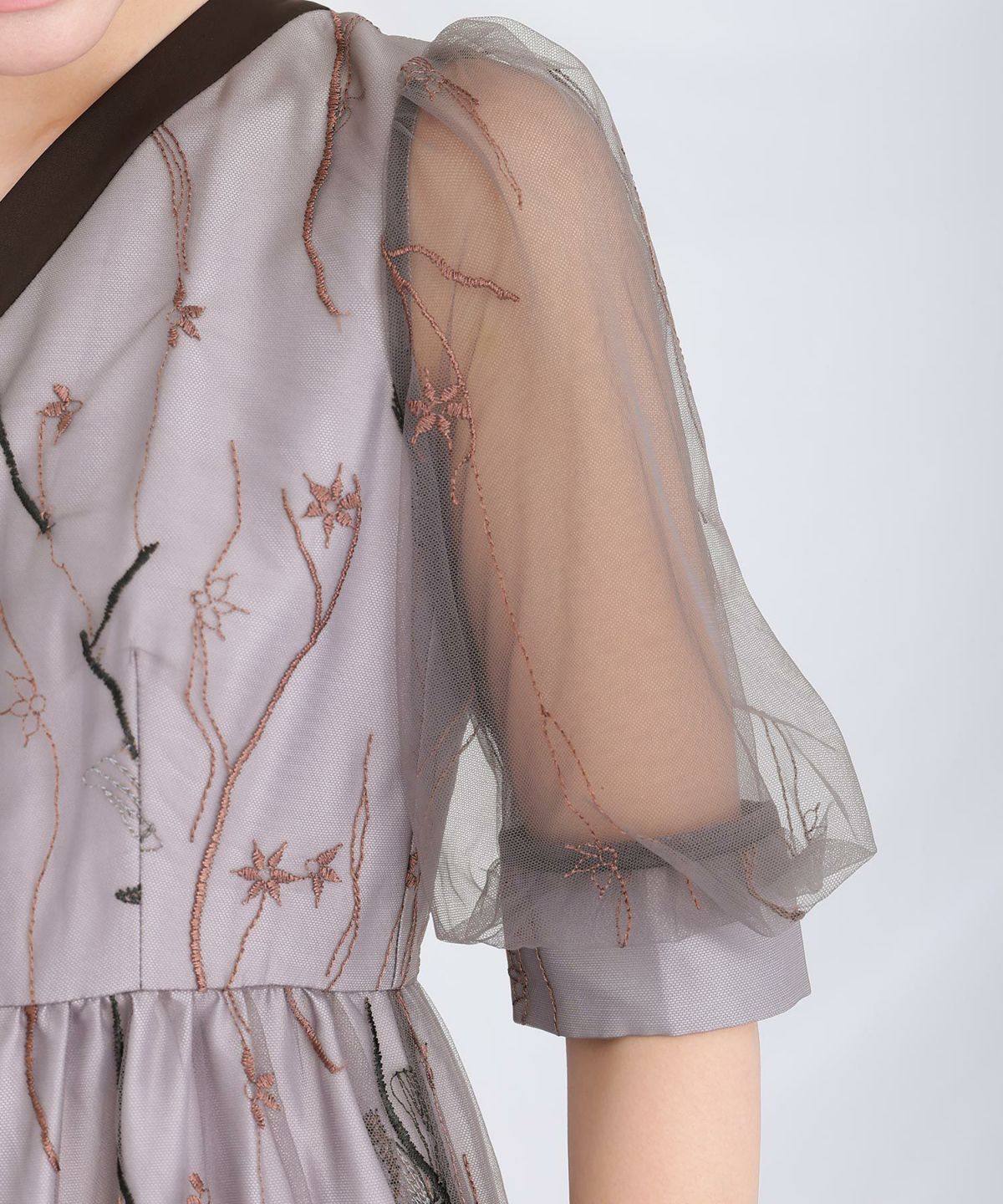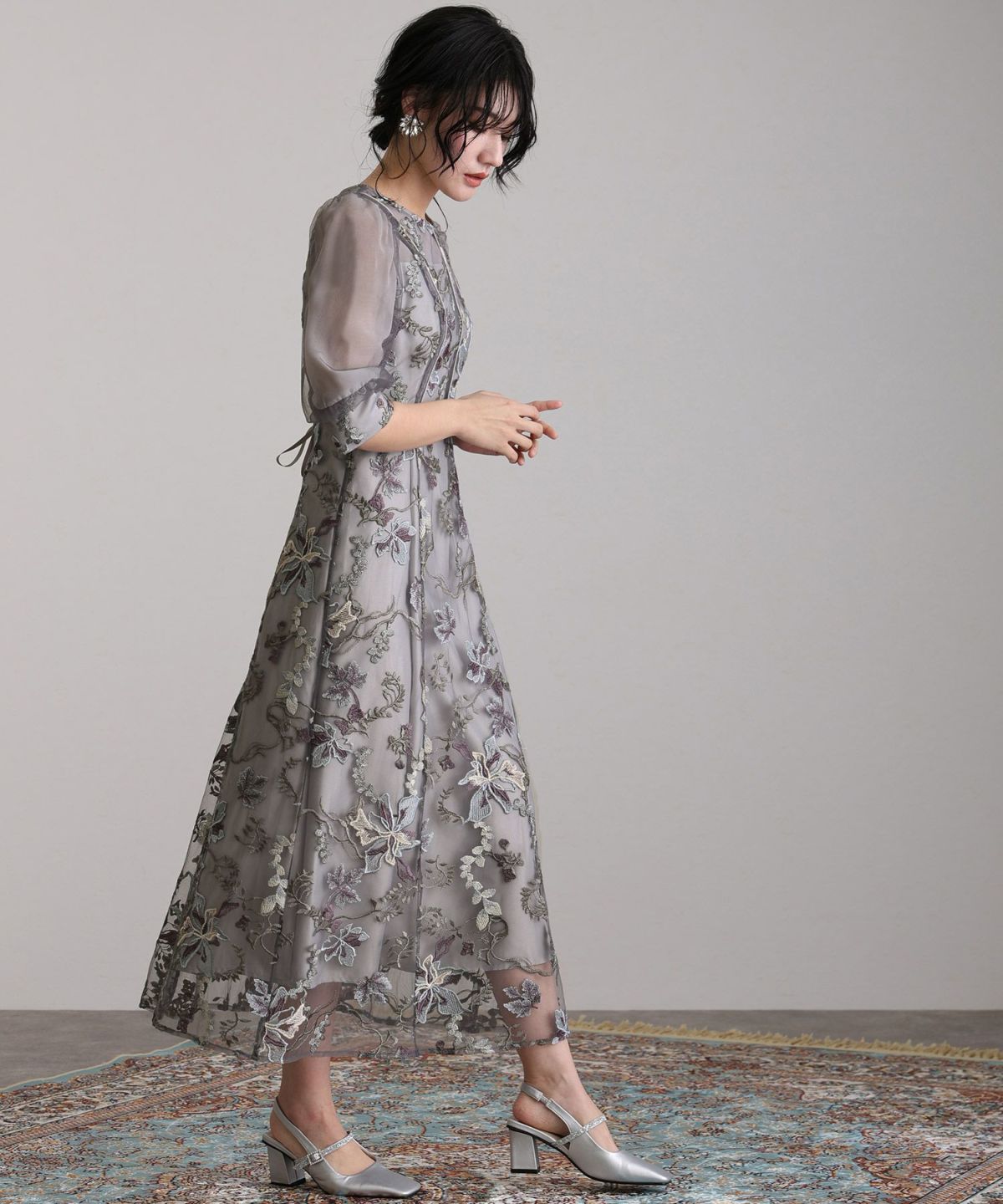 花柄の刺繍がエレガント 刺繍レースパイピングワンピース