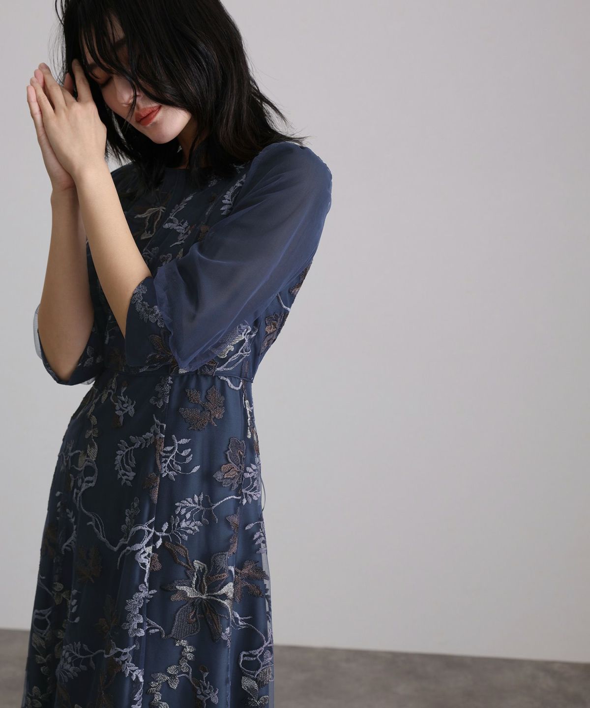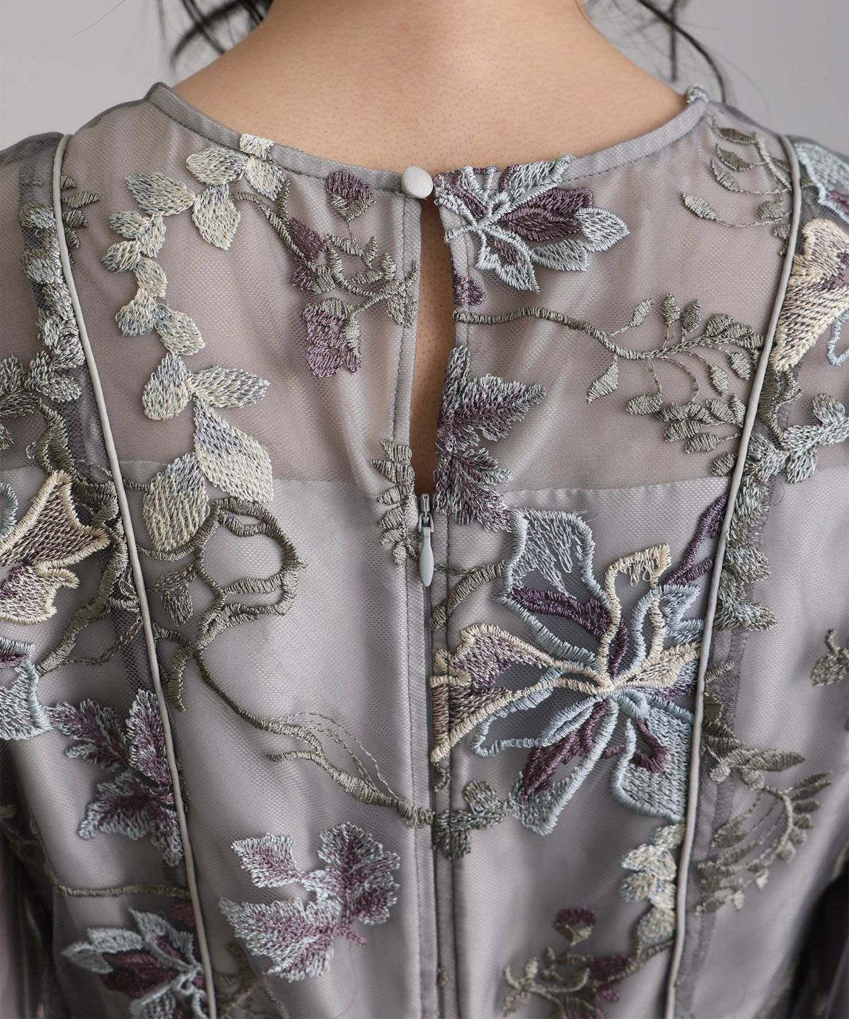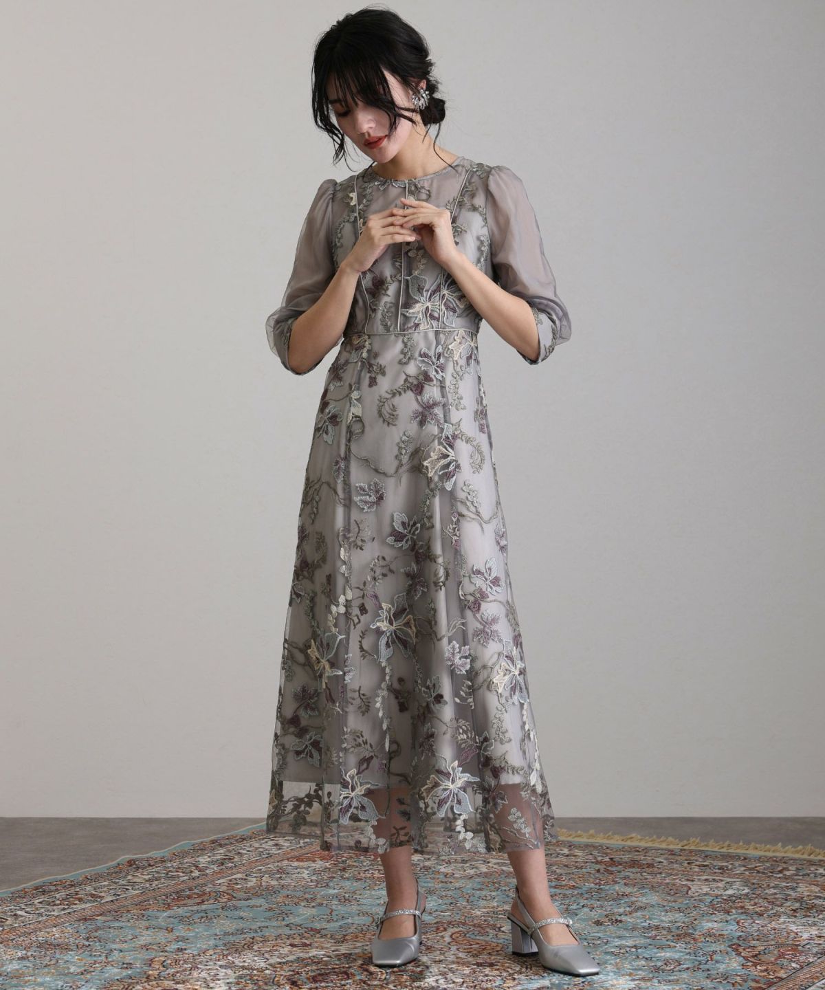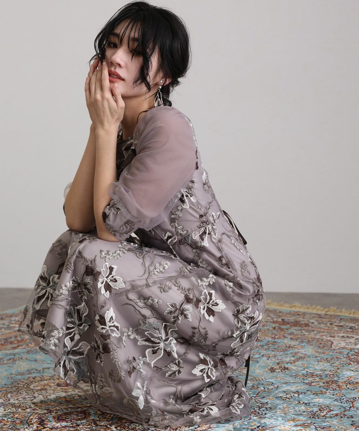 花柄の刺繍がエレガント 刺繍レースパイピングワンピース
