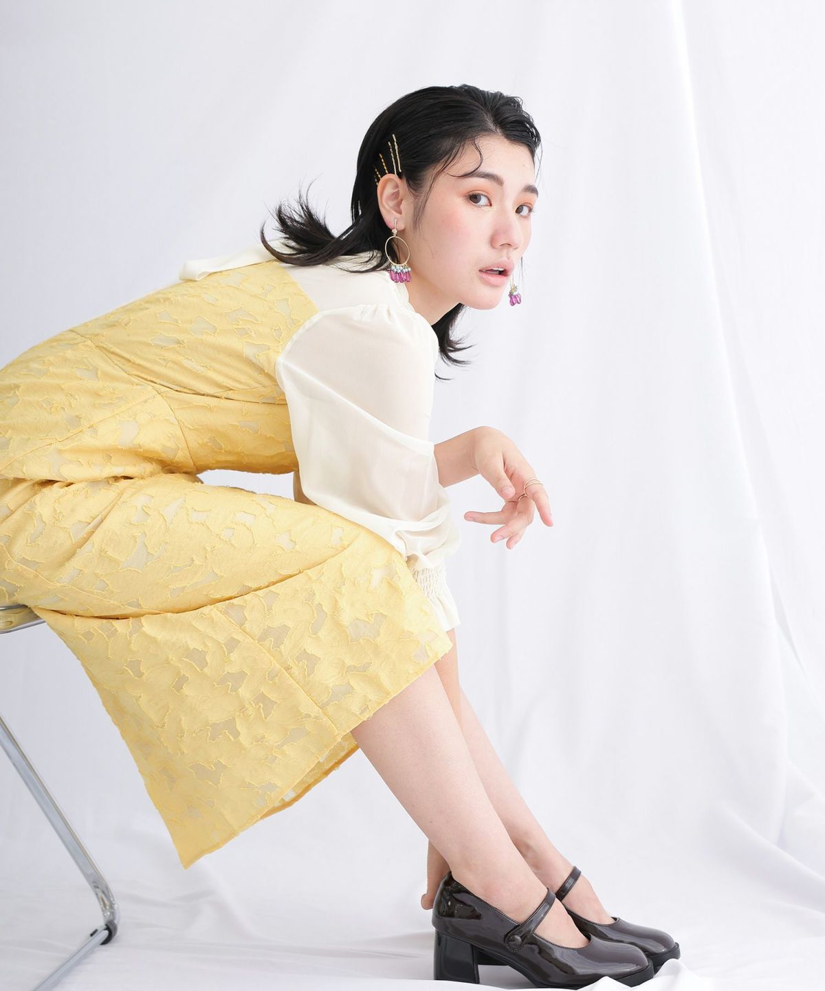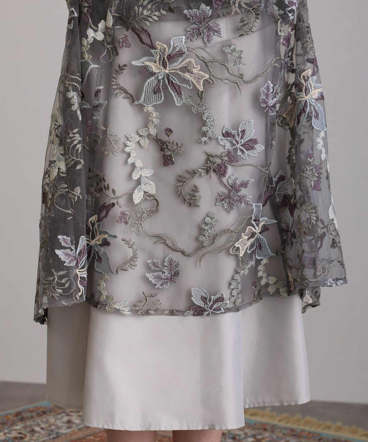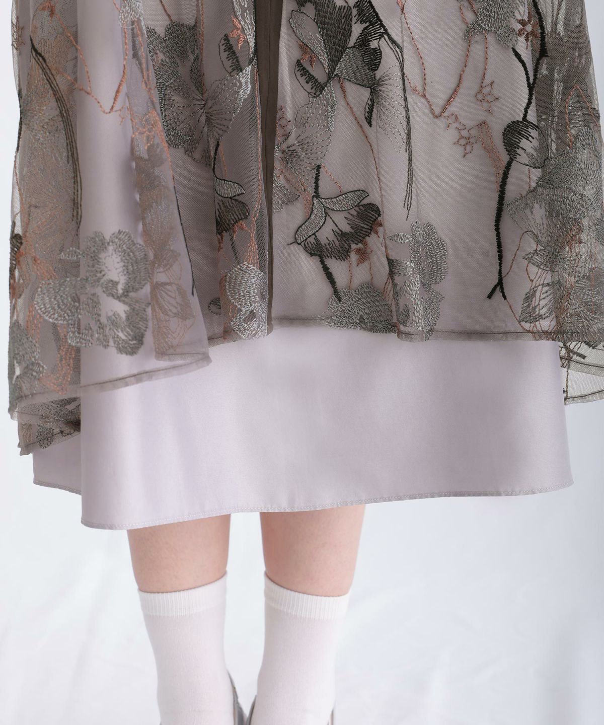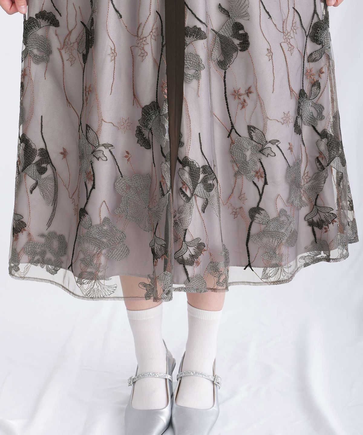 チュール刺繍×ケミカルレース フラワーレース切り替えパンツドレス