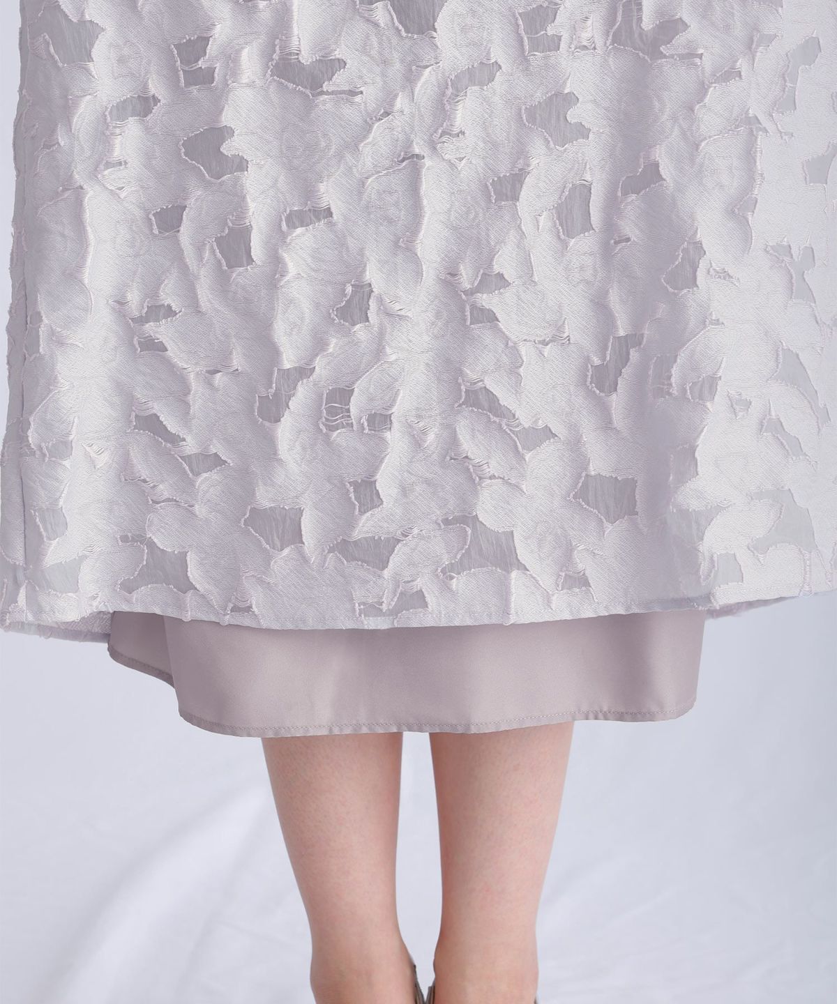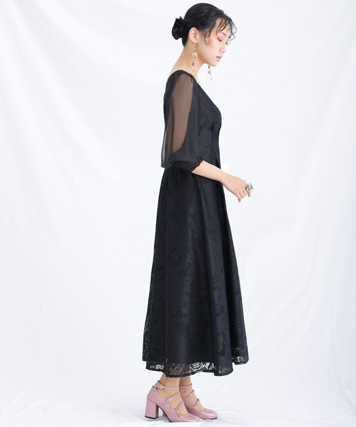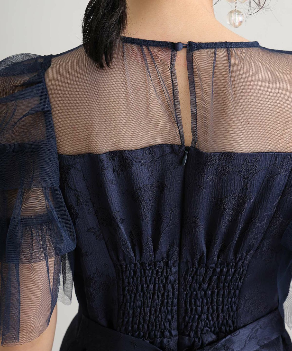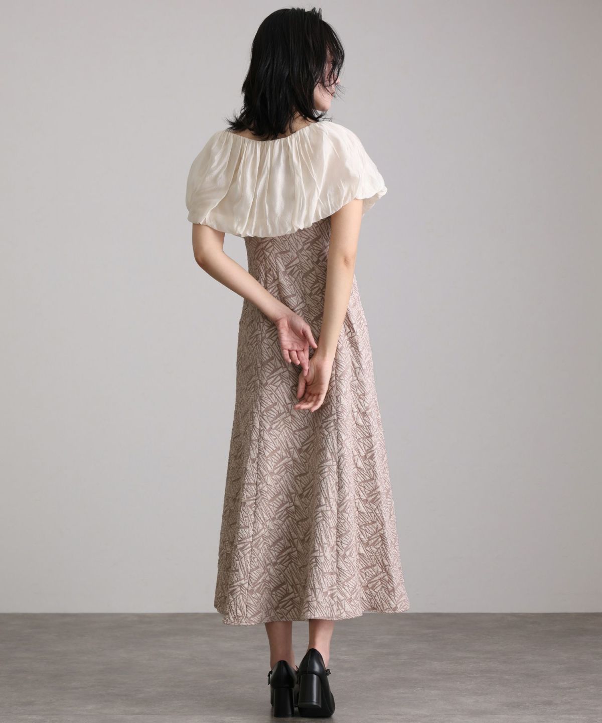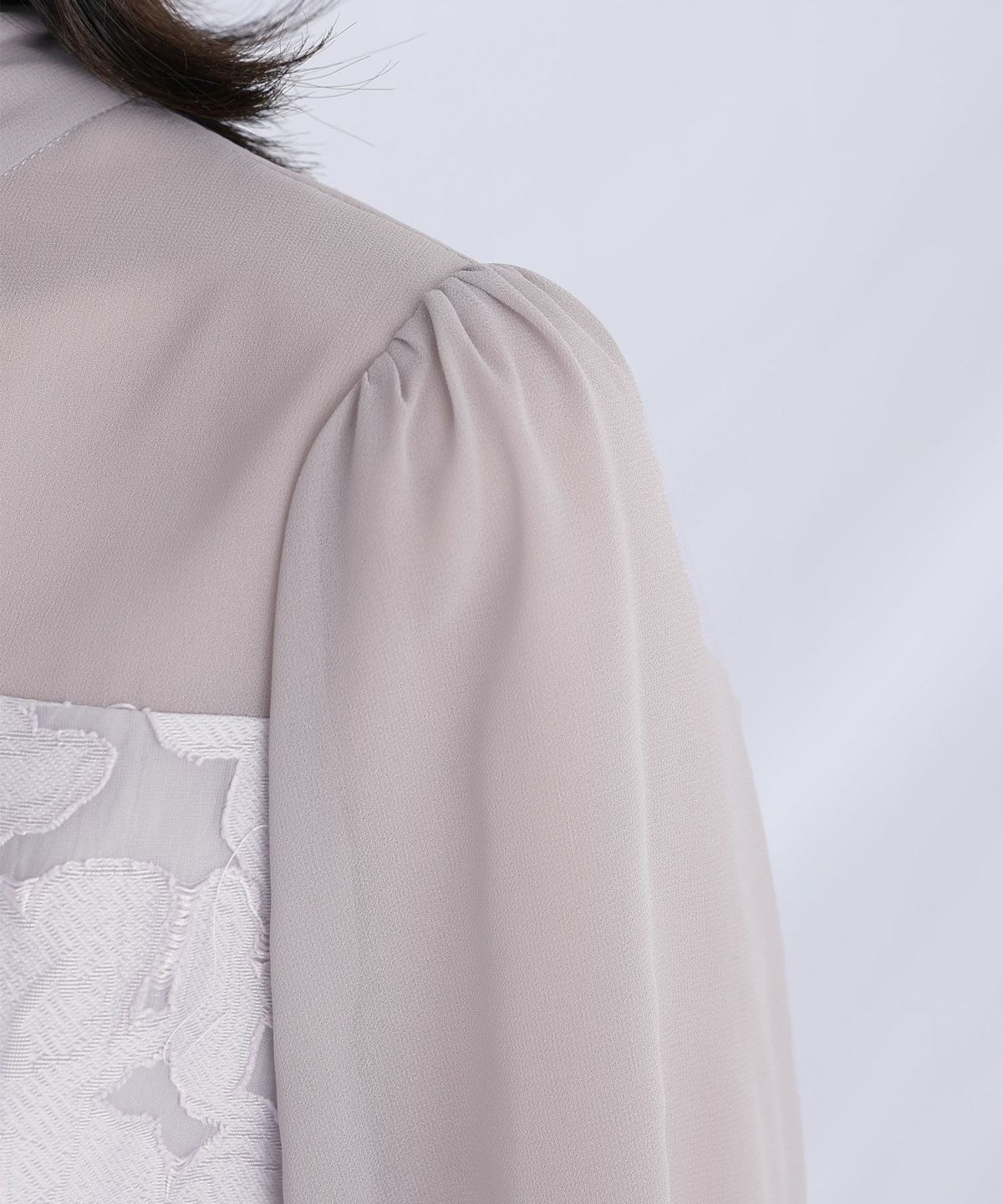 袖とデコルテの程よいシアー感が個性的 フラワージャガードワンピース