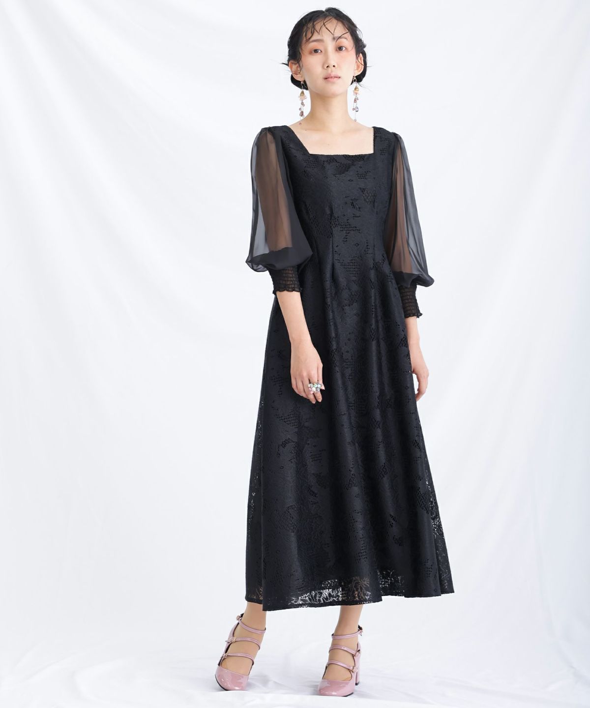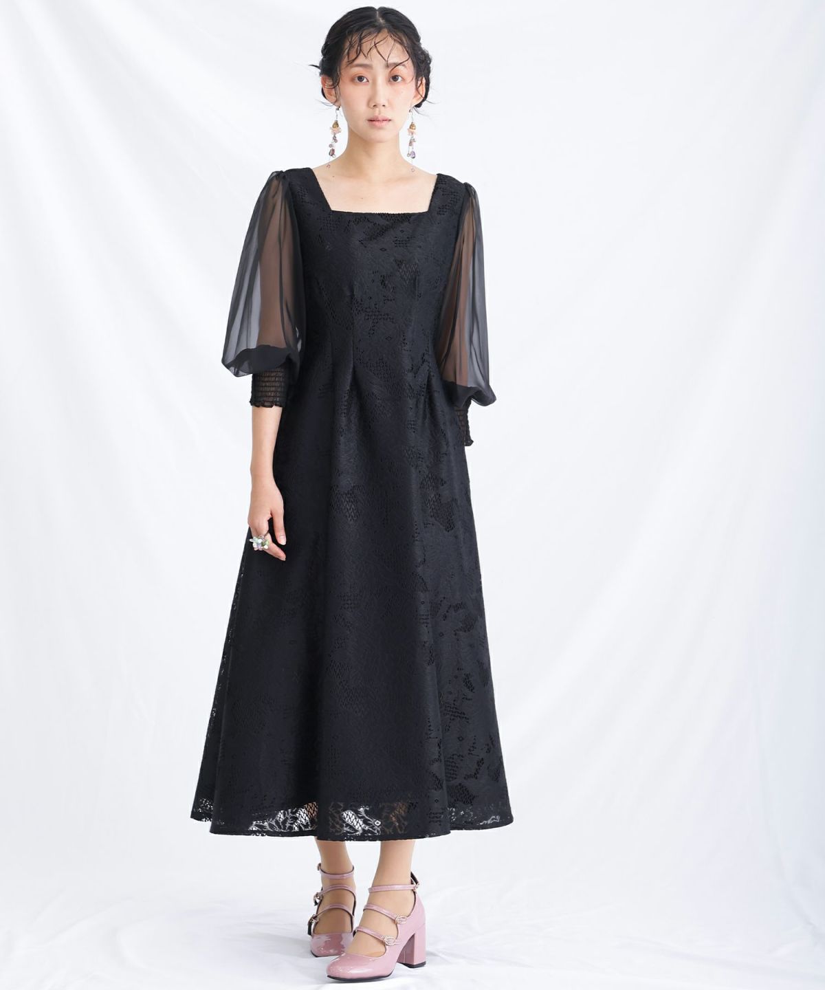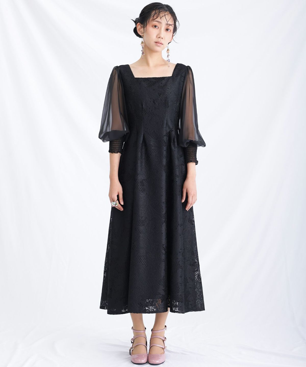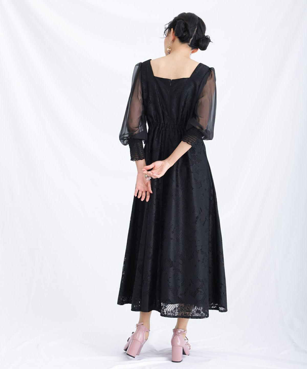 クラッシックなデザインが大人の上品さを演出 スクエアネックレースドレス