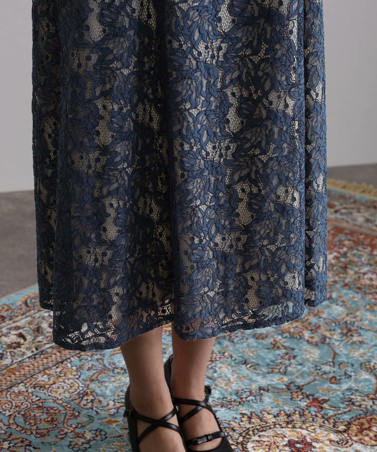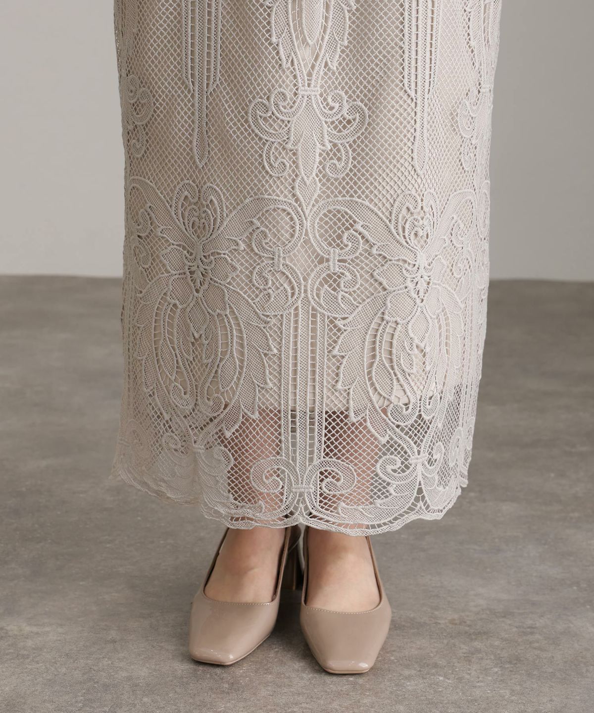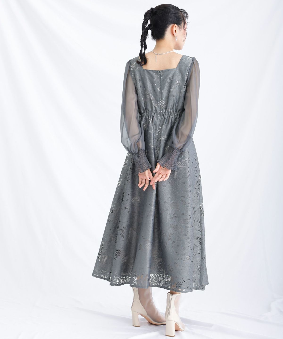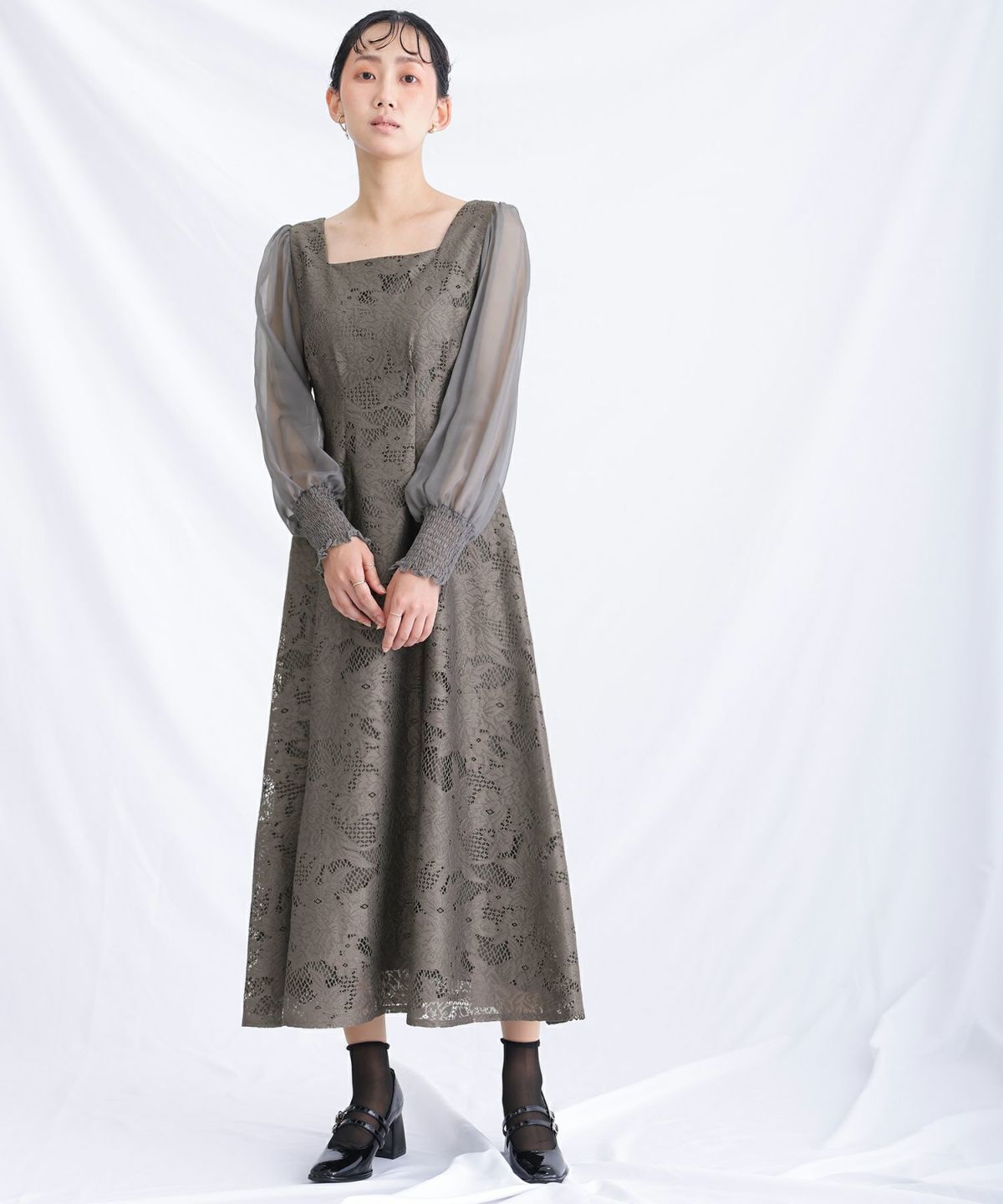 クラッシックなデザインが大人の上品さを演出 スクエアネックレースドレス