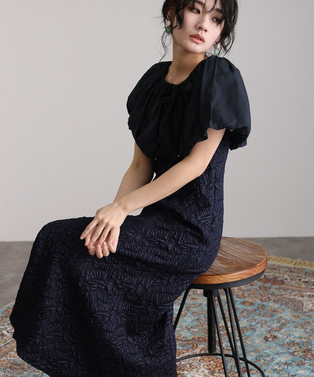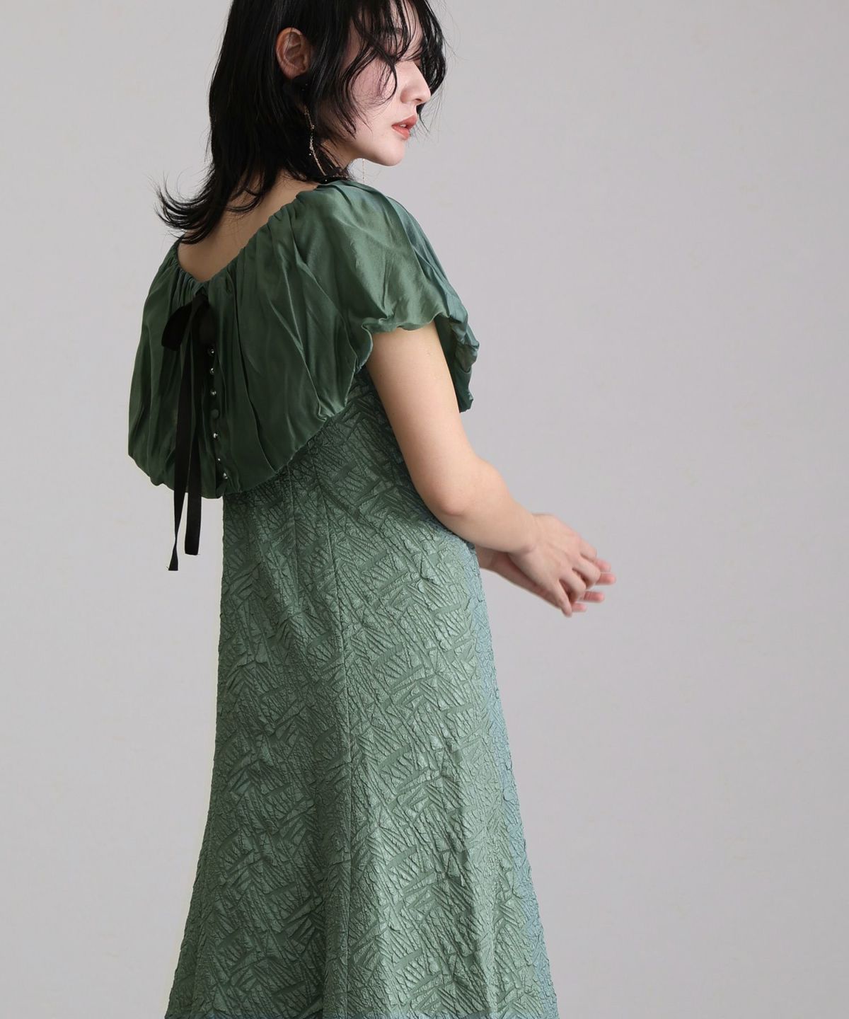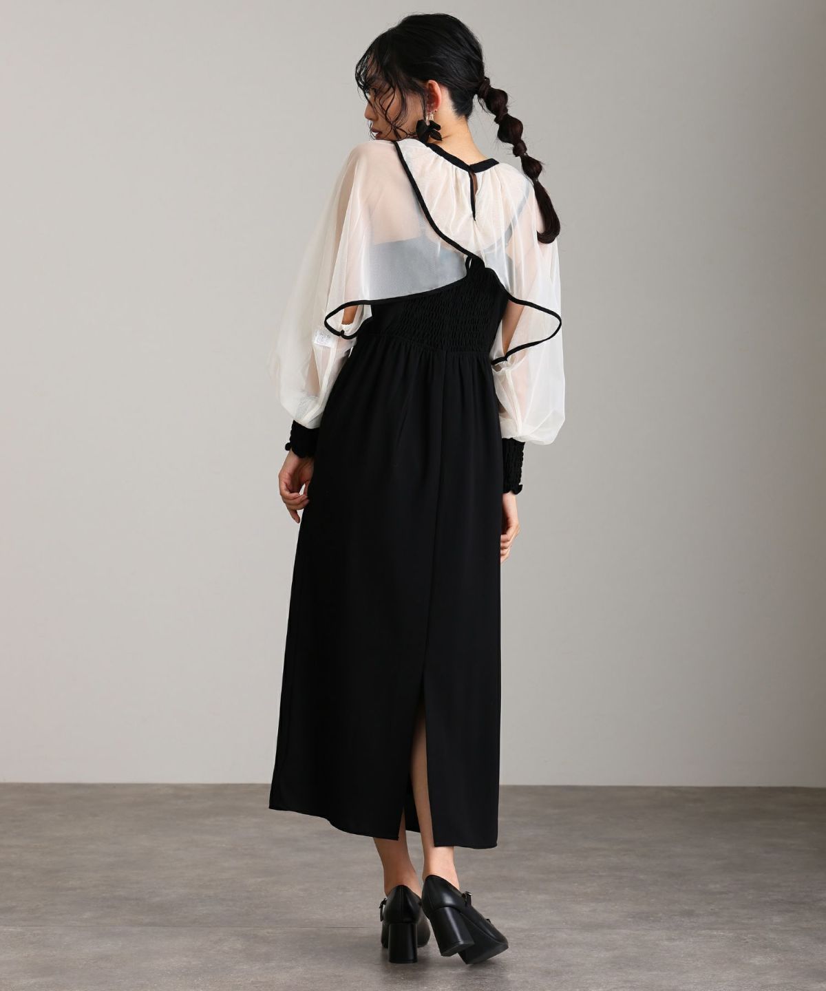 細部までこだわった遊び心のあるディティールが魅力 バックシアージレセットアップドレス