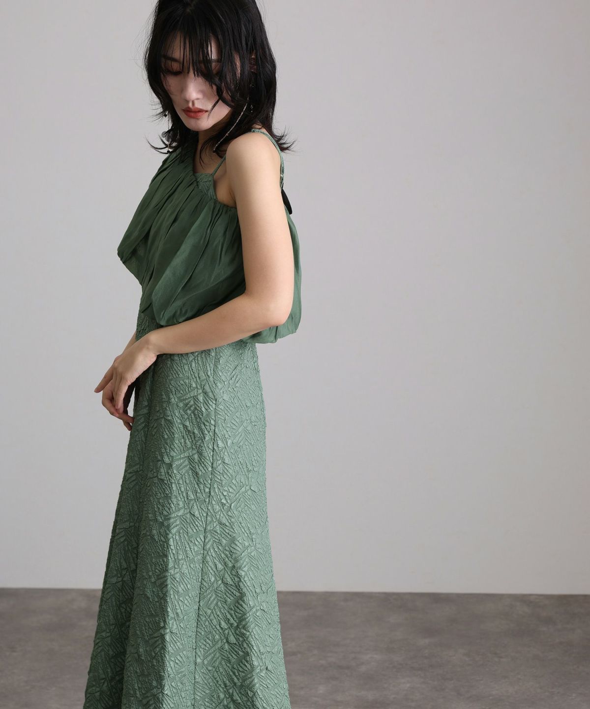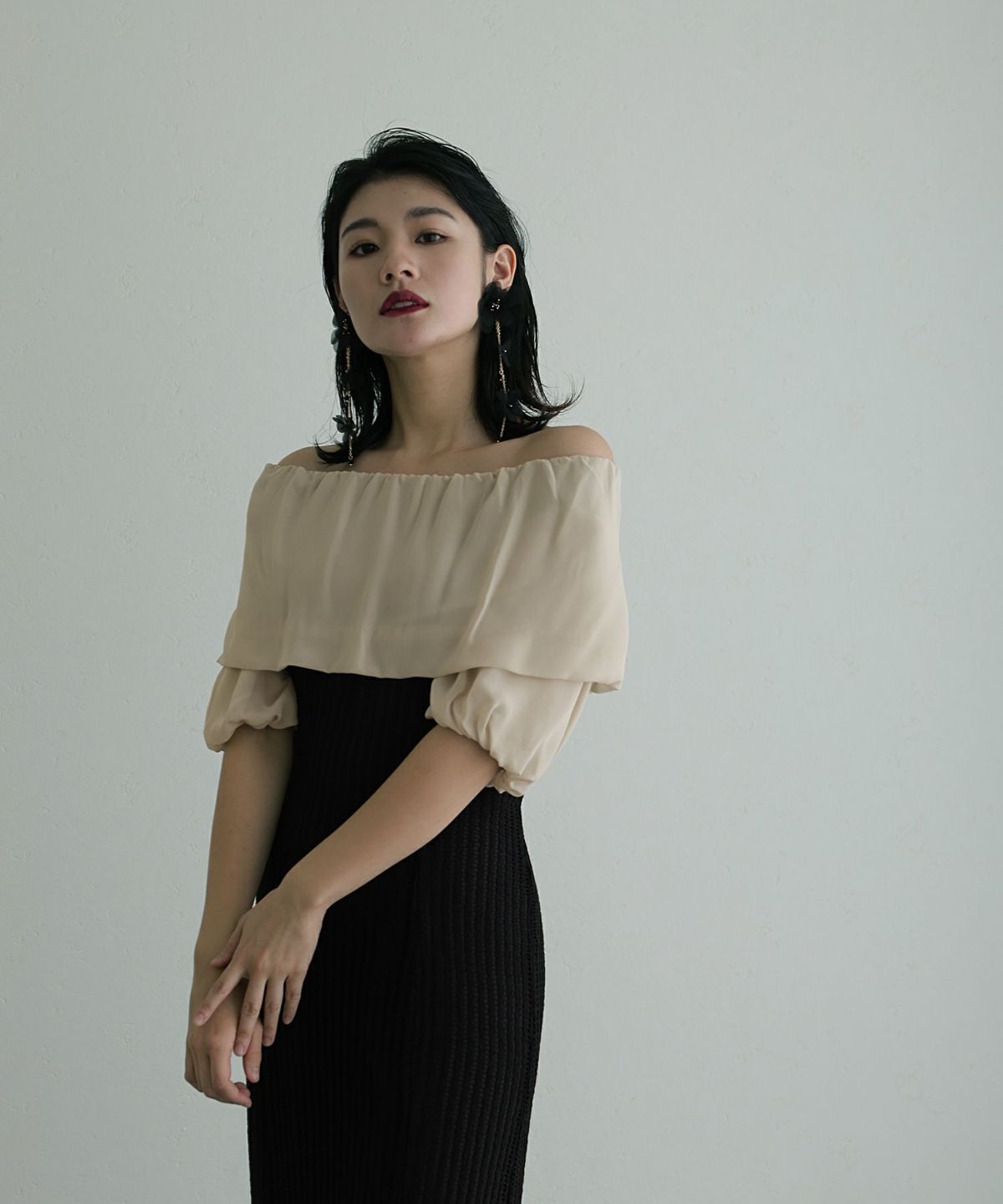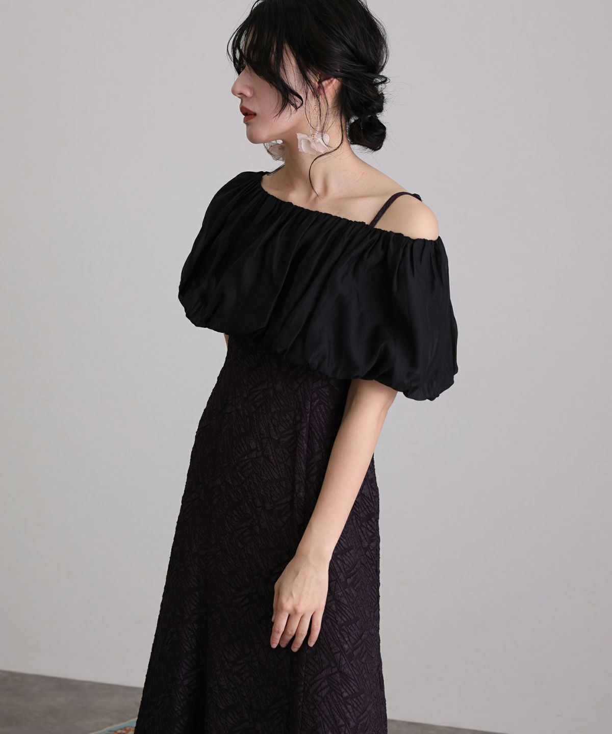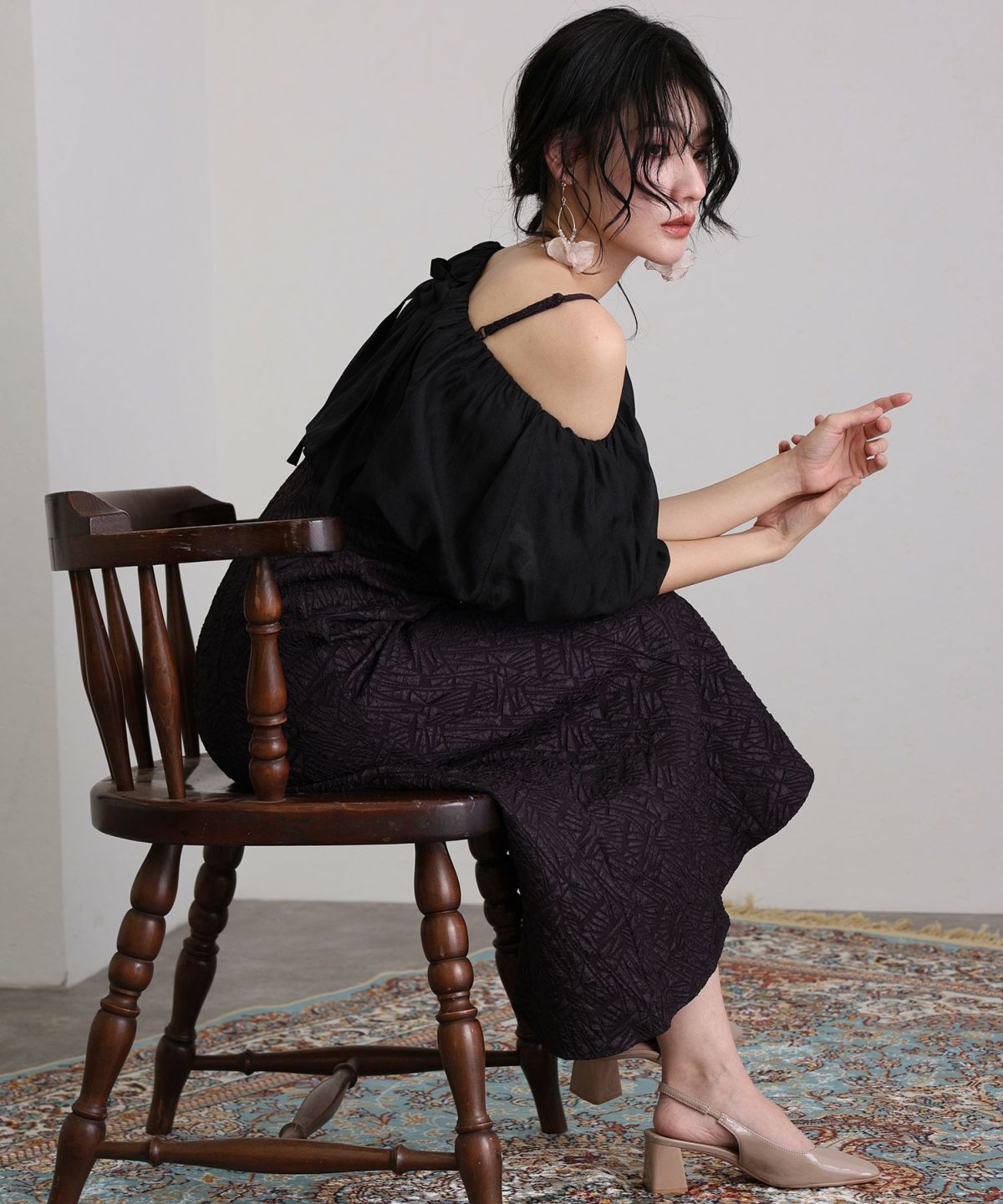 細部までこだわった遊び心のあるディティールが魅力 バックシアージレセットアップドレス